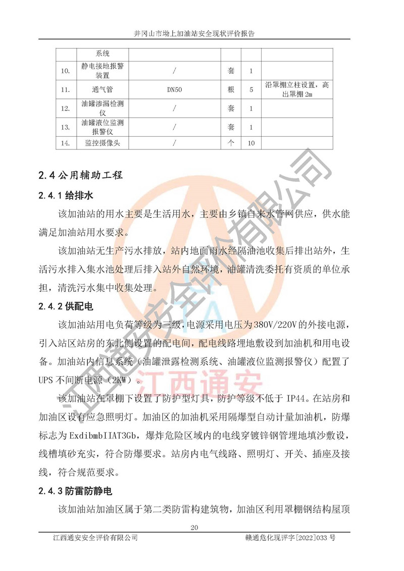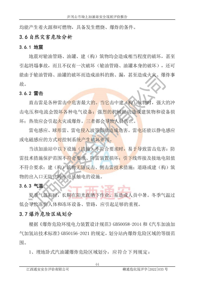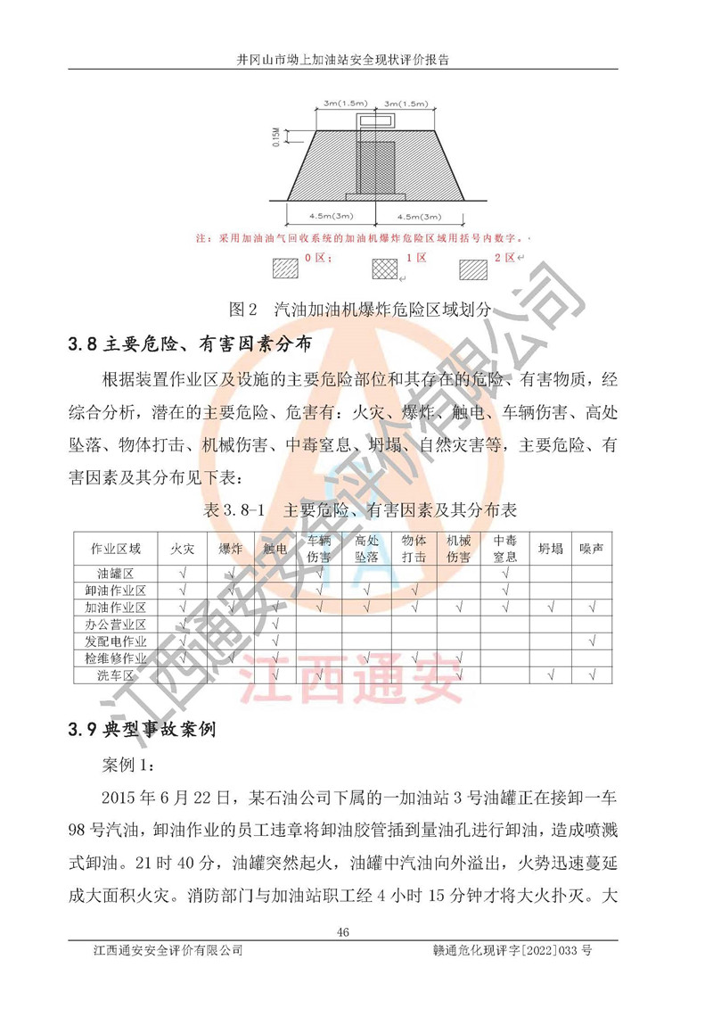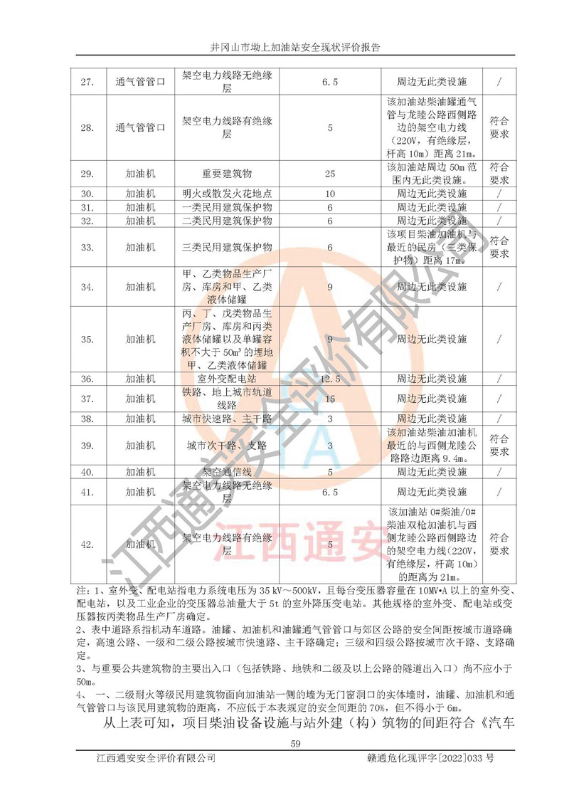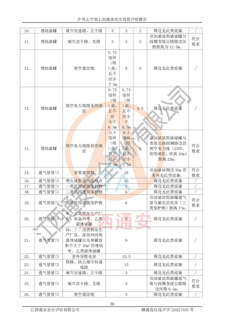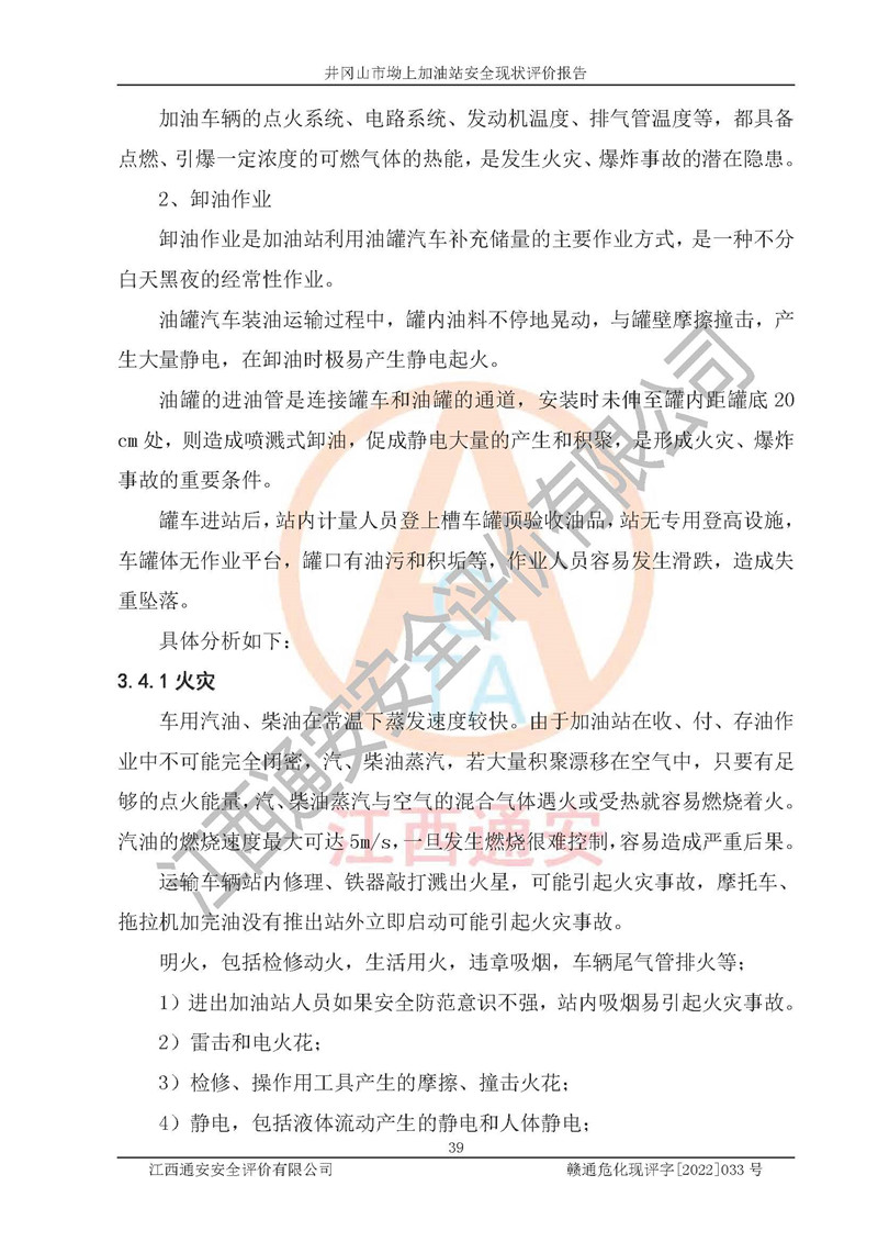 井岡山市坳上加油站是一家從事成品油零售經(jīng)營(yíng)的企業(yè)。該加油站于2014年7月1日經(jīng)井岡山市市場(chǎng)監(jiān)督管理局核準(zhǔn)注冊(cè)成立,營(yíng)業(yè)場(chǎng)所位于江西省井岡山市龍市鎮(zhèn)龍睦公路旁。該加油站屬于個(gè)人獨(dú)資企業(yè),負(fù)責(zé)人為吳亮,營(yíng)業(yè)執(zhí)照統(tǒng)一社會(huì)信用代碼為:913608817485108365。營(yíng)業(yè)執(zhí)照核準(zhǔn)經(jīng)營(yíng)范圍:成品油(汽油、柴油)、潤(rùn)滑油*卷煙、雪茄煙*預(yù)包裝食品兼散裝食品*零售(依法須經(jīng)批準(zhǔn)的項(xiàng)目,經(jīng)相關(guān)部門批準(zhǔn)后方可開展經(jīng)營(yíng)活動(dòng))。 井岡山市坳上加油站占地面積約974㎡,該加油站油罐設(shè)置罩棚下的車道下面,在罩棚下設(shè)置承重罐池,承重罐池內(nèi)每個(gè)隔池內(nèi)油罐數(shù)量按不多于兩臺(tái)設(shè)置,密閉卸油點(diǎn)設(shè)在原罐區(qū)東北面靠護(hù)坡一側(cè)。罩棚下設(shè)置的承重罐池設(shè)置有2臺(tái)40m3SF雙層0#柴油臥式埋地儲(chǔ)罐,1臺(tái)40m3SF雙層95#汽油臥式埋地儲(chǔ)罐,1臺(tái)40m3SF雙層92#汽油臥式埋地儲(chǔ)罐。該加油站油品*大總儲(chǔ)存能力為160m3,折算之后120m3(柴油罐容積折半計(jì)入油罐總?cè)莘e),屬二級(jí)加油站,該加油站汽油卸油、加油均設(shè)置了油氣回收系統(tǒng)。 |
