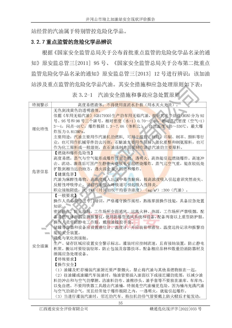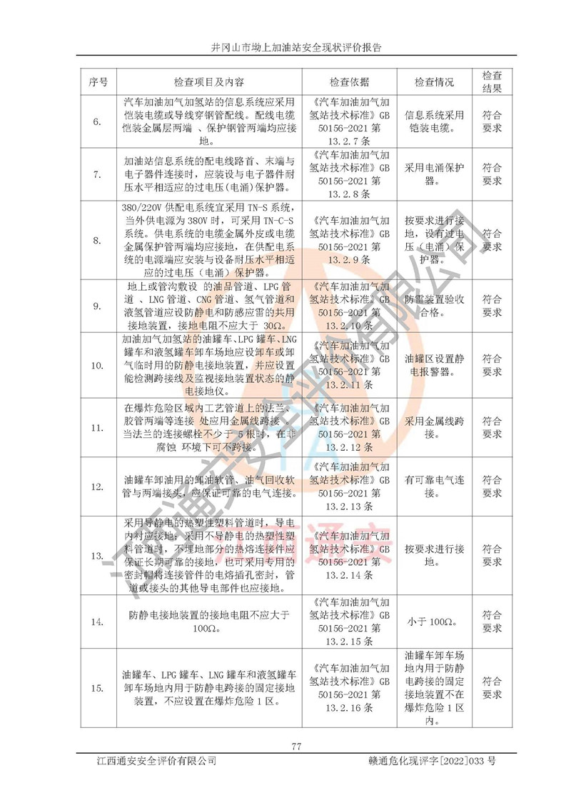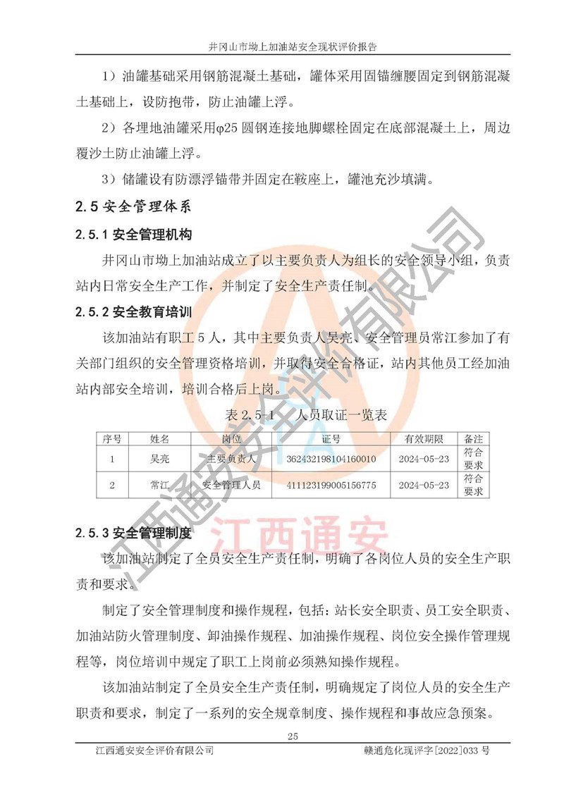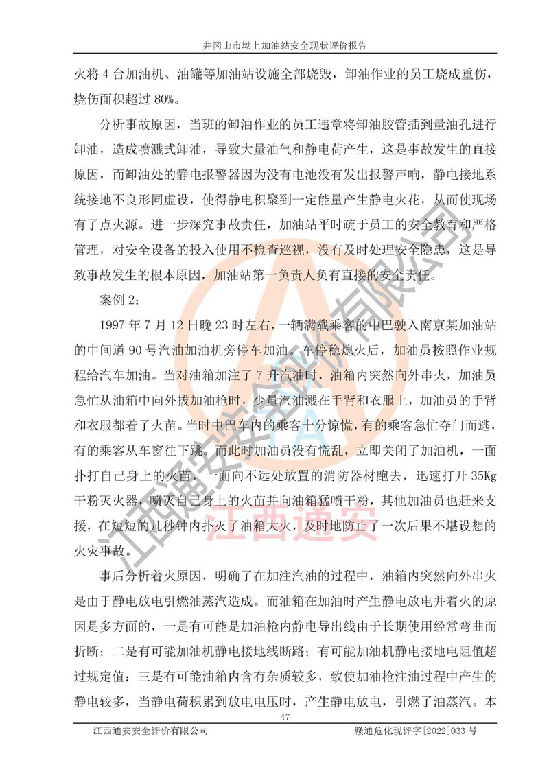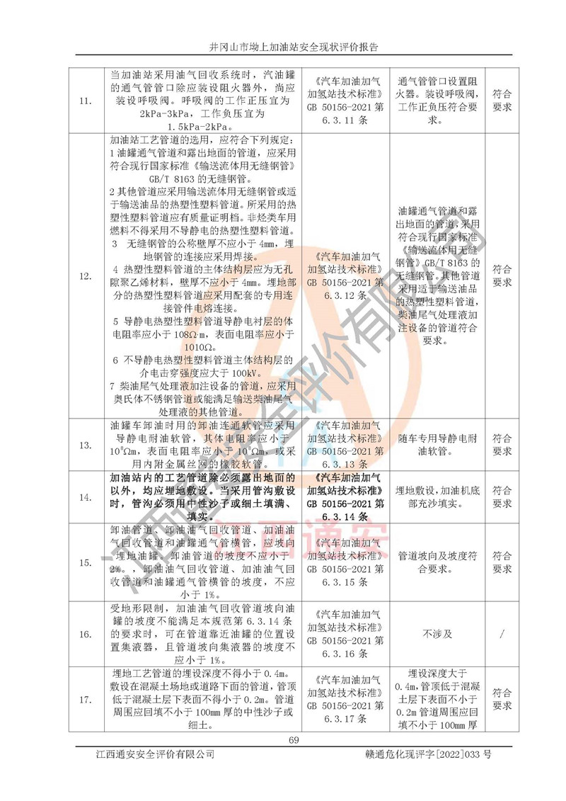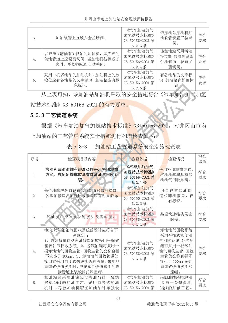 井岡山市坳上加油站是一家從事成品油零售經(jīng)營(yíng)的企業(yè)。該加油站于2014年7月1日經(jīng)井岡山市市場(chǎng)監(jiān)督管理局核準(zhǔn)注冊(cè)成立,營(yíng)業(yè)場(chǎng)所位于江西省井岡山市龍市鎮(zhèn)龍睦公路旁。該加油站屬于個(gè)人獨(dú)資企業(yè),負(fù)責(zé)人為吳亮,營(yíng)業(yè)執(zhí)照統(tǒng)一社會(huì)信用代碼為:913608817485108365。營(yíng)業(yè)執(zhí)照核準(zhǔn)經(jīng)營(yíng)范圍:成品油(汽油、柴油)、潤(rùn)滑油*卷煙、雪茄煙*預(yù)包裝食品兼散裝食品*零售(依法須經(jīng)批準(zhǔn)的項(xiàng)目,經(jīng)相關(guān)部門批準(zhǔn)后方可開展經(jīng)營(yíng)活動(dòng))。 井岡山市坳上加油站占地面積約974㎡,該加油站油罐設(shè)置罩棚下的車道下面,在罩棚下設(shè)置承重罐池,承重罐池內(nèi)每個(gè)隔池內(nèi)油罐數(shù)量按不多于兩臺(tái)設(shè)置,密閉卸油點(diǎn)設(shè)在原罐區(qū)東北面靠護(hù)坡一側(cè)。罩棚下設(shè)置的承重罐池設(shè)置有2臺(tái)40m3SF雙層0#柴油臥式埋地儲(chǔ)罐,1臺(tái)40m3SF雙層95#汽油臥式埋地儲(chǔ)罐,1臺(tái)40m3SF雙層92#汽油臥式埋地儲(chǔ)罐。該加油站油品*大總儲(chǔ)存能力為160m3,折算之后120m3(柴油罐容積折半計(jì)入油罐總?cè)莘e),屬二級(jí)加油站,該加油站汽油卸油、加油均設(shè)置了油氣回收系統(tǒng)。 |