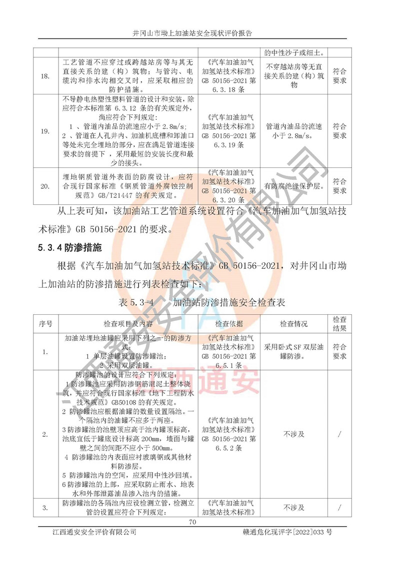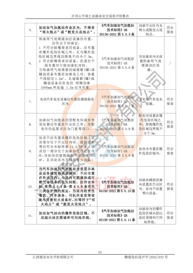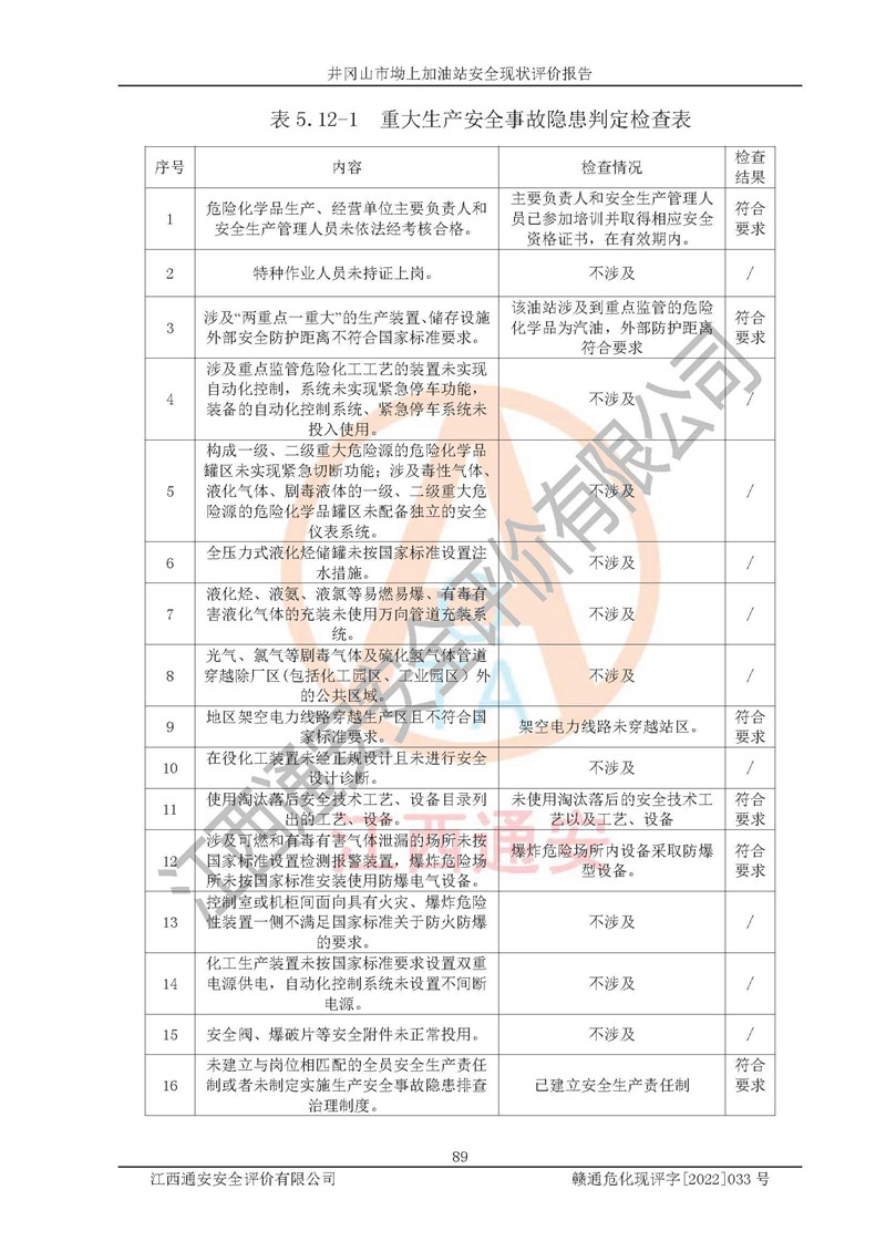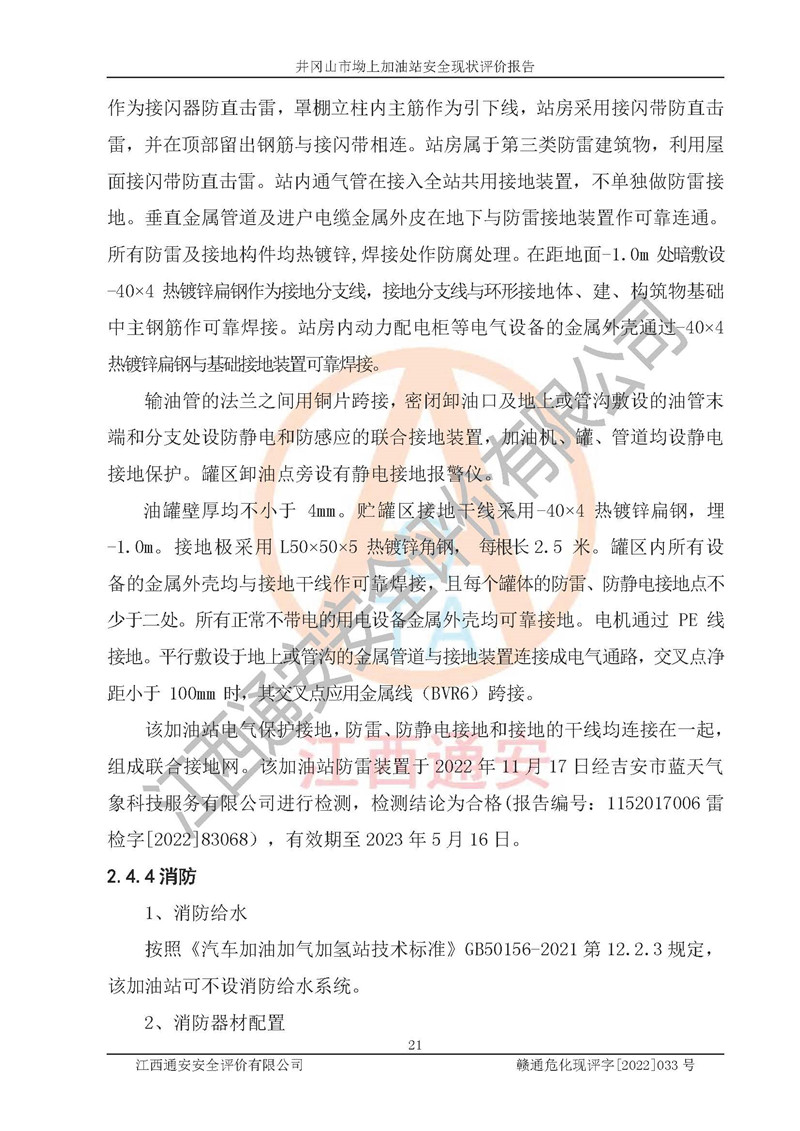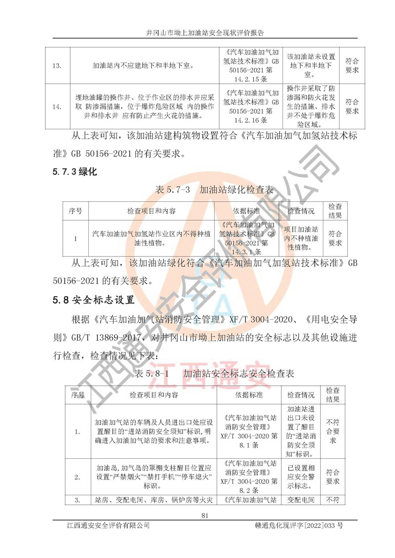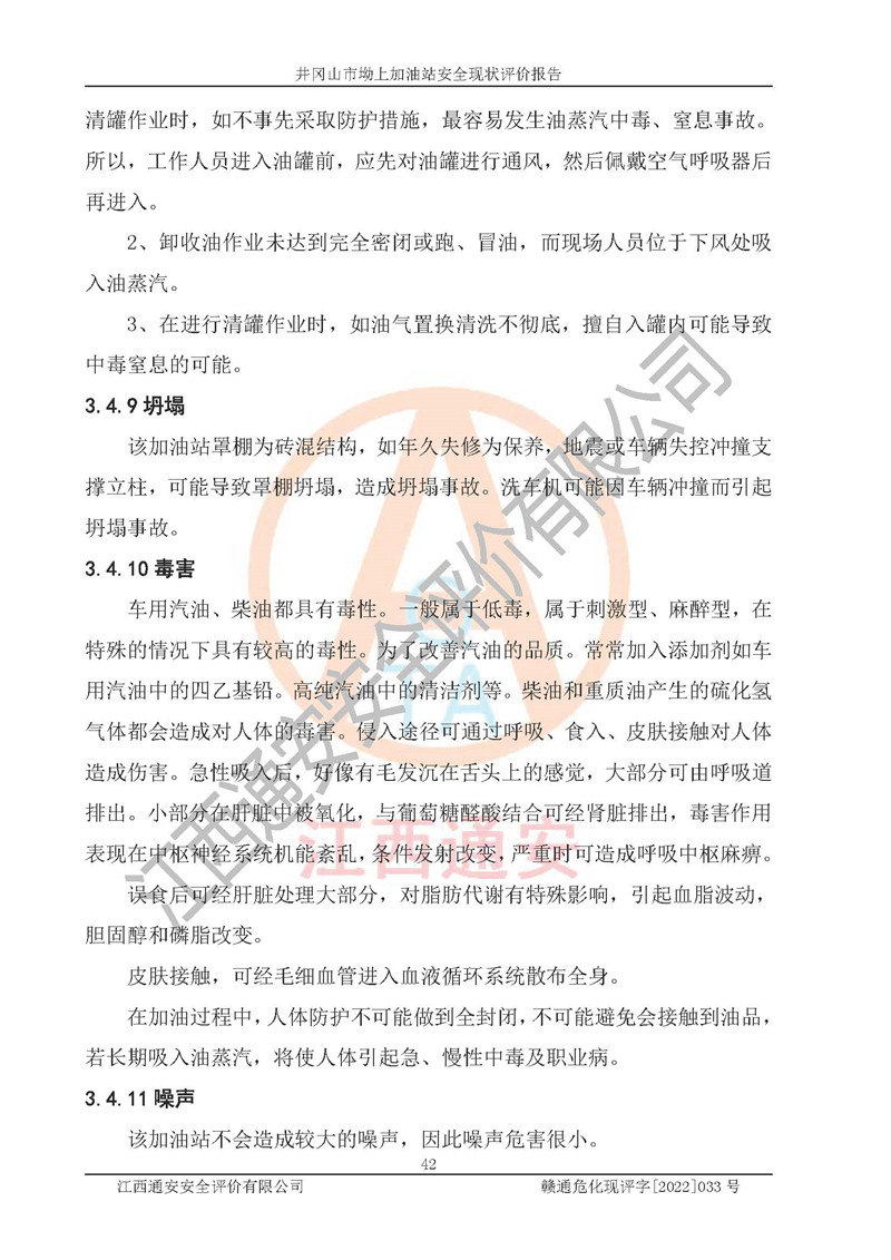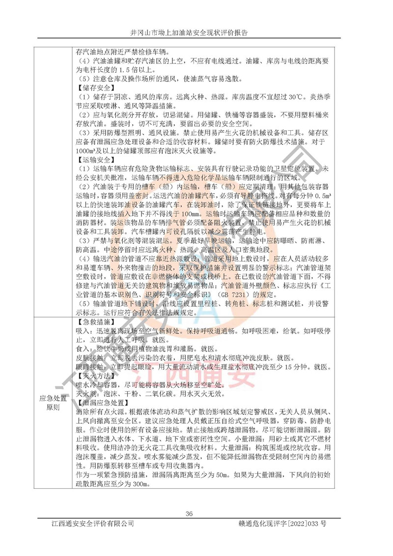 井岡山市坳上加油站是一家從事成品油零售經(jīng)營(yíng)的企業(yè)。該加油站于2014年7月1日經(jīng)井岡山市市場(chǎng)監(jiān)督管理局核準(zhǔn)注冊(cè)成立,營(yíng)業(yè)場(chǎng)所位于江西省井岡山市龍市鎮(zhèn)龍睦公路旁。該加油站屬于個(gè)人獨(dú)資企業(yè),負(fù)責(zé)人為吳亮,營(yíng)業(yè)執(zhí)照統(tǒng)一社會(huì)信用代碼為:913608817485108365。營(yíng)業(yè)執(zhí)照核準(zhǔn)經(jīng)營(yíng)范圍:成品油(汽油、柴油)、潤(rùn)滑油*卷煙、雪茄煙*預(yù)包裝食品兼散裝食品*零售(依法須經(jīng)批準(zhǔn)的項(xiàng)目,經(jīng)相關(guān)部門批準(zhǔn)后方可開展經(jīng)營(yíng)活動(dòng))。 井岡山市坳上加油站占地面積約974㎡,該加油站油罐設(shè)置罩棚下的車道下面,在罩棚下設(shè)置承重罐池,承重罐池內(nèi)每個(gè)隔池內(nèi)油罐數(shù)量按不多于兩臺(tái)設(shè)置,密閉卸油點(diǎn)設(shè)在原罐區(qū)東北面靠護(hù)坡一側(cè)。罩棚下設(shè)置的承重罐池設(shè)置有2臺(tái)40m3SF雙層0#柴油臥式埋地儲(chǔ)罐,1臺(tái)40m3SF雙層95#汽油臥式埋地儲(chǔ)罐,1臺(tái)40m3SF雙層92#汽油臥式埋地儲(chǔ)罐。該加油站油品*大總儲(chǔ)存能力為160m3,折算之后120m3(柴油罐容積折半計(jì)入油罐總?cè)莘e),屬二級(jí)加油站,該加油站汽油卸油、加油均設(shè)置了油氣回收系統(tǒng)。 |