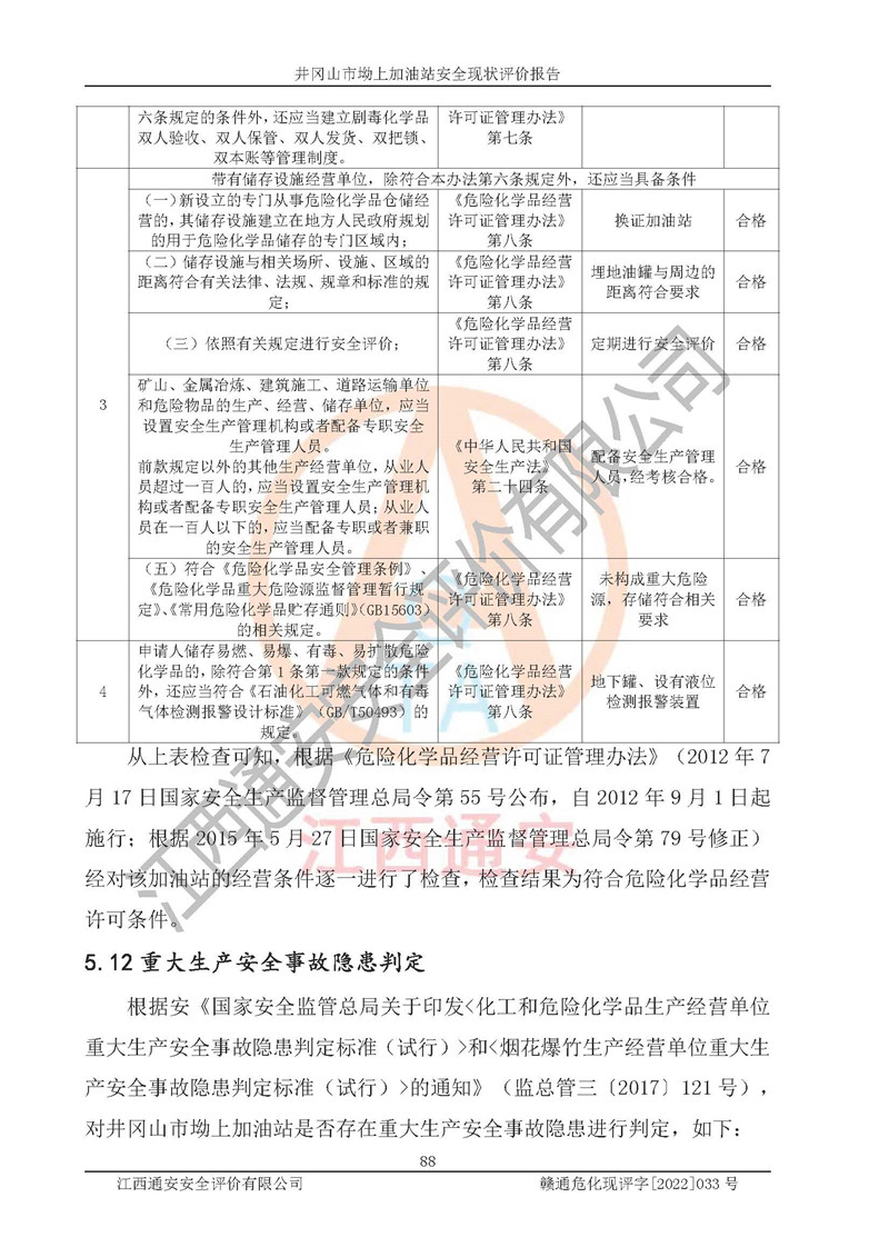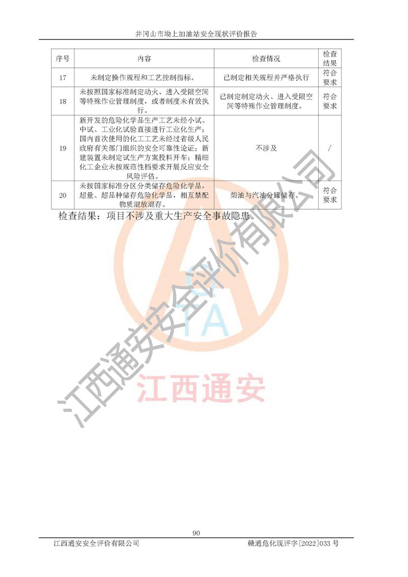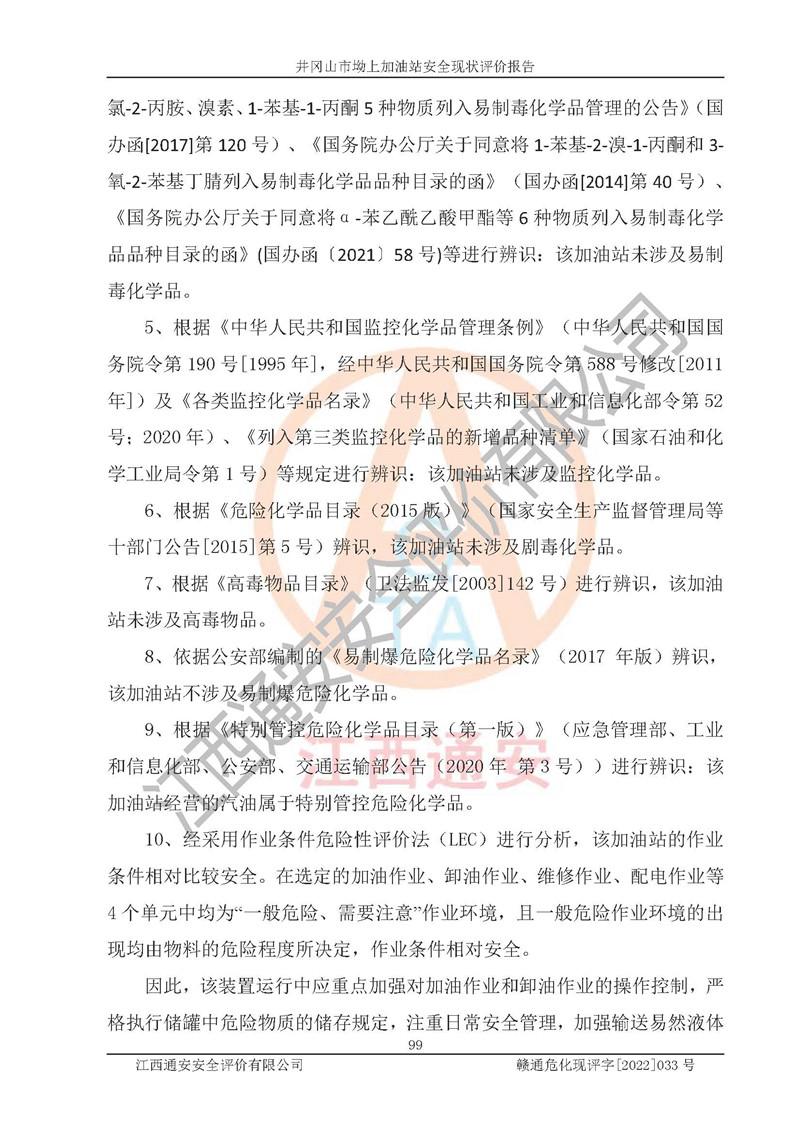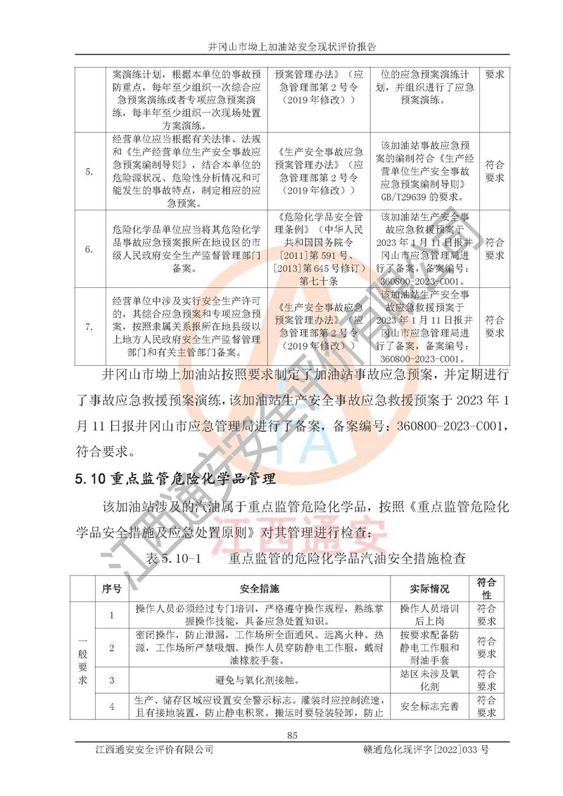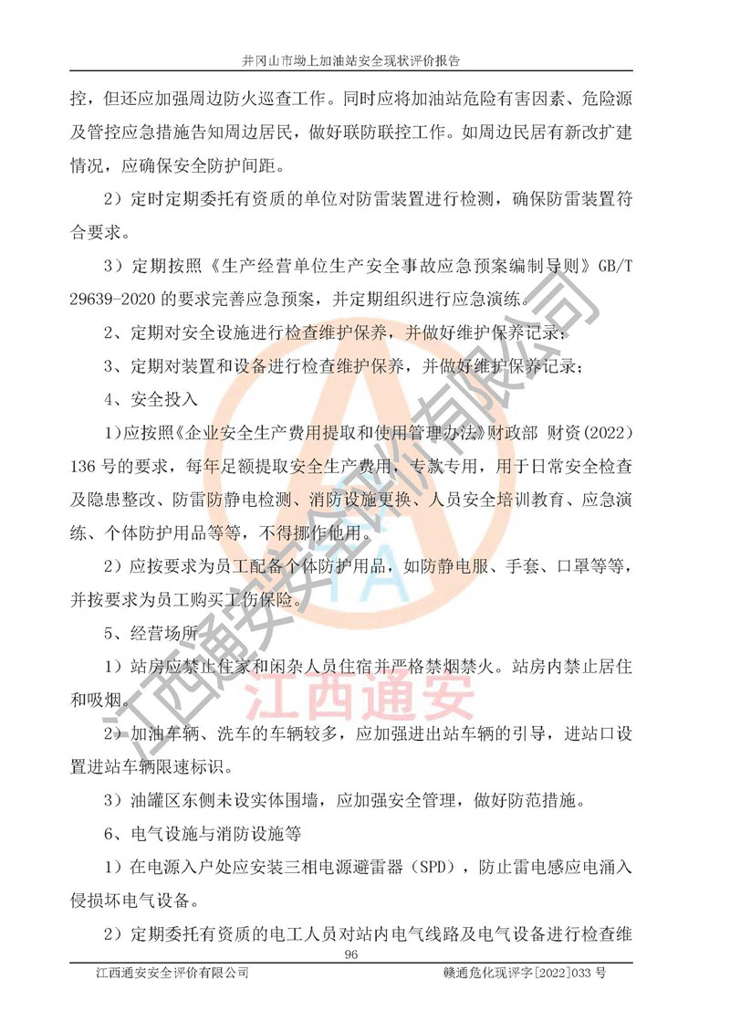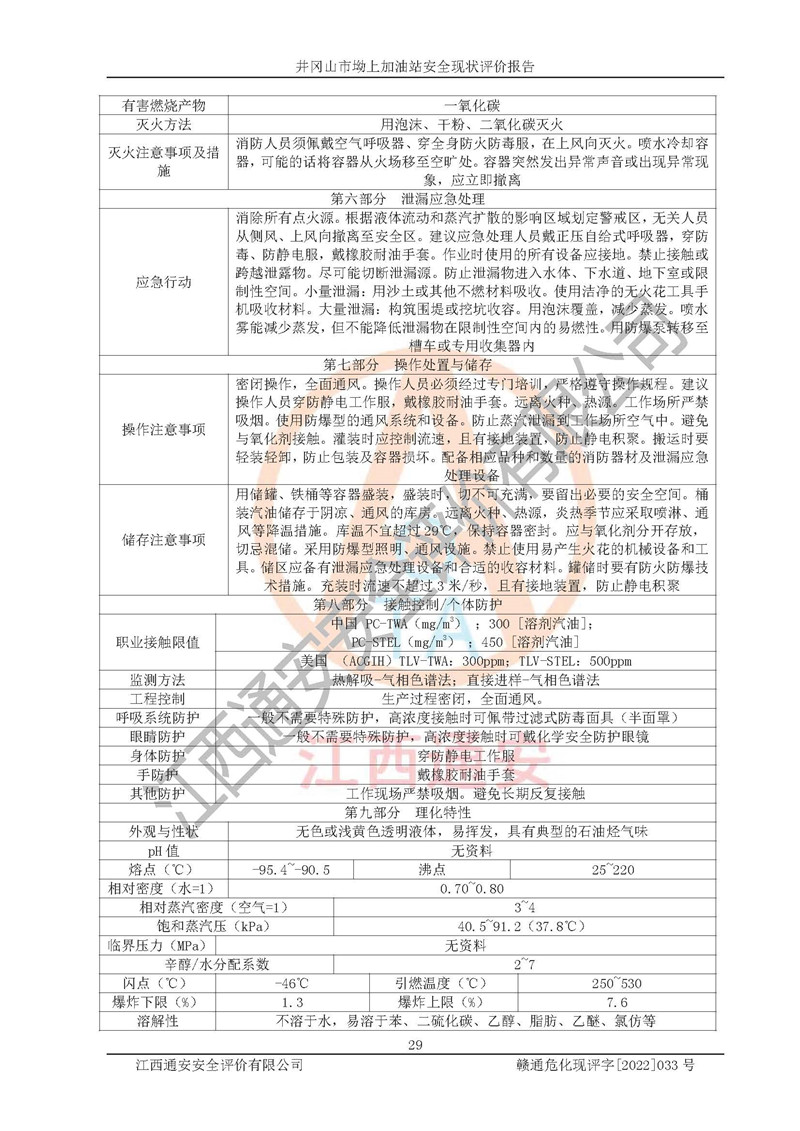 井岡山市坳上加油站是一家從事成品油零售經(jīng)營(yíng)的企業(yè)。該加油站于2014年7月1日經(jīng)井岡山市市場(chǎng)監(jiān)督管理局核準(zhǔn)注冊(cè)成立,營(yíng)業(yè)場(chǎng)所位于江西省井岡山市龍市鎮(zhèn)龍睦公路旁。該加油站屬于個(gè)人獨(dú)資企業(yè),負(fù)責(zé)人為吳亮,營(yíng)業(yè)執(zhí)照統(tǒng)一社會(huì)信用代碼為:913608817485108365。營(yíng)業(yè)執(zhí)照核準(zhǔn)經(jīng)營(yíng)范圍:成品油(汽油、柴油)、潤(rùn)滑油*卷煙、雪茄煙*預(yù)包裝食品兼散裝食品*零售(依法須經(jīng)批準(zhǔn)的項(xiàng)目,經(jīng)相關(guān)部門批準(zhǔn)后方可開展經(jīng)營(yíng)活動(dòng))。 井岡山市坳上加油站占地面積約974㎡,該加油站油罐設(shè)置罩棚下的車道下面,在罩棚下設(shè)置承重罐池,承重罐池內(nèi)每個(gè)隔池內(nèi)油罐數(shù)量按不多于兩臺(tái)設(shè)置,密閉卸油點(diǎn)設(shè)在原罐區(qū)東北面靠護(hù)坡一側(cè)。罩棚下設(shè)置的承重罐池設(shè)置有2臺(tái)40m3SF雙層0#柴油臥式埋地儲(chǔ)罐,1臺(tái)40m3SF雙層95#汽油臥式埋地儲(chǔ)罐,1臺(tái)40m3SF雙層92#汽油臥式埋地儲(chǔ)罐。該加油站油品*大總儲(chǔ)存能力為160m3,折算之后120m3(柴油罐容積折半計(jì)入油罐總?cè)莘e),屬二級(jí)加油站,該加油站汽油卸油、加油均設(shè)置了油氣回收系統(tǒng)。 |