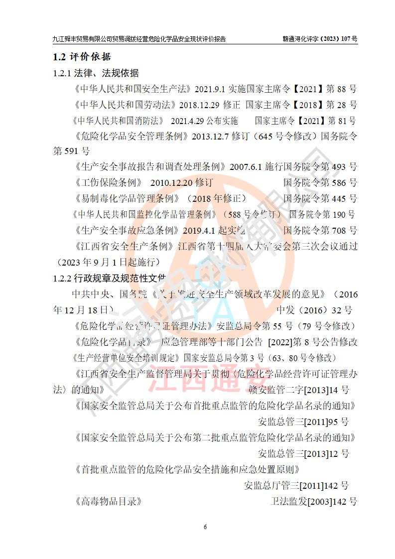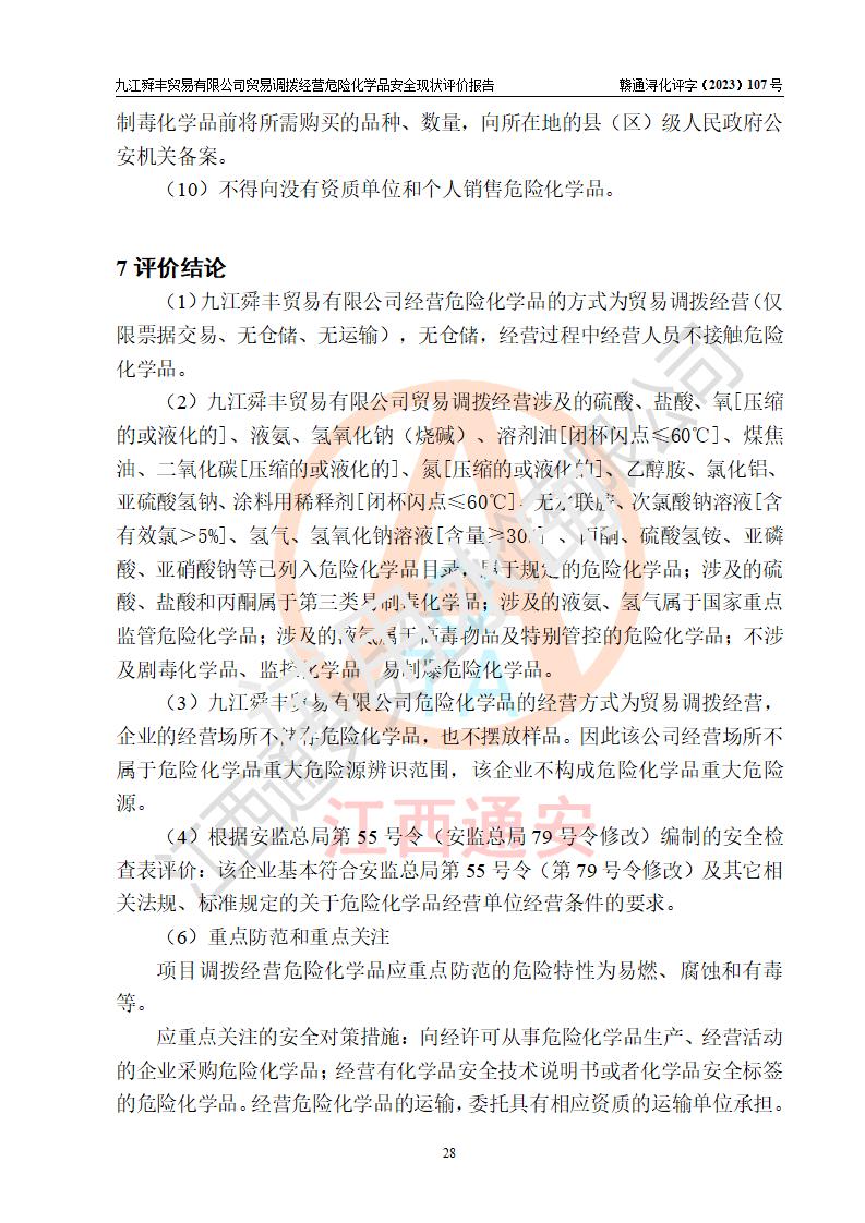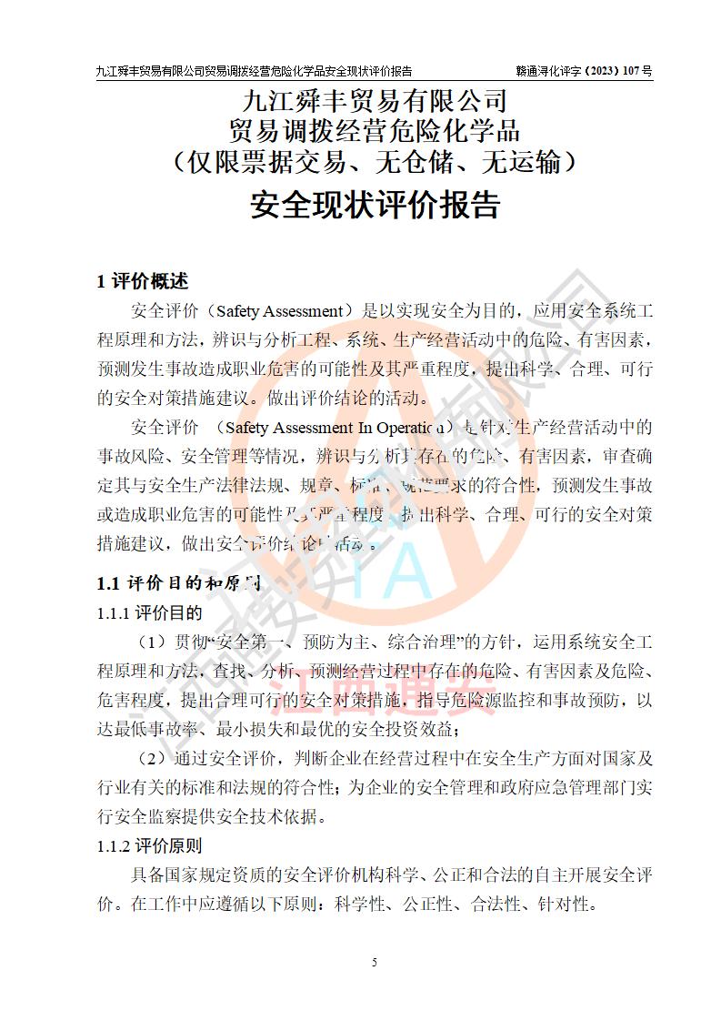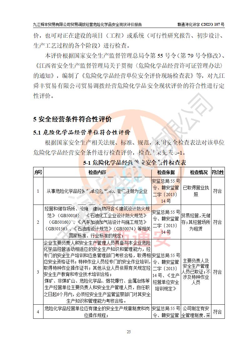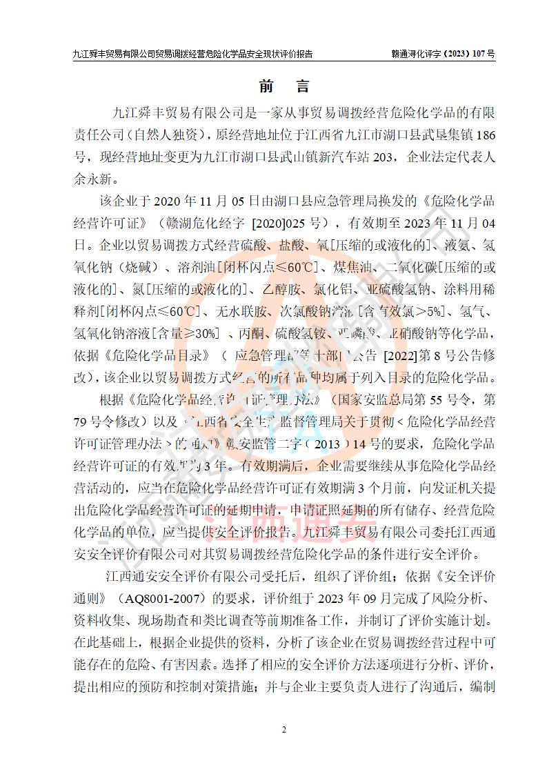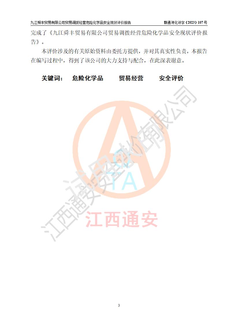 評價報告名稱 | 九江舜豐貿(mào)易有限公司貿(mào)易調(diào)撥經(jīng)營危險化學(xué)品安全現(xiàn)狀評價報告 | |||