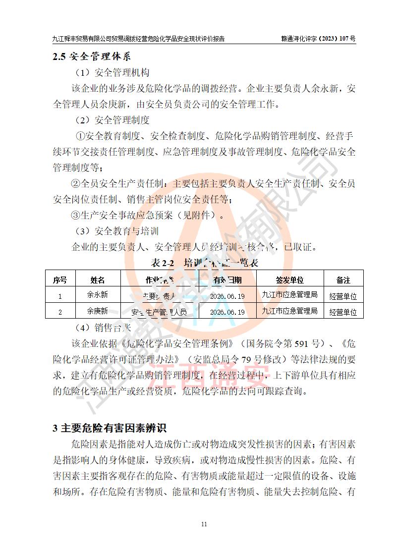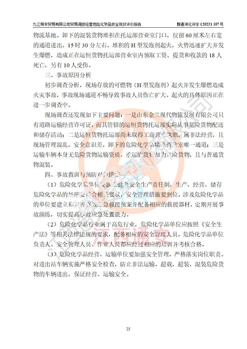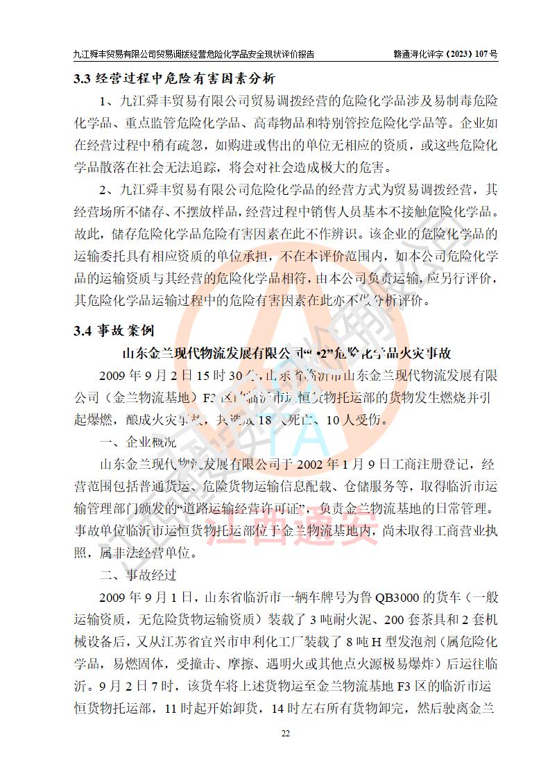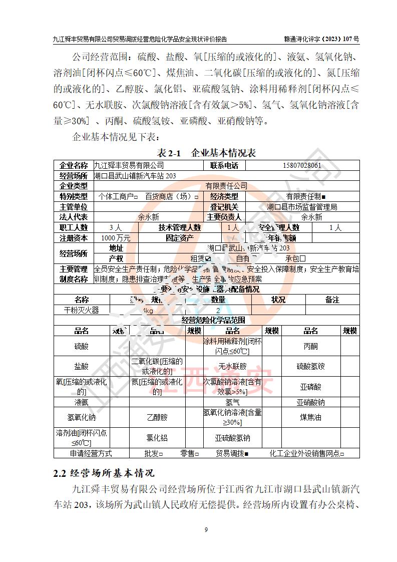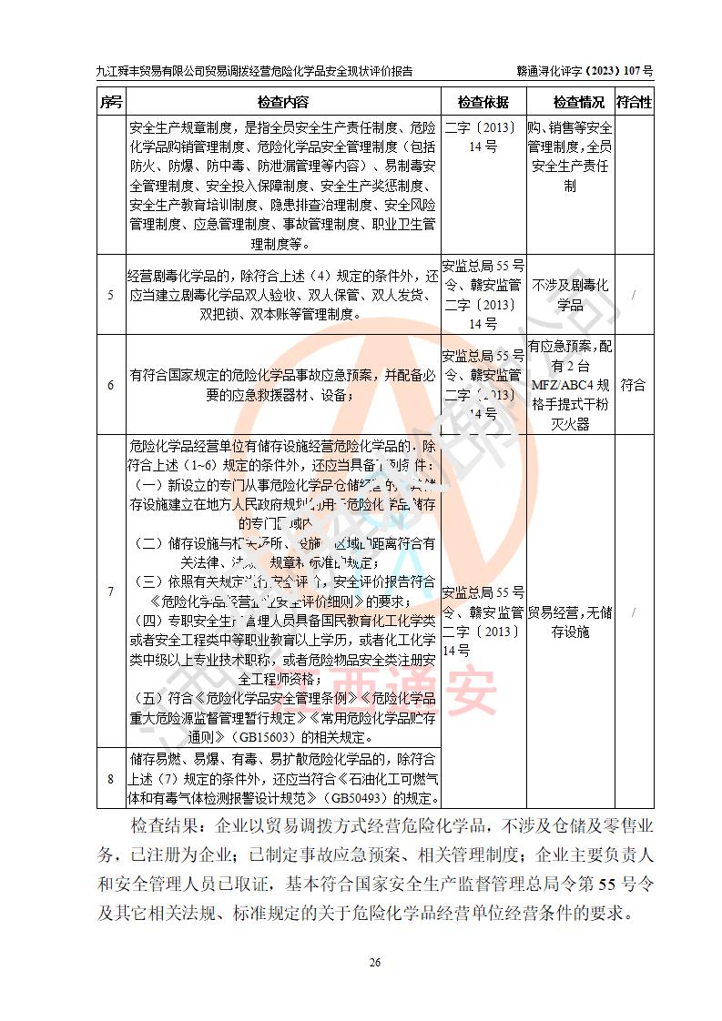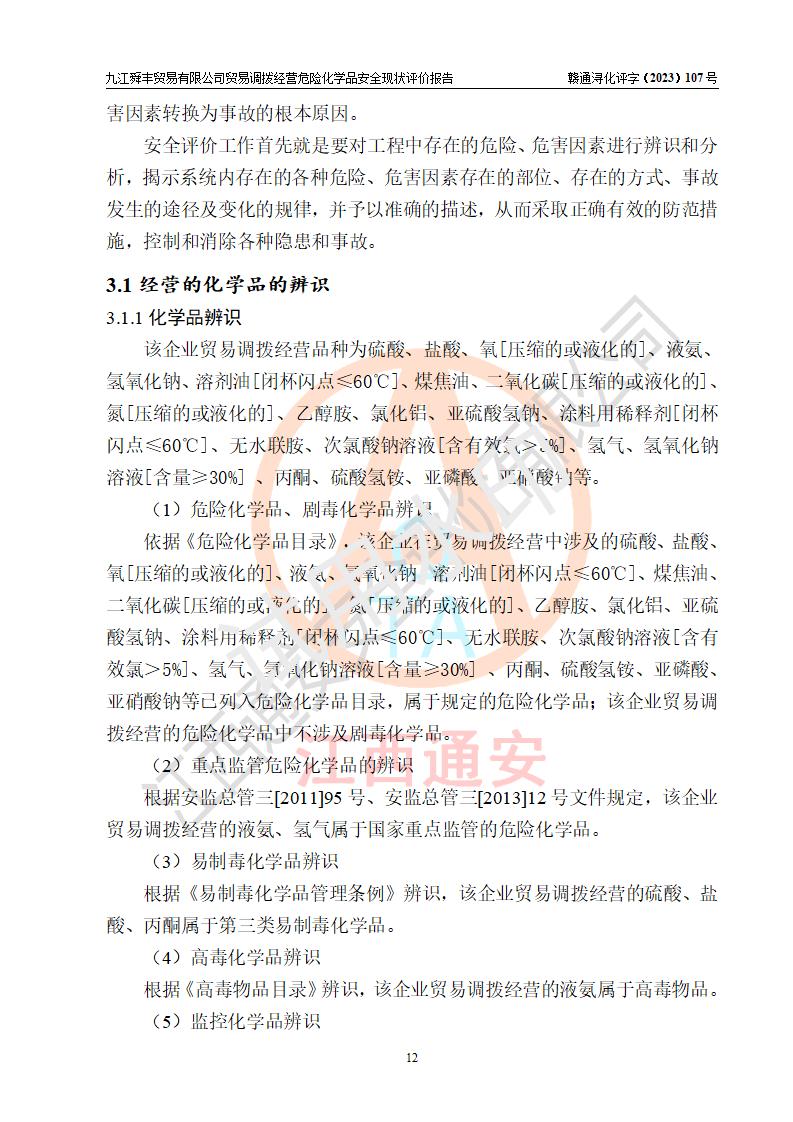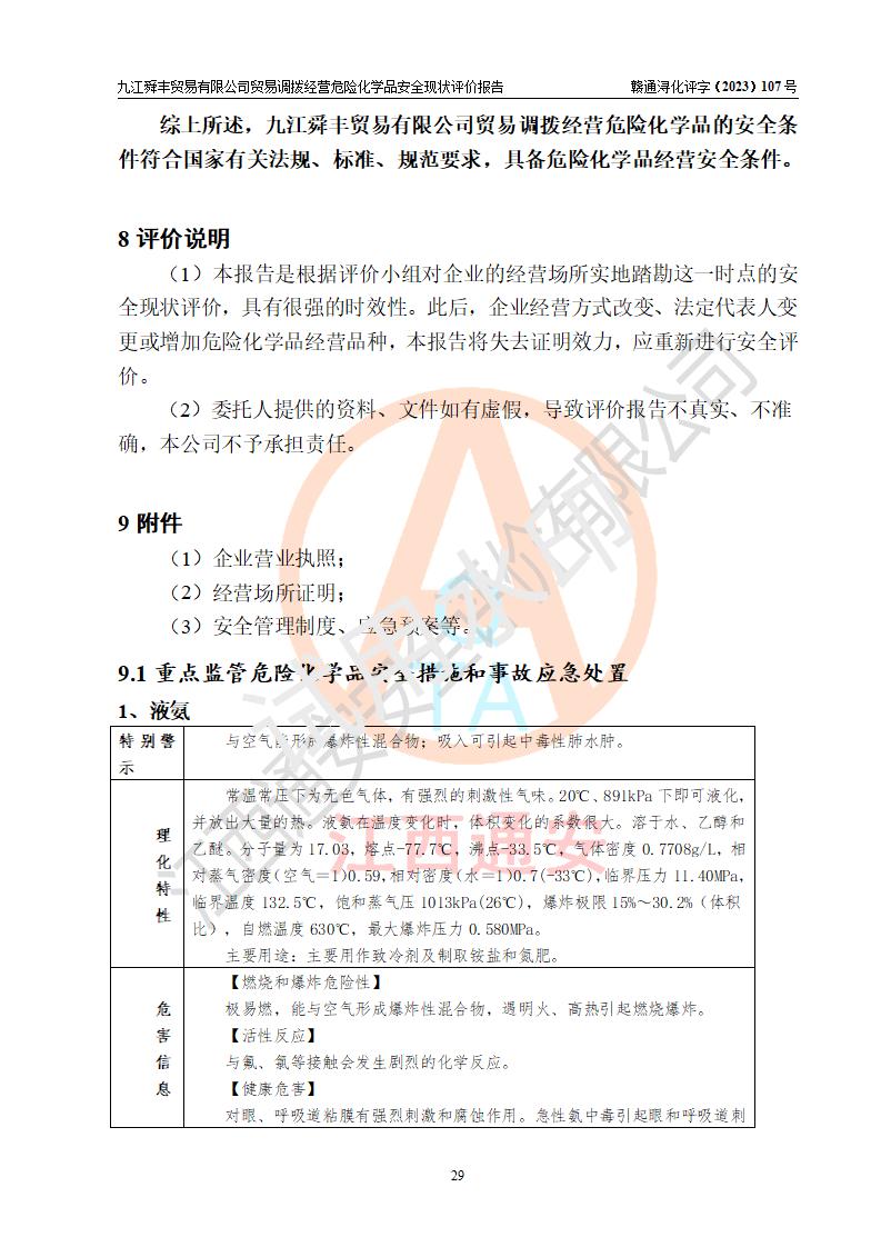 評價報告名稱 | 九江舜豐貿(mào)易有限公司貿(mào)易調(diào)撥經(jīng)營危險化學(xué)品安全現(xiàn)狀評價報告 | |||