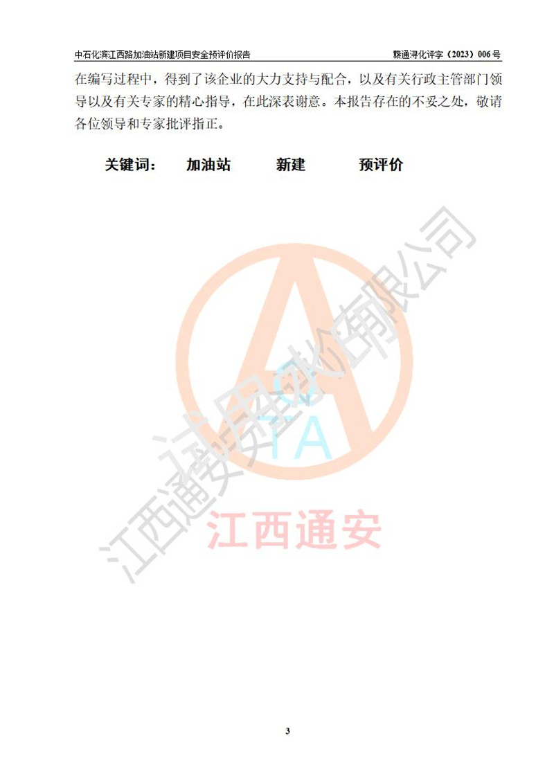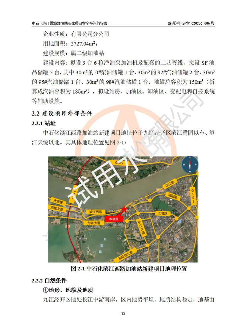 評價報告名稱 | 中國石化銷售股份有限公司江西九江潯陽石油分公司濱江西路加油站新建項(xiàng)目安全預(yù)評價報告 | |||