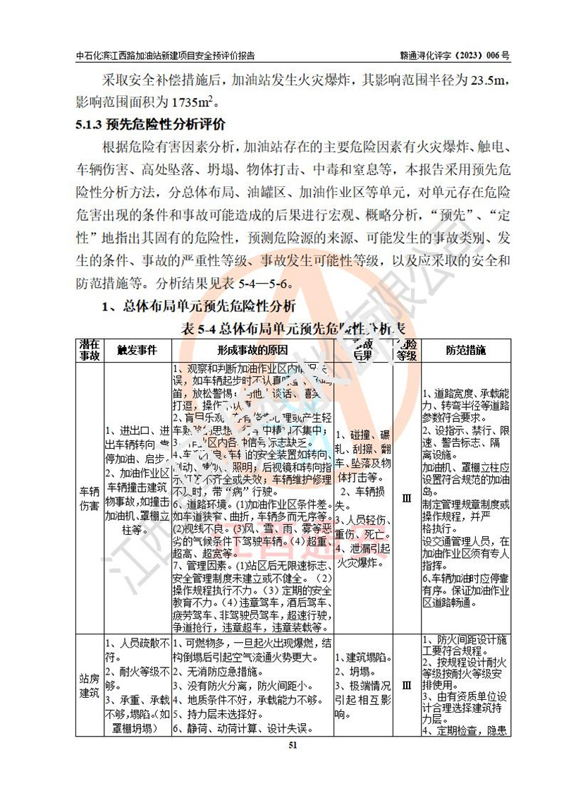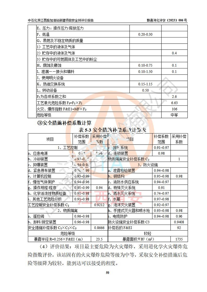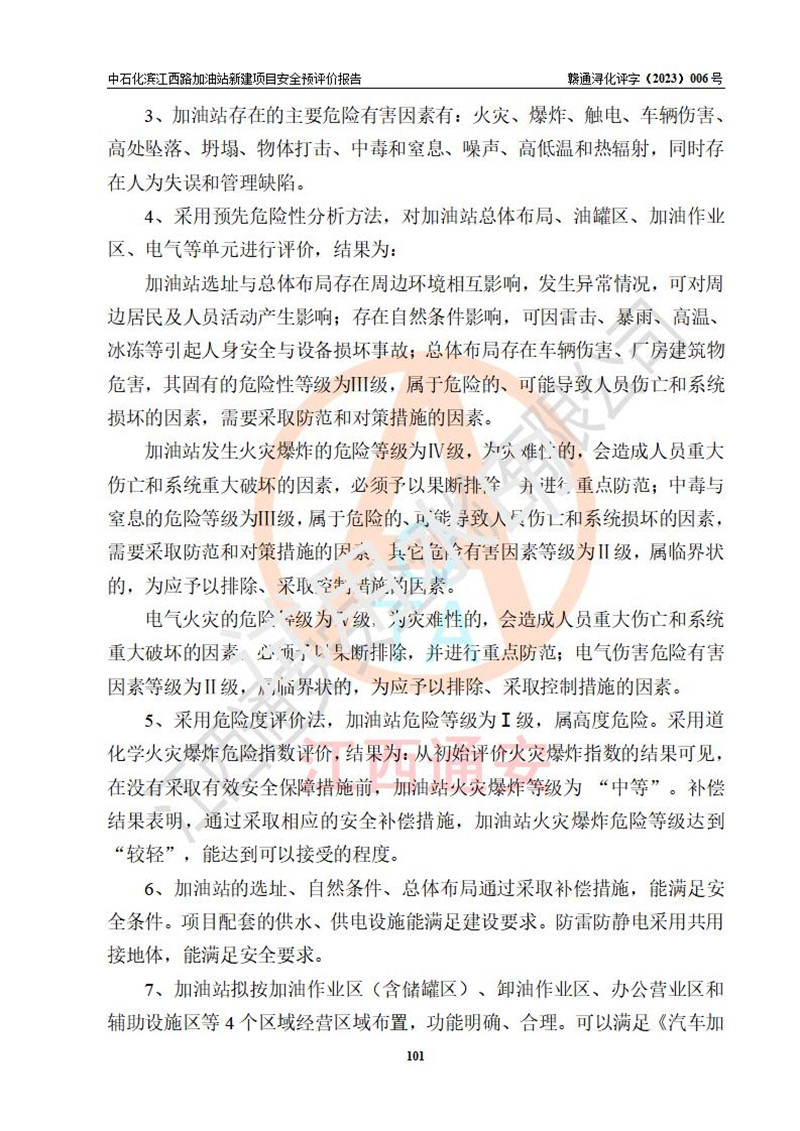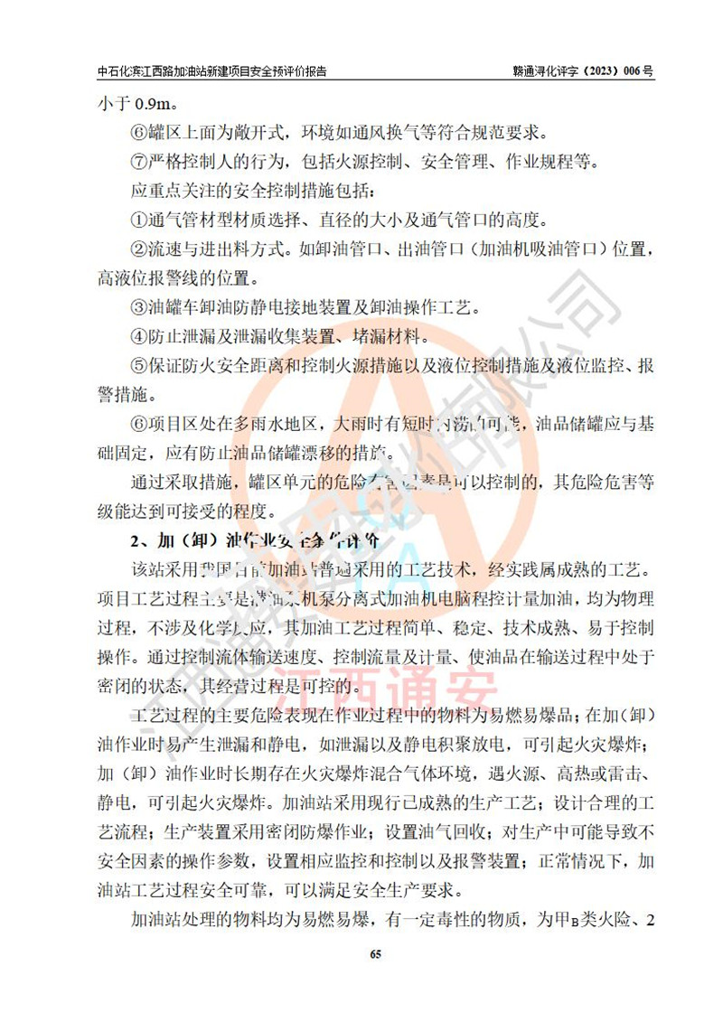 評價結(jié)論 | 中國石化銷售股份有限公司江西九江潯陽石油分公司濱江西路加油站新建項(xiàng)目的選址、自然條件適宜該項(xiàng)目工程的建設(shè);項(xiàng)目規(guī)劃設(shè)計中的總體布局方案可行,符合有關(guān)法規(guī)、標(biāo)準(zhǔn)要求;項(xiàng)目選擇的工藝過程及設(shè)備設(shè)施的安全可靠性能達(dá)到**法規(guī)、標(biāo)準(zhǔn)規(guī)定要求;項(xiàng)目存在的危險有害因素可控,在落實(shí)項(xiàng)目建設(shè)方案及評價報告提出的有關(guān)安全對策措施后,其危險有害程度能達(dá)到可以接受的程度,項(xiàng)目建設(shè)能夠?qū)崿F(xiàn)安全運(yùn)行的目標(biāo)。 | |||