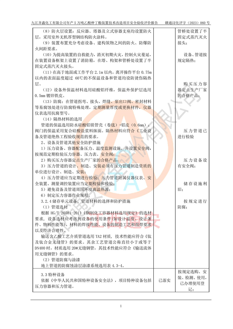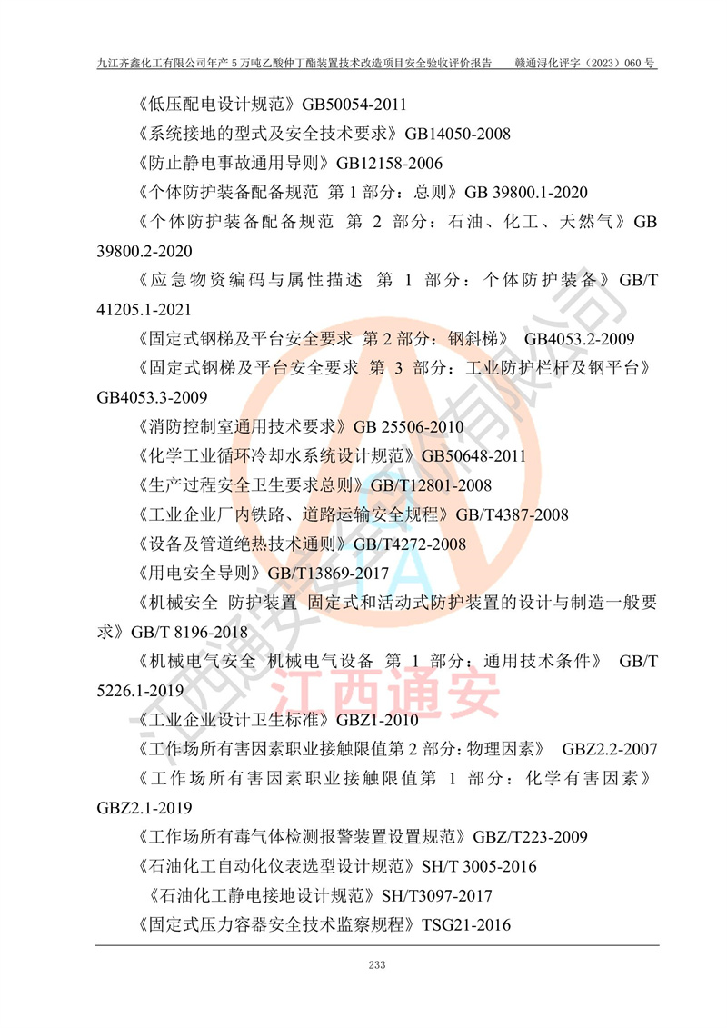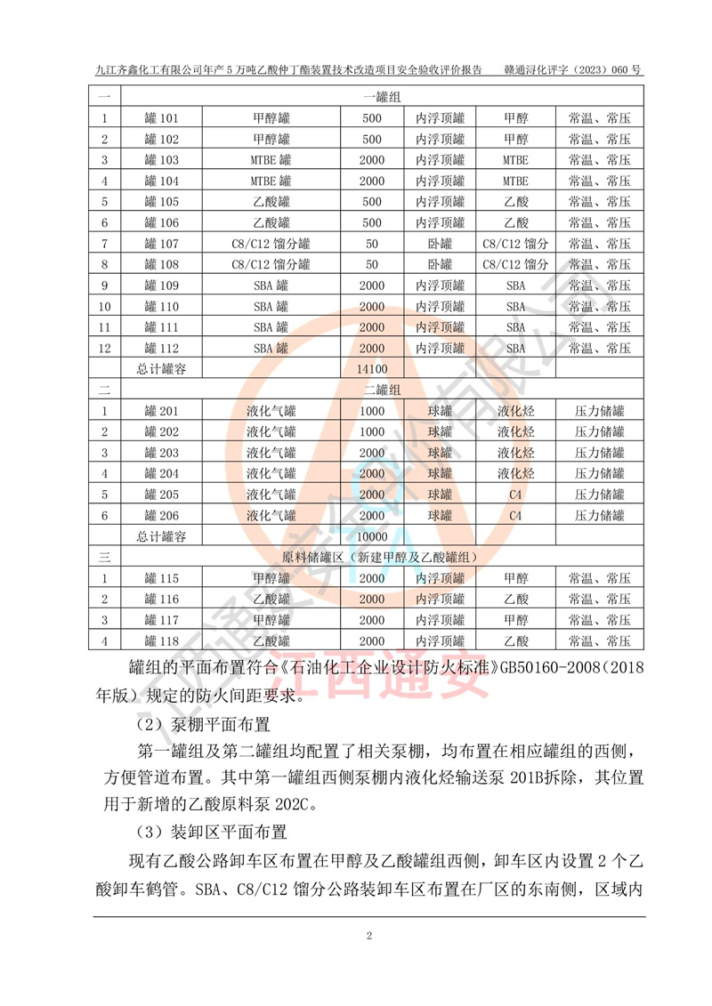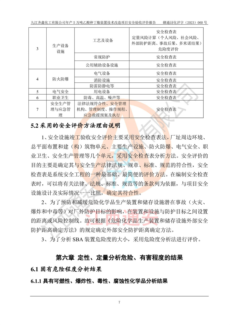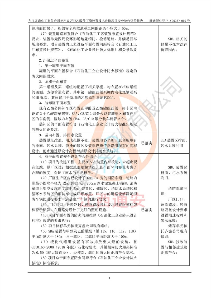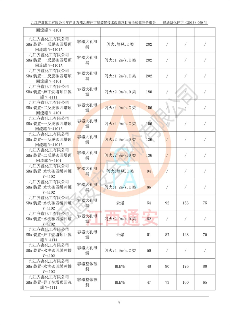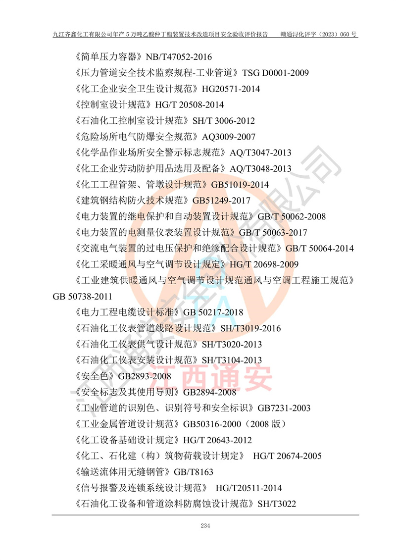 評(píng)價(jià)報(bào)告名稱 | 九江齊鑫化工有限公司年產(chǎn)5萬噸乙酸仲丁酯裝置技術(shù)改造項(xiàng)目安全驗(yàn)收評(píng)價(jià)報(bào)告 | ||||