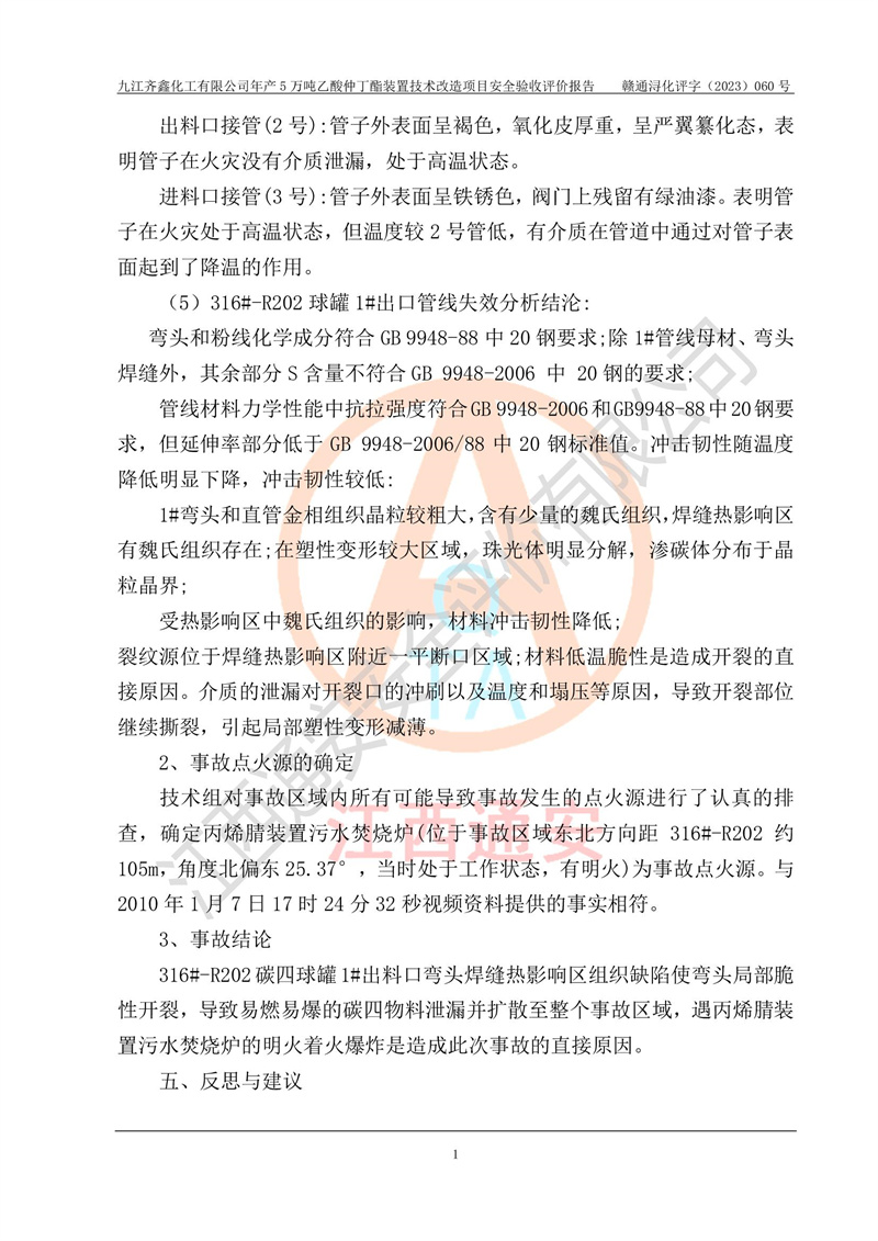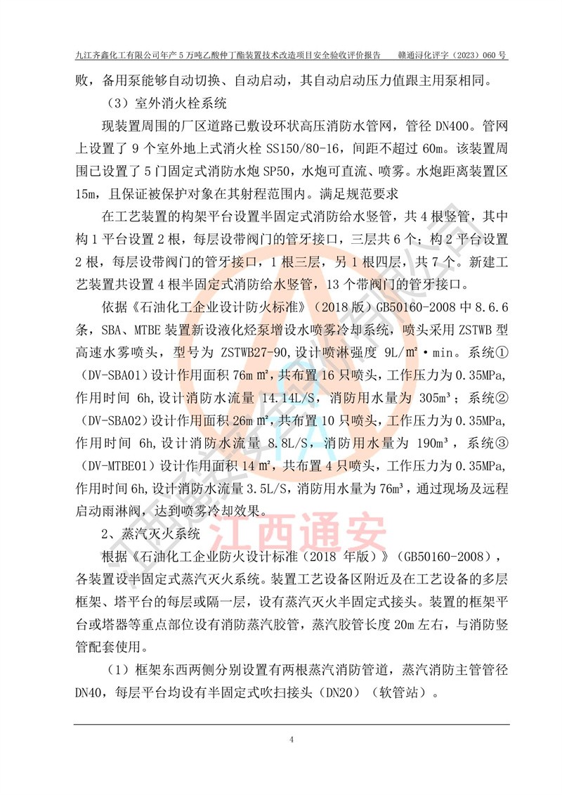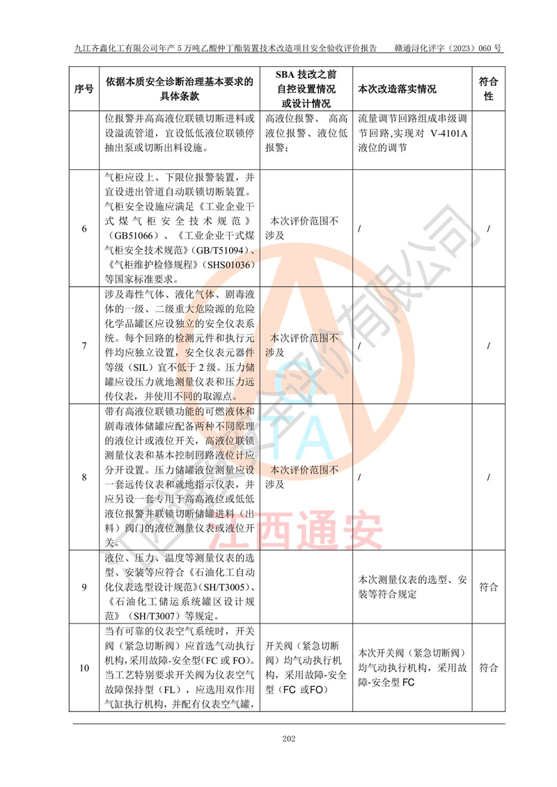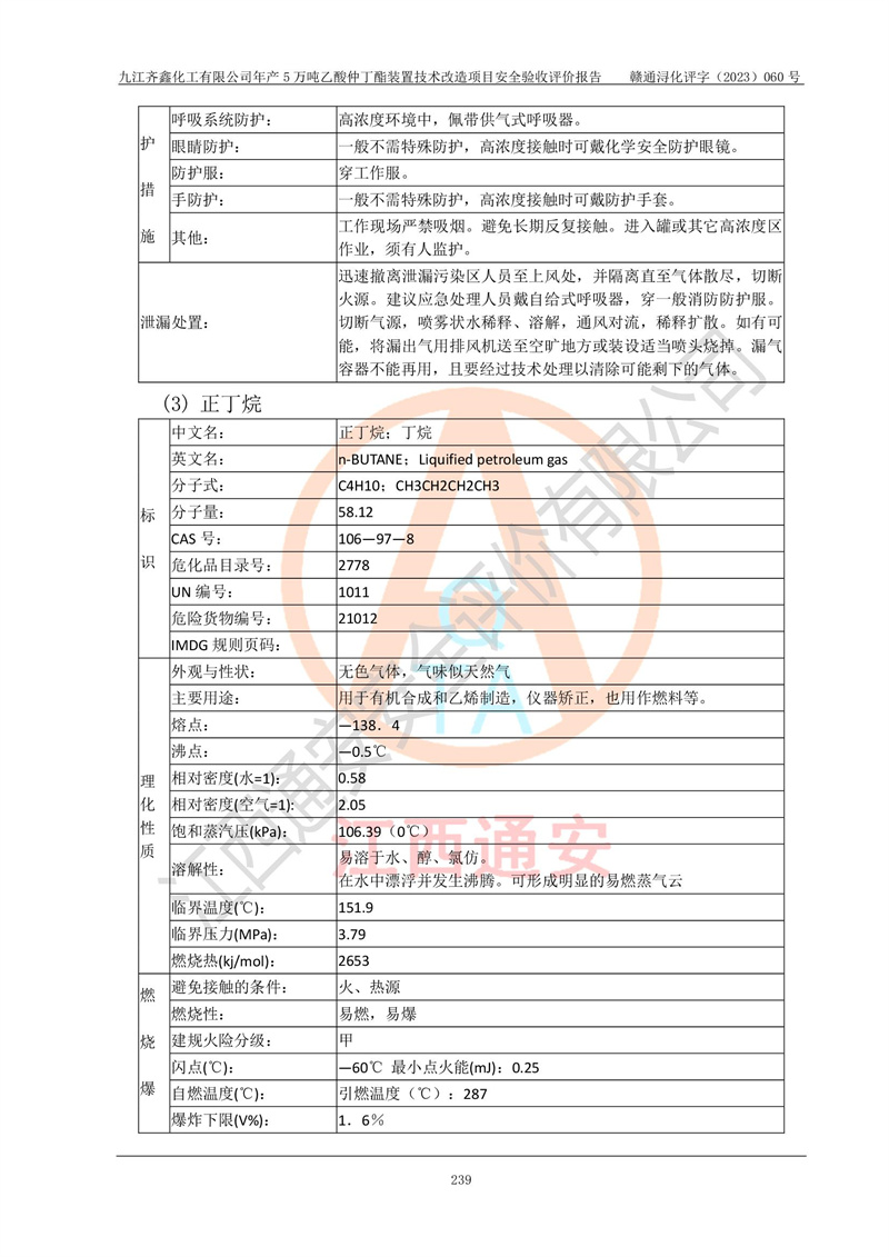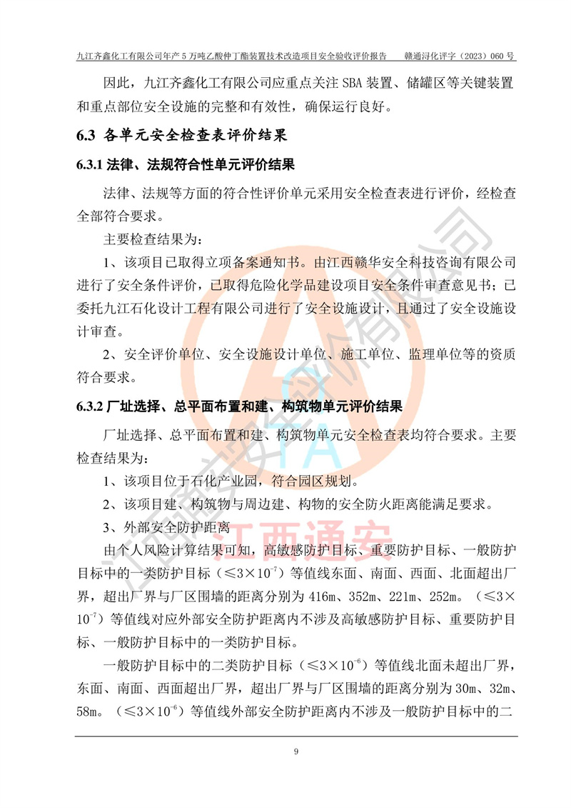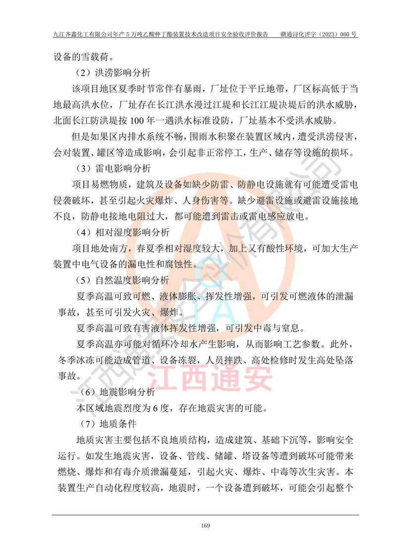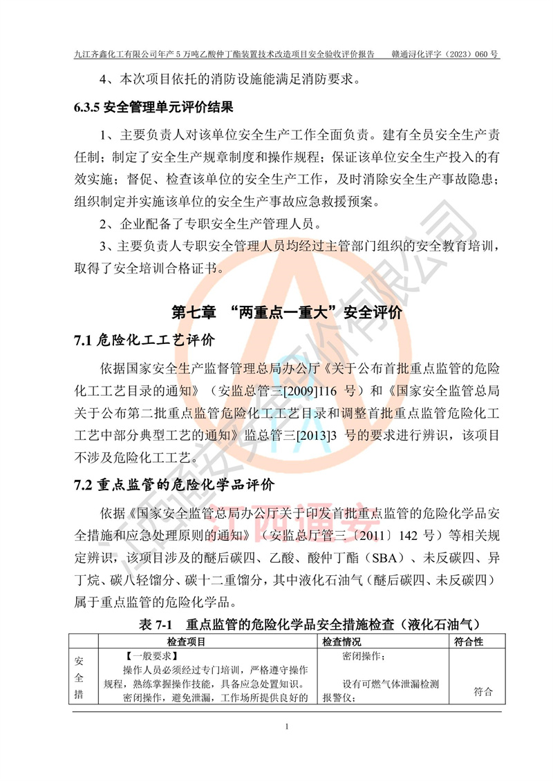 評(píng)價(jià)報(bào)告名稱 | 九江齊鑫化工有限公司年產(chǎn)5萬噸乙酸仲丁酯裝置技術(shù)改造項(xiàng)目安全驗(yàn)收評(píng)價(jià)報(bào)告 | ||||