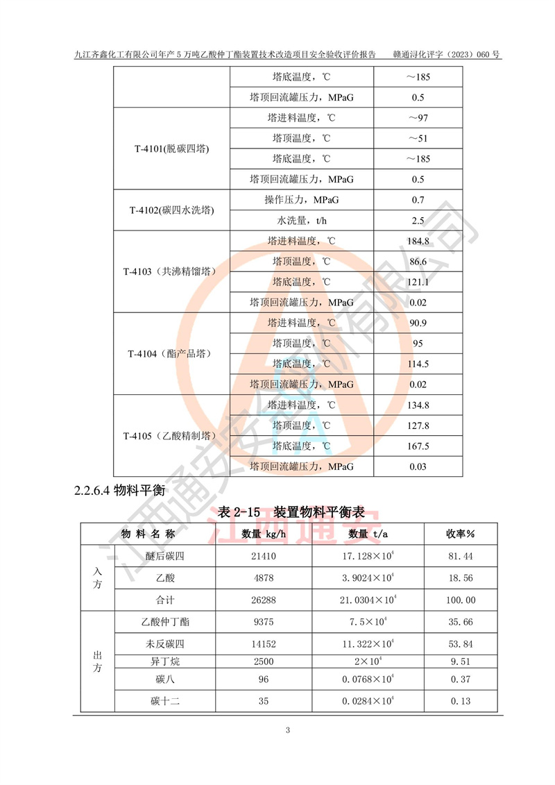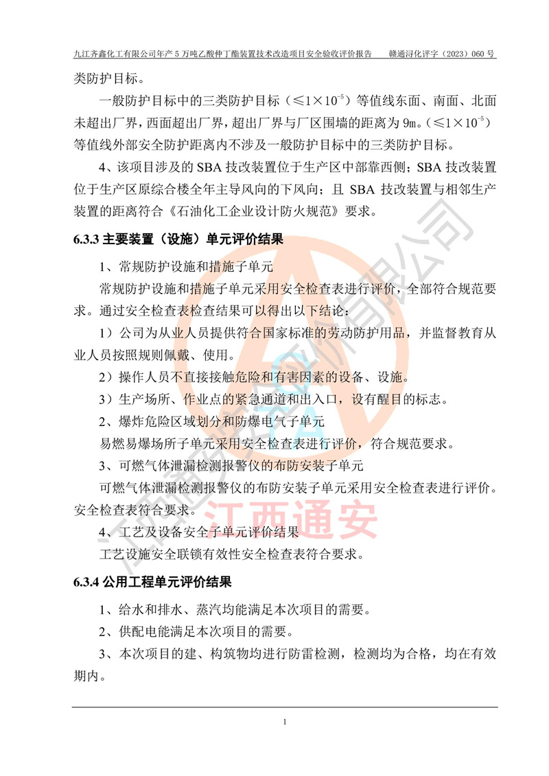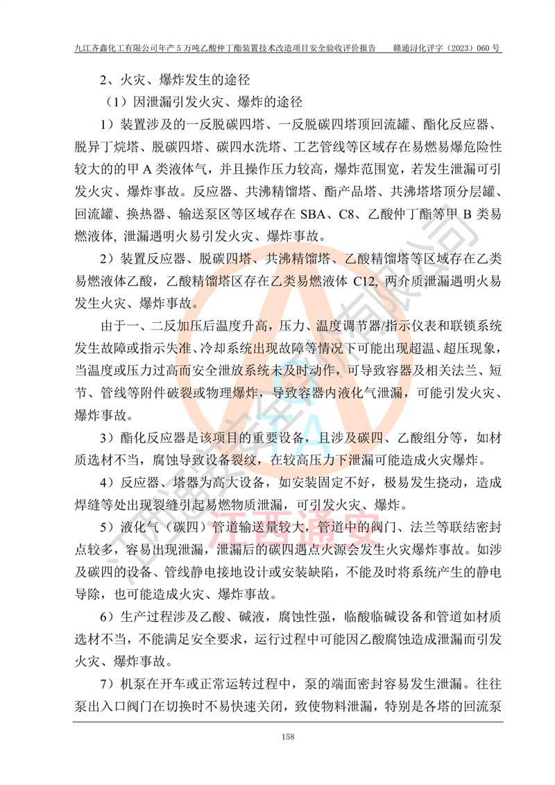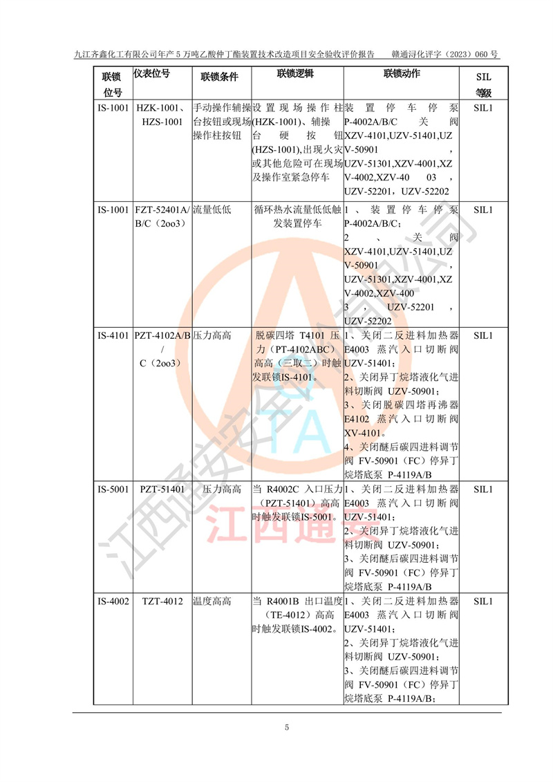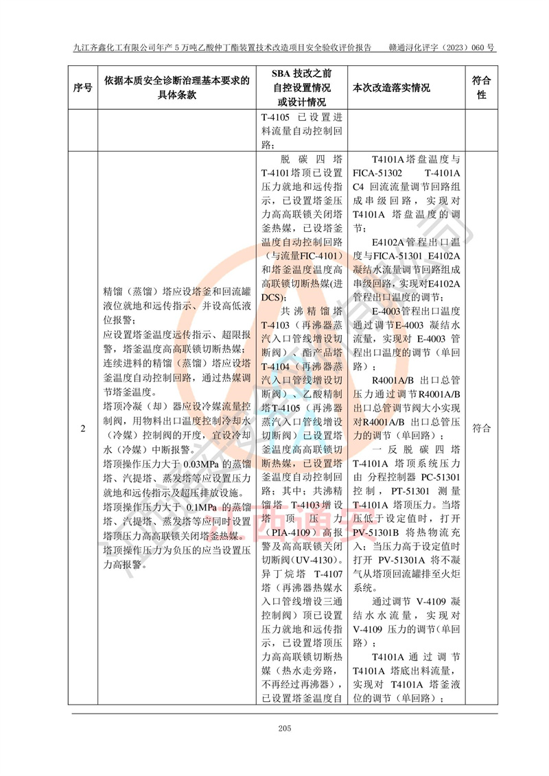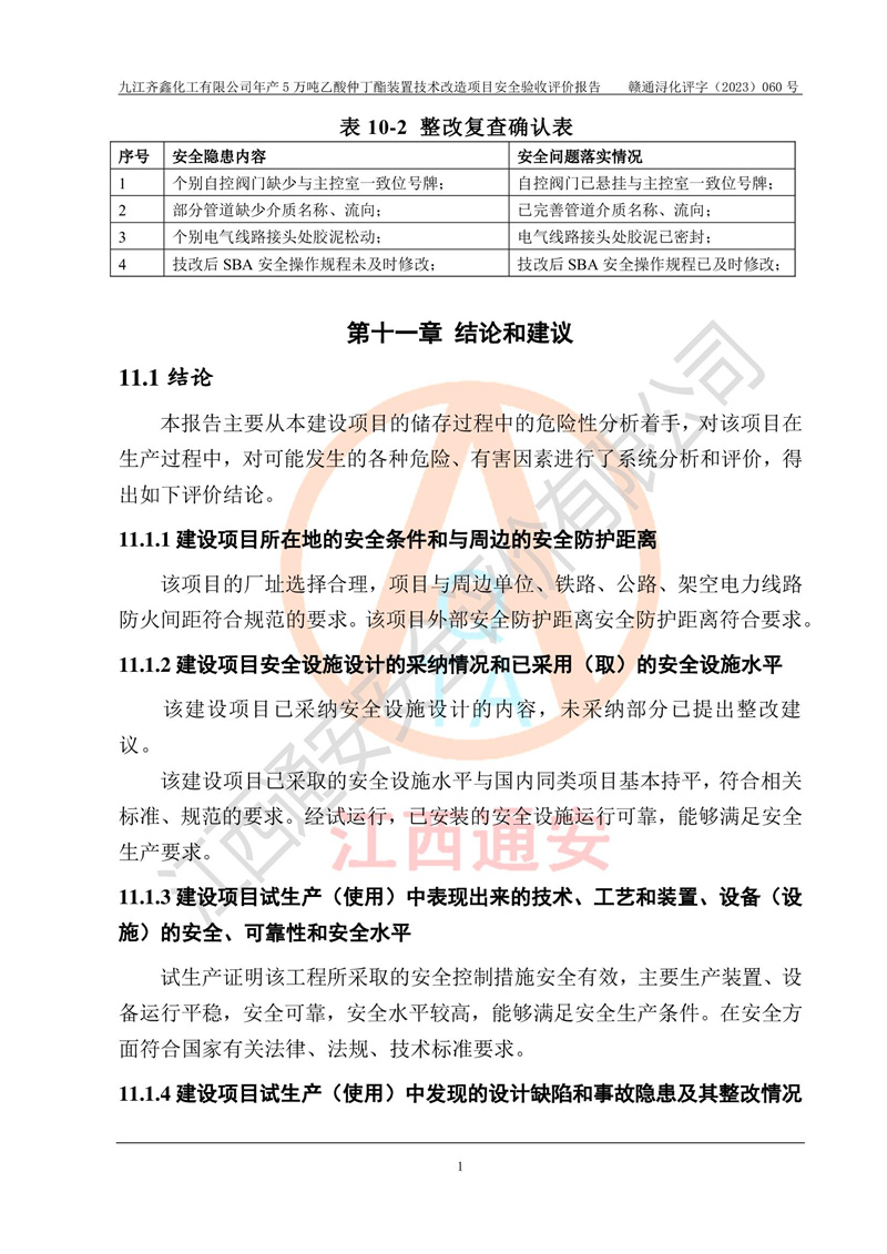 評(píng)價(jià)報(bào)告名稱 | 九江齊鑫化工有限公司年產(chǎn)5萬噸乙酸仲丁酯裝置技術(shù)改造項(xiàng)目安全驗(yàn)收評(píng)價(jià)報(bào)告 | ||||