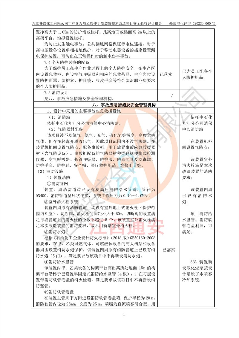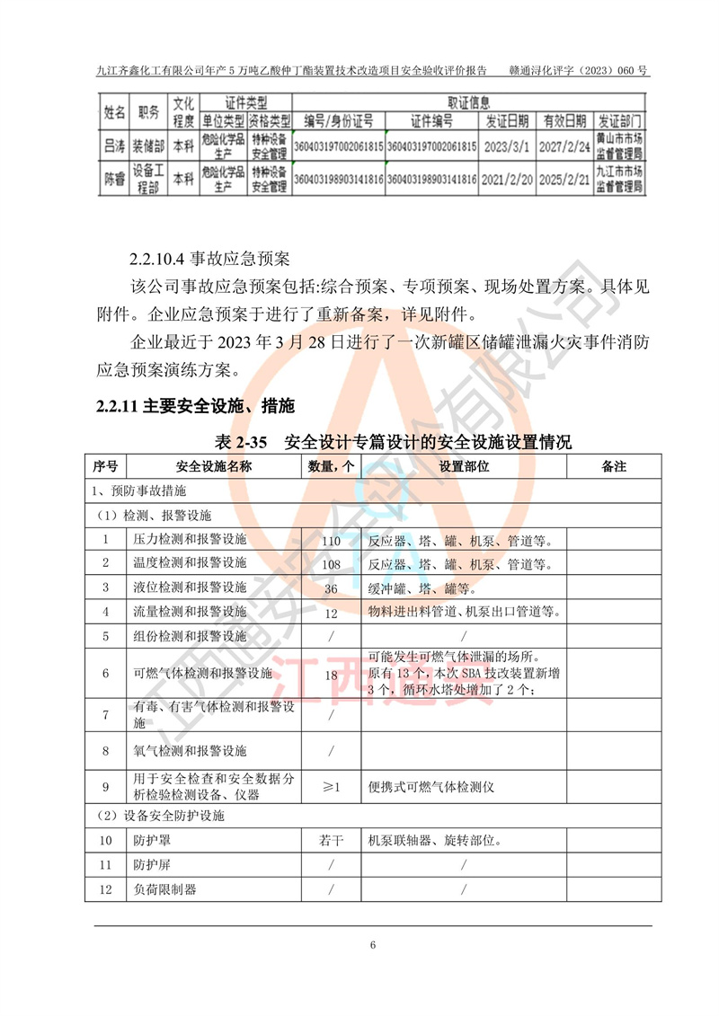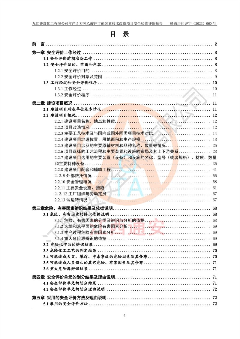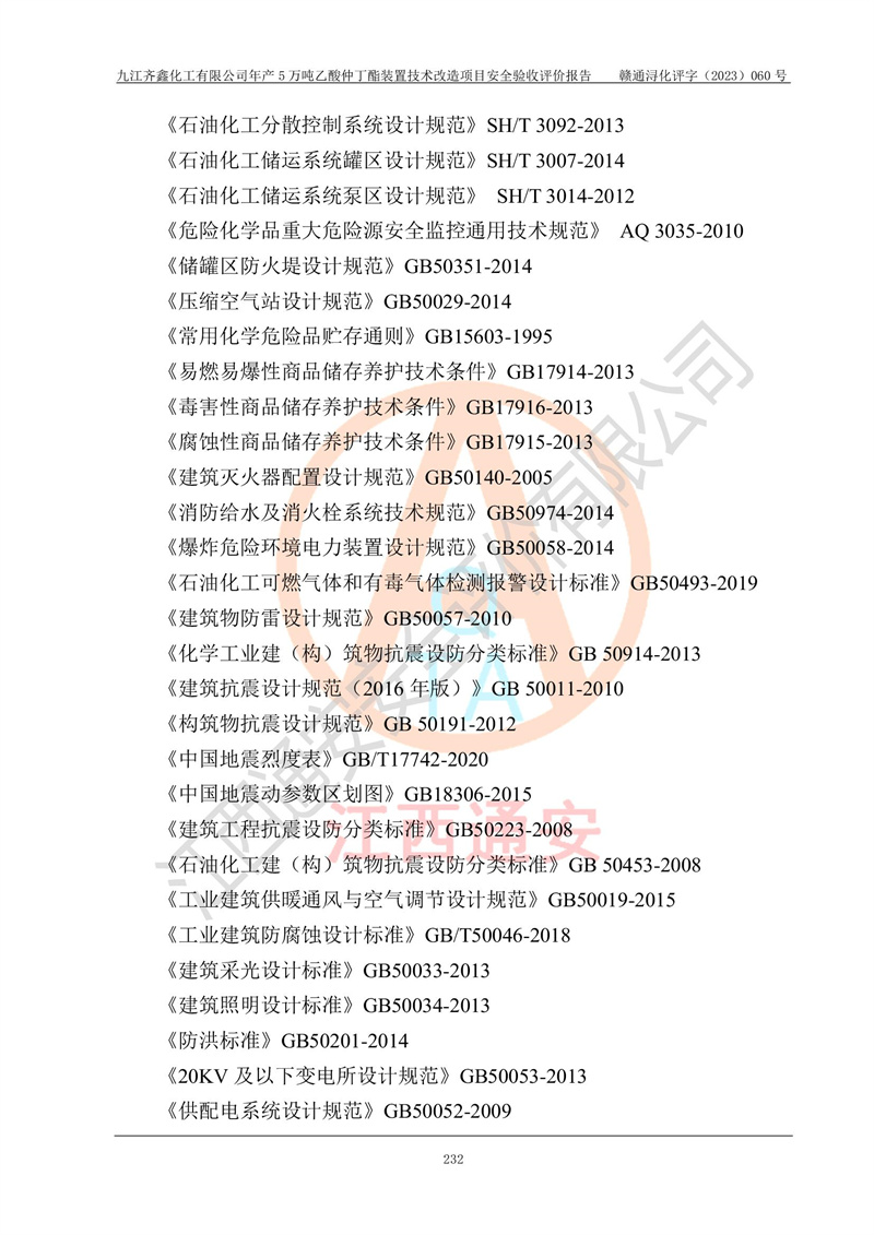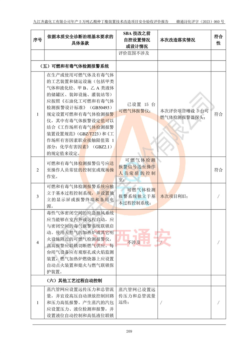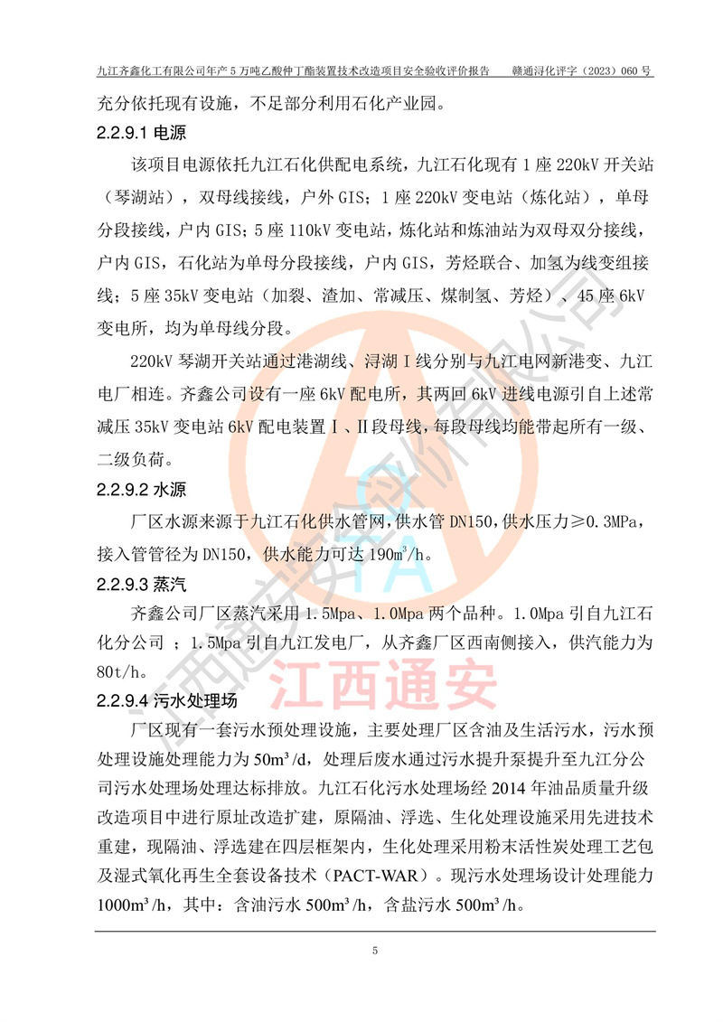 評(píng)價(jià)報(bào)告名稱 | 九江齊鑫化工有限公司年產(chǎn)5萬噸乙酸仲丁酯裝置技術(shù)改造項(xiàng)目安全驗(yàn)收評(píng)價(jià)報(bào)告 | ||||