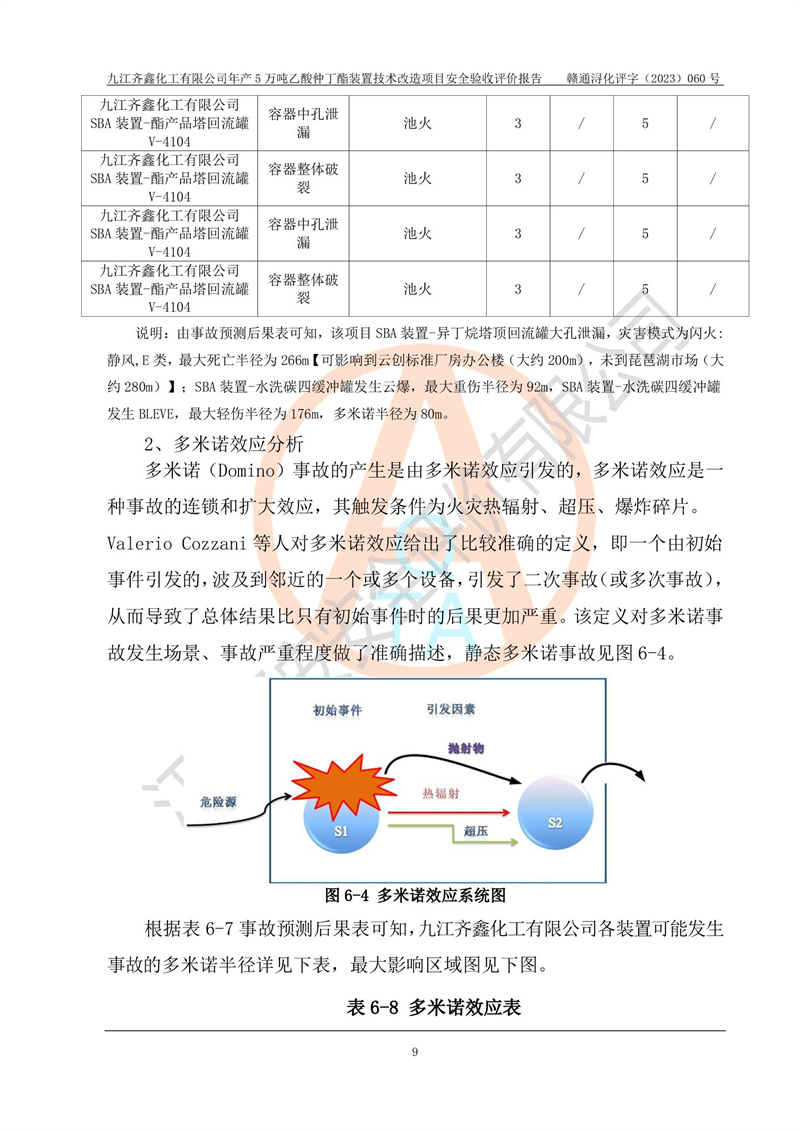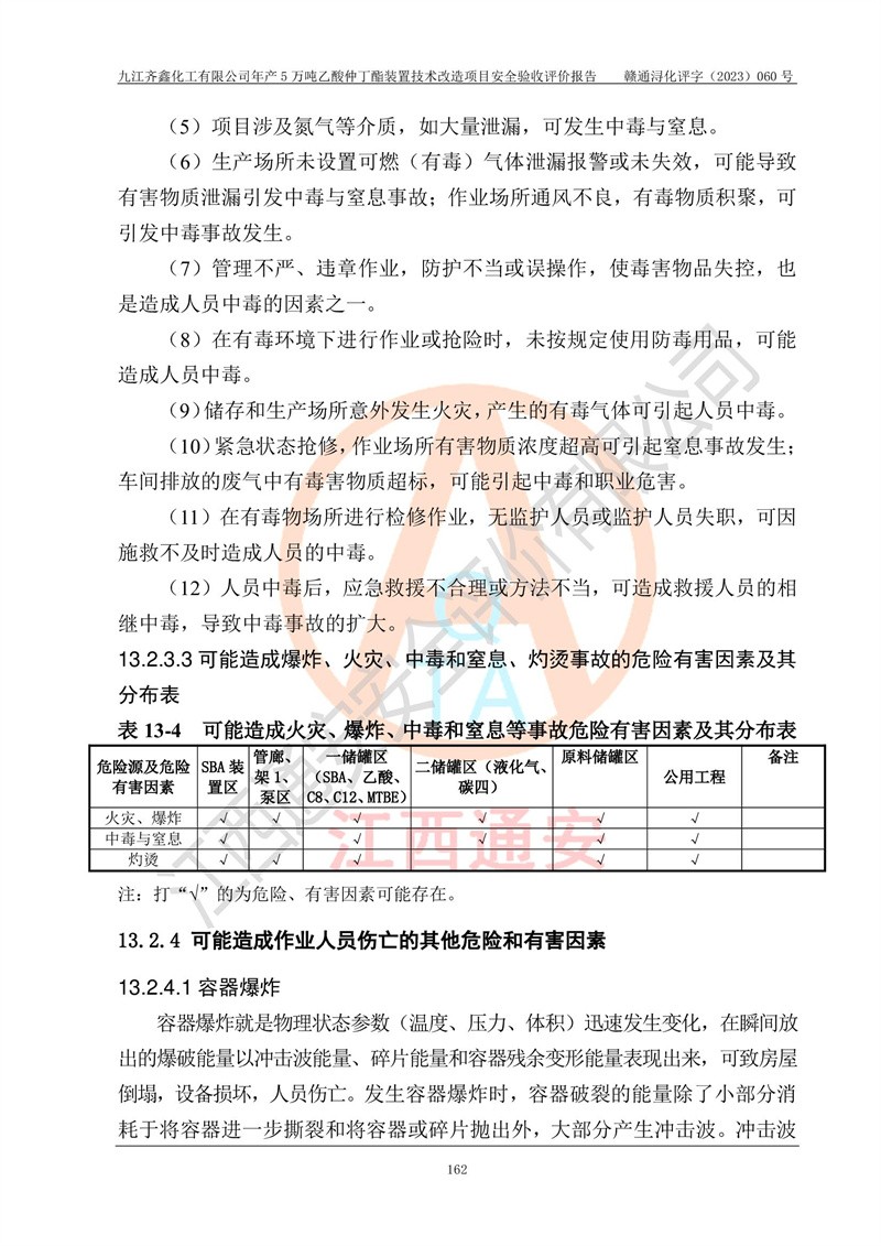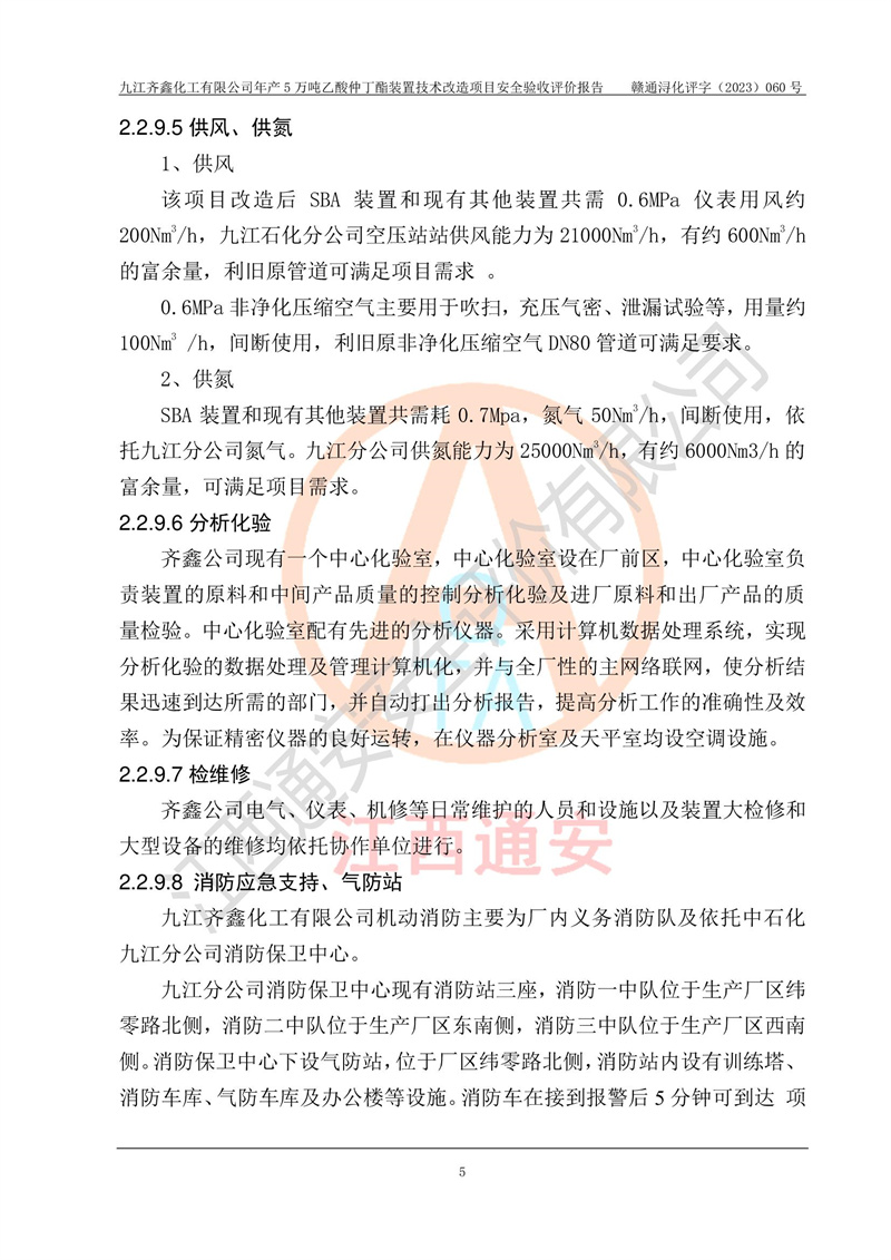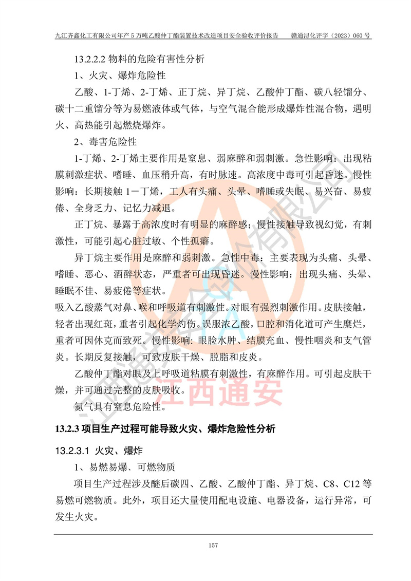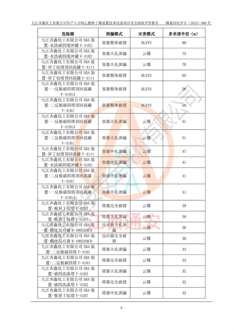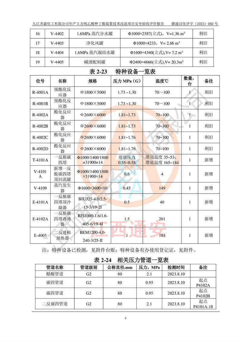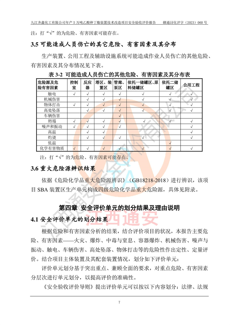 評(píng)價(jià)報(bào)告名稱 | 九江齊鑫化工有限公司年產(chǎn)5萬噸乙酸仲丁酯裝置技術(shù)改造項(xiàng)目安全驗(yàn)收評(píng)價(jià)報(bào)告 | ||||