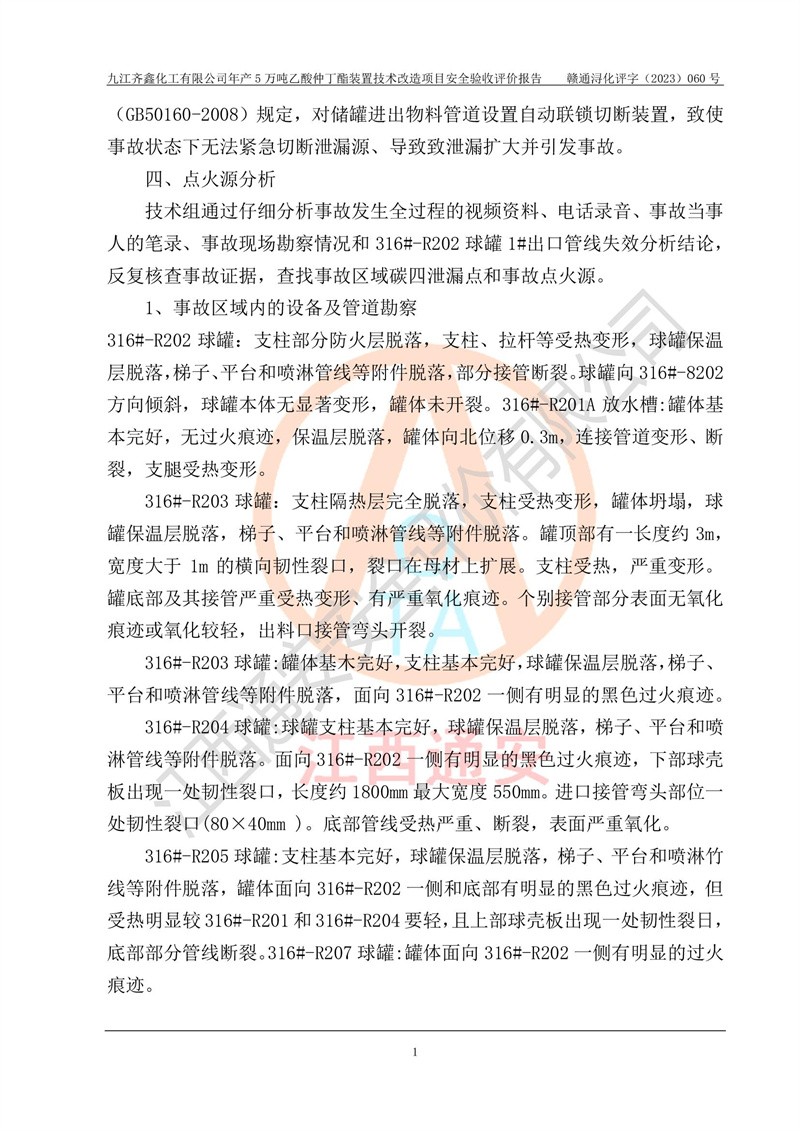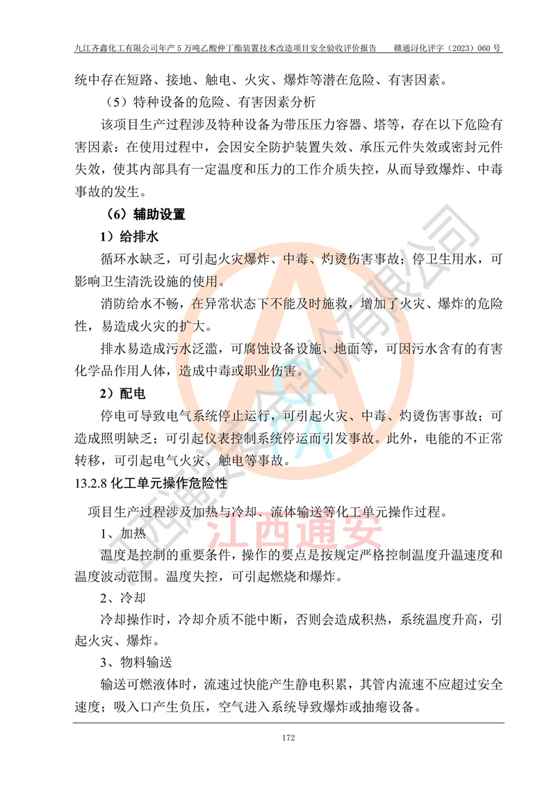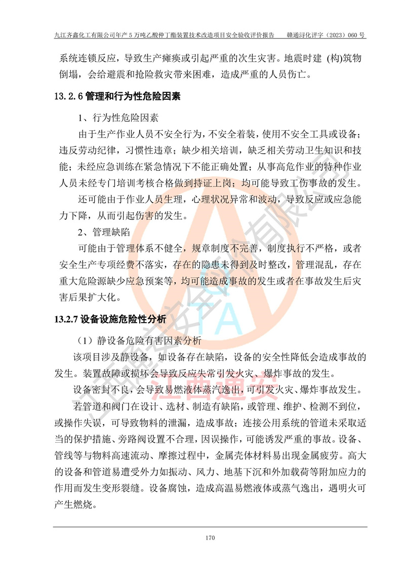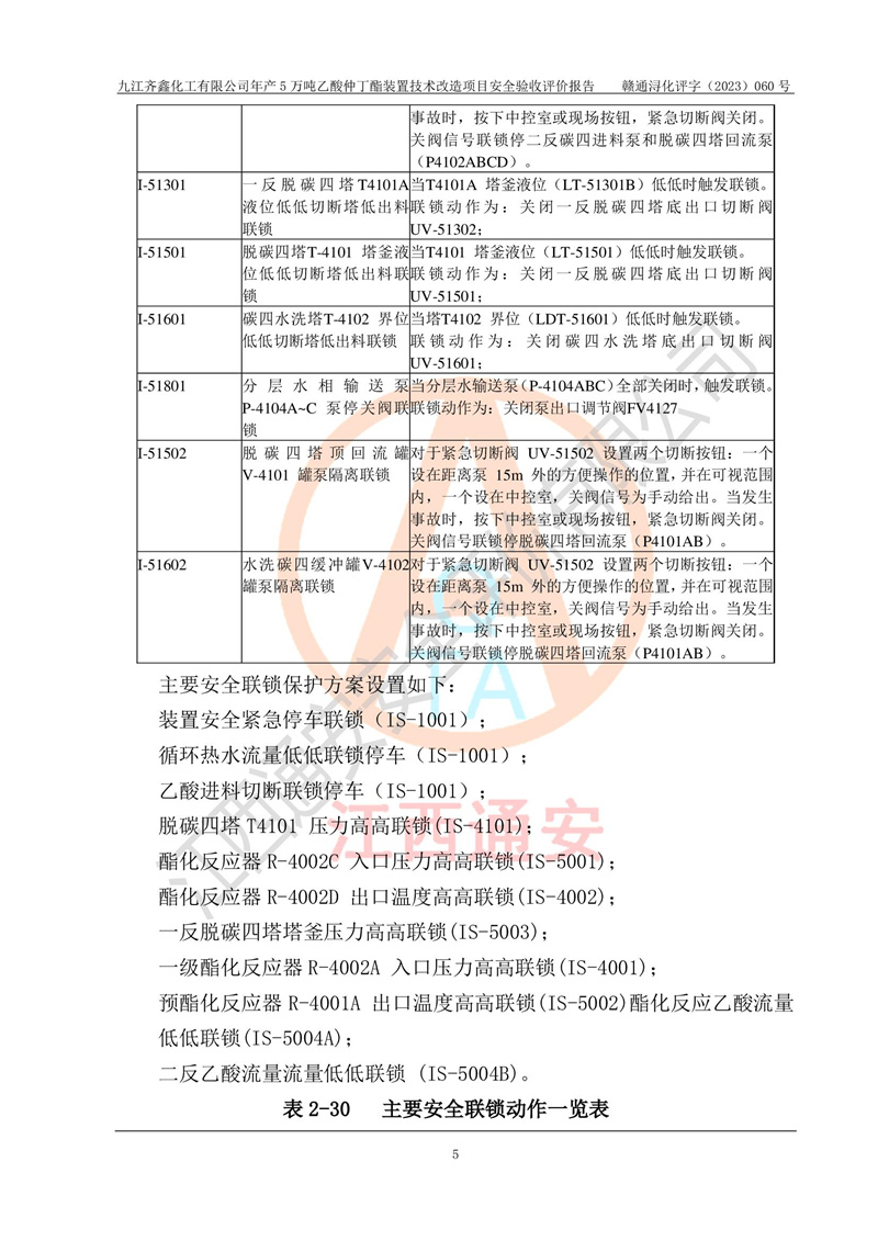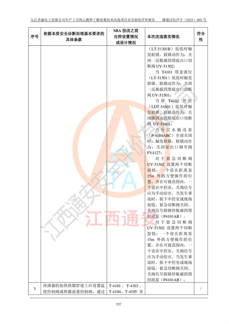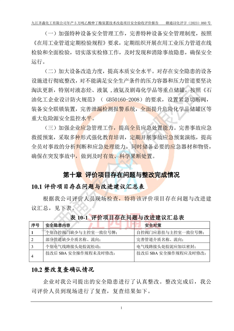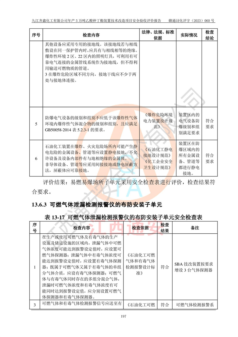 評(píng)價(jià)報(bào)告名稱 | 九江齊鑫化工有限公司年產(chǎn)5萬噸乙酸仲丁酯裝置技術(shù)改造項(xiàng)目安全驗(yàn)收評(píng)價(jià)報(bào)告 | ||||