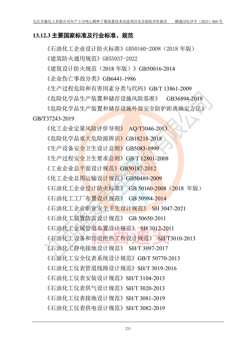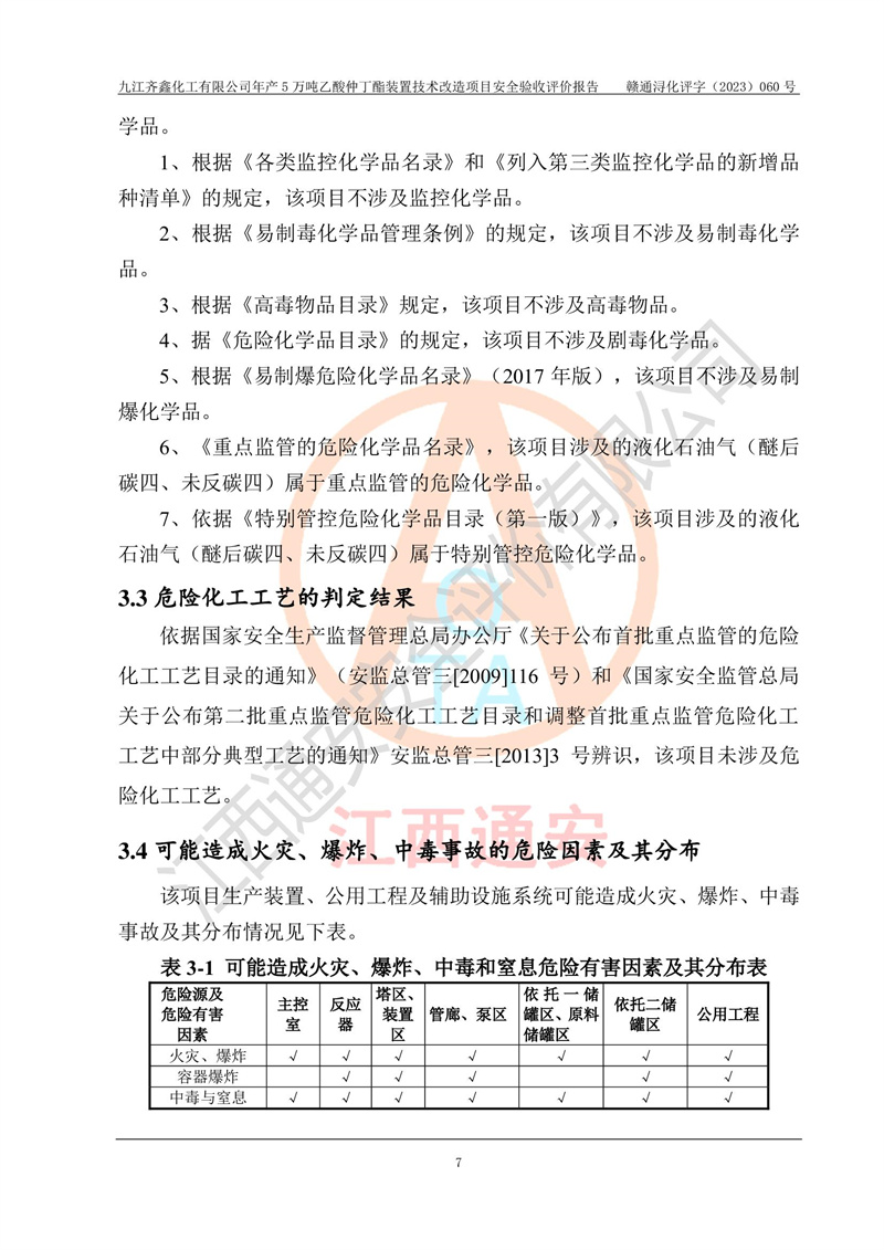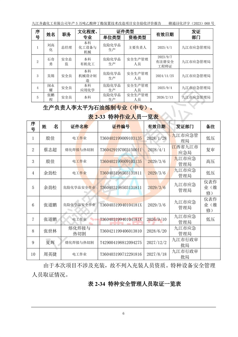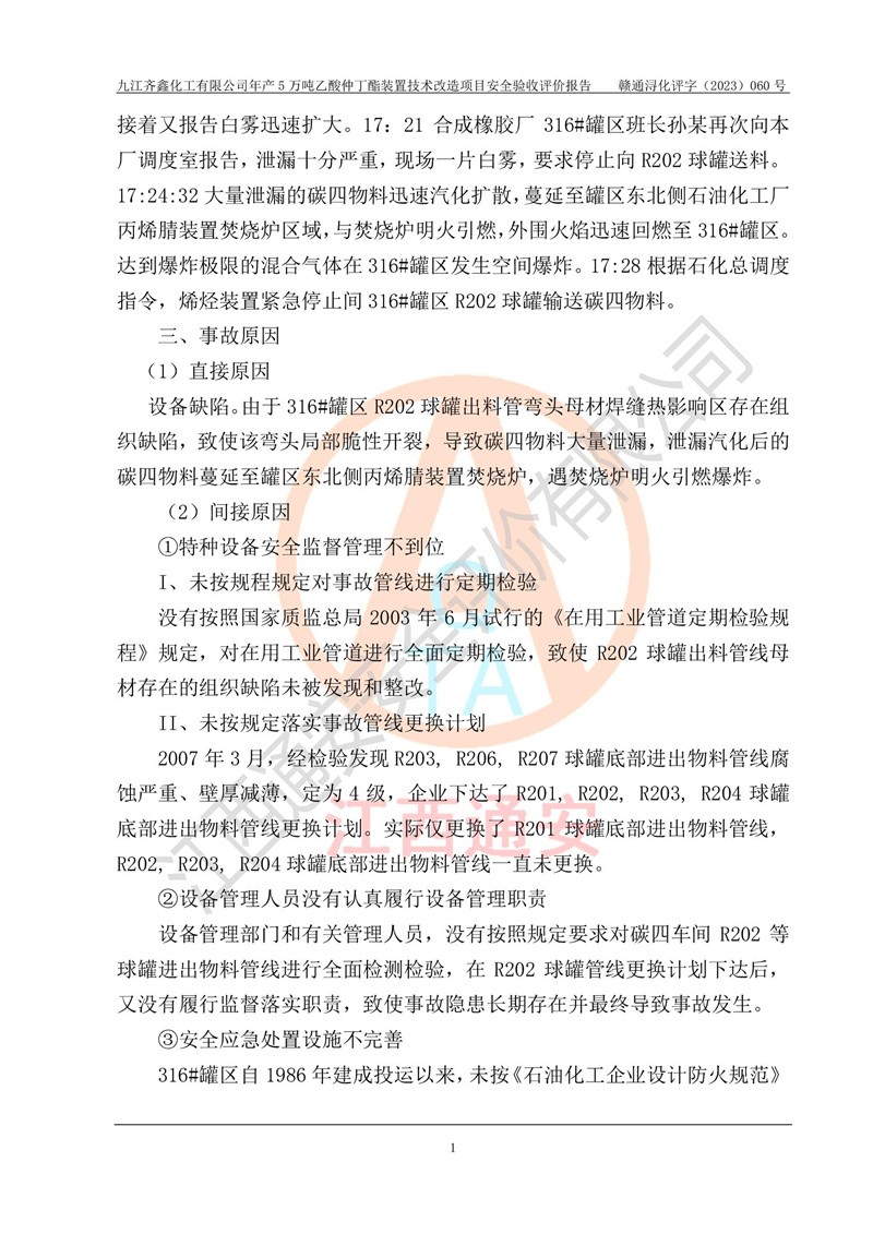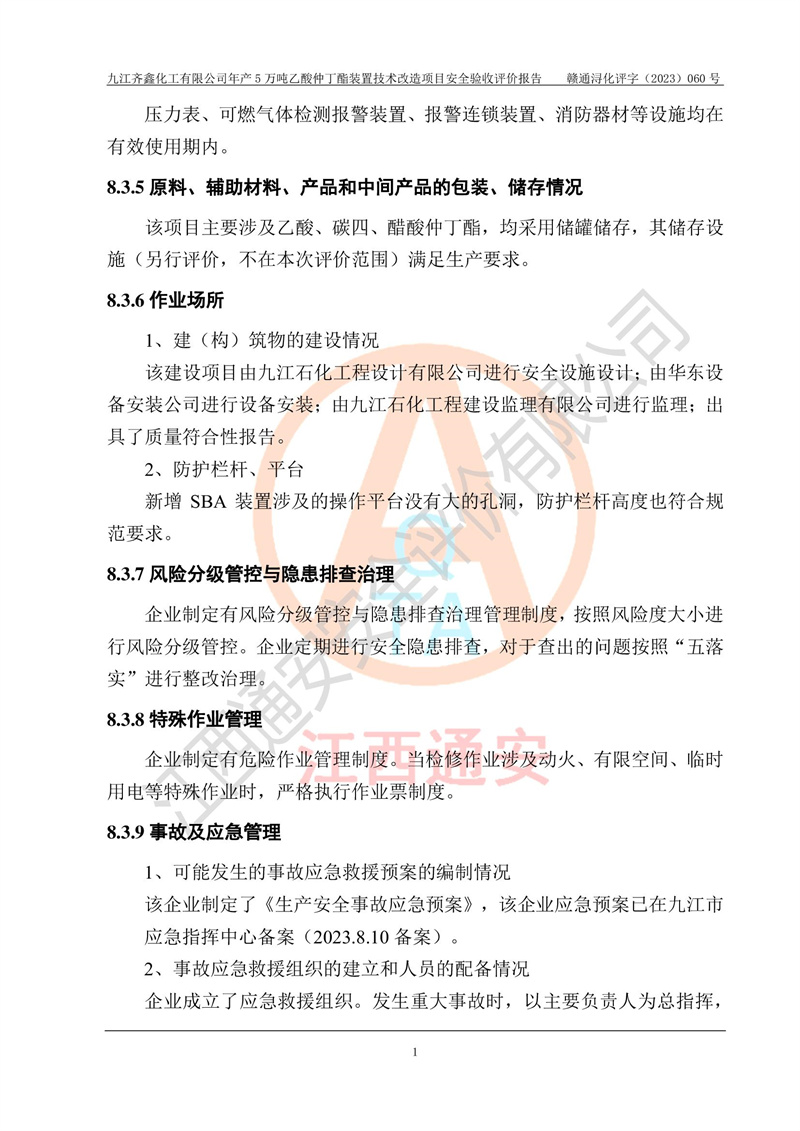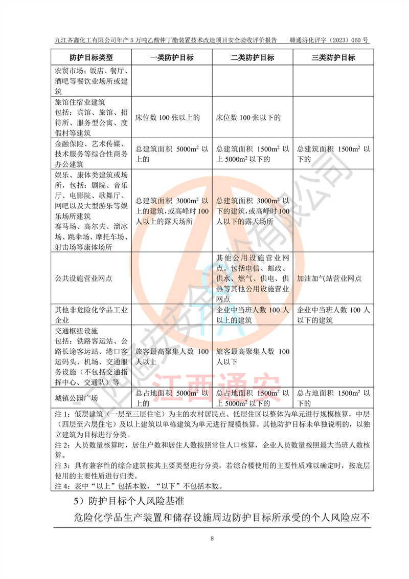 評(píng)價(jià)報(bào)告名稱 | 九江齊鑫化工有限公司年產(chǎn)5萬噸乙酸仲丁酯裝置技術(shù)改造項(xiàng)目安全驗(yàn)收評(píng)價(jià)報(bào)告 | ||||