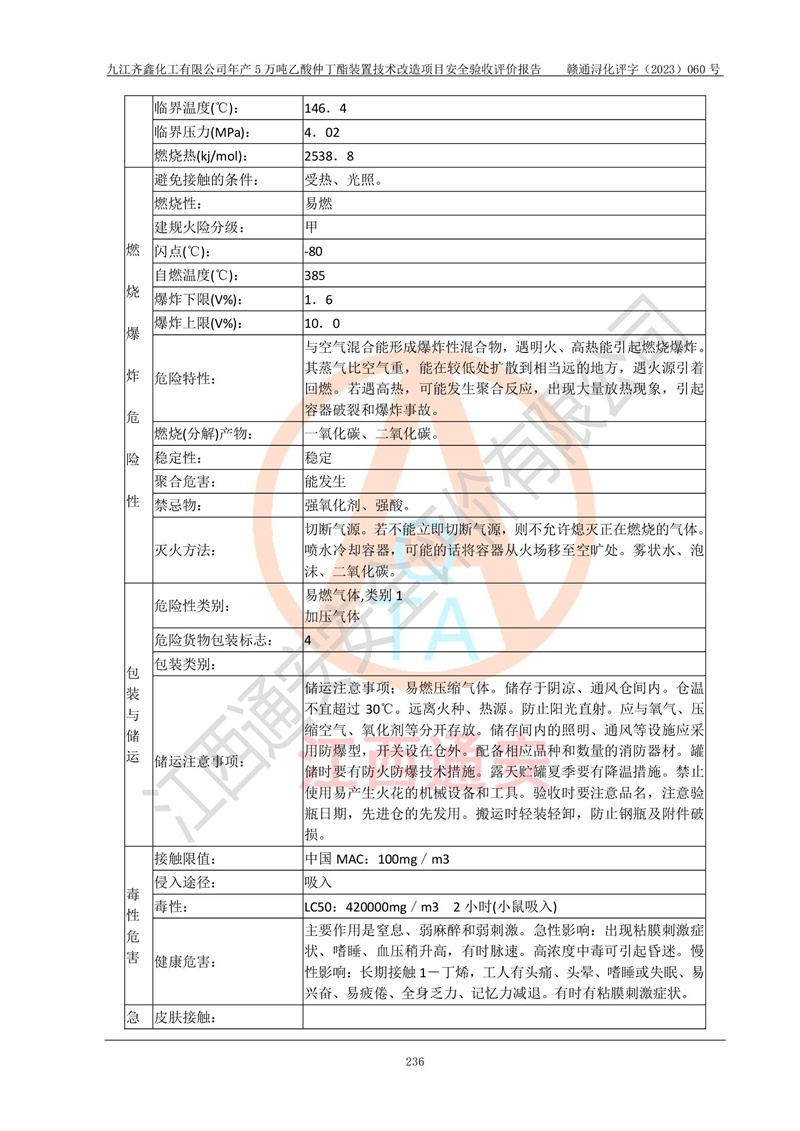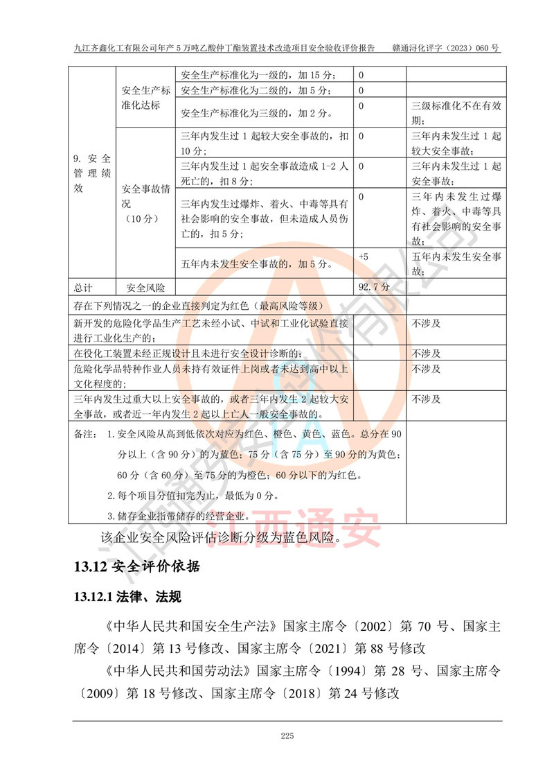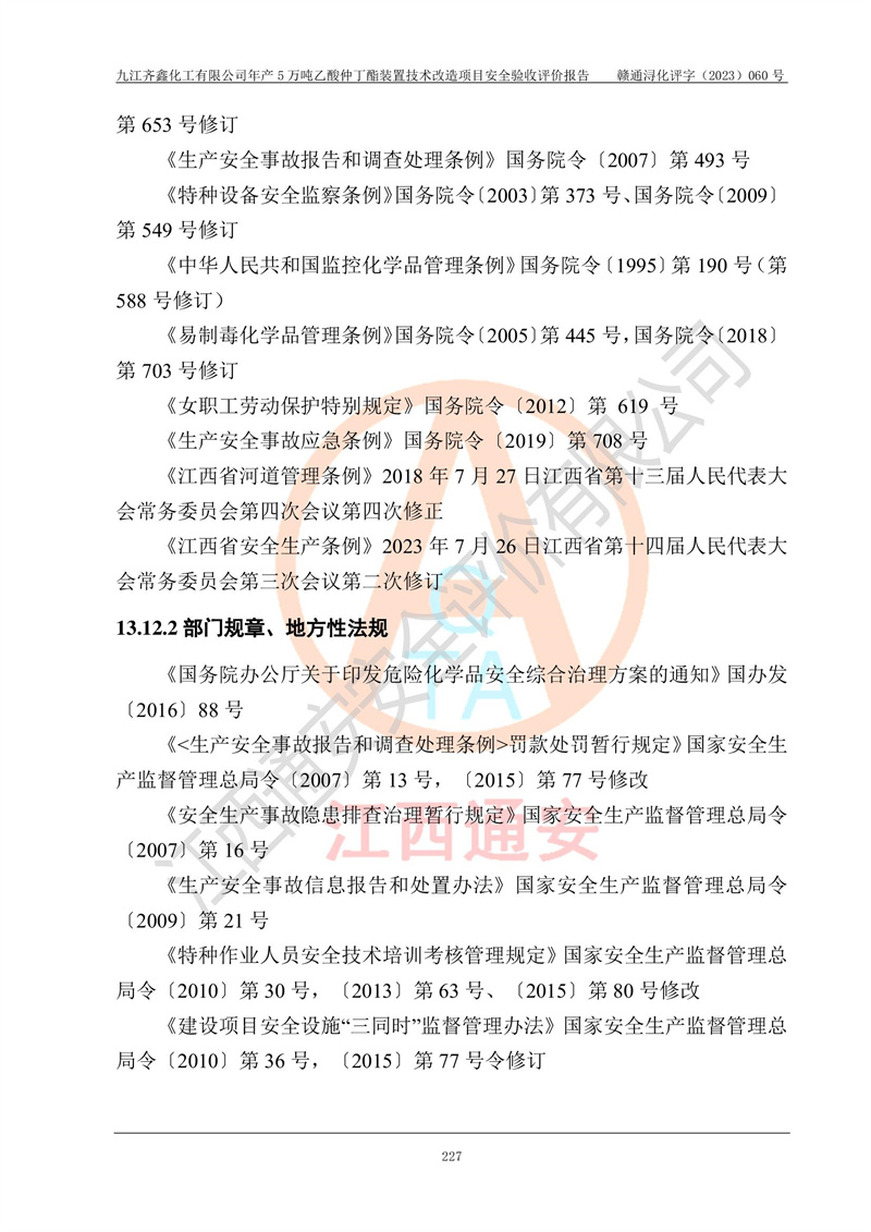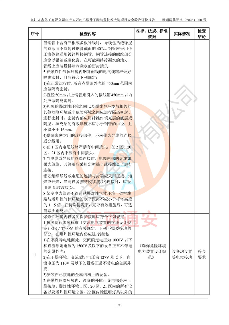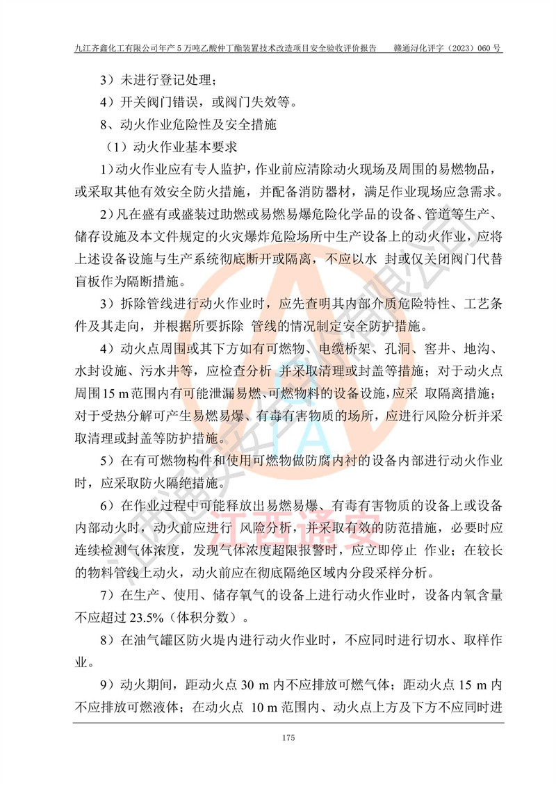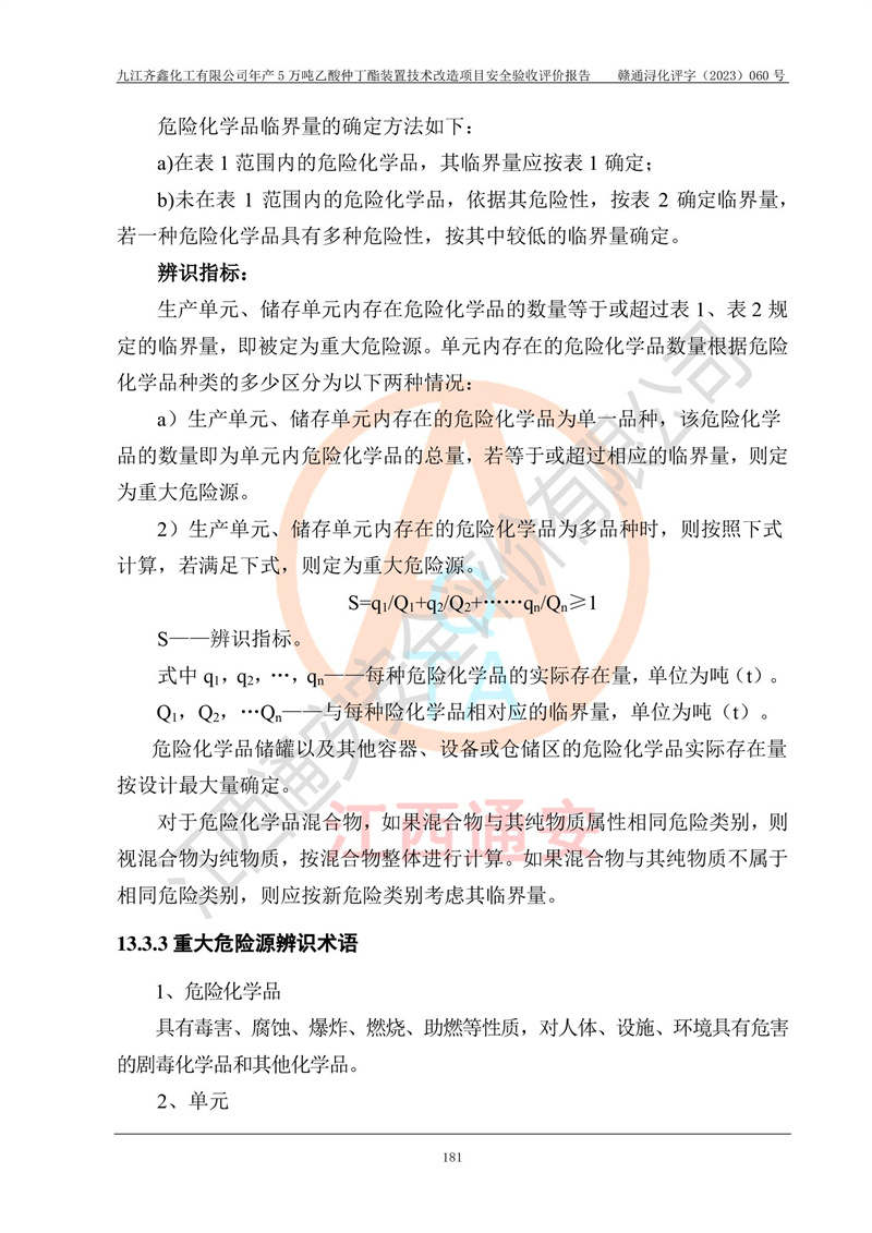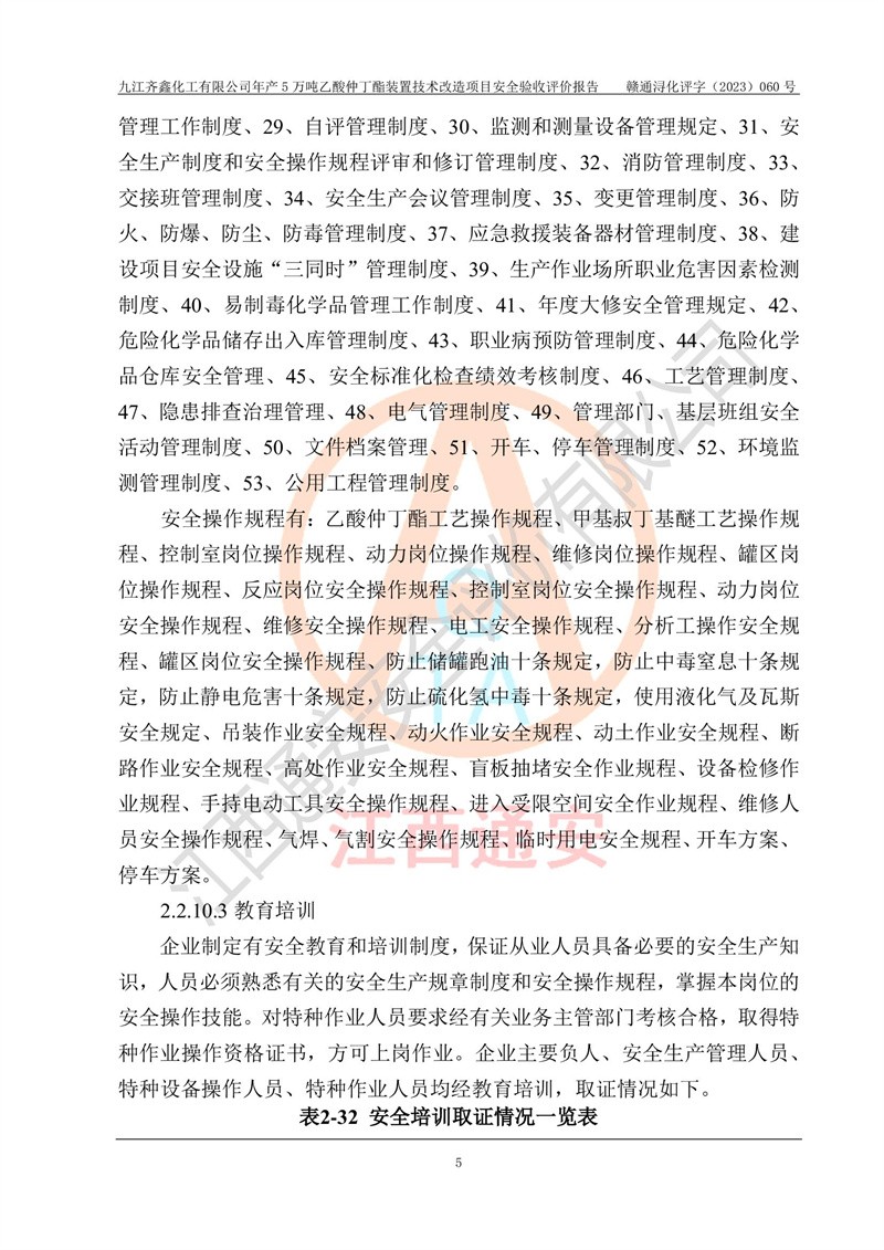 評(píng)價(jià)報(bào)告名稱 | 九江齊鑫化工有限公司年產(chǎn)5萬噸乙酸仲丁酯裝置技術(shù)改造項(xiàng)目安全驗(yàn)收評(píng)價(jià)報(bào)告 | ||||
