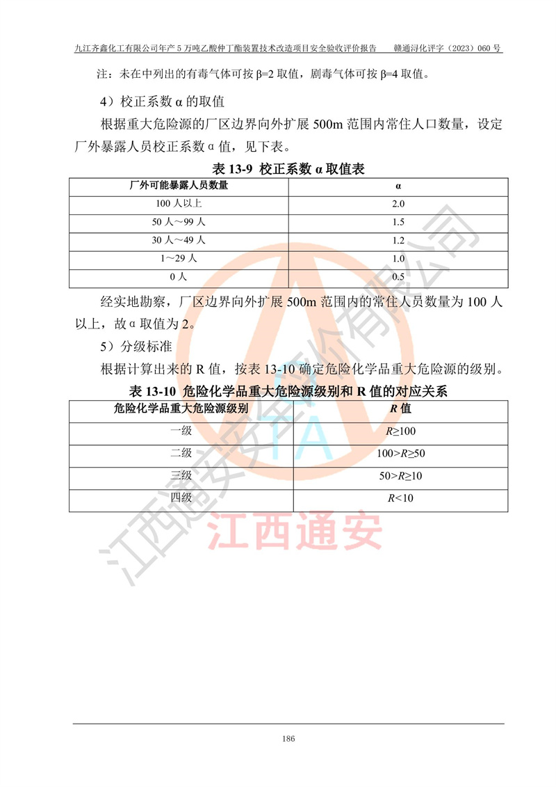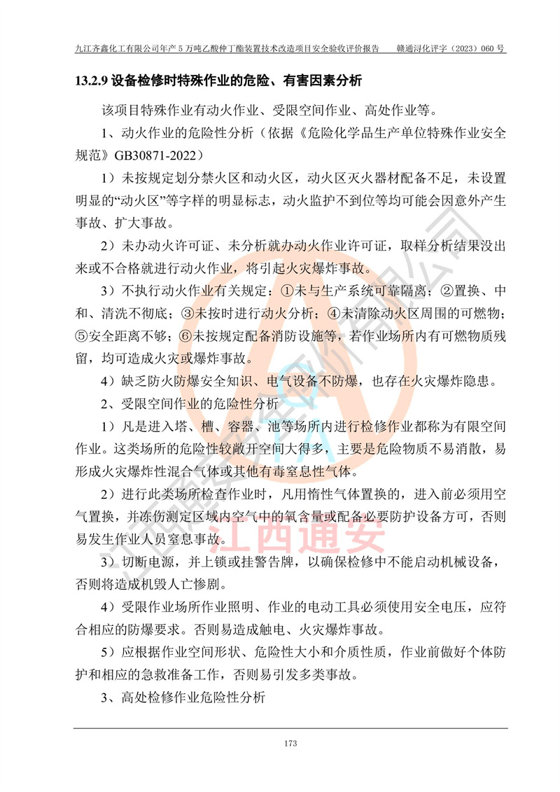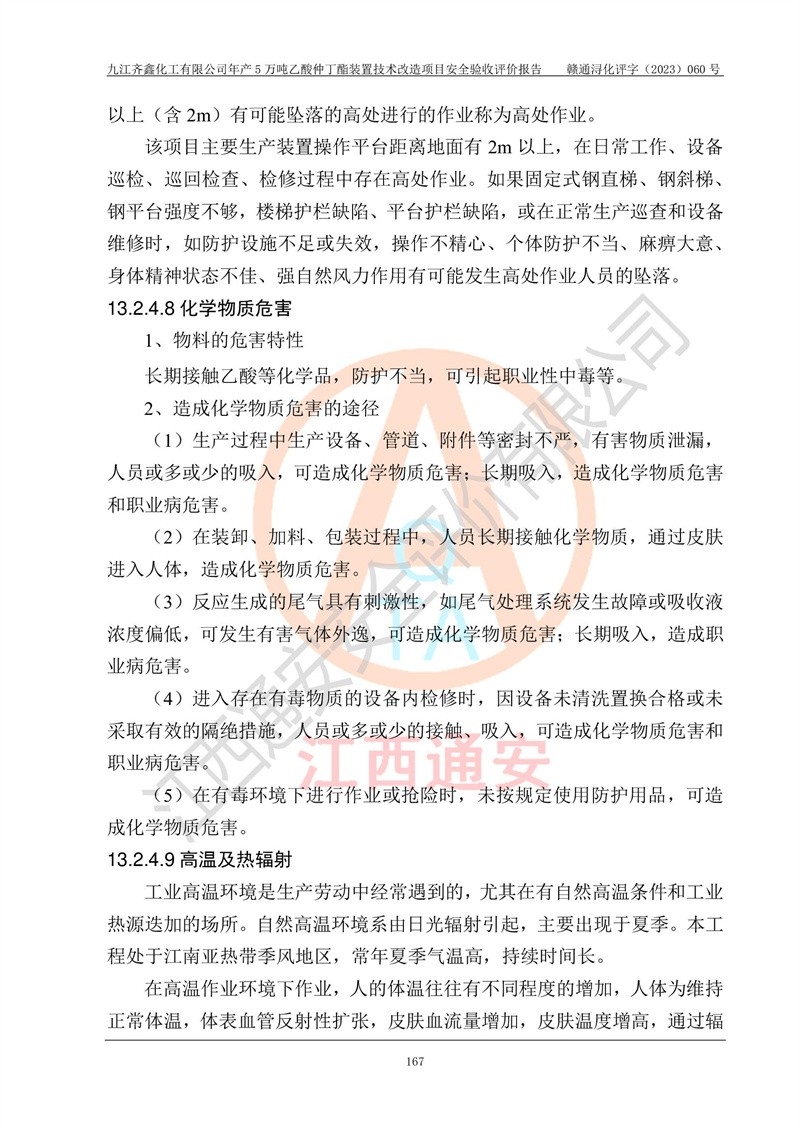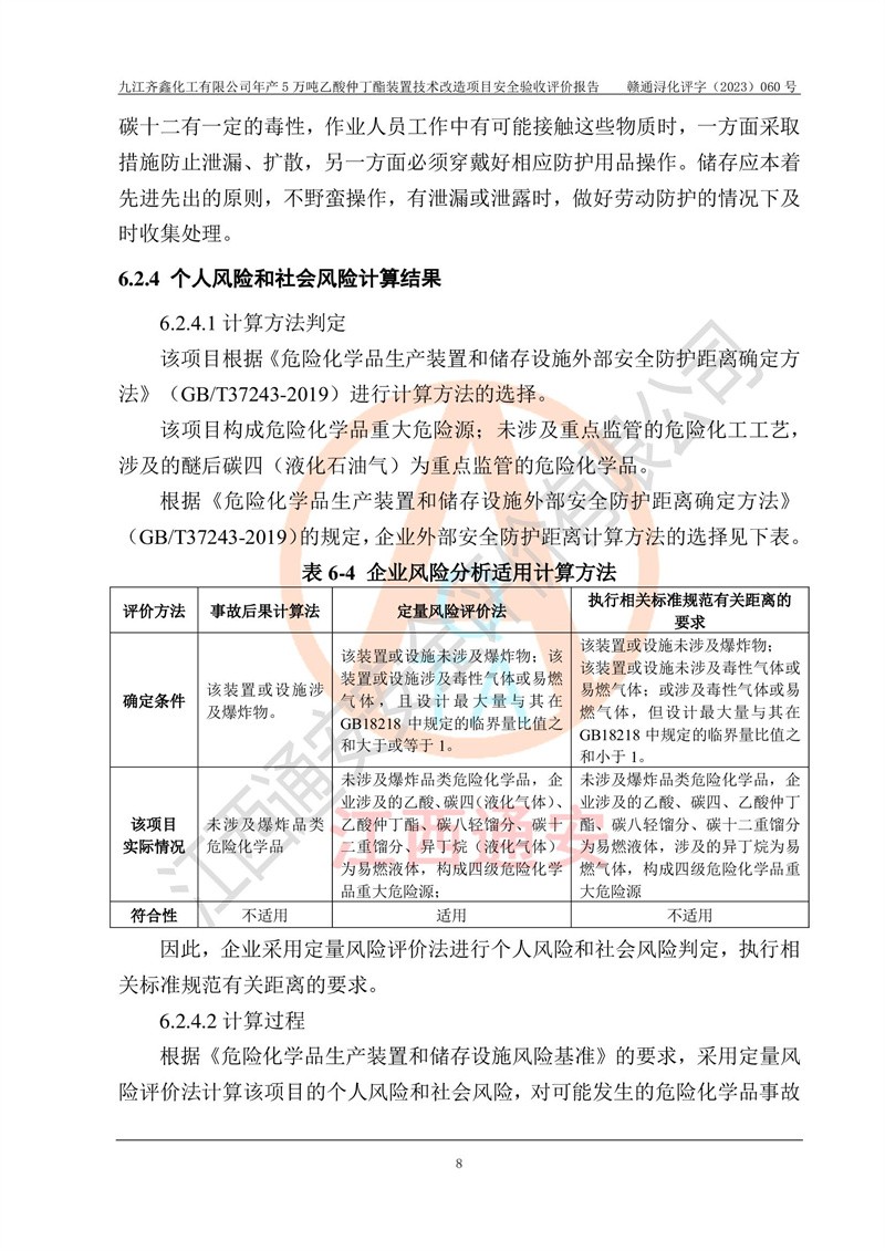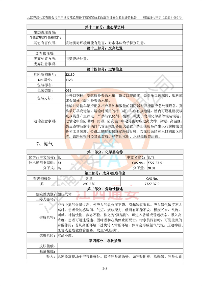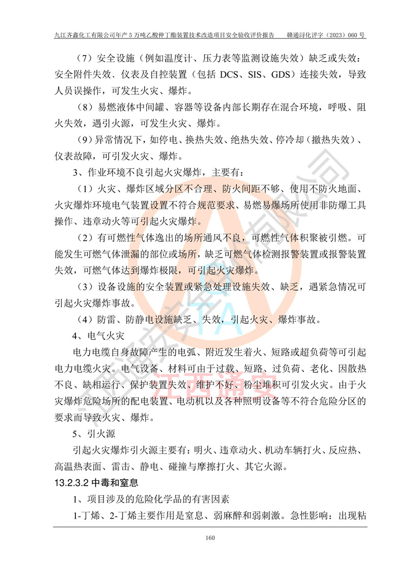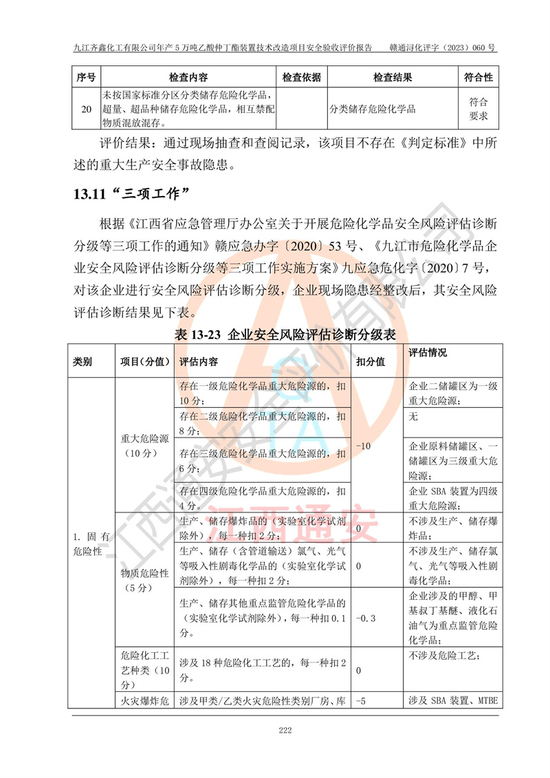 評(píng)價(jià)報(bào)告名稱 | 九江齊鑫化工有限公司年產(chǎn)5萬噸乙酸仲丁酯裝置技術(shù)改造項(xiàng)目安全驗(yàn)收評(píng)價(jià)報(bào)告 | ||||