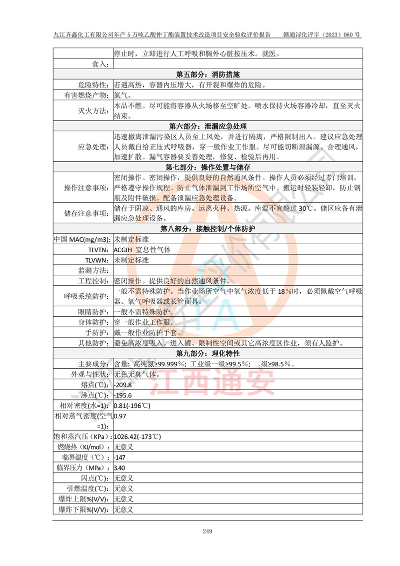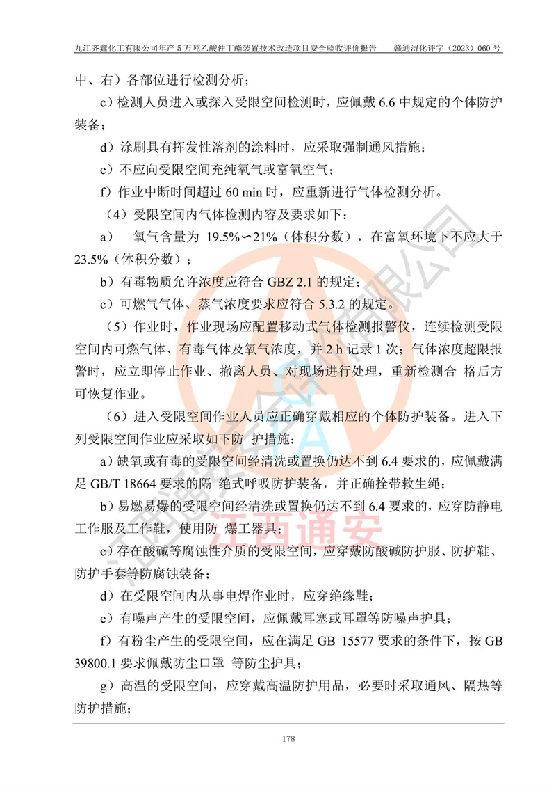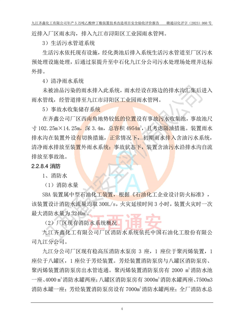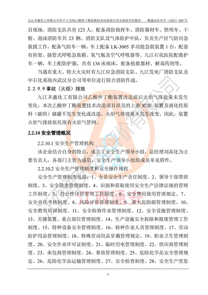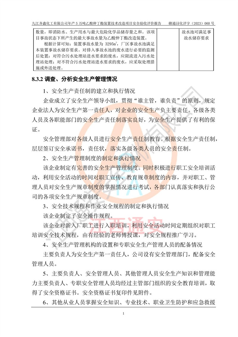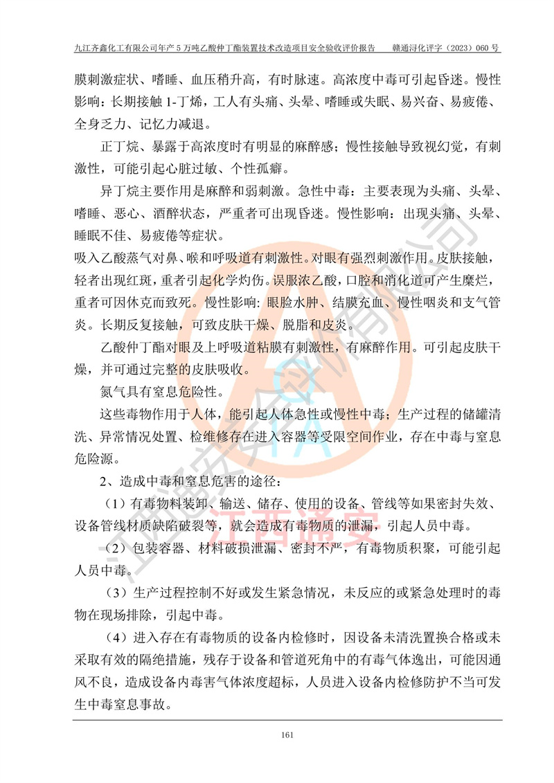 評(píng)價(jià)報(bào)告名稱 | 九江齊鑫化工有限公司年產(chǎn)5萬噸乙酸仲丁酯裝置技術(shù)改造項(xiàng)目安全驗(yàn)收評(píng)價(jià)報(bào)告 | ||||