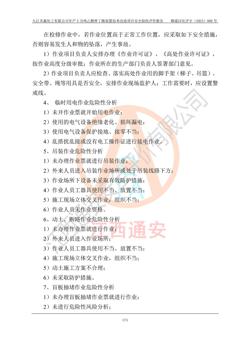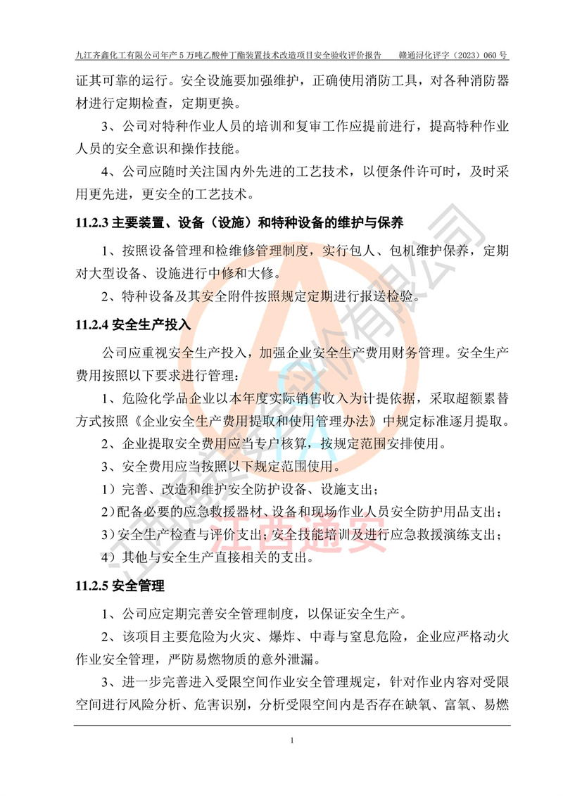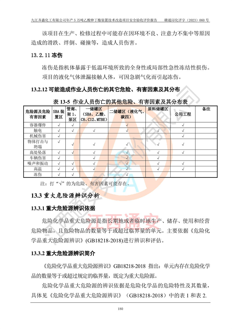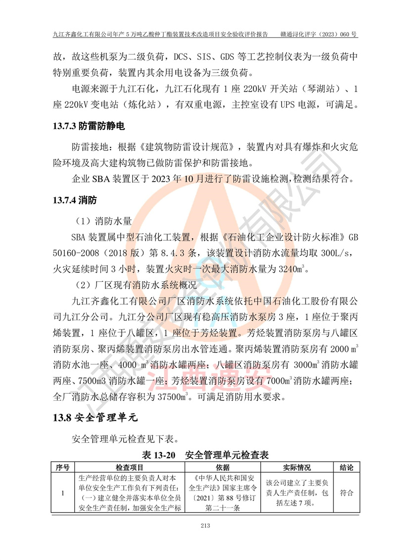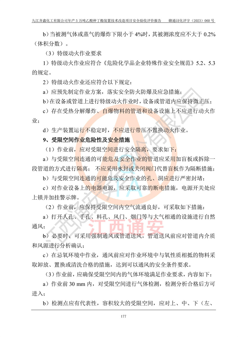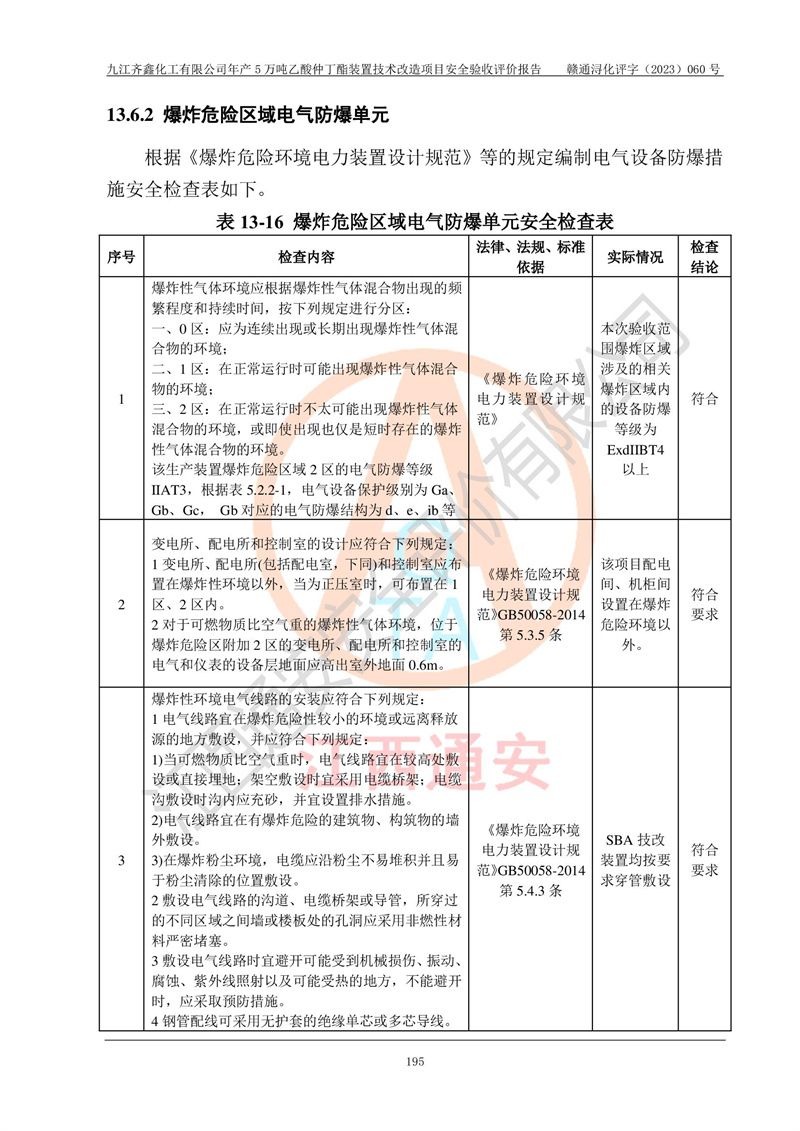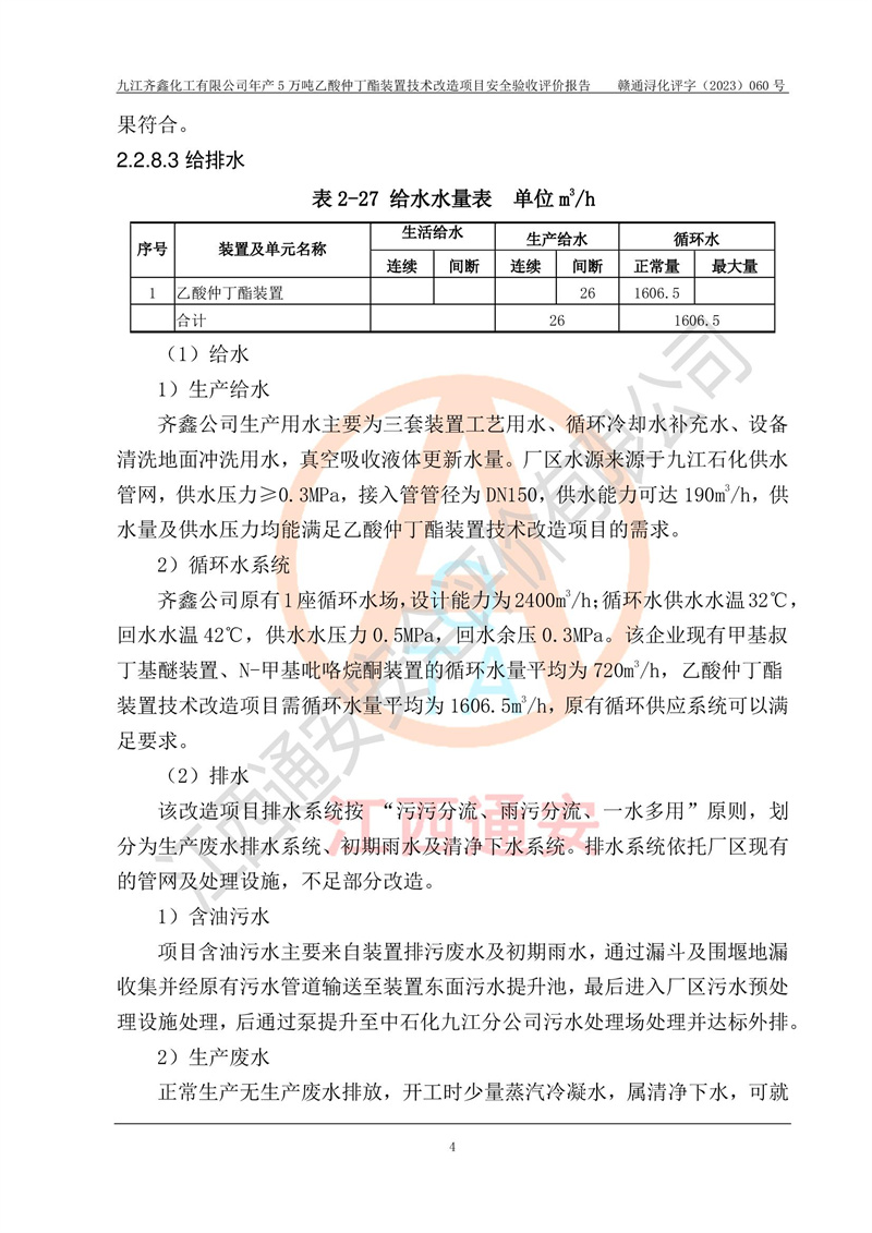 評(píng)價(jià)報(bào)告名稱 | 九江齊鑫化工有限公司年產(chǎn)5萬噸乙酸仲丁酯裝置技術(shù)改造項(xiàng)目安全驗(yàn)收評(píng)價(jià)報(bào)告 | ||||