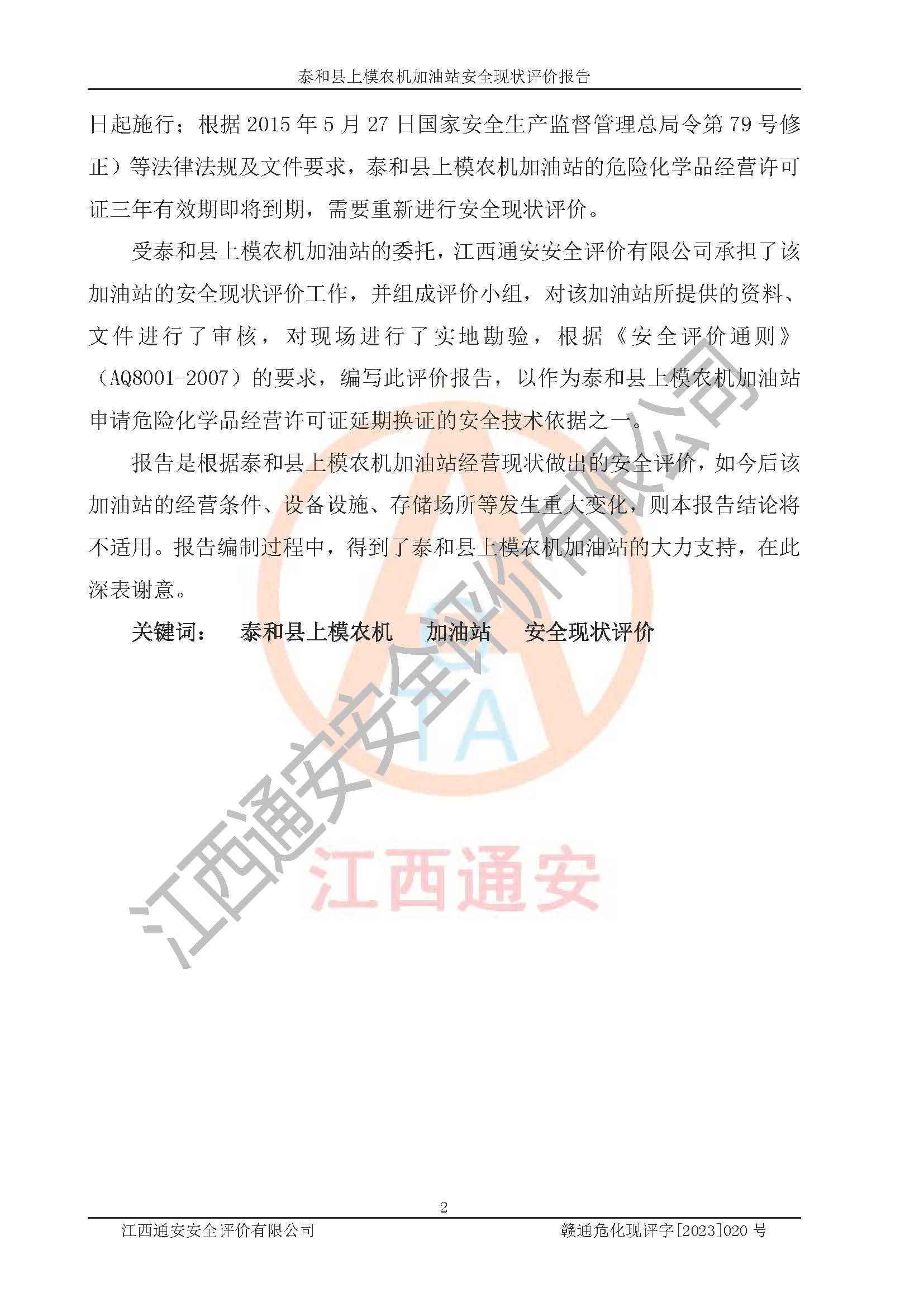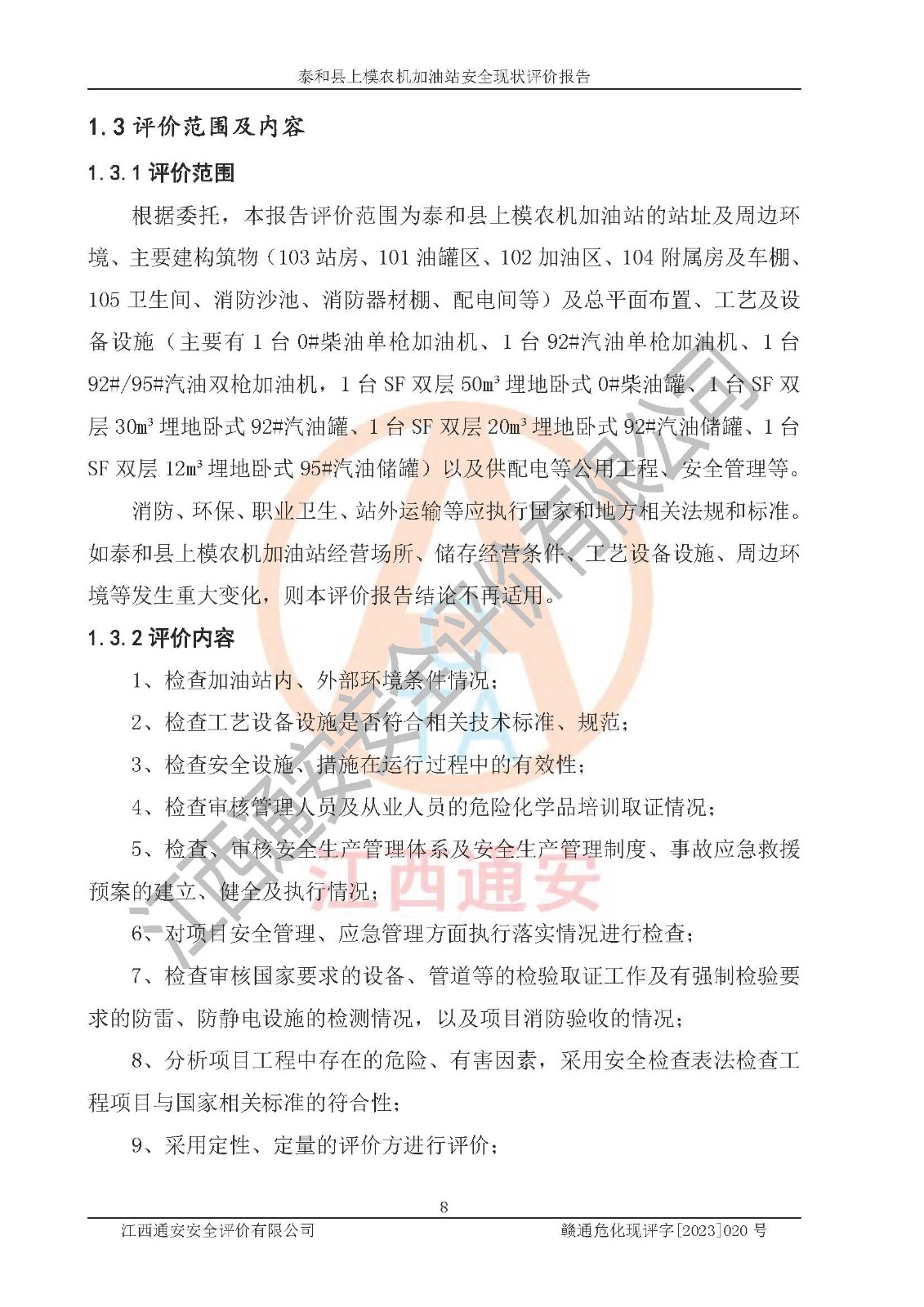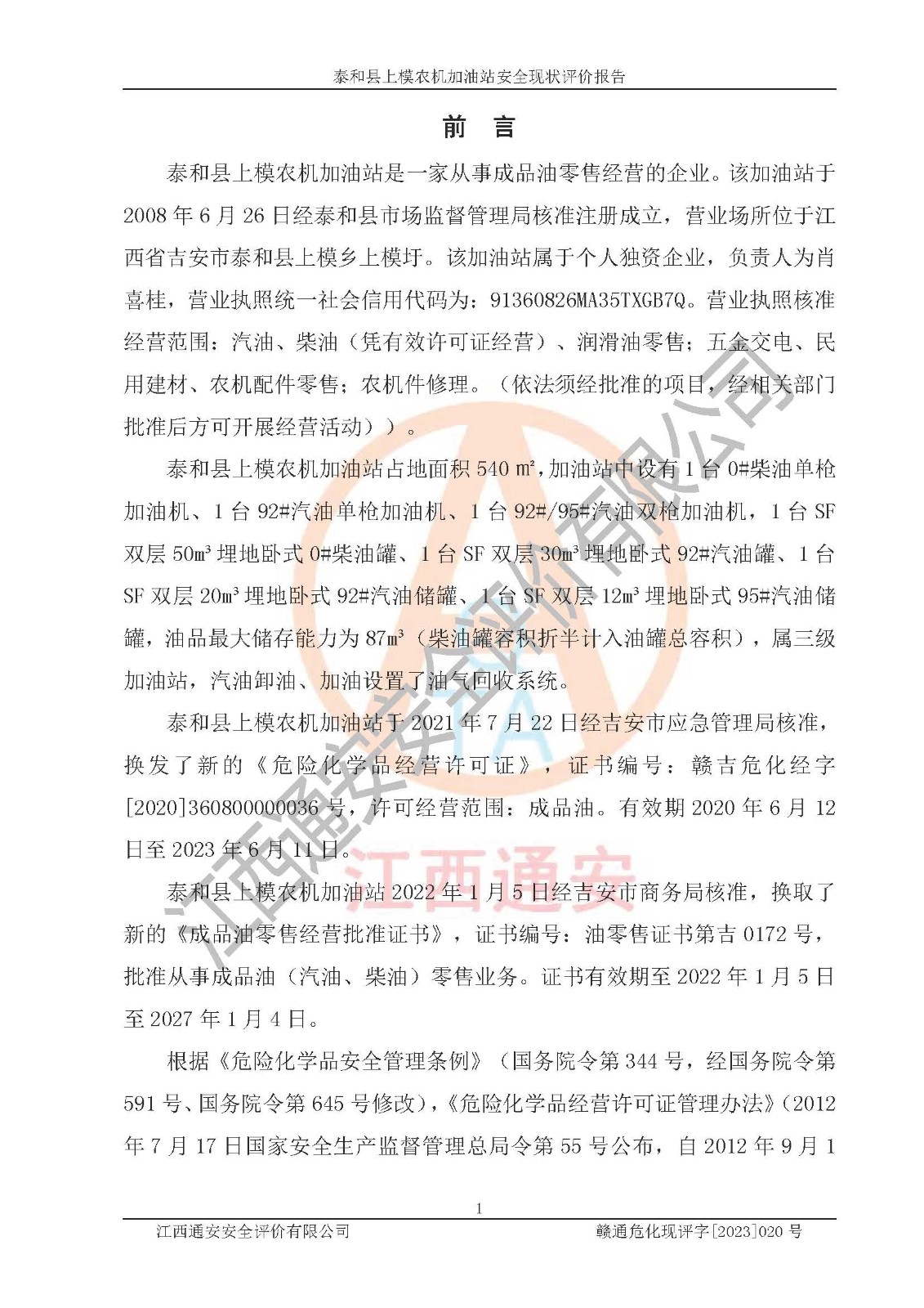 評(píng)價(jià)報(bào)告名稱(chēng) | 泰和縣上模農(nóng)機(jī)加油站安全現(xiàn)狀評(píng)價(jià)報(bào)告 | |||