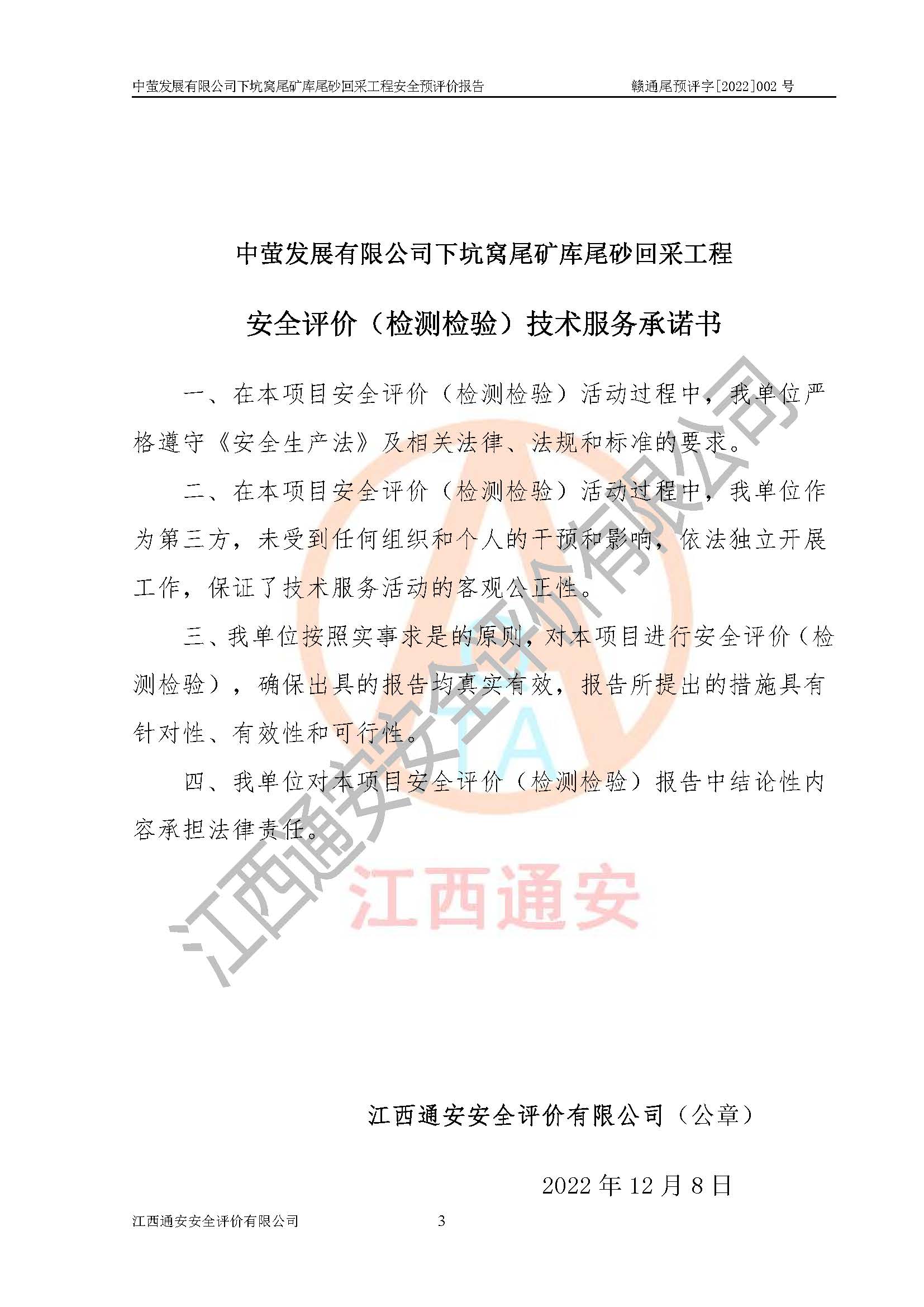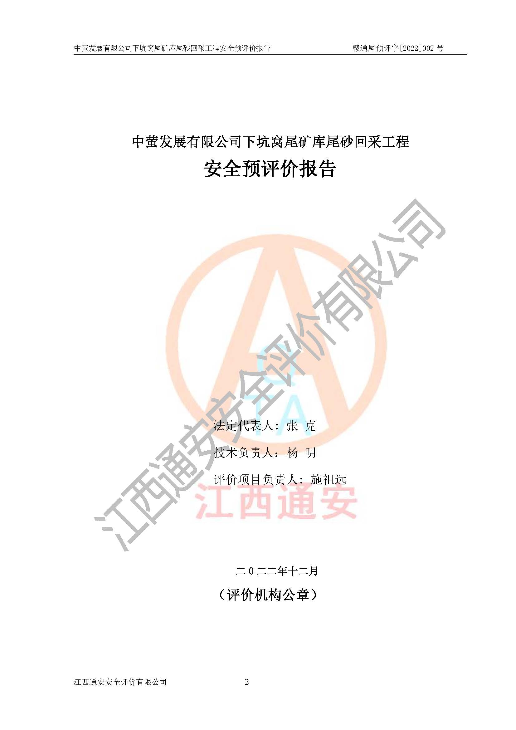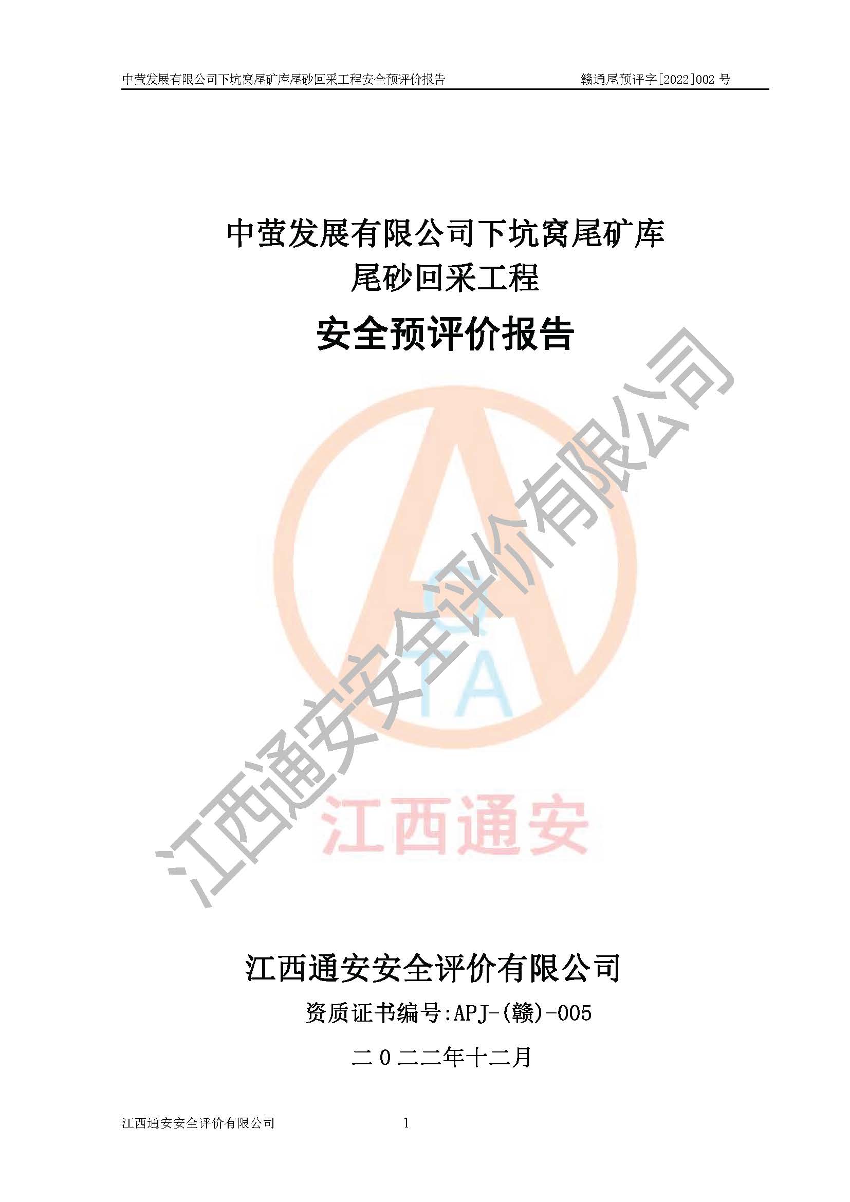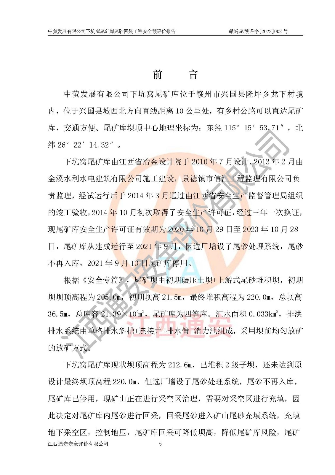 評價報告名稱 | 中螢發(fā)展有限公司下坑窩尾礦庫尾砂回采工程安全預(yù)評價報告 | |||