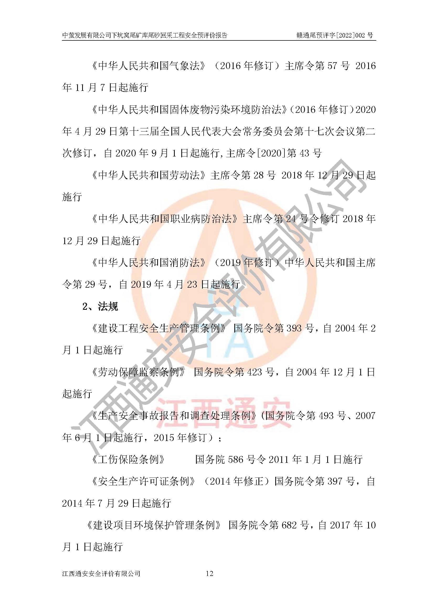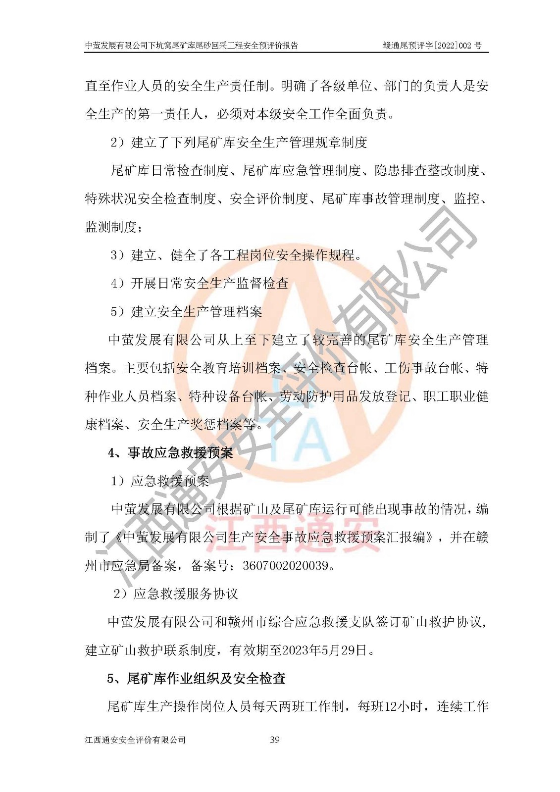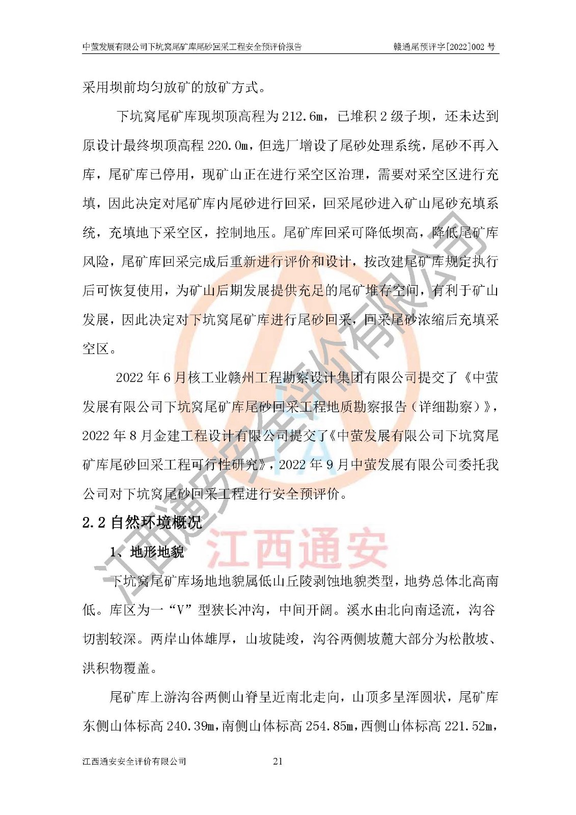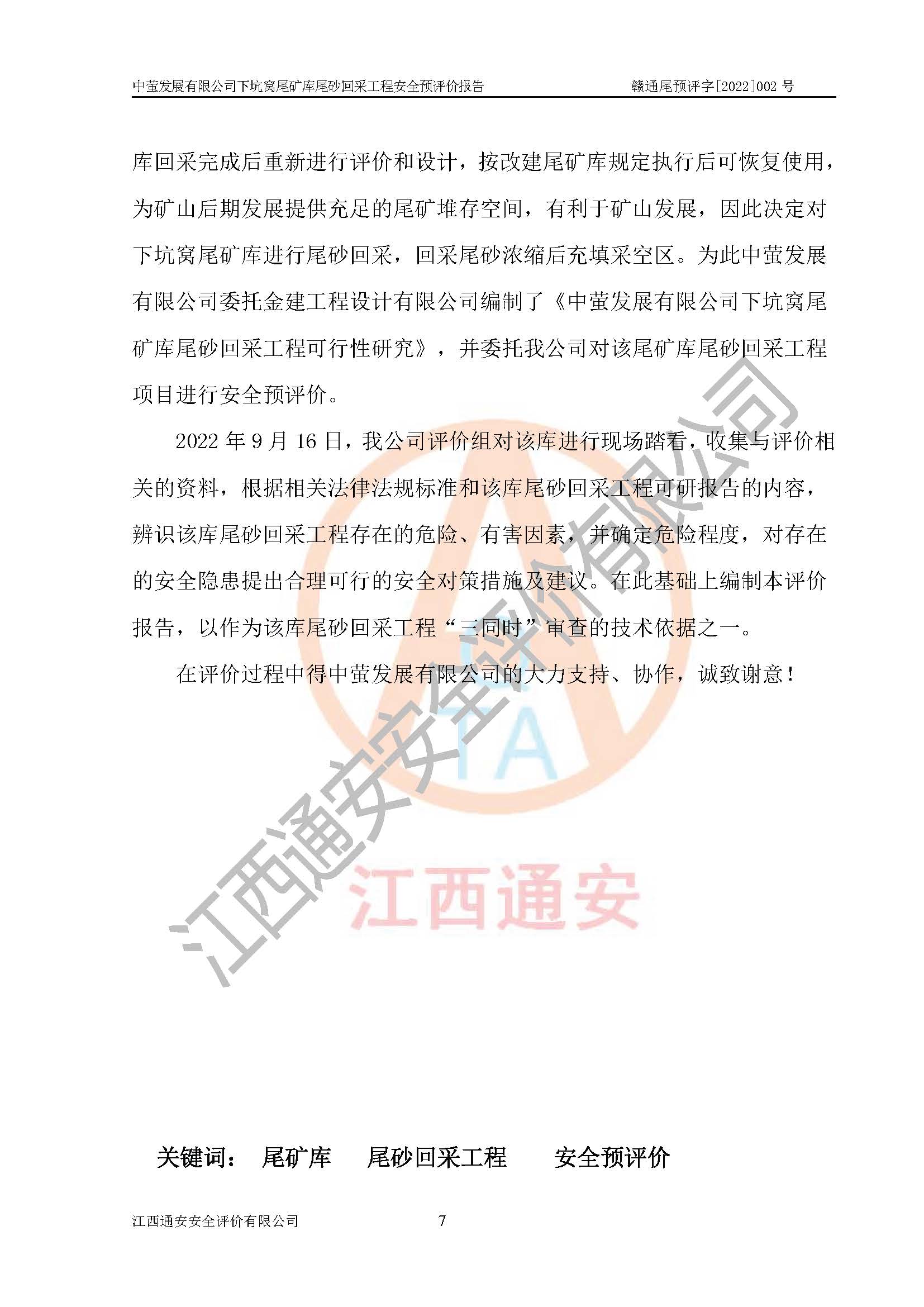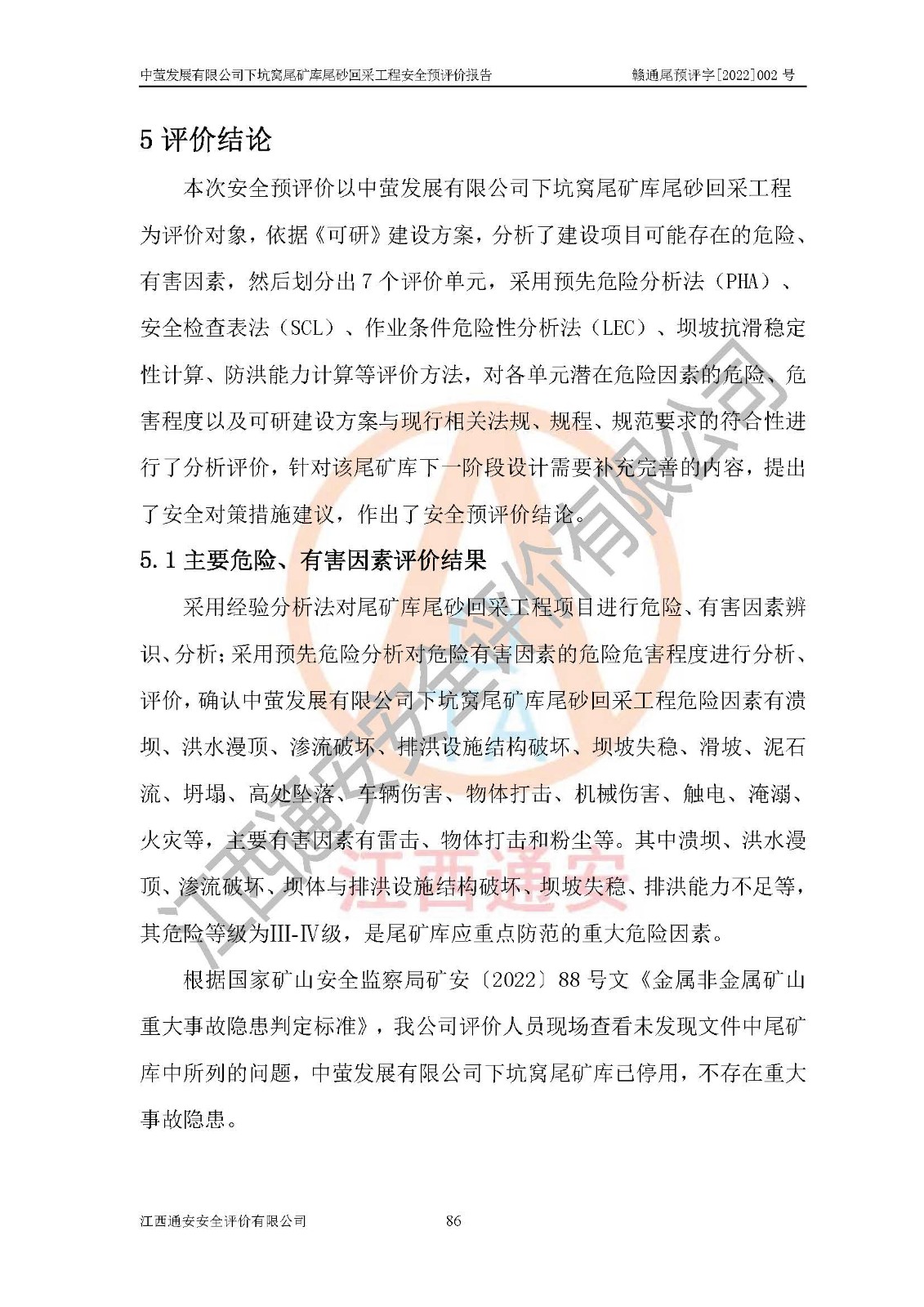 評價報告名稱 | 中螢發(fā)展有限公司下坑窩尾礦庫尾砂回采工程安全預(yù)評價報告 | |||
