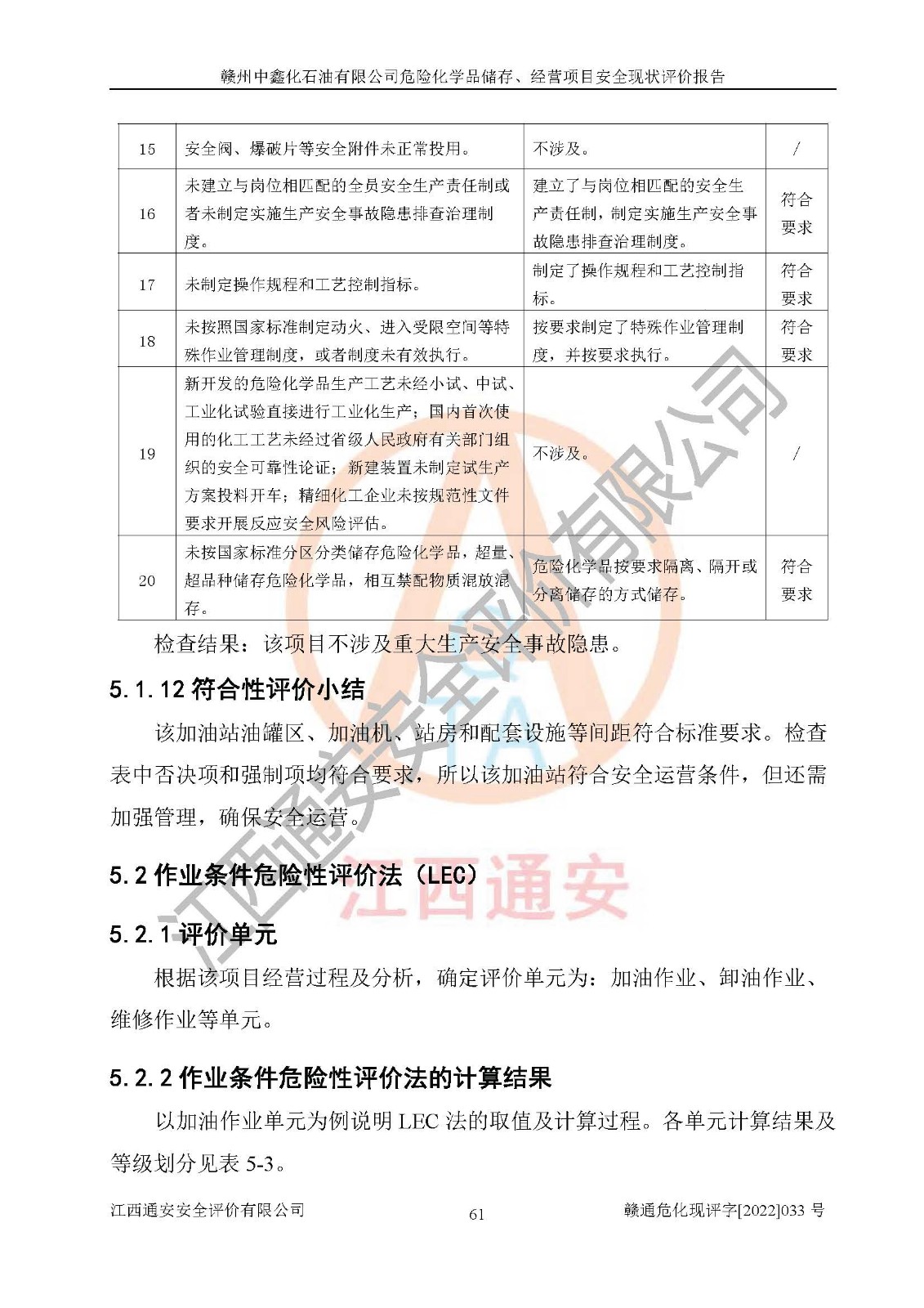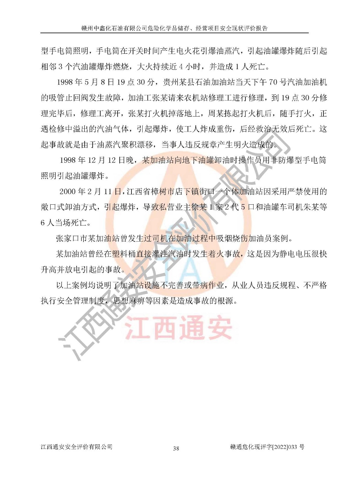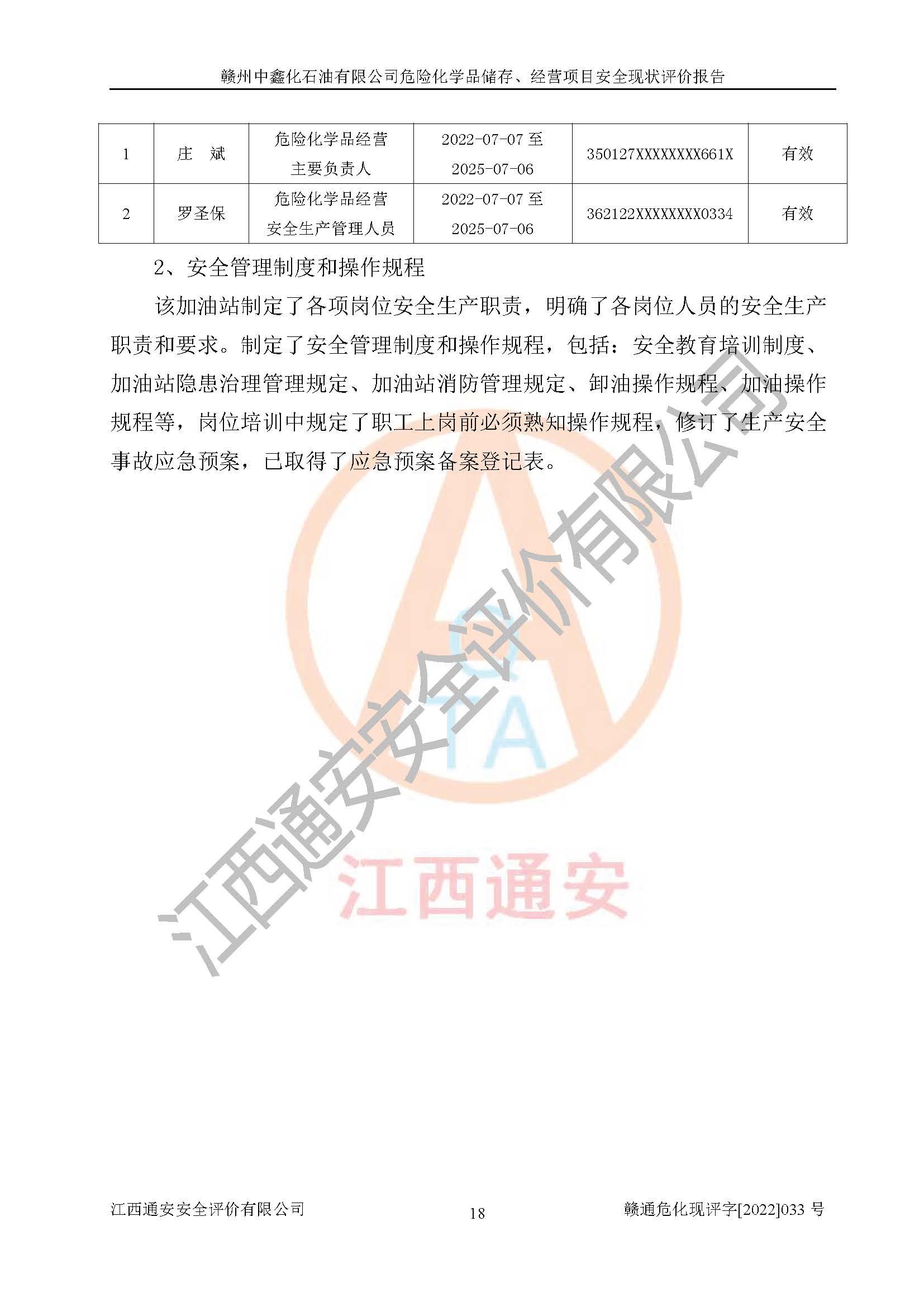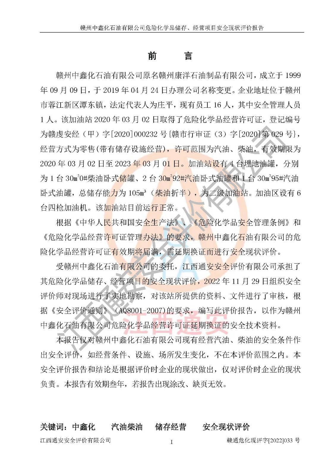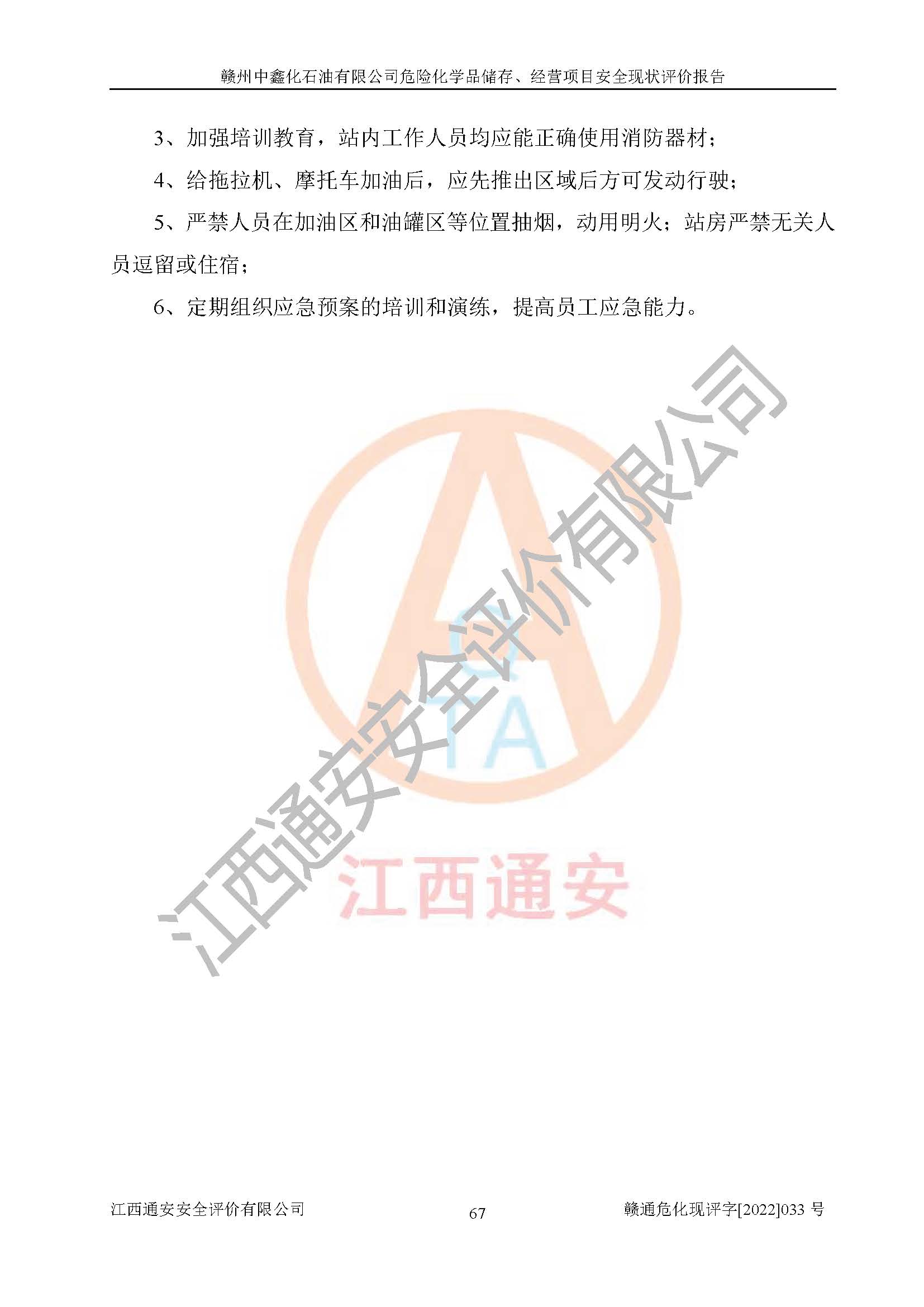 評(píng)價(jià)報(bào)告名稱 | 贛州中鑫化石油有限公司危險(xiǎn)化學(xué)品儲(chǔ)存、經(jīng)營(yíng)項(xiàng)目安全現(xiàn)狀評(píng)價(jià)報(bào)告 | |||