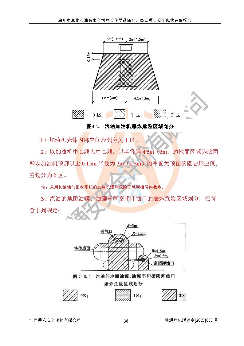 項(xiàng)目簡(jiǎn)介 | 贛州中鑫化石油有限公司原名贛州康洋石油制品有限公司,成立于1999年09月09日,于2019年04月24日辦理公司名稱變更。企業(yè)地址位于贛州市蓉江新區(qū)潭東鎮(zhèn),法定**人為莊平,現(xiàn)有員工16人,其中安全管理人員1人。該加油站2020年03月02日取得了危險(xiǎn)化學(xué)品經(jīng)營(yíng)許可證,登記編號(hào)為贛虔安經(jīng)(甲)字[2020]000232號(hào){贛市行審證(3)字[2020]第029號(hào)},經(jīng)營(yíng)方式為零售(帶有儲(chǔ)存設(shè)施經(jīng)營(yíng)),許可范圍為汽油、柴油,**期限為2020年03月02日至2023年03月01日。加油站設(shè)有4臺(tái)埋地油罐,分別為1臺(tái)30m30#柴油臥式儲(chǔ)罐、2臺(tái)30m392#汽油臥式油罐和1臺(tái)30m395#汽油臥式油罐,總儲(chǔ)存能力為105m3(柴油折半),為二級(jí)加油站。加油區(qū)設(shè)有6臺(tái)四槍加油機(jī)。該加油站目前運(yùn)行正常。 | |||