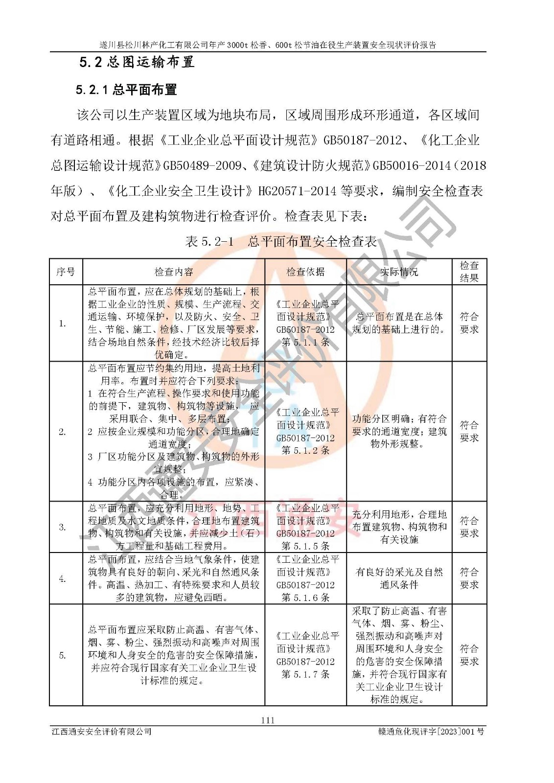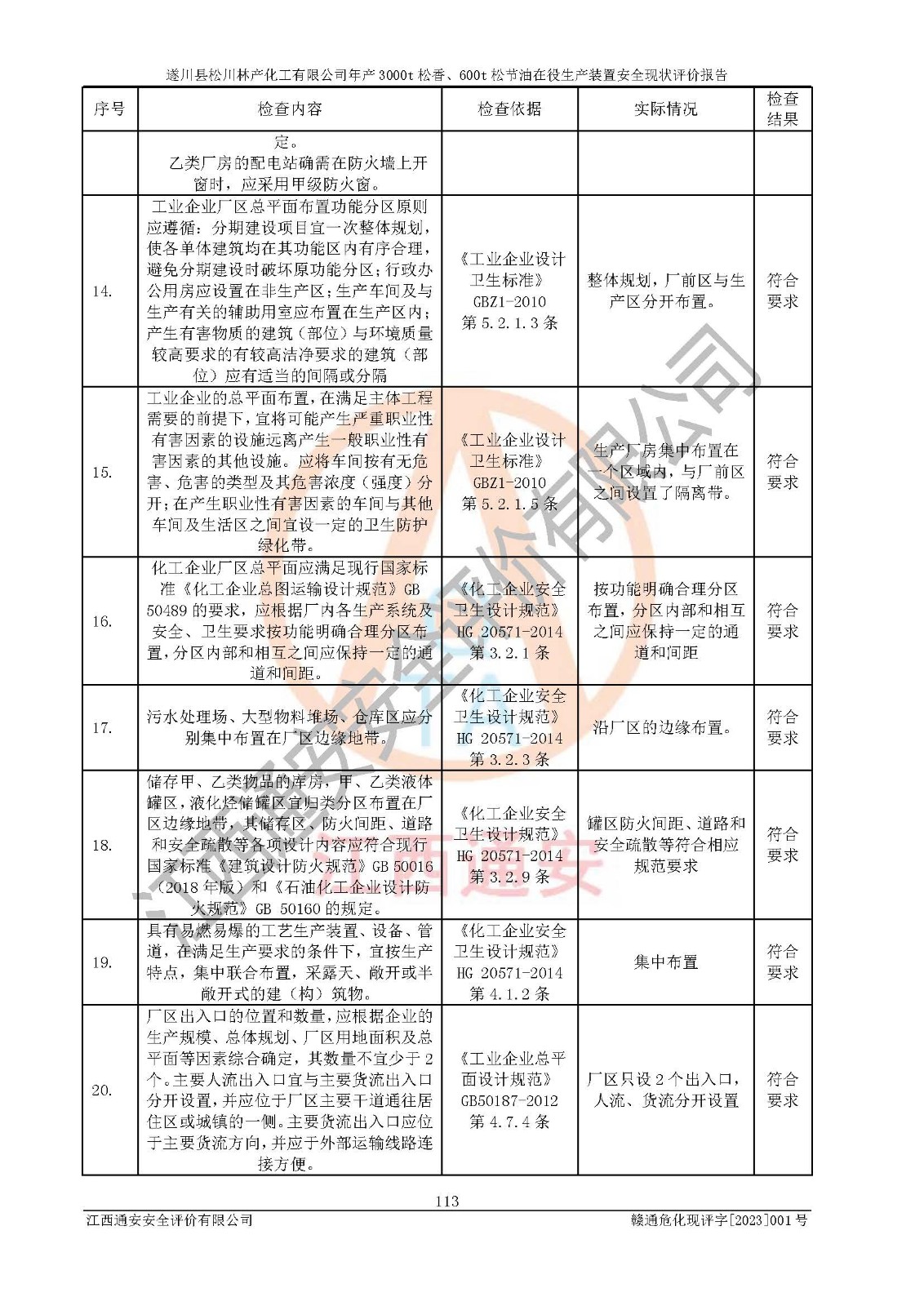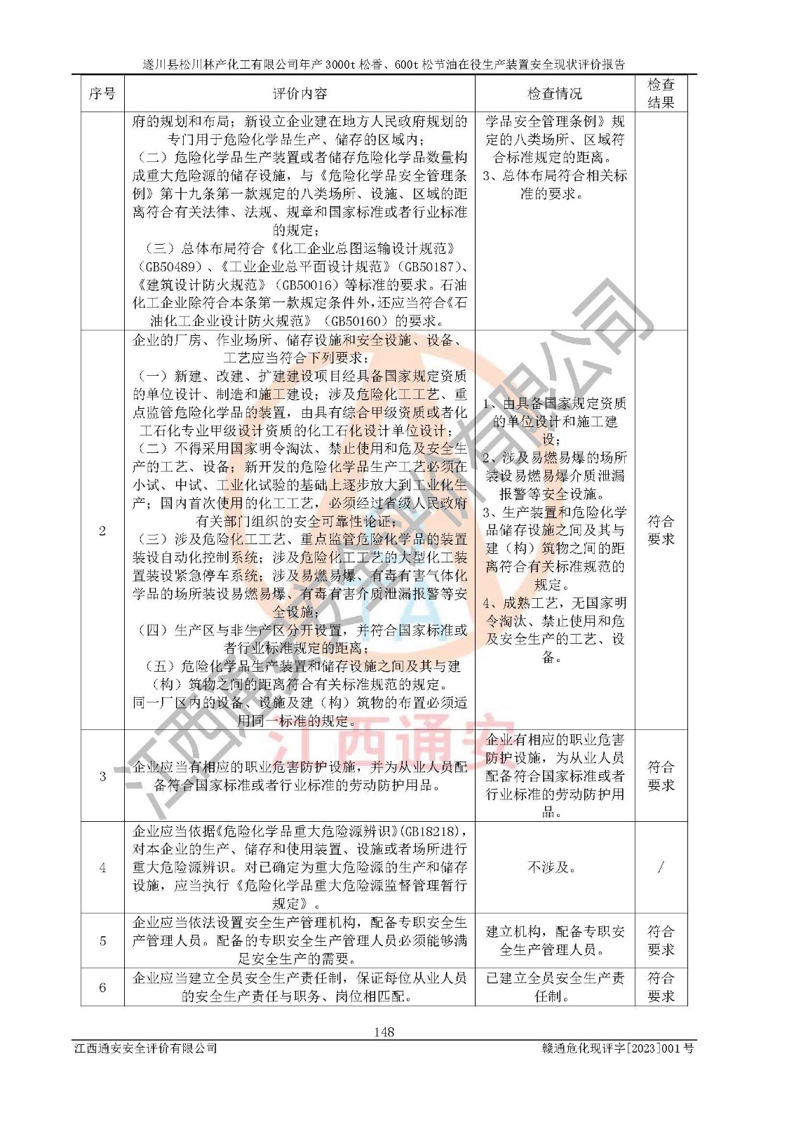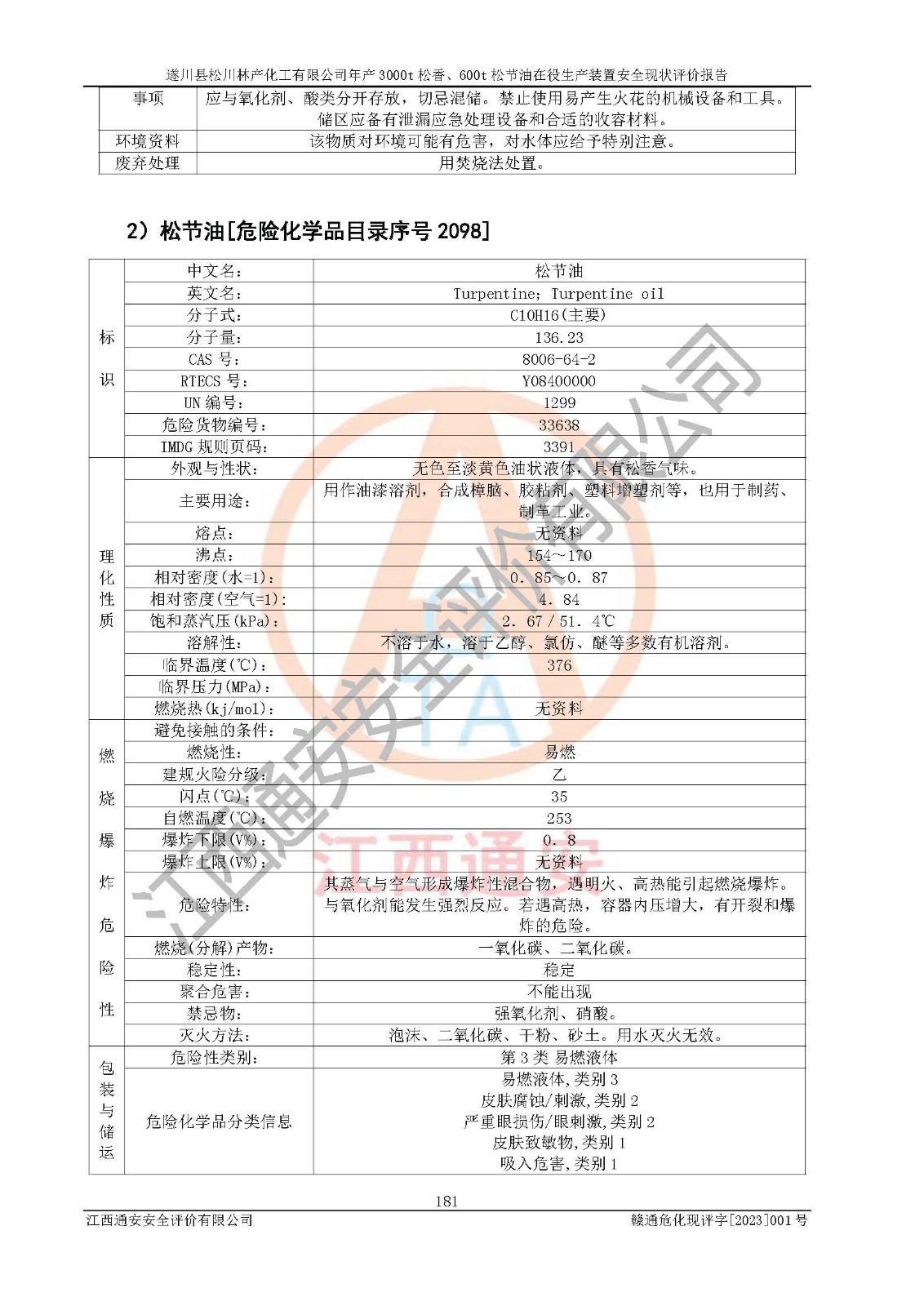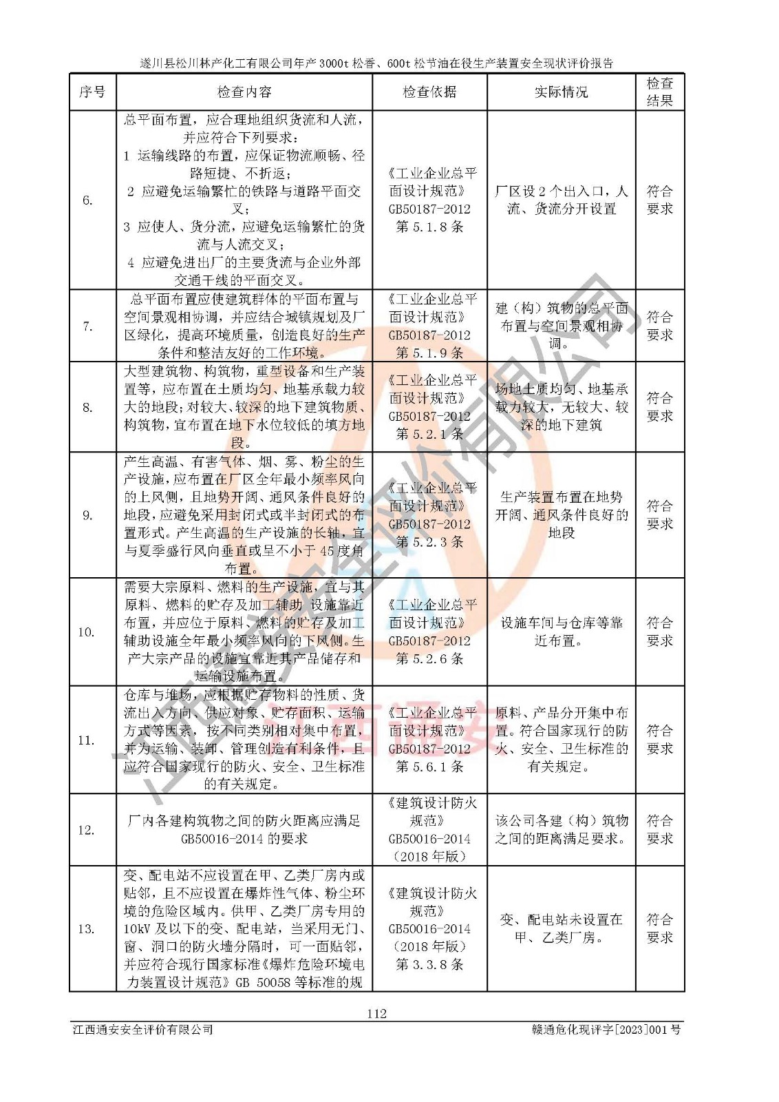 評價報告名稱 | 遂川縣松川林產(chǎn)化工有限公司年產(chǎn)3000t松香、600t松節(jié)油在役生產(chǎn)裝置安全現(xiàn)狀評價報告 | |||