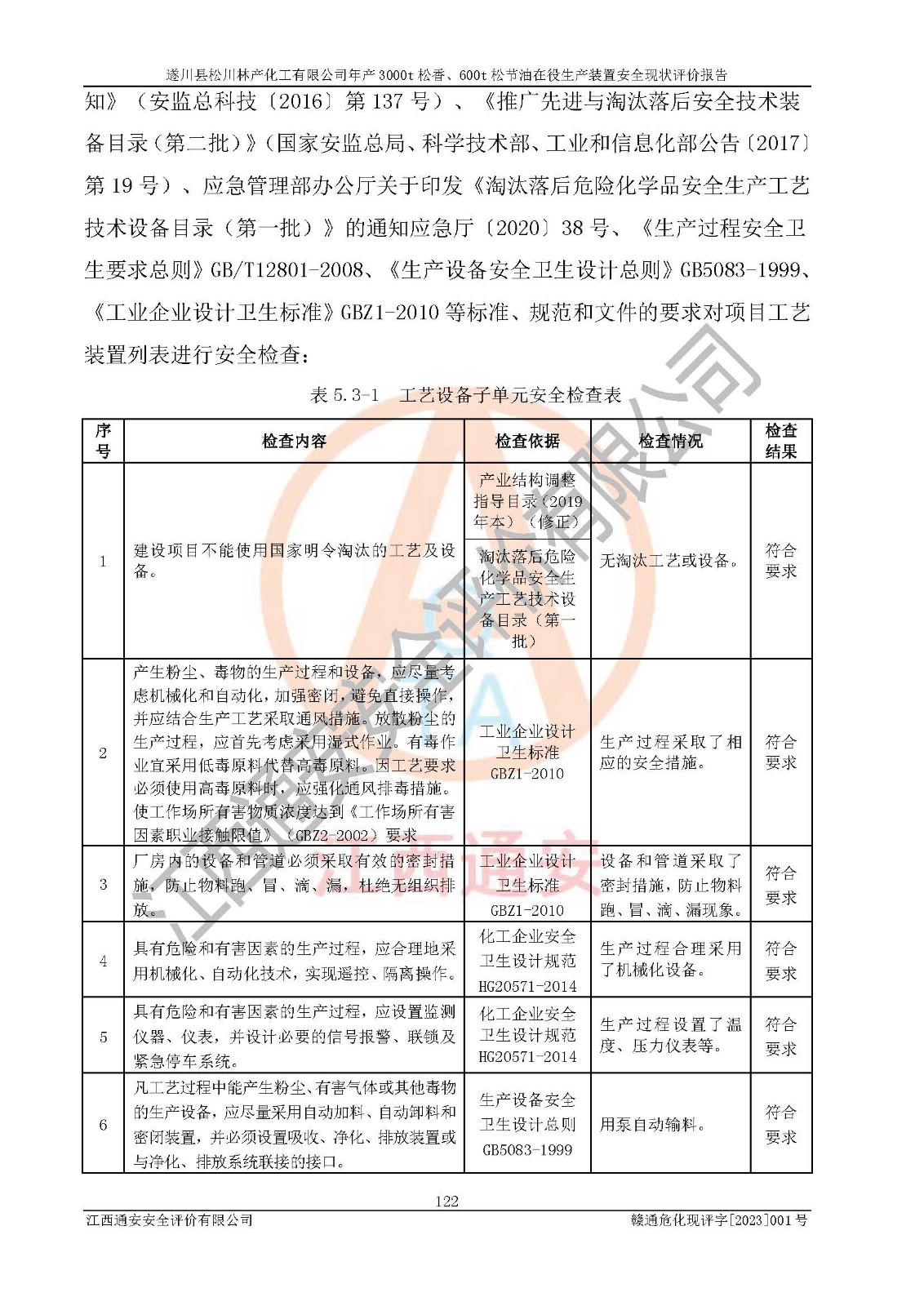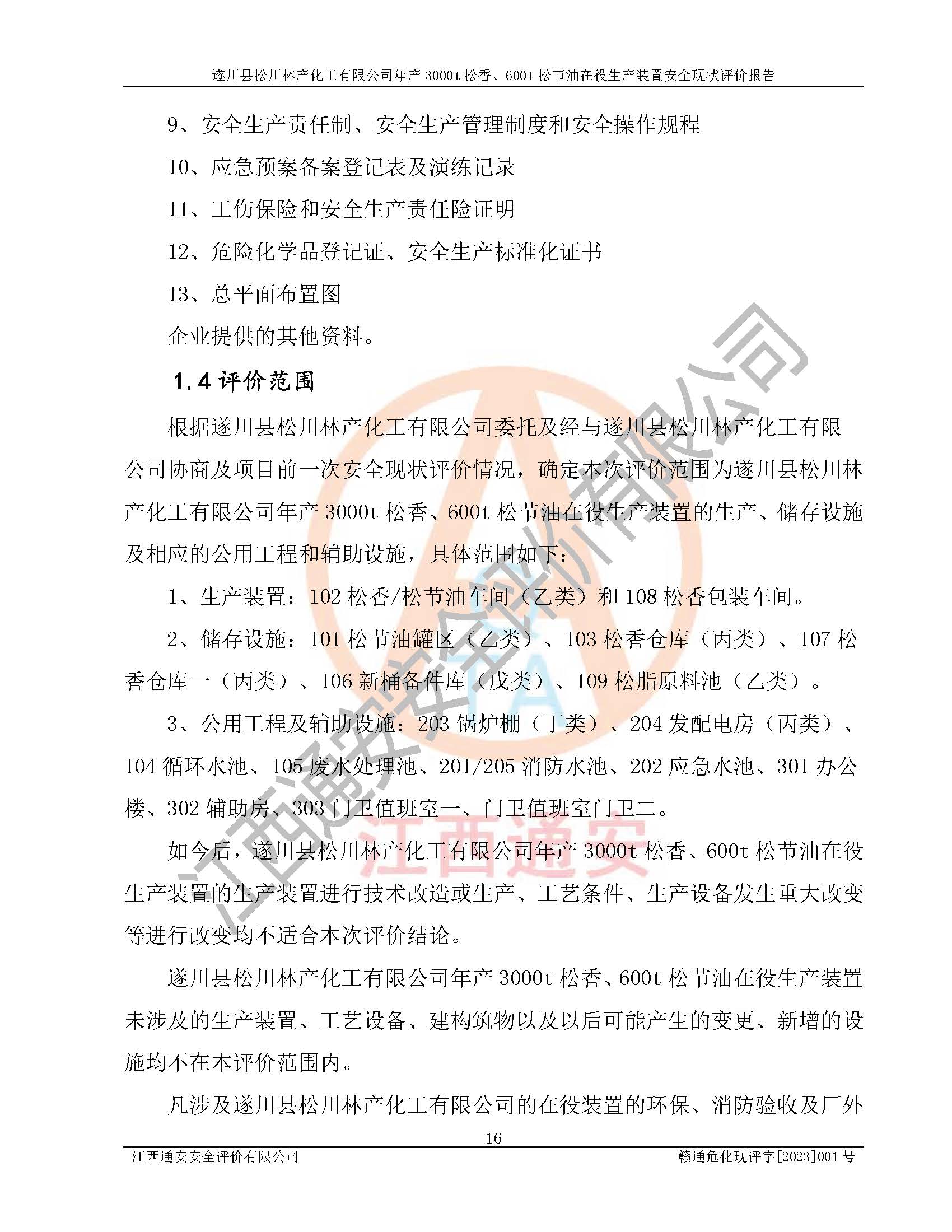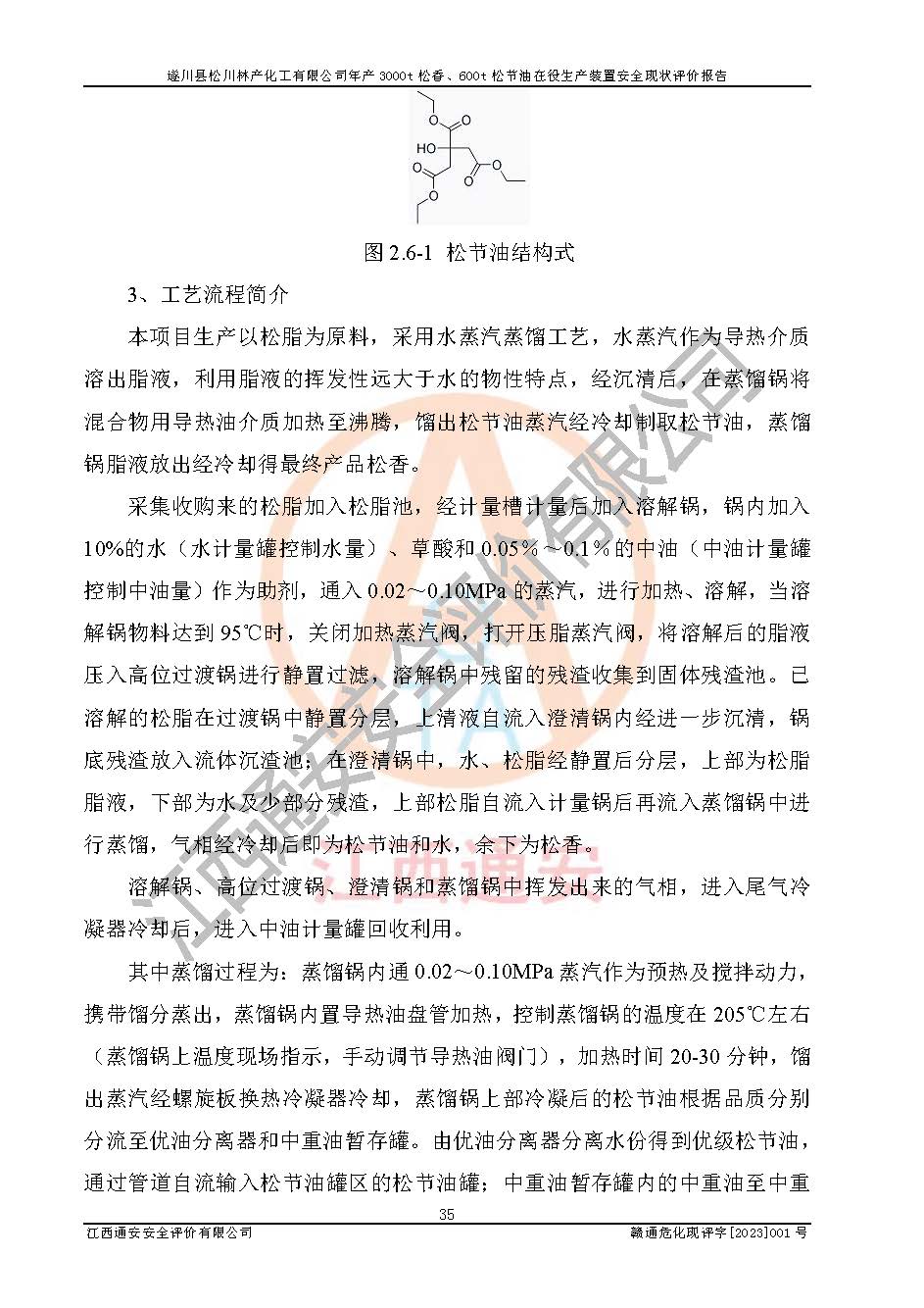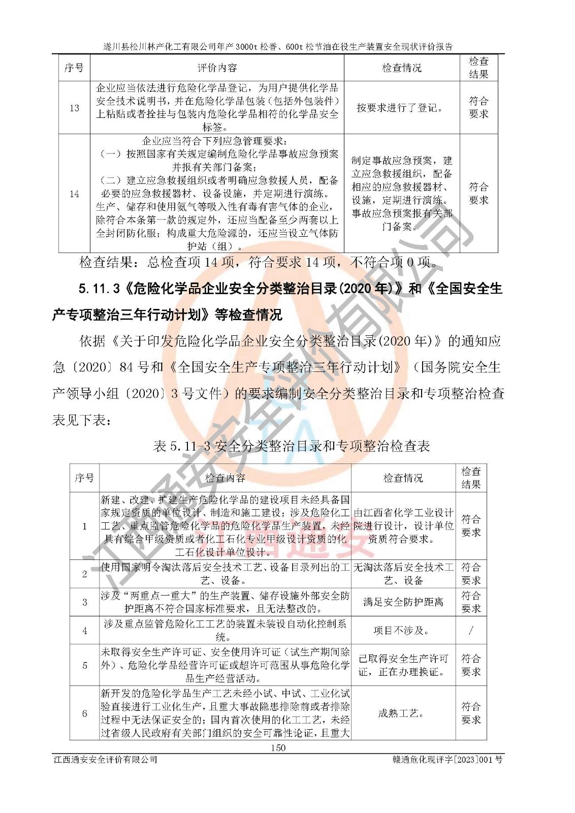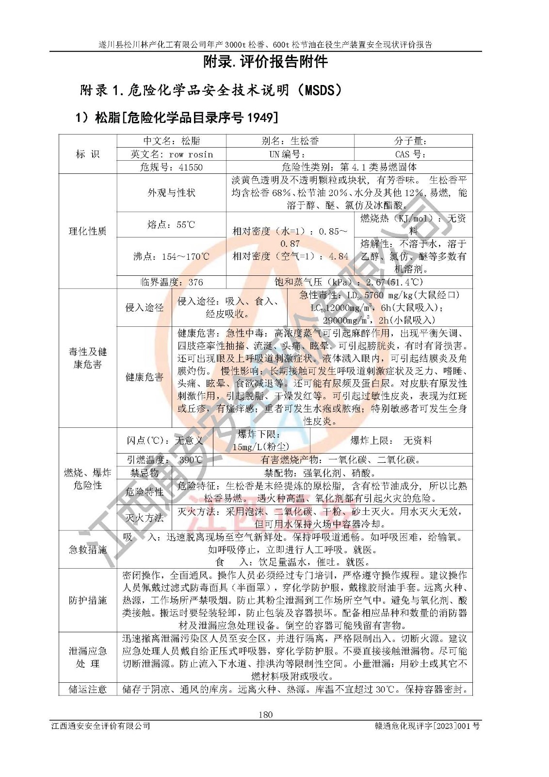 評價報告名稱 | 遂川縣松川林產(chǎn)化工有限公司年產(chǎn)3000t松香、600t松節(jié)油在役生產(chǎn)裝置安全現(xiàn)狀評價報告 | |||