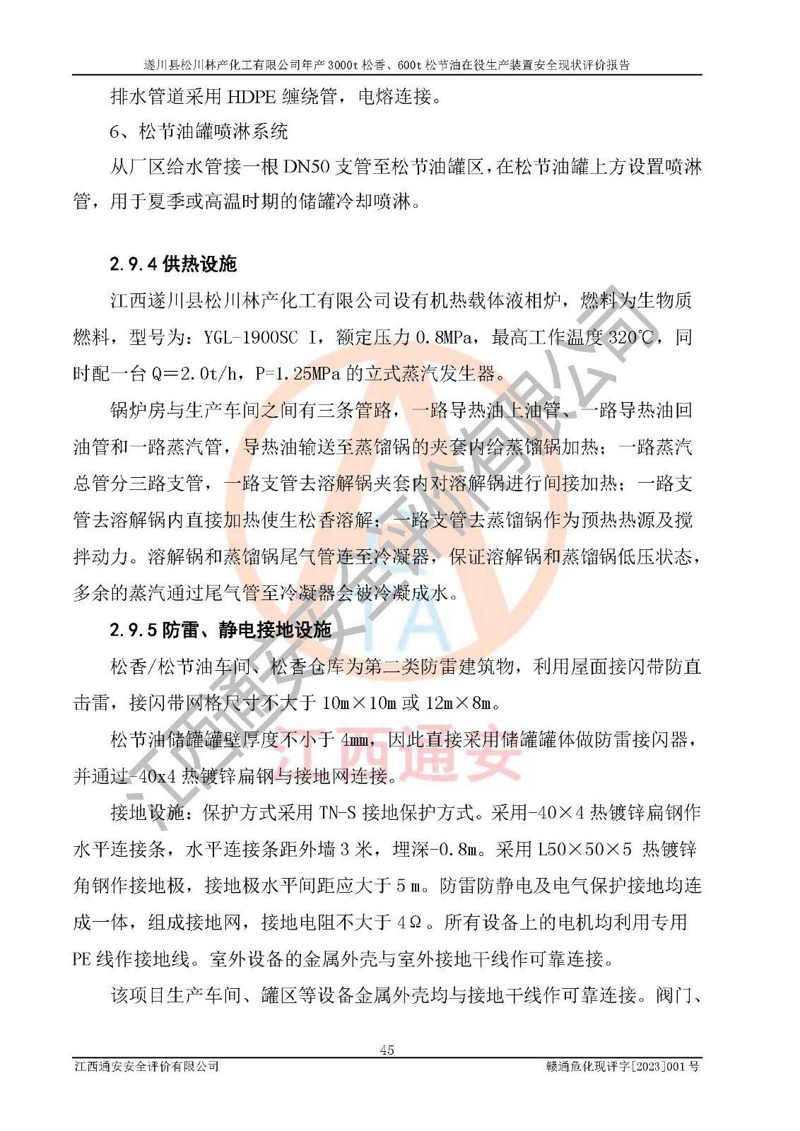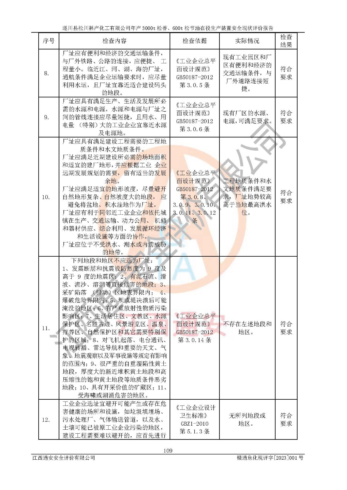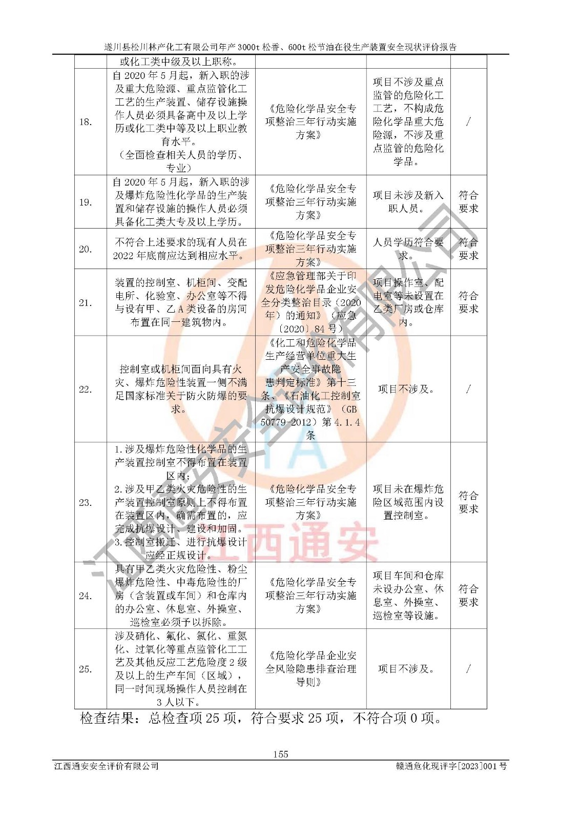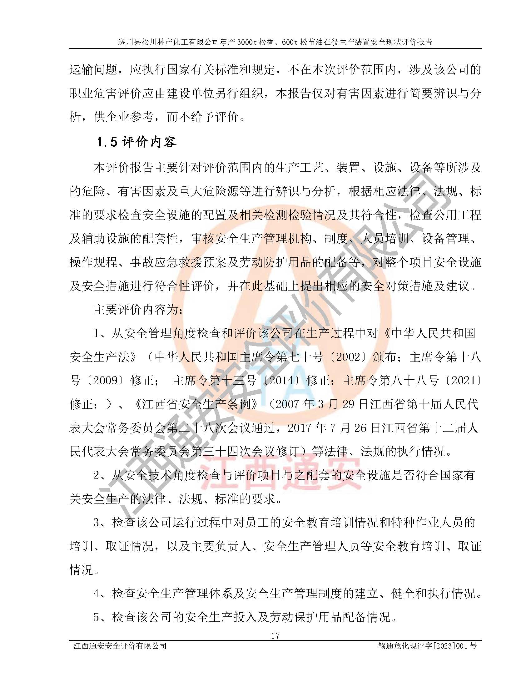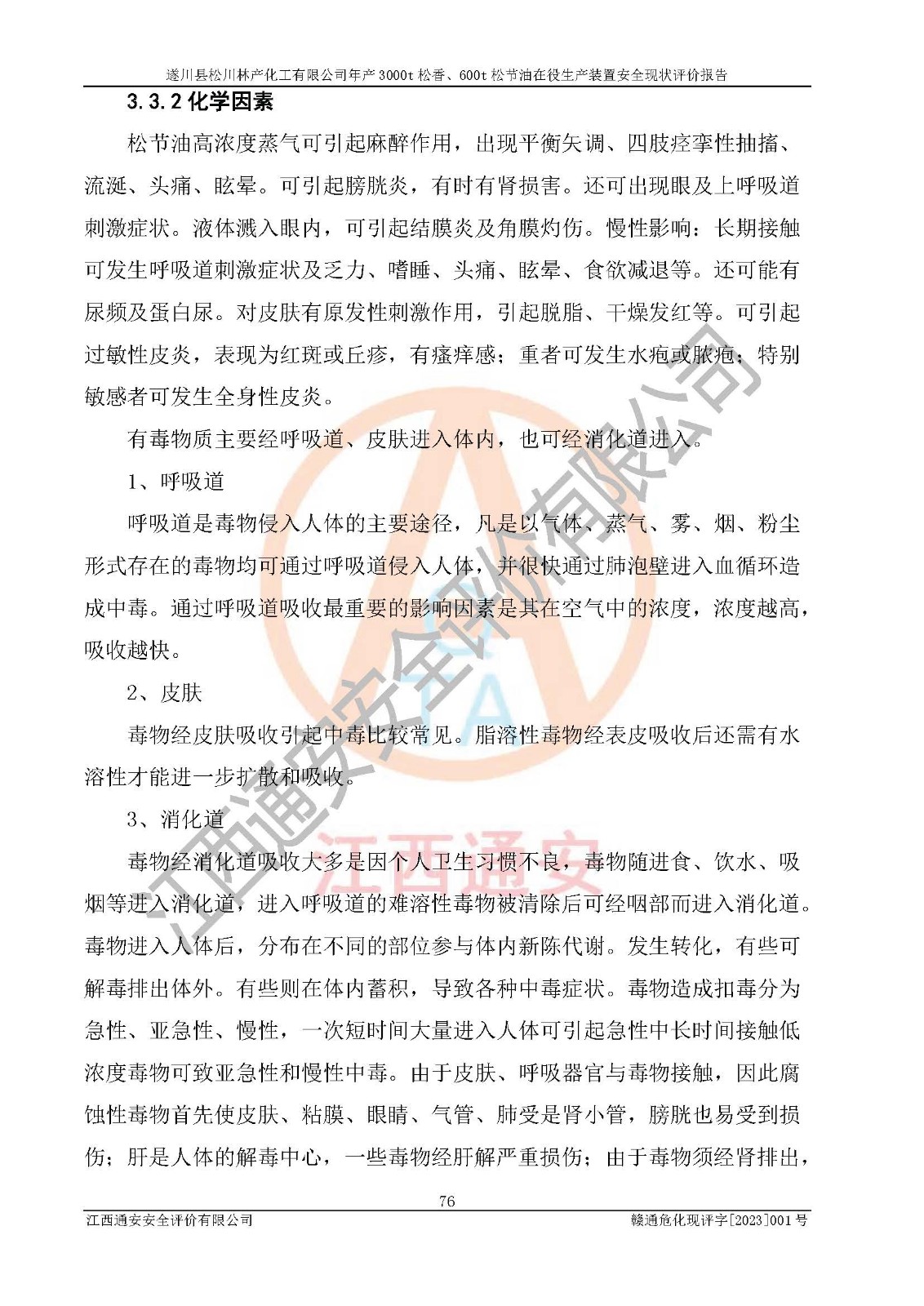 評價報告名稱 | 遂川縣松川林產(chǎn)化工有限公司年產(chǎn)3000t松香、600t松節(jié)油在役生產(chǎn)裝置安全現(xiàn)狀評價報告 | |||