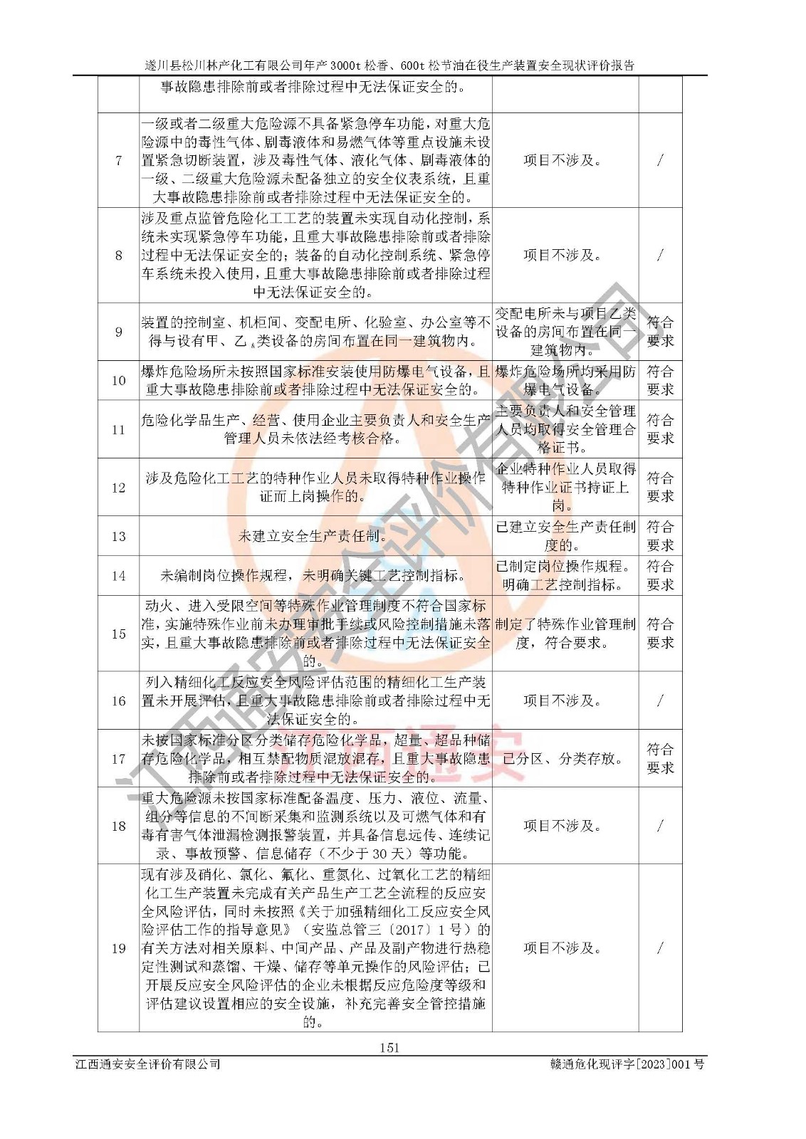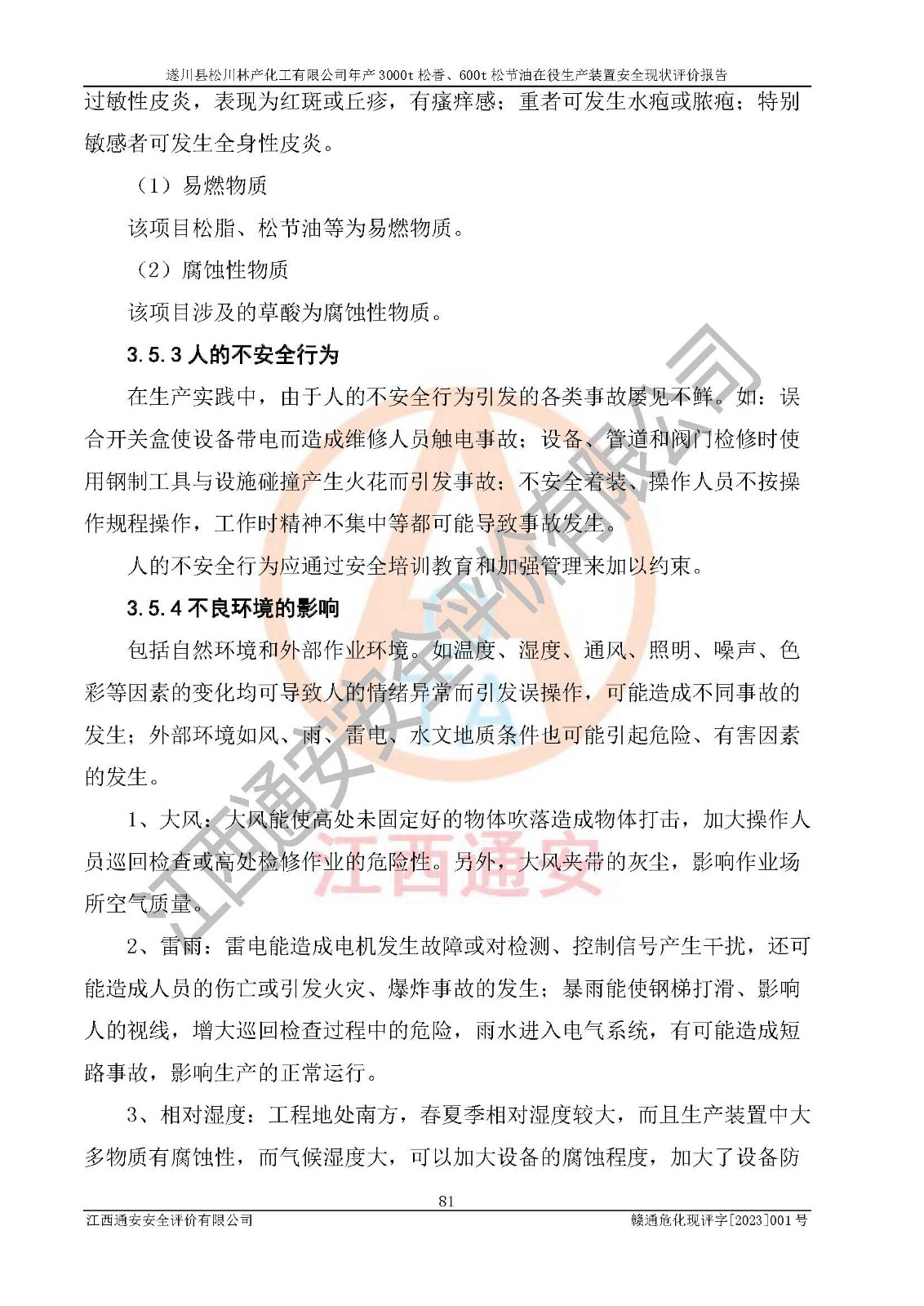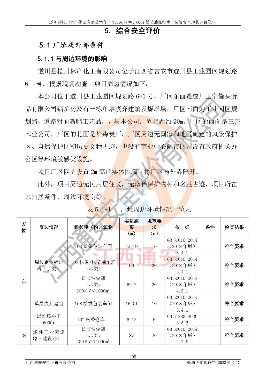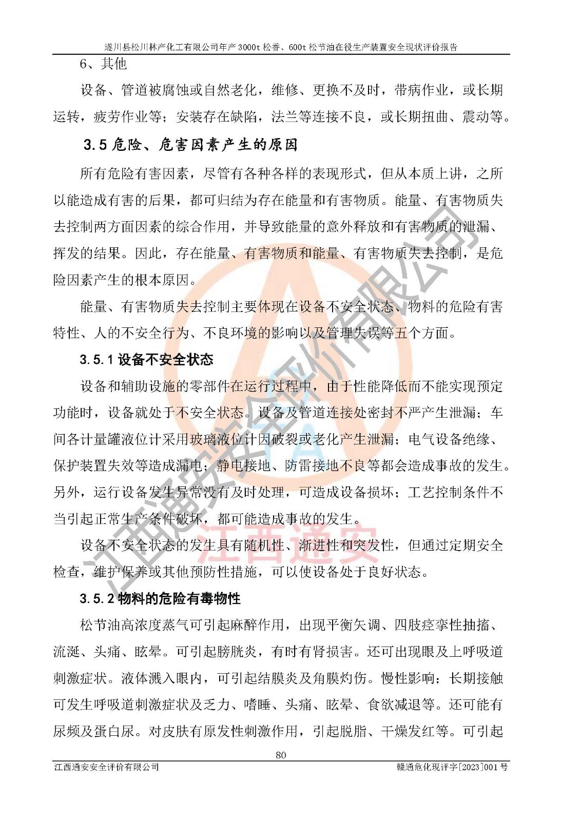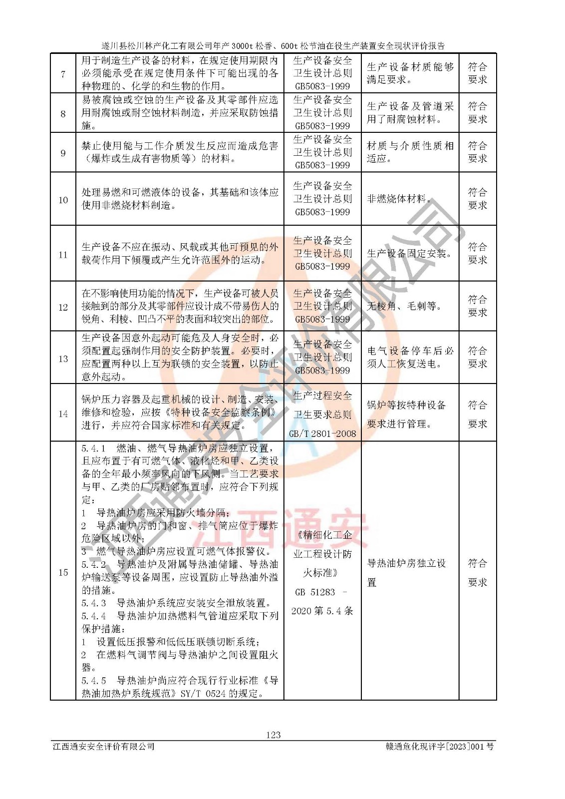 評價報告名稱 | 遂川縣松川林產(chǎn)化工有限公司年產(chǎn)3000t松香、600t松節(jié)油在役生產(chǎn)裝置安全現(xiàn)狀評價報告 | |||