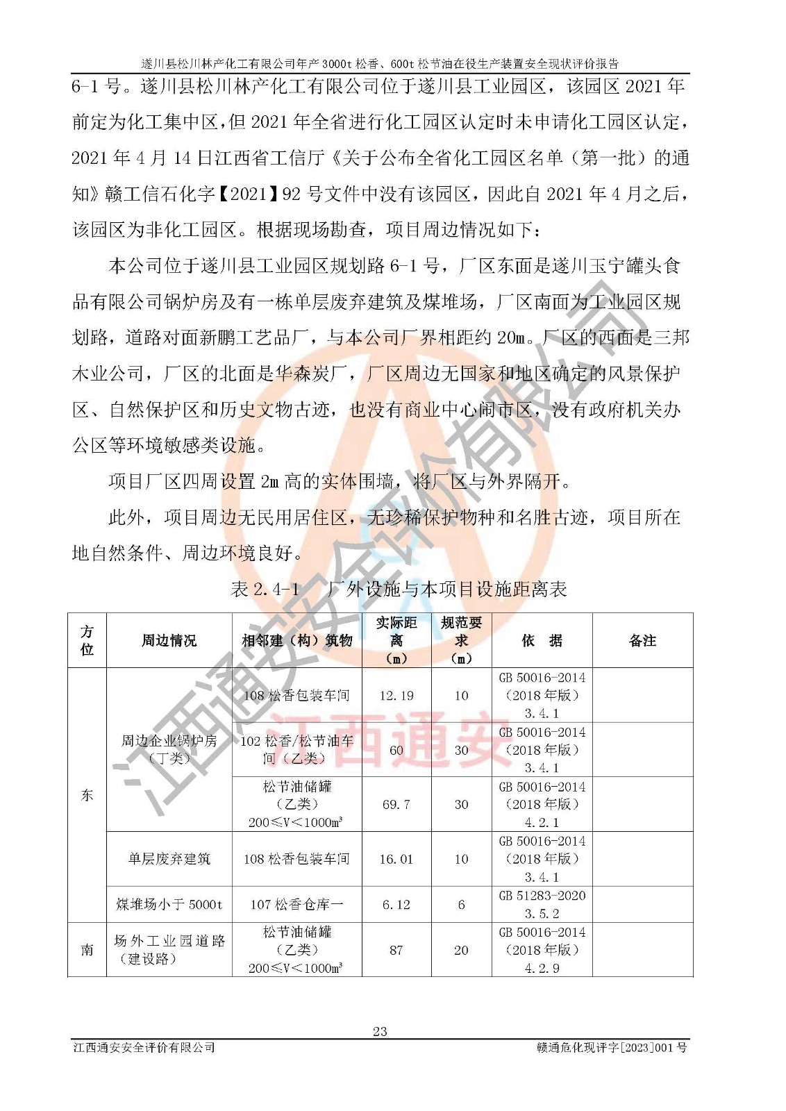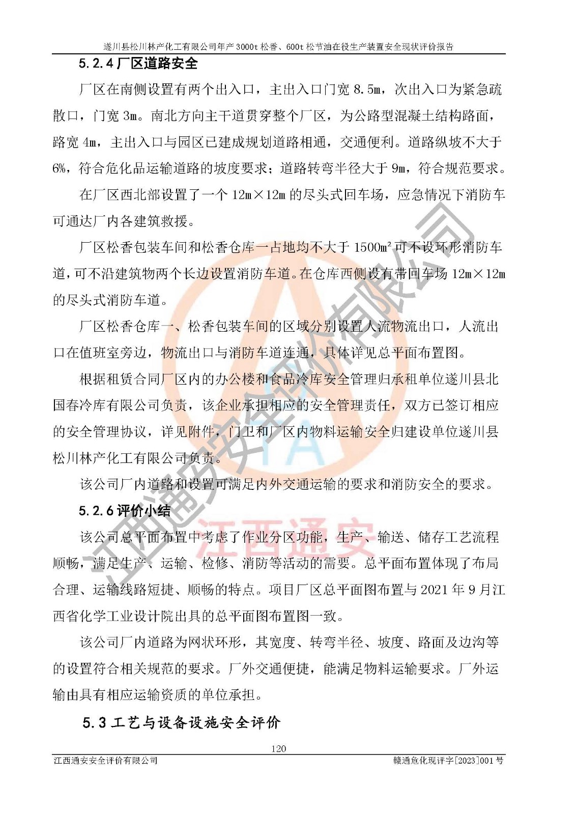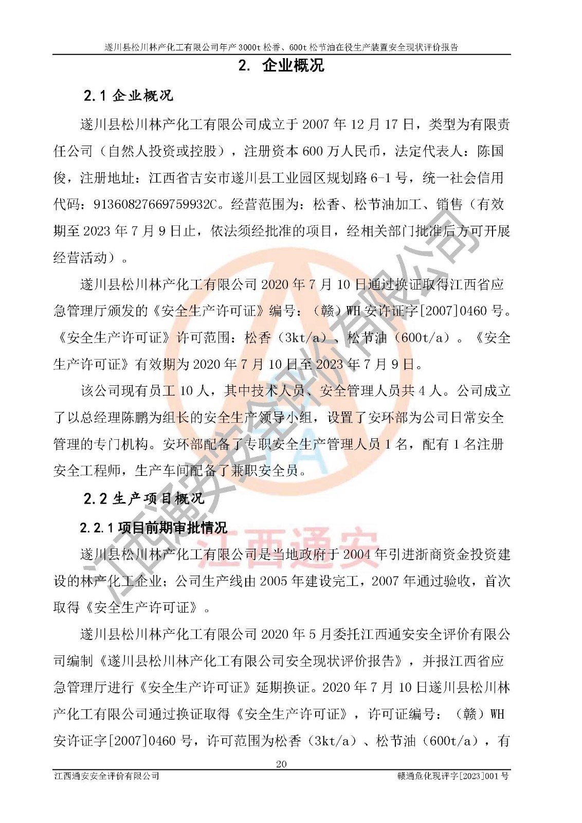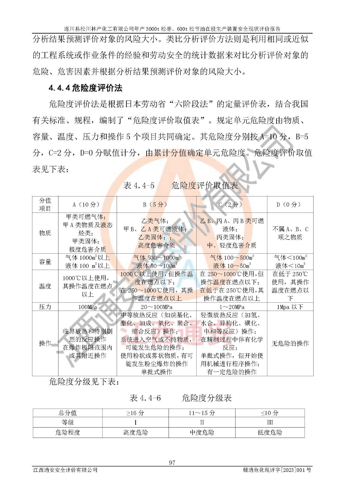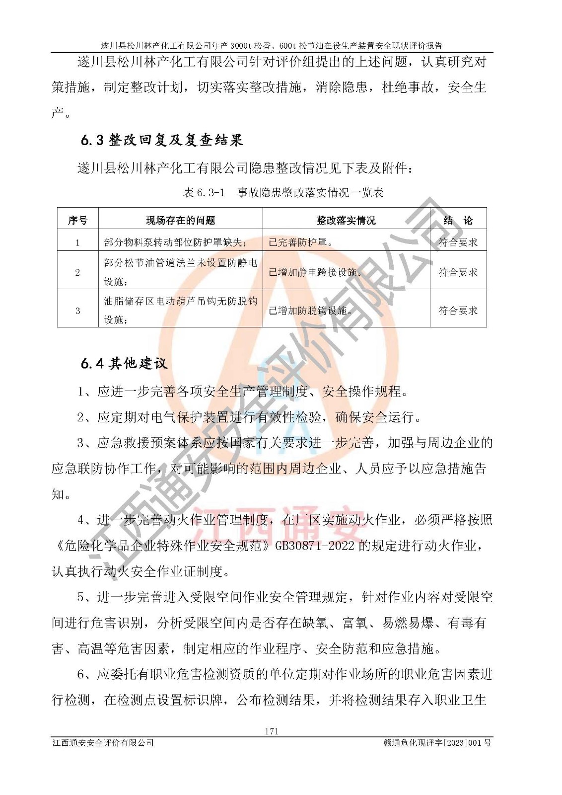 評價報告名稱 | 遂川縣松川林產(chǎn)化工有限公司年產(chǎn)3000t松香、600t松節(jié)油在役生產(chǎn)裝置安全現(xiàn)狀評價報告 | |||