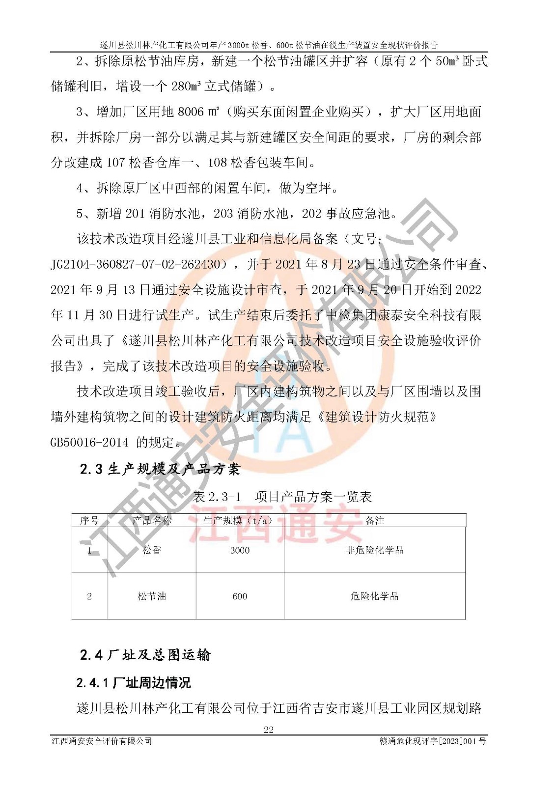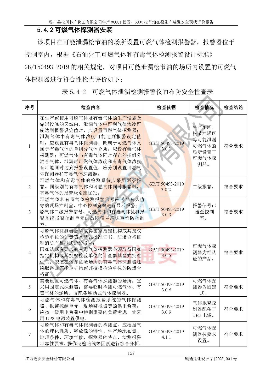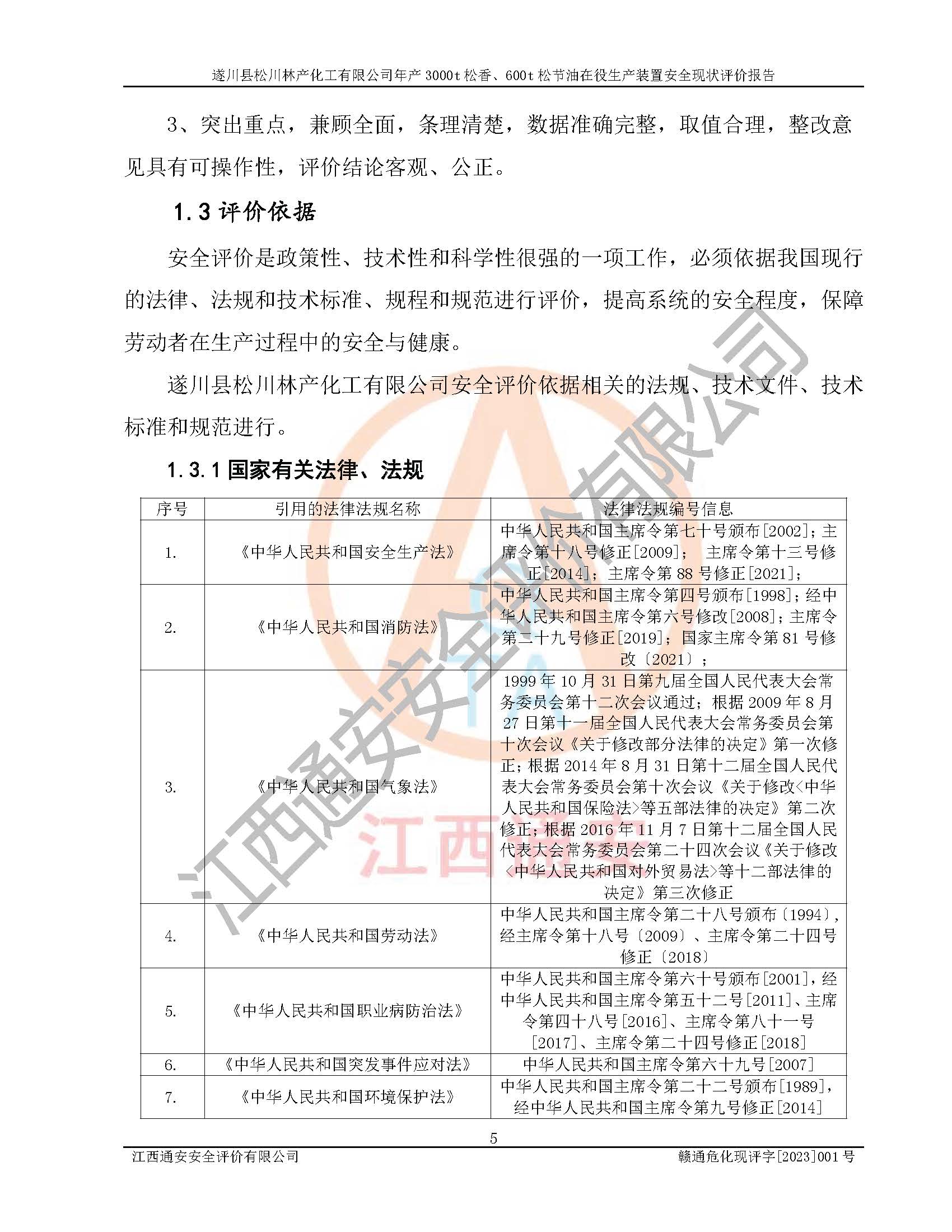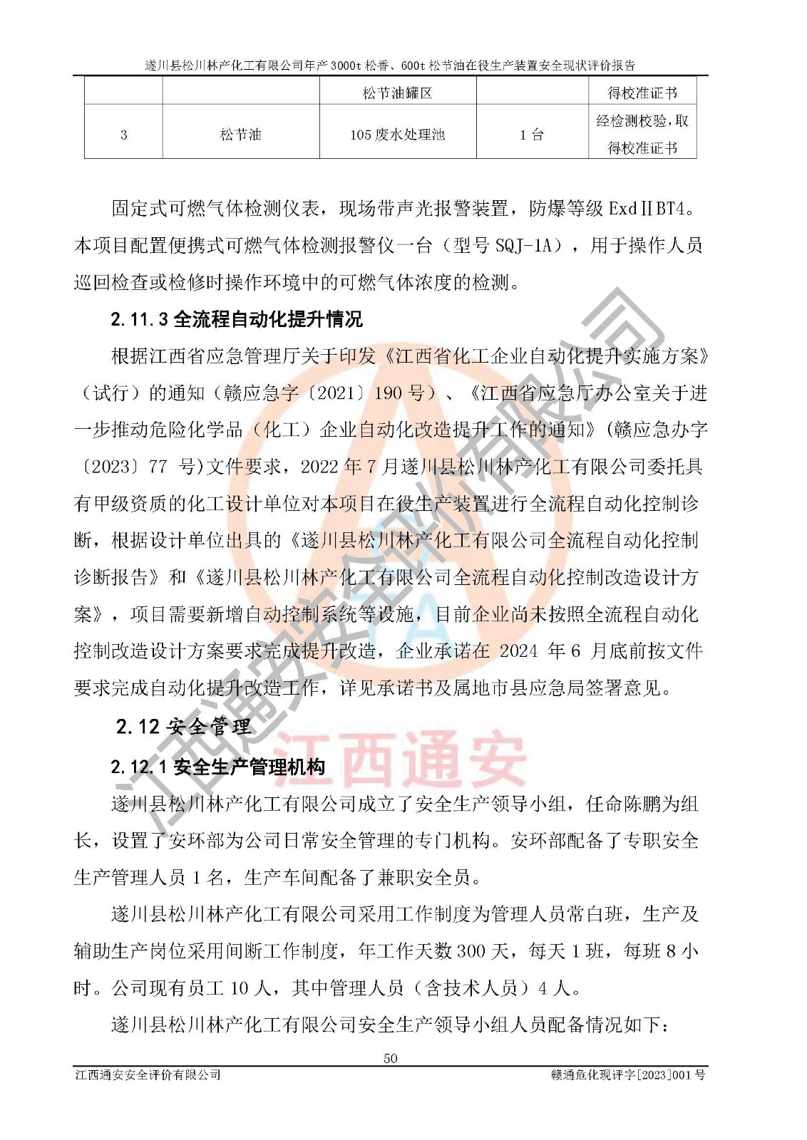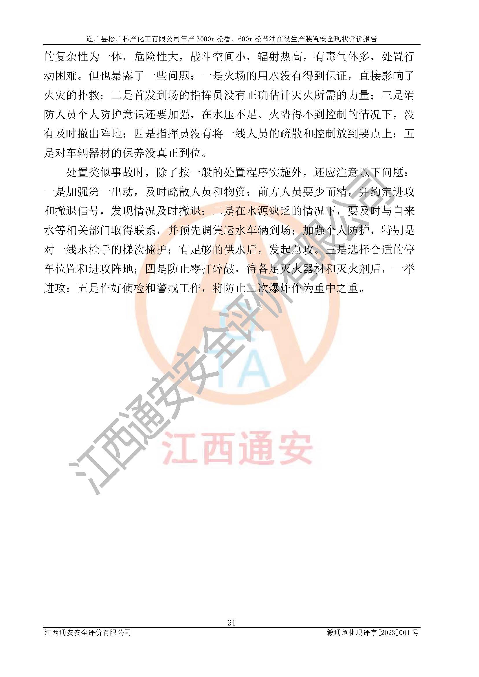 評價報告名稱 | 遂川縣松川林產(chǎn)化工有限公司年產(chǎn)3000t松香、600t松節(jié)油在役生產(chǎn)裝置安全現(xiàn)狀評價報告 | |||