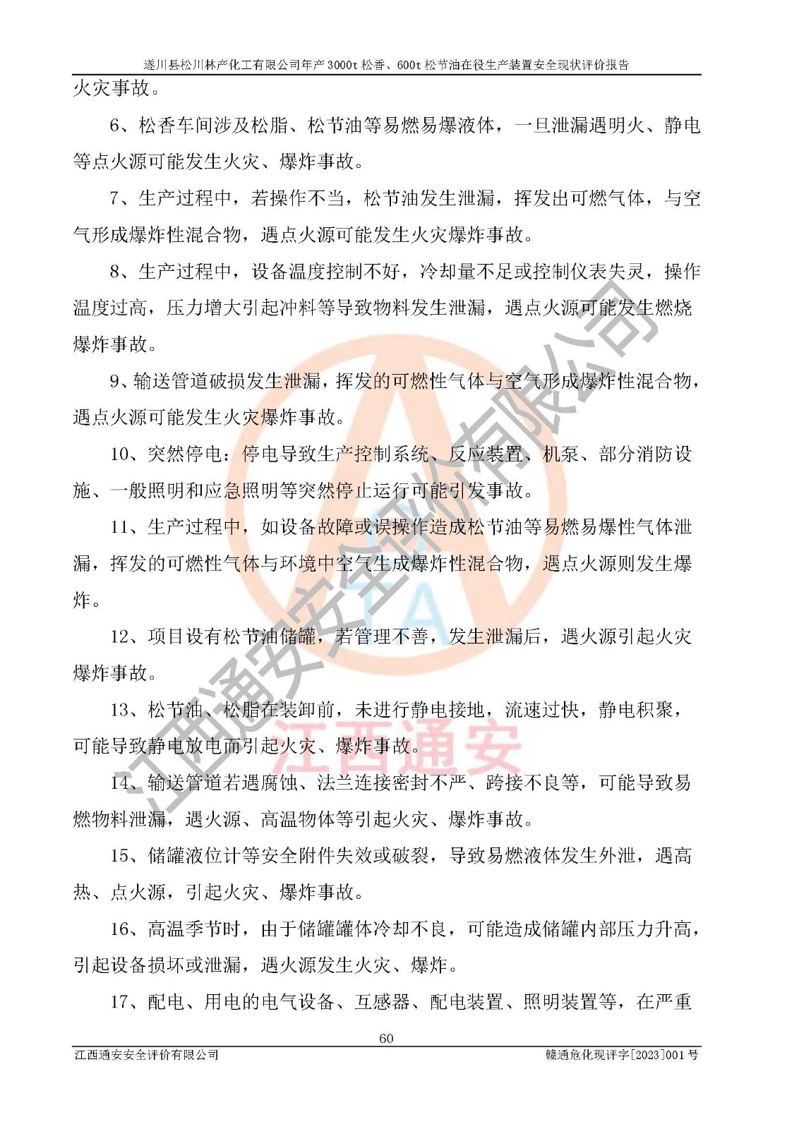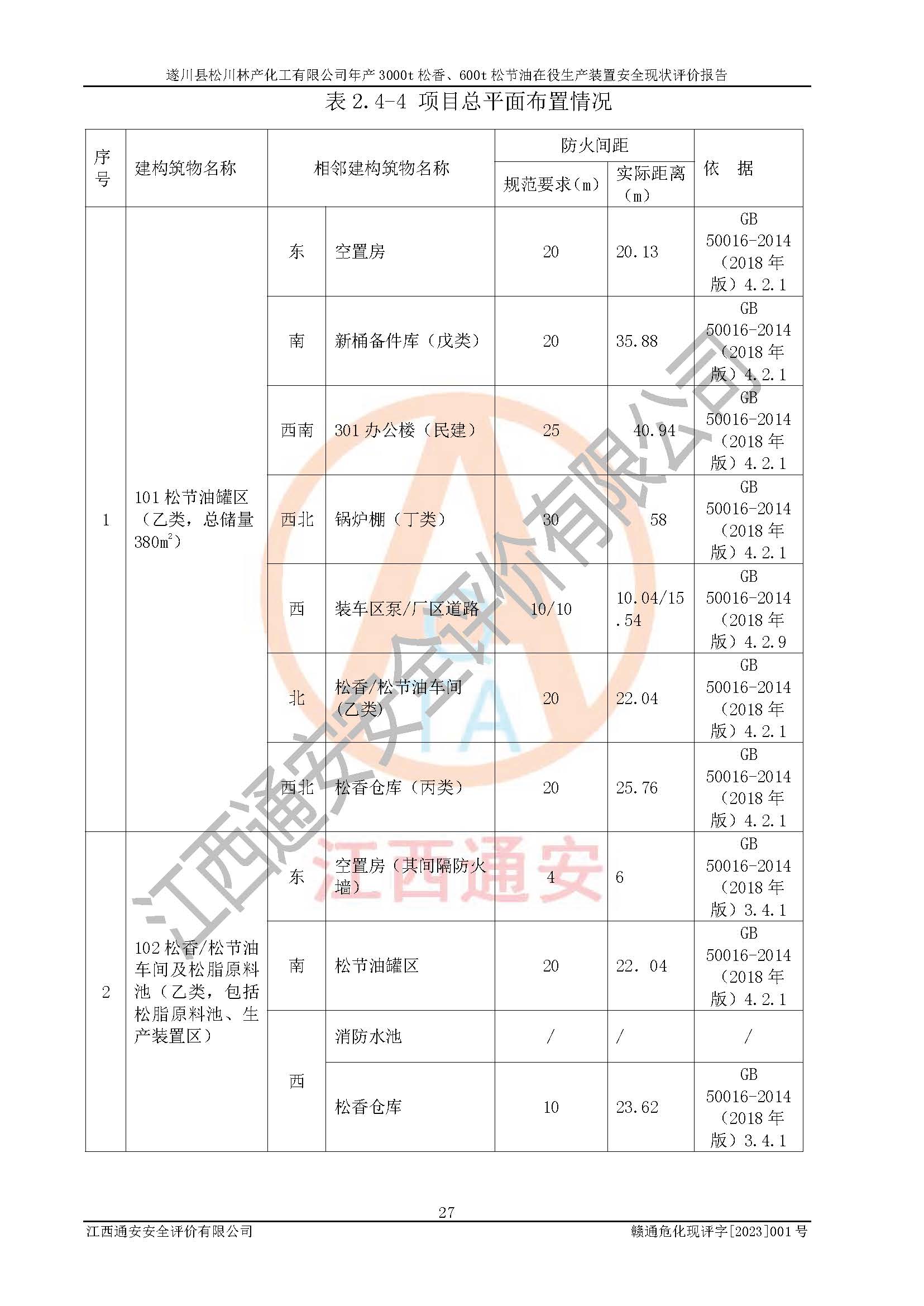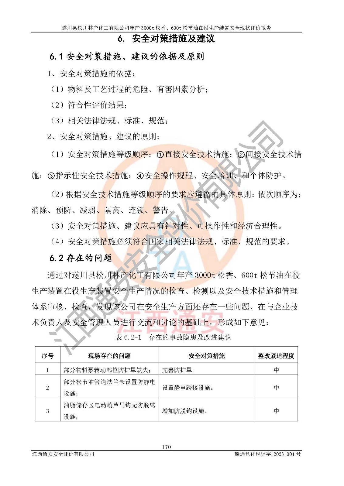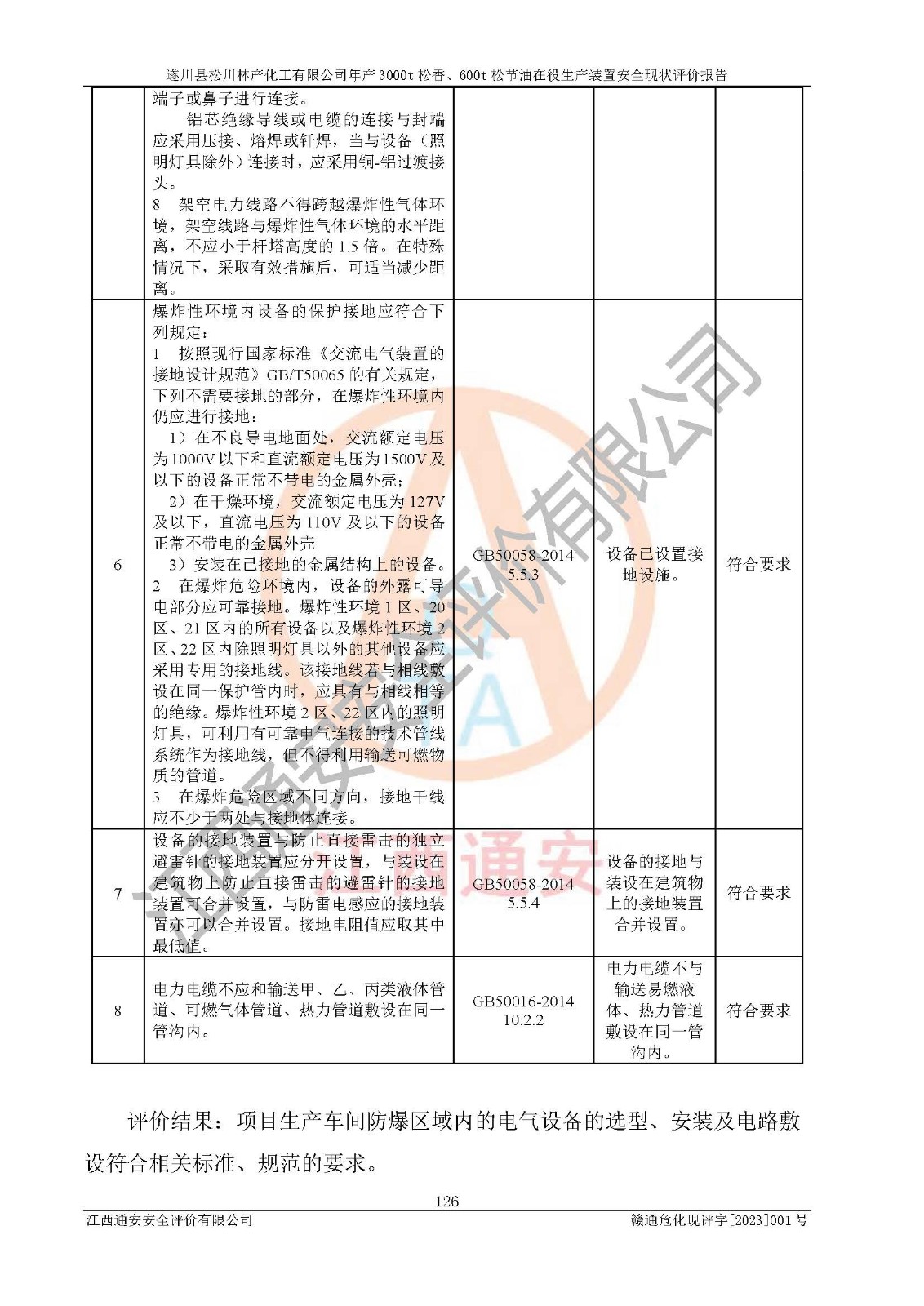 評價報告名稱 | 遂川縣松川林產(chǎn)化工有限公司年產(chǎn)3000t松香、600t松節(jié)油在役生產(chǎn)裝置安全現(xiàn)狀評價報告 | |||
