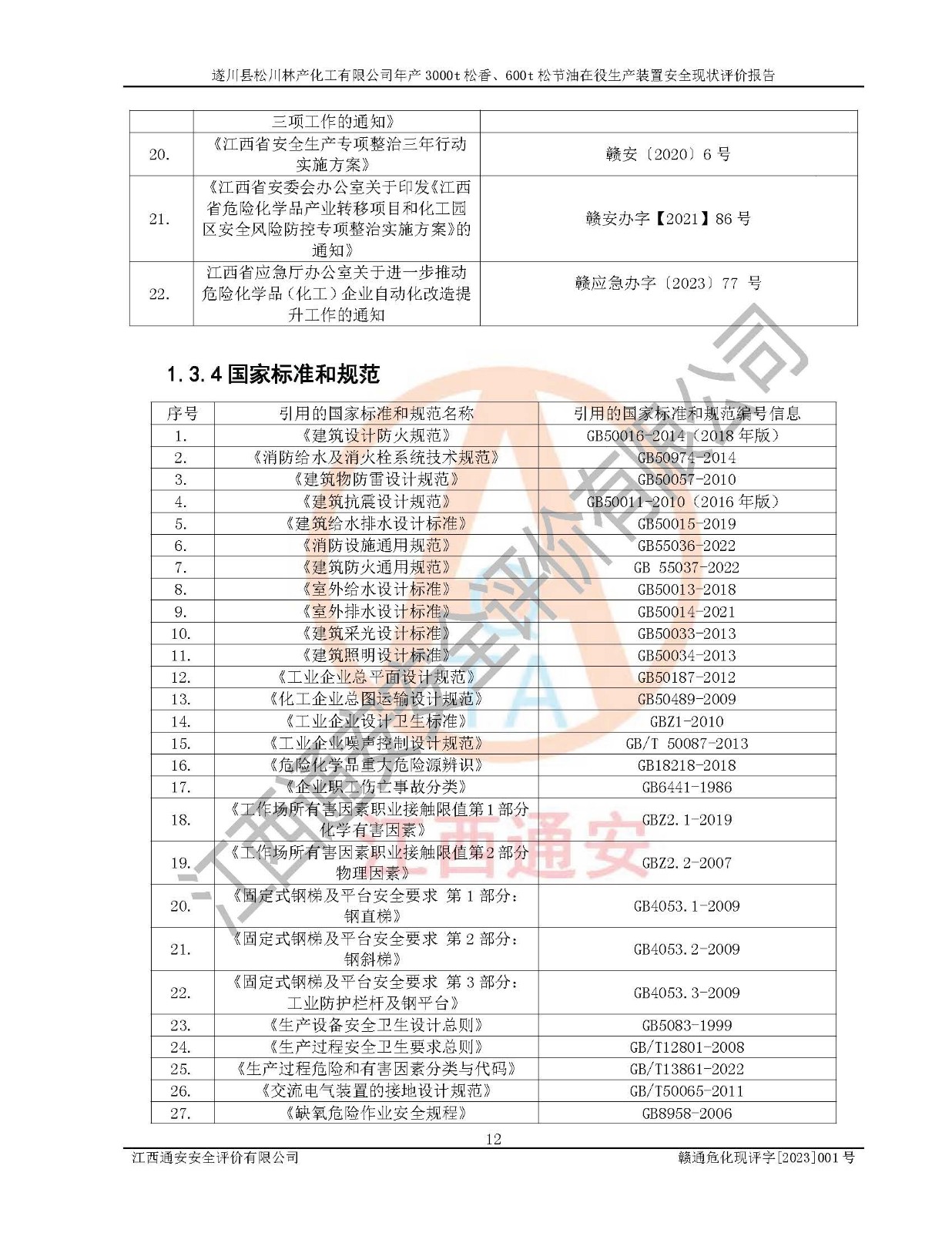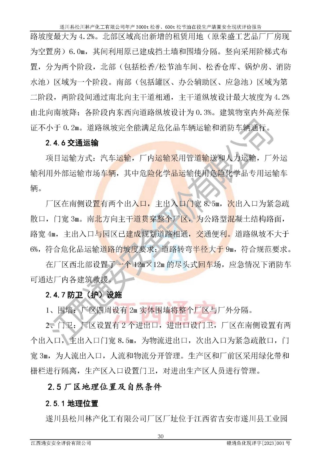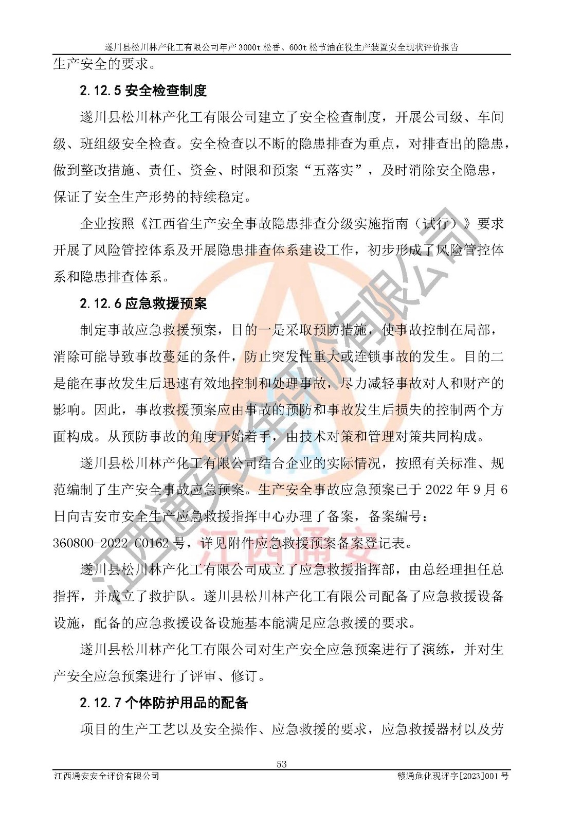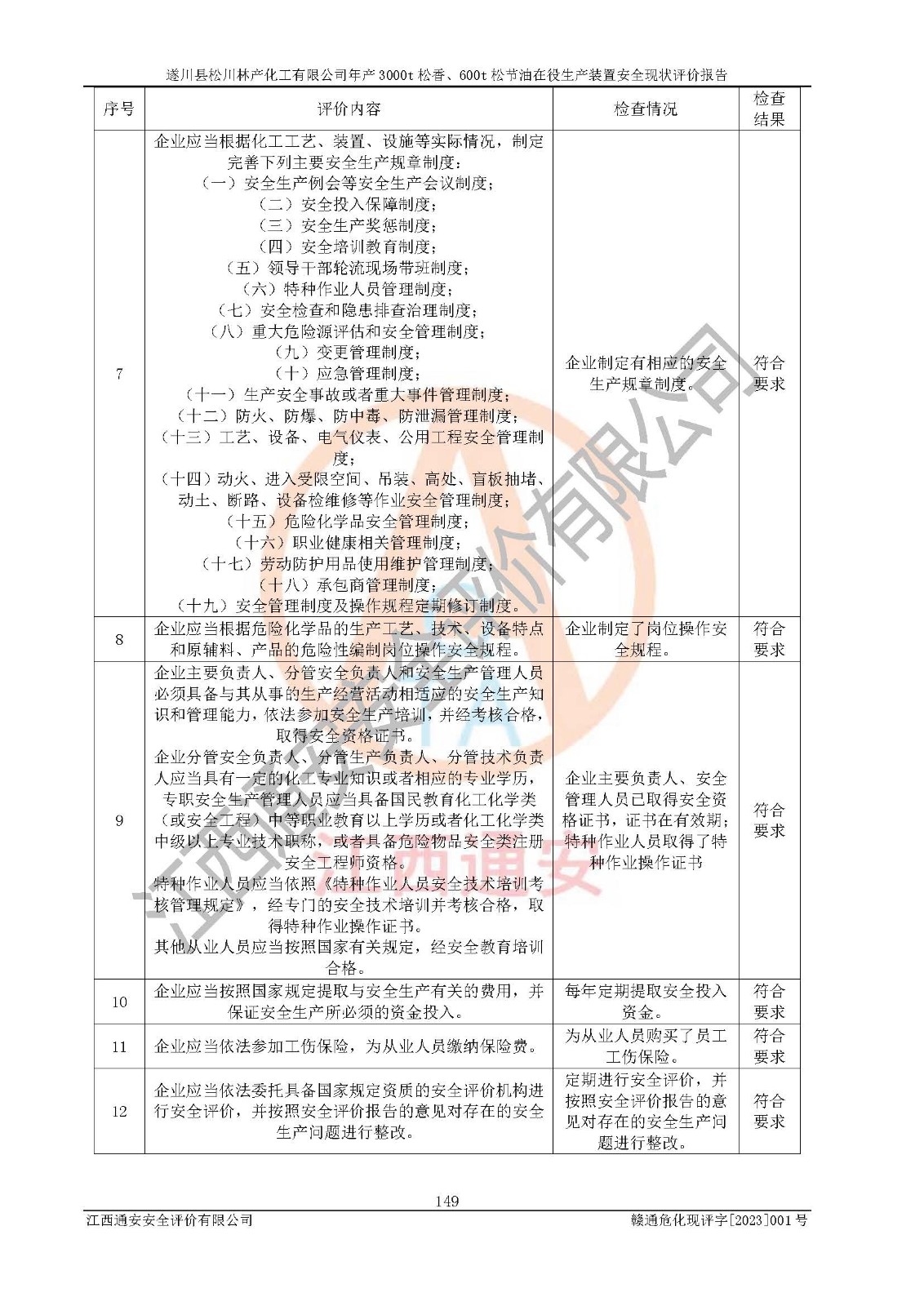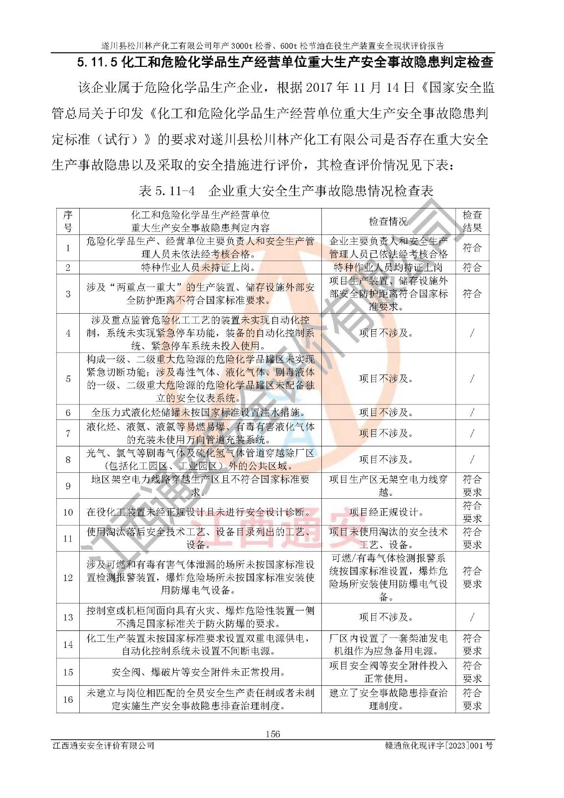 評價報告名稱 | 遂川縣松川林產(chǎn)化工有限公司年產(chǎn)3000t松香、600t松節(jié)油在役生產(chǎn)裝置安全現(xiàn)狀評價報告 | |||