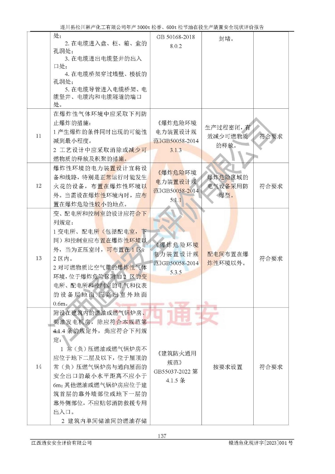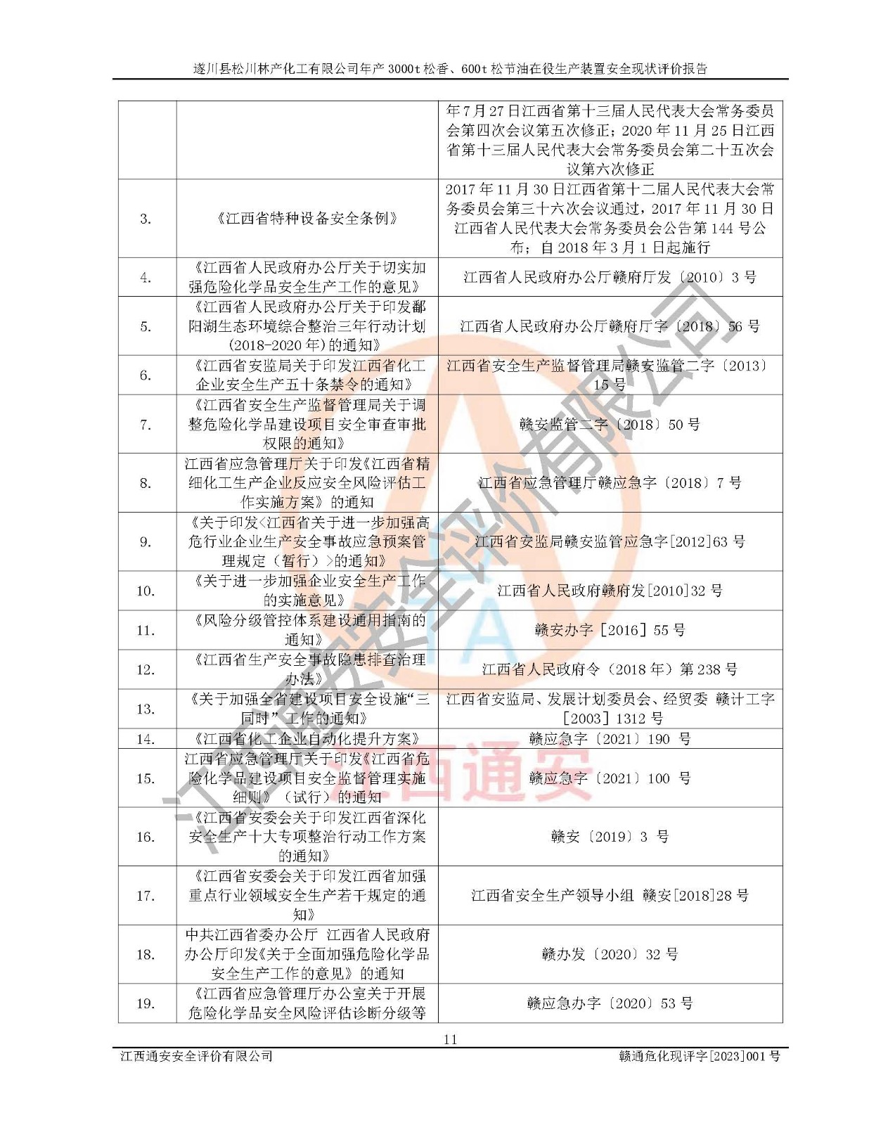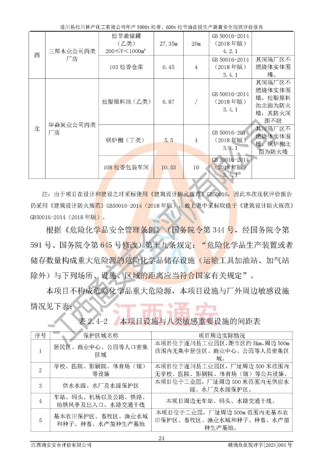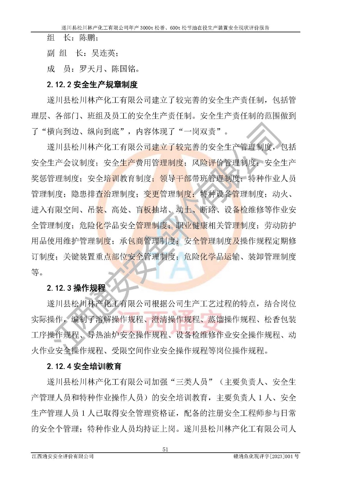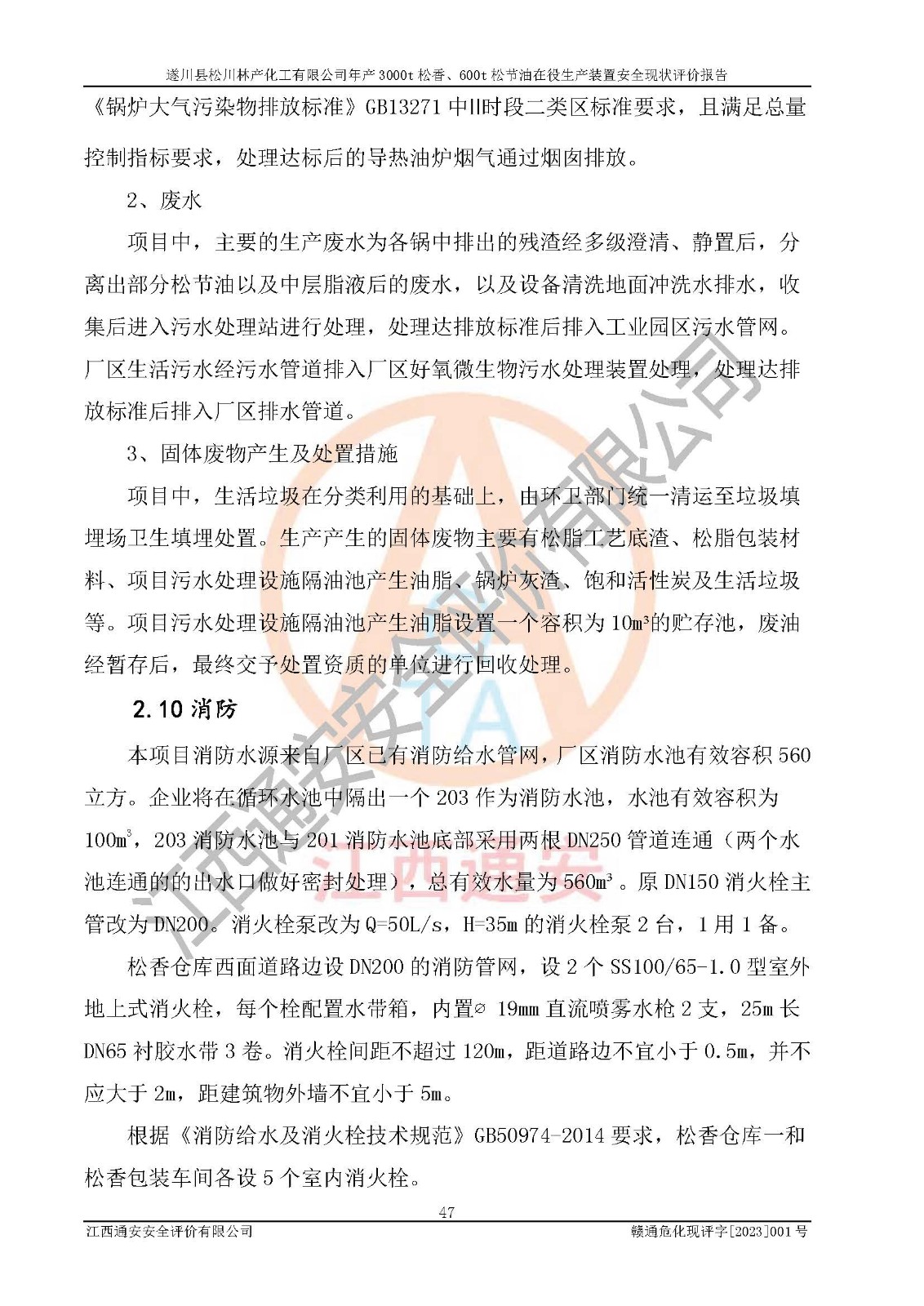 評價報告名稱 | 遂川縣松川林產(chǎn)化工有限公司年產(chǎn)3000t松香、600t松節(jié)油在役生產(chǎn)裝置安全現(xiàn)狀評價報告 | |||