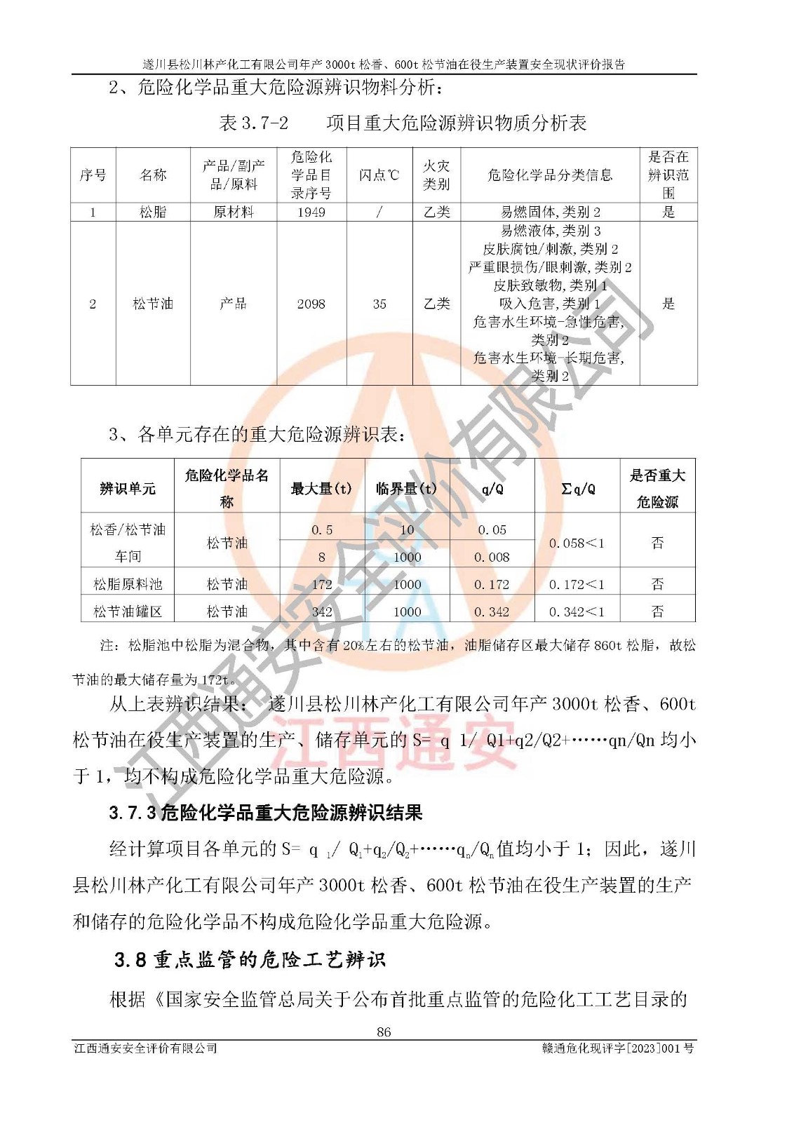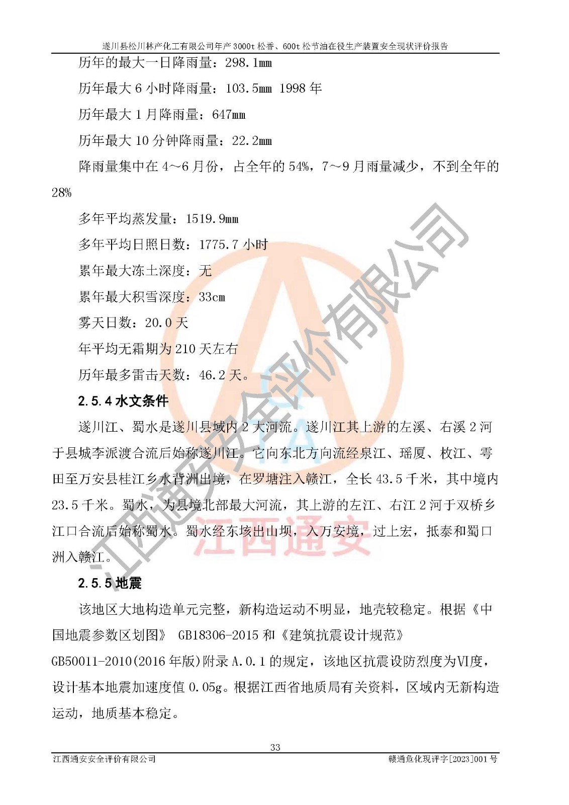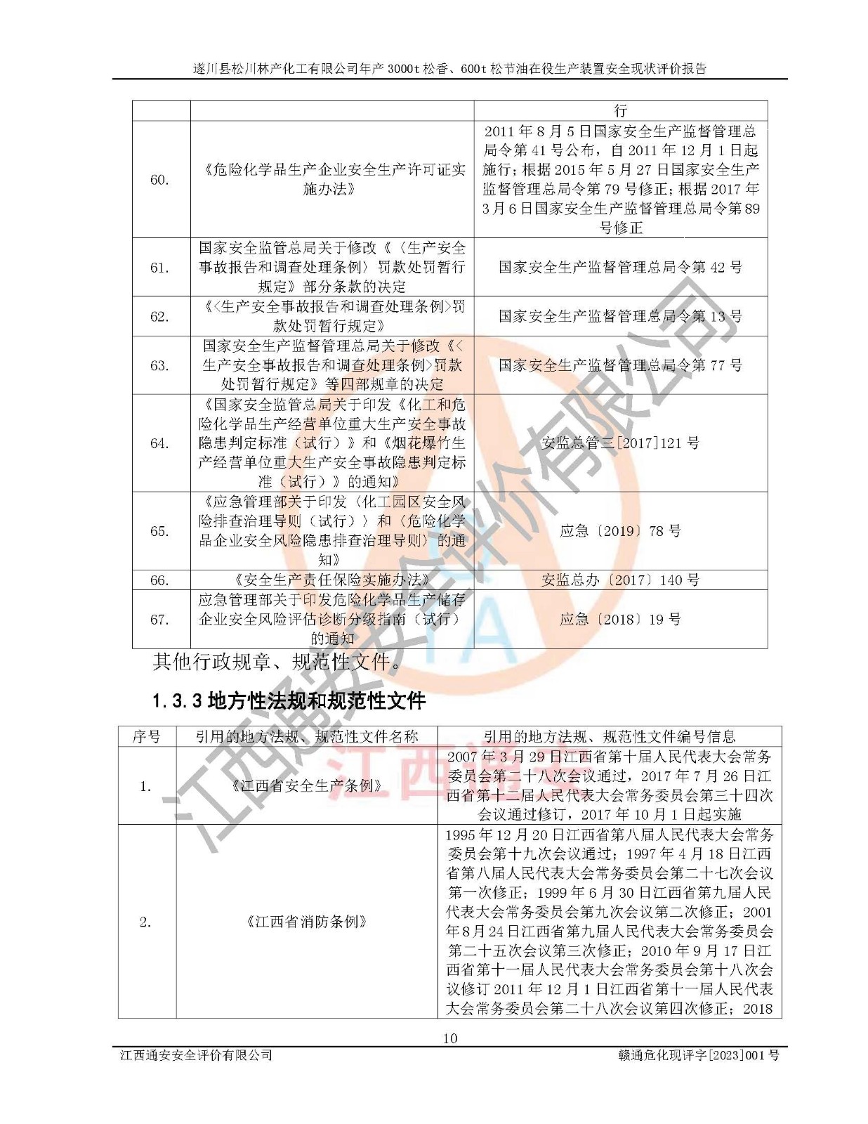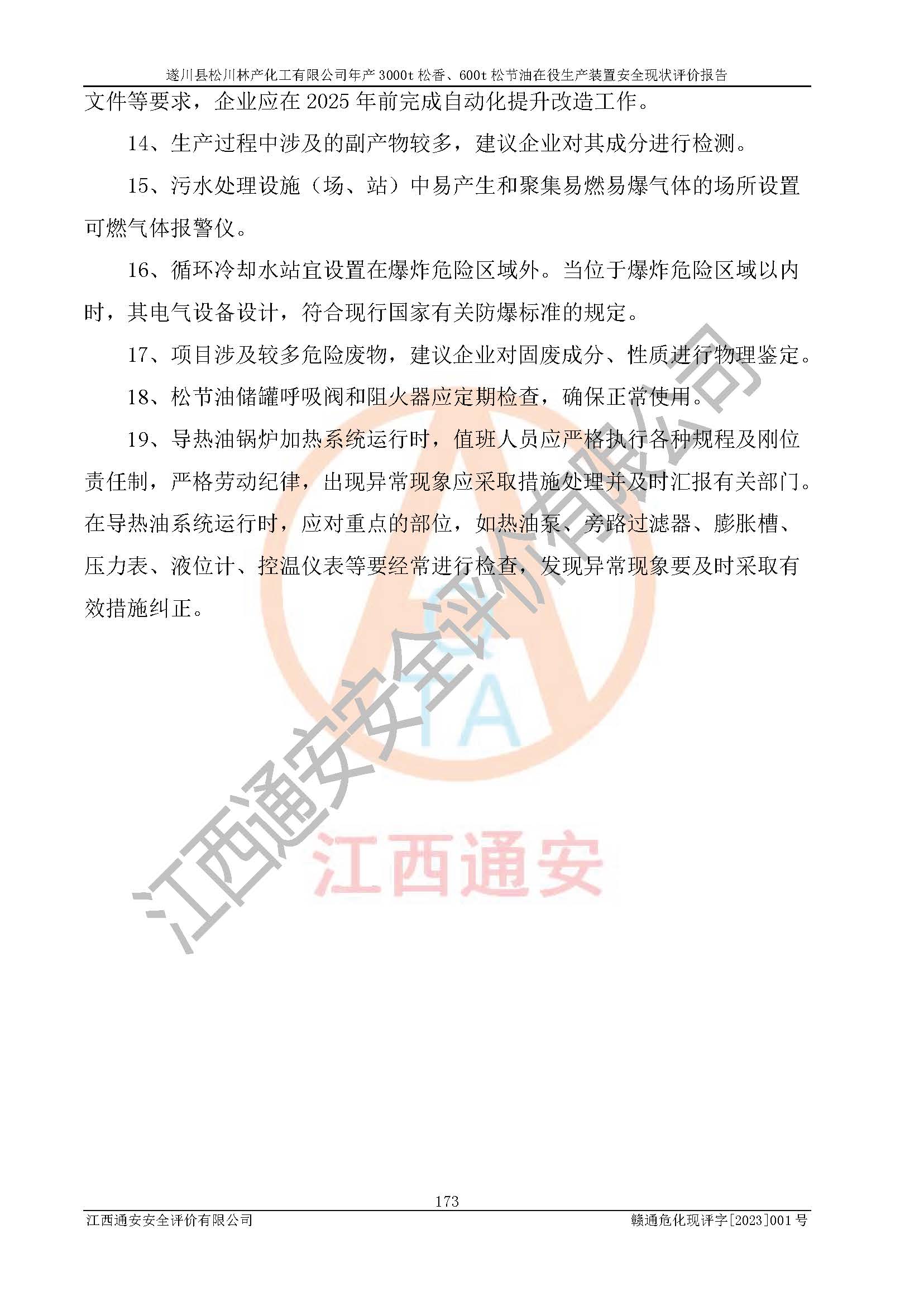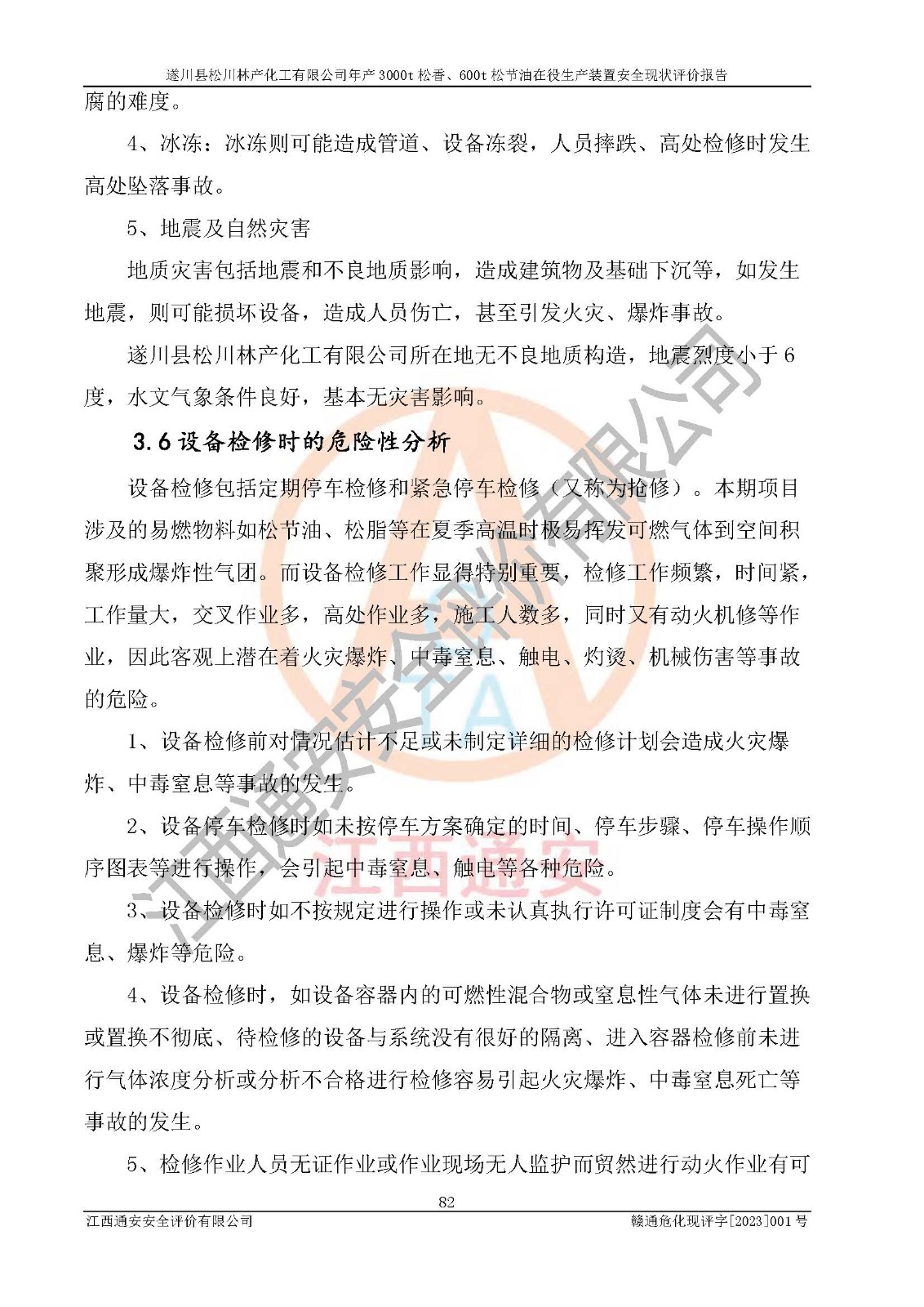 評價報告名稱 | 遂川縣松川林產(chǎn)化工有限公司年產(chǎn)3000t松香、600t松節(jié)油在役生產(chǎn)裝置安全現(xiàn)狀評價報告 | |||