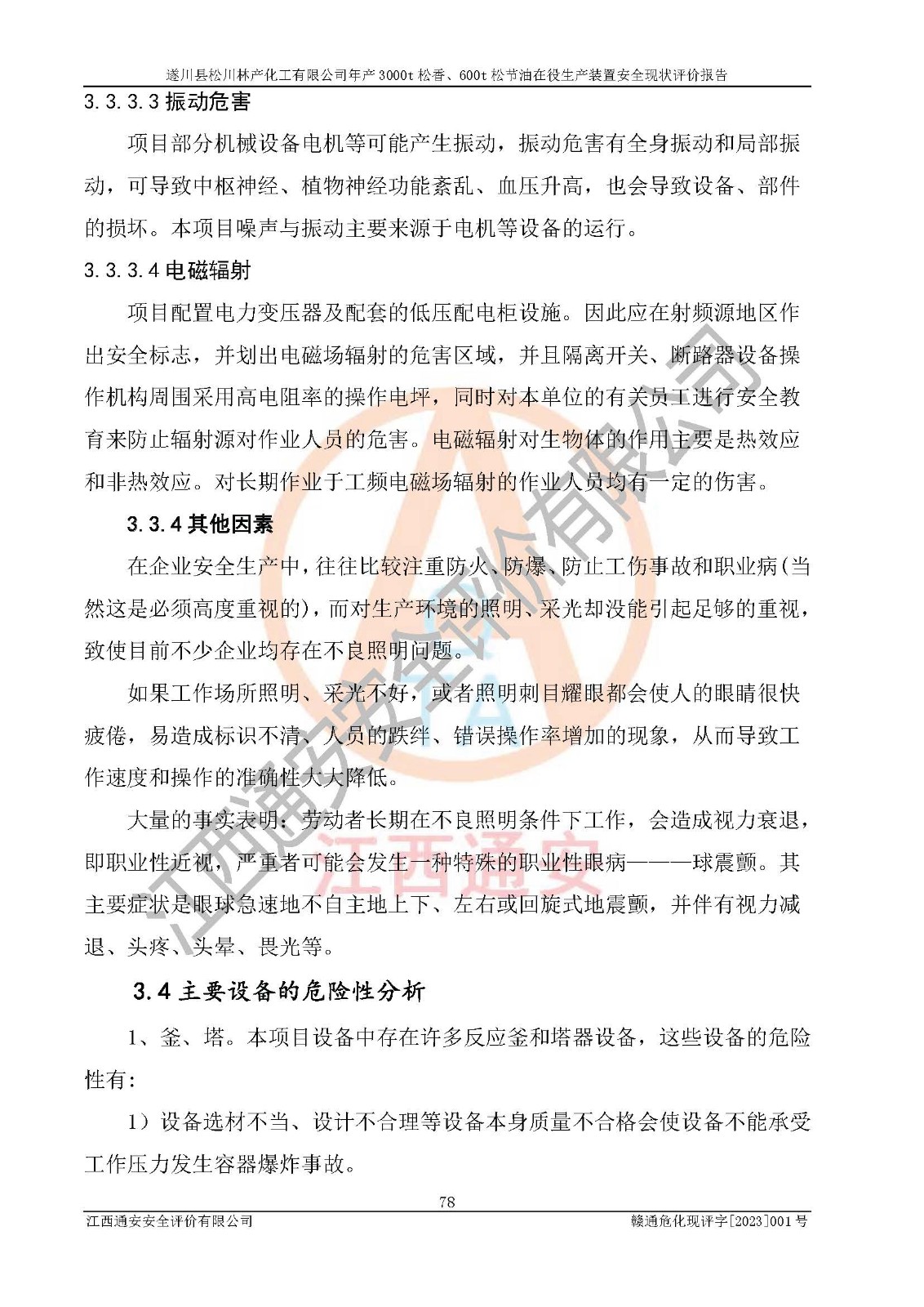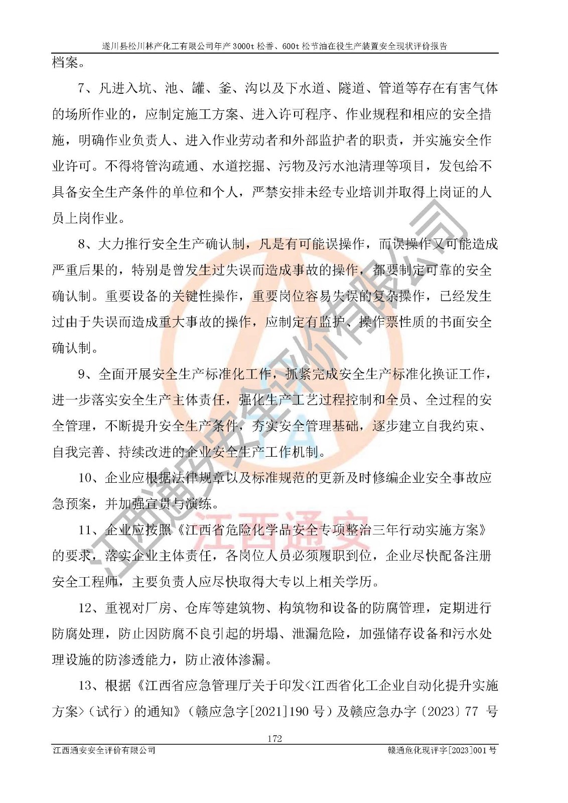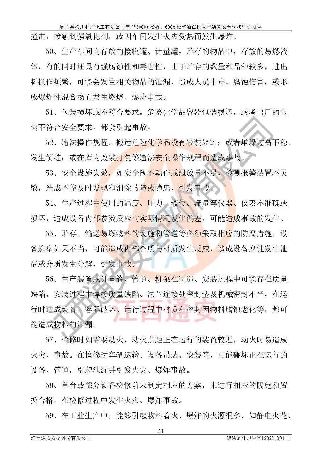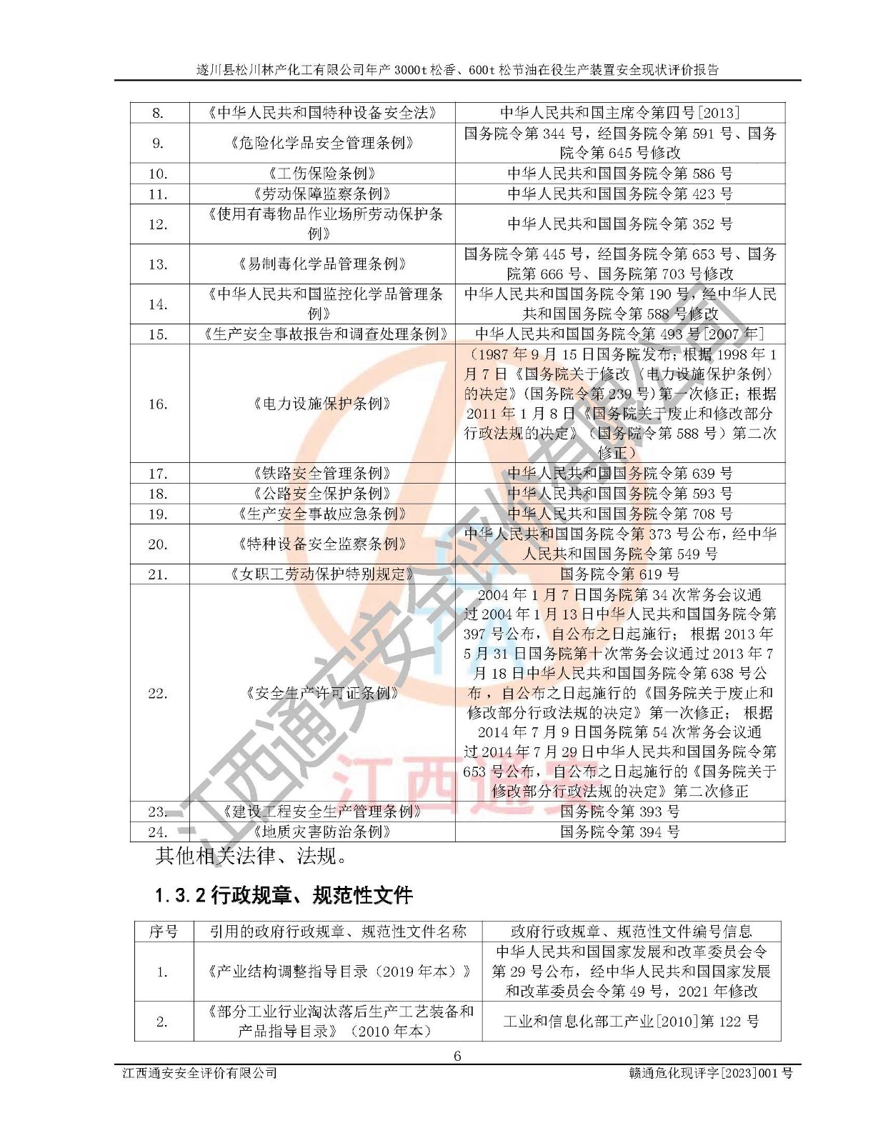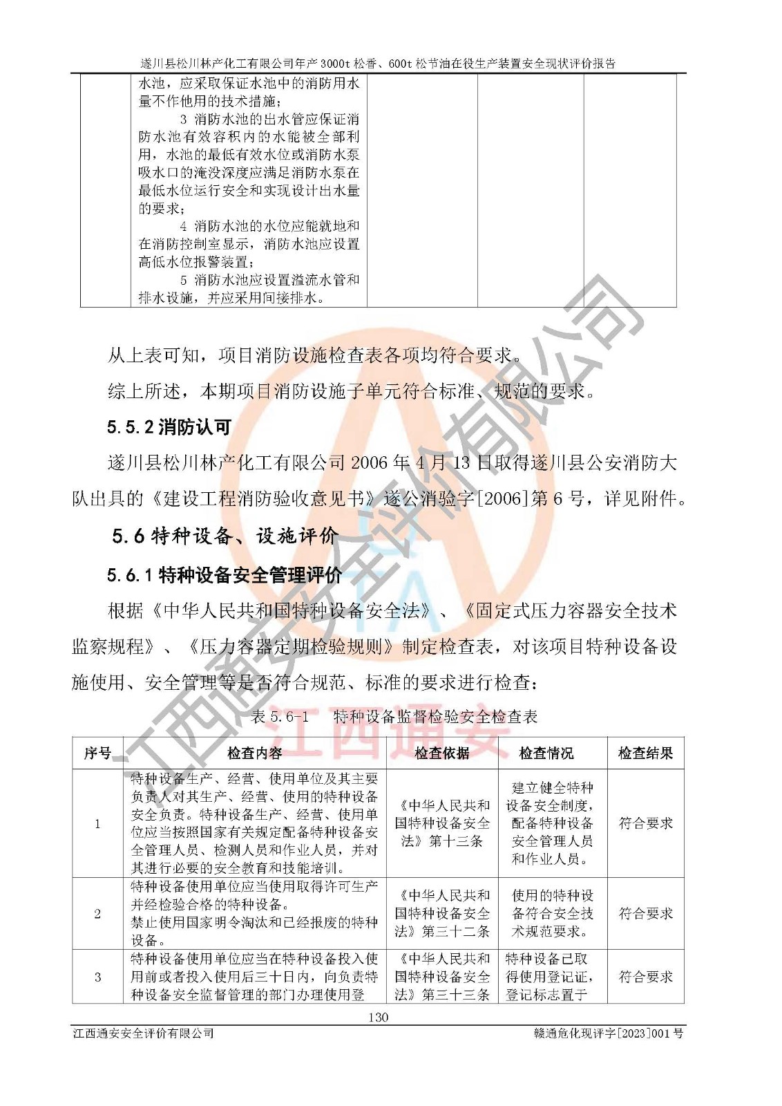 評價報告名稱 | 遂川縣松川林產(chǎn)化工有限公司年產(chǎn)3000t松香、600t松節(jié)油在役生產(chǎn)裝置安全現(xiàn)狀評價報告 | |||