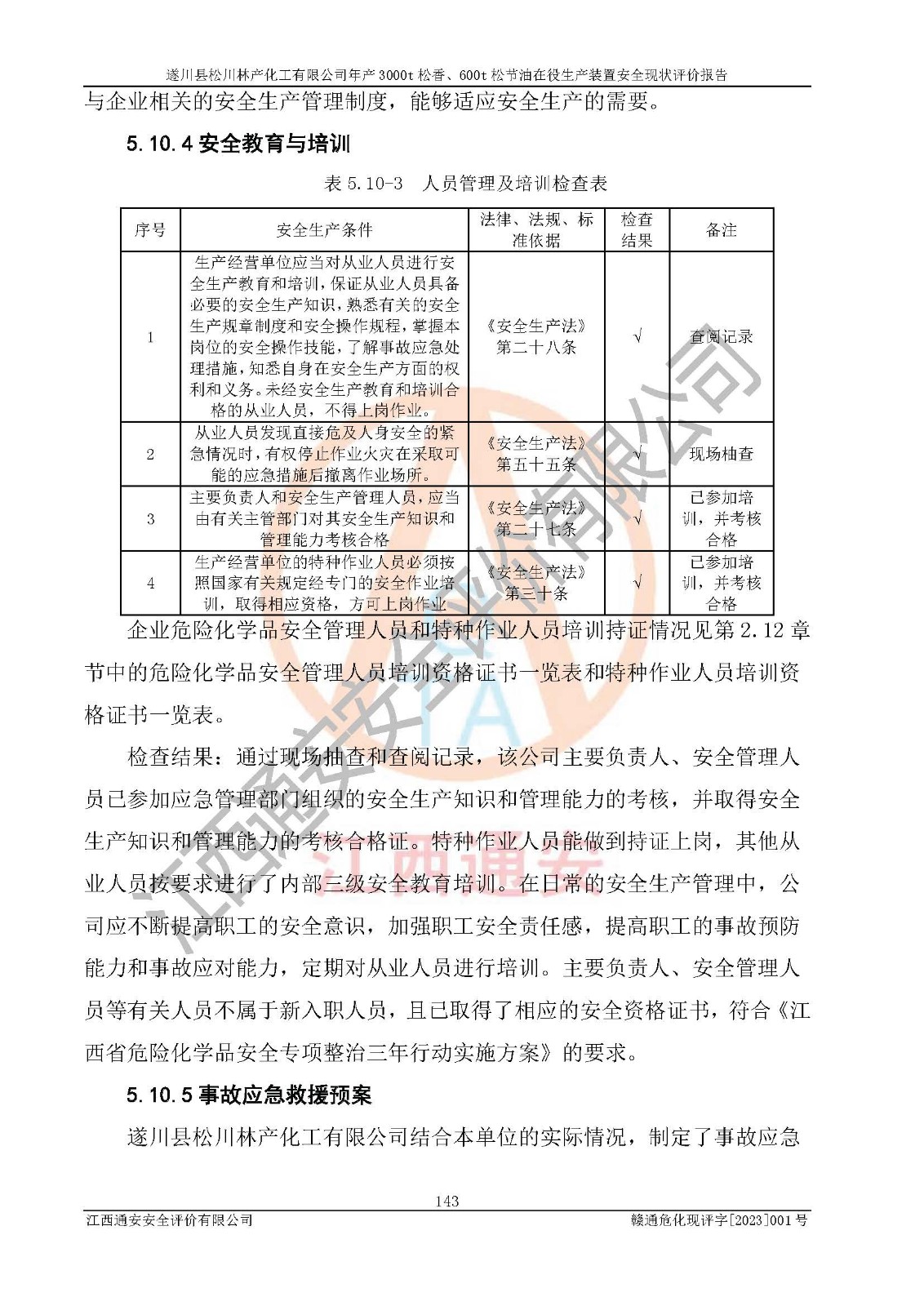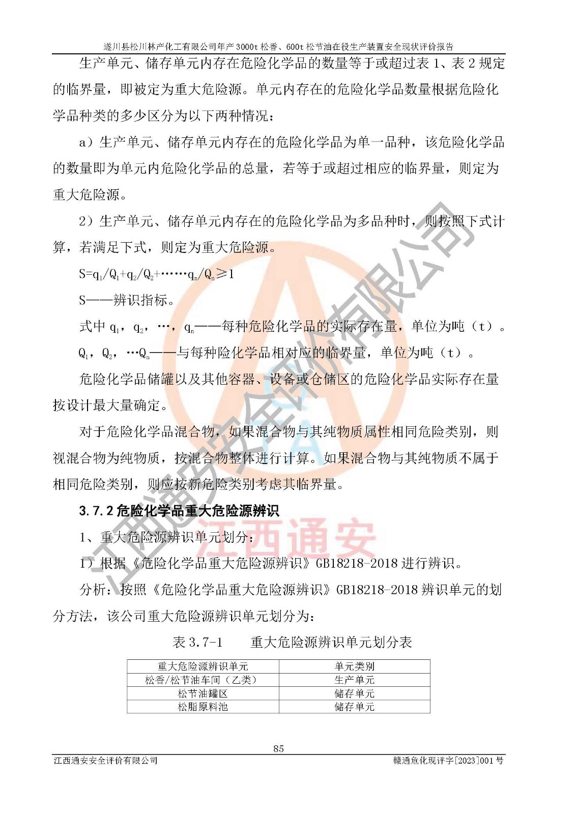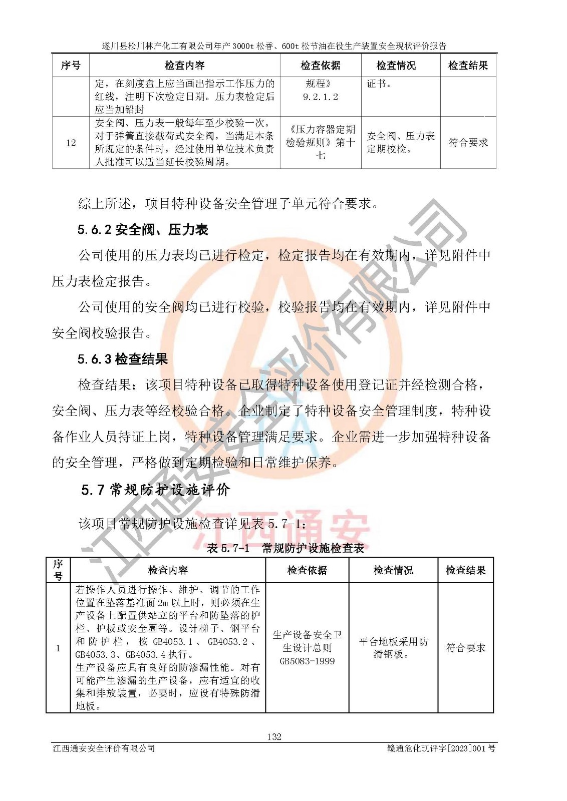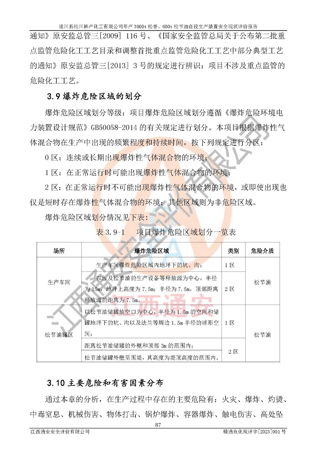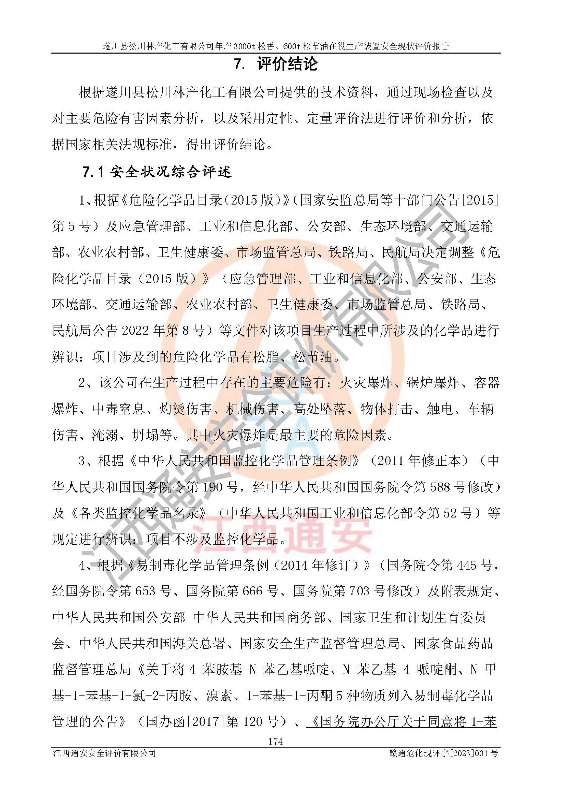 評價報告名稱 | 遂川縣松川林產(chǎn)化工有限公司年產(chǎn)3000t松香、600t松節(jié)油在役生產(chǎn)裝置安全現(xiàn)狀評價報告 | |||
