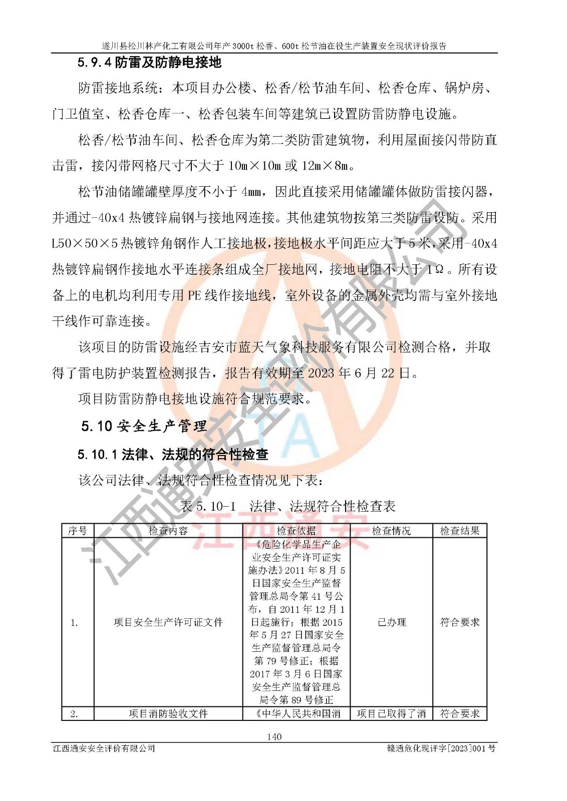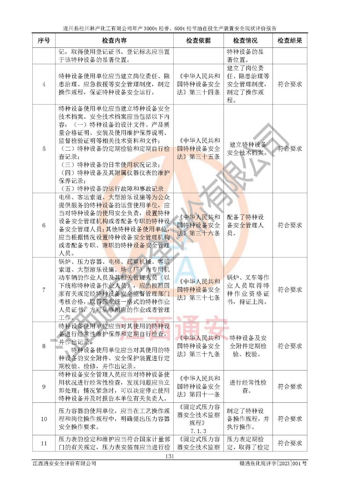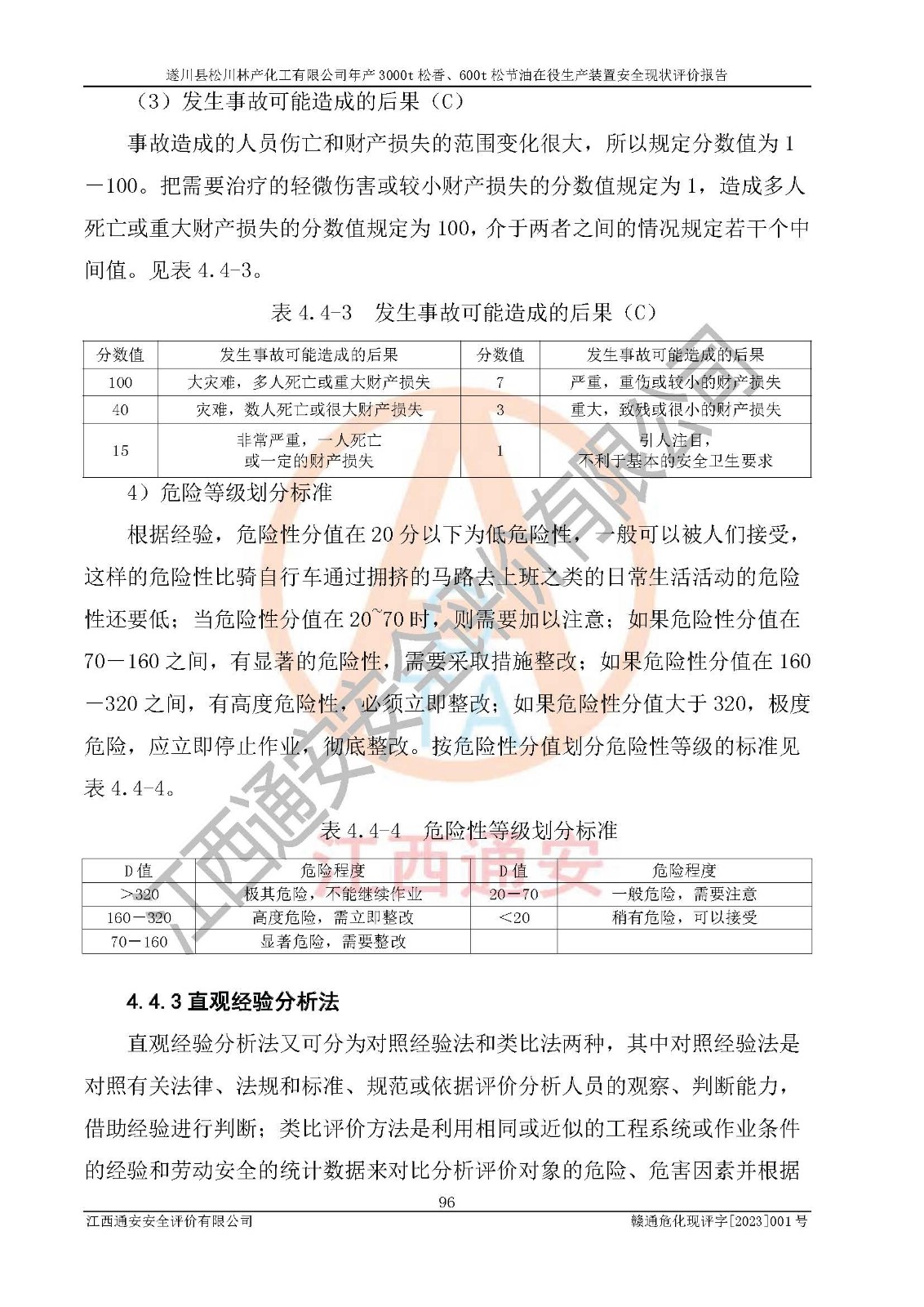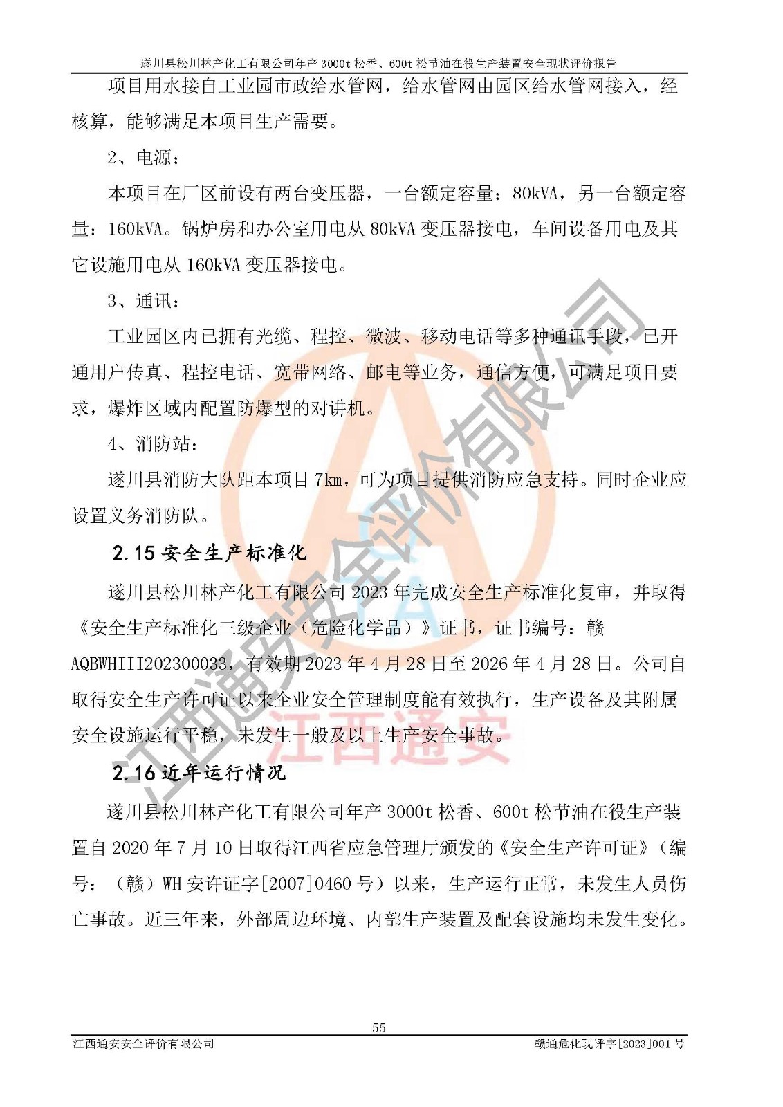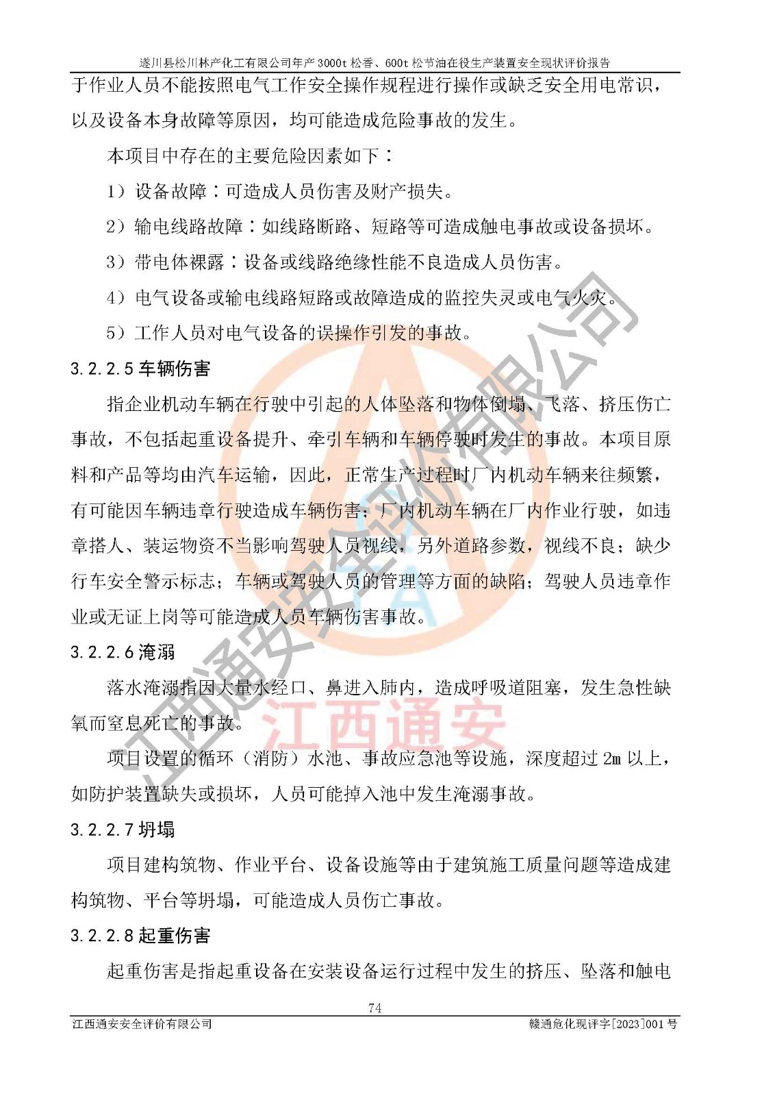 評價報告名稱 | 遂川縣松川林產(chǎn)化工有限公司年產(chǎn)3000t松香、600t松節(jié)油在役生產(chǎn)裝置安全現(xiàn)狀評價報告 | |||