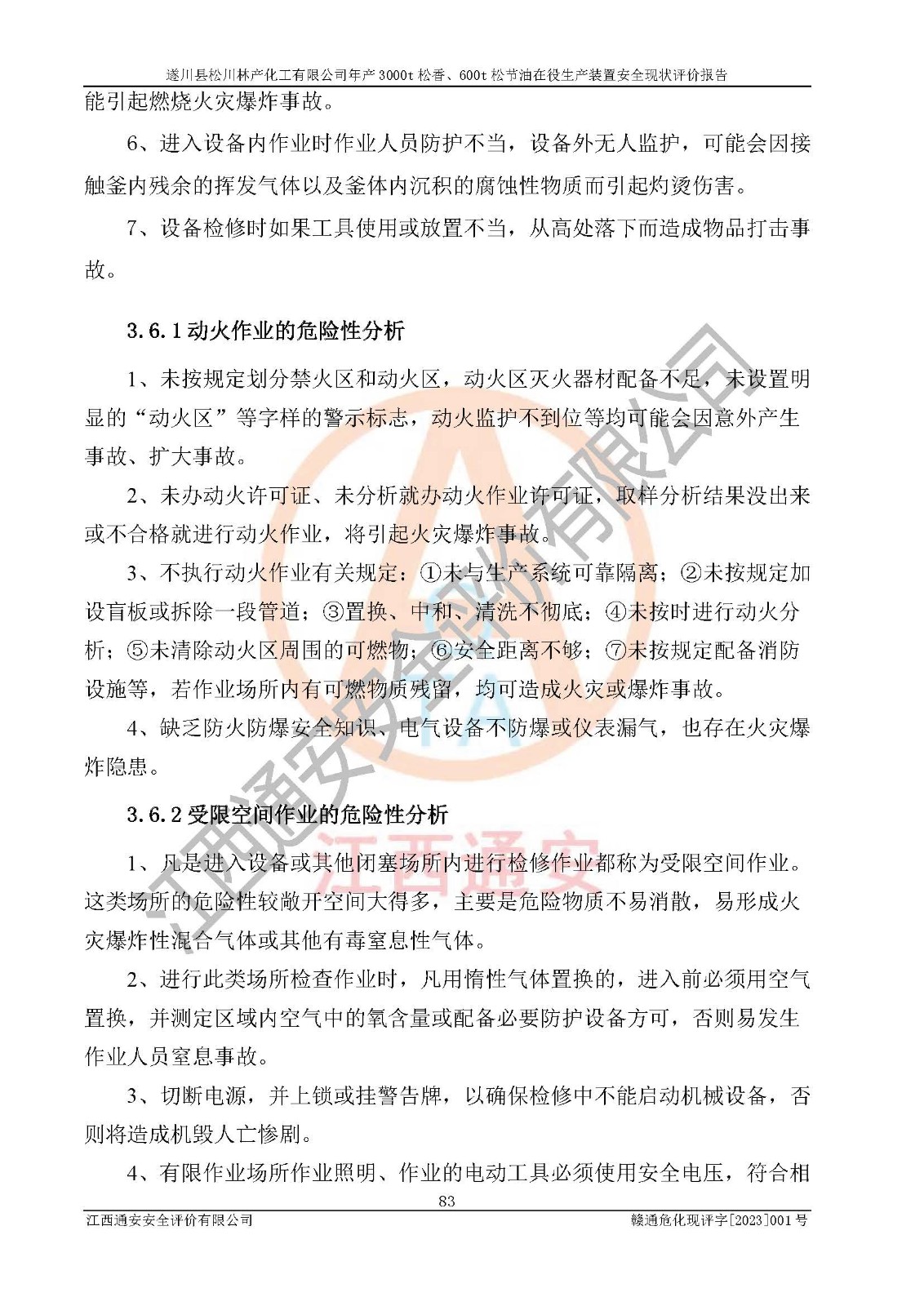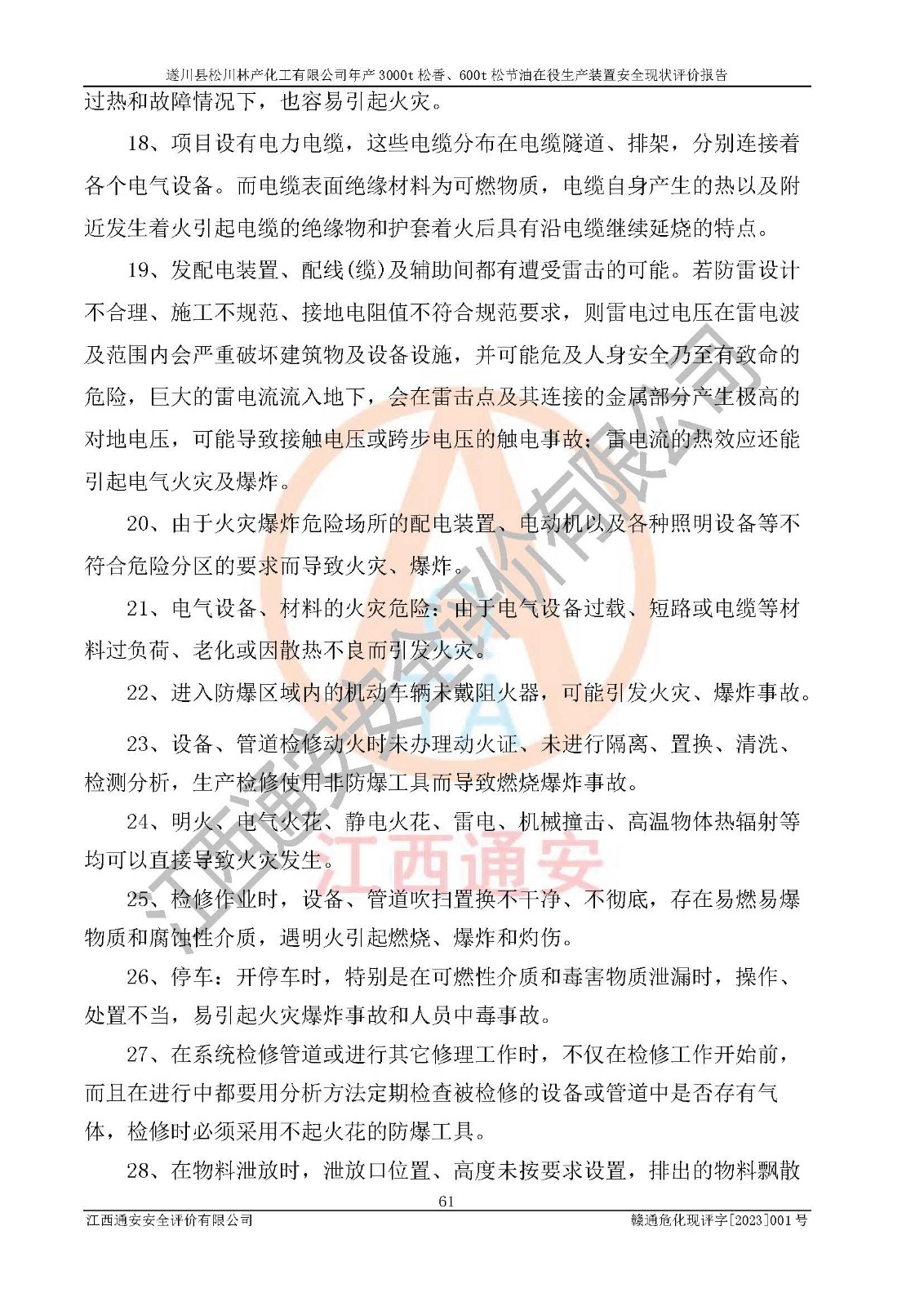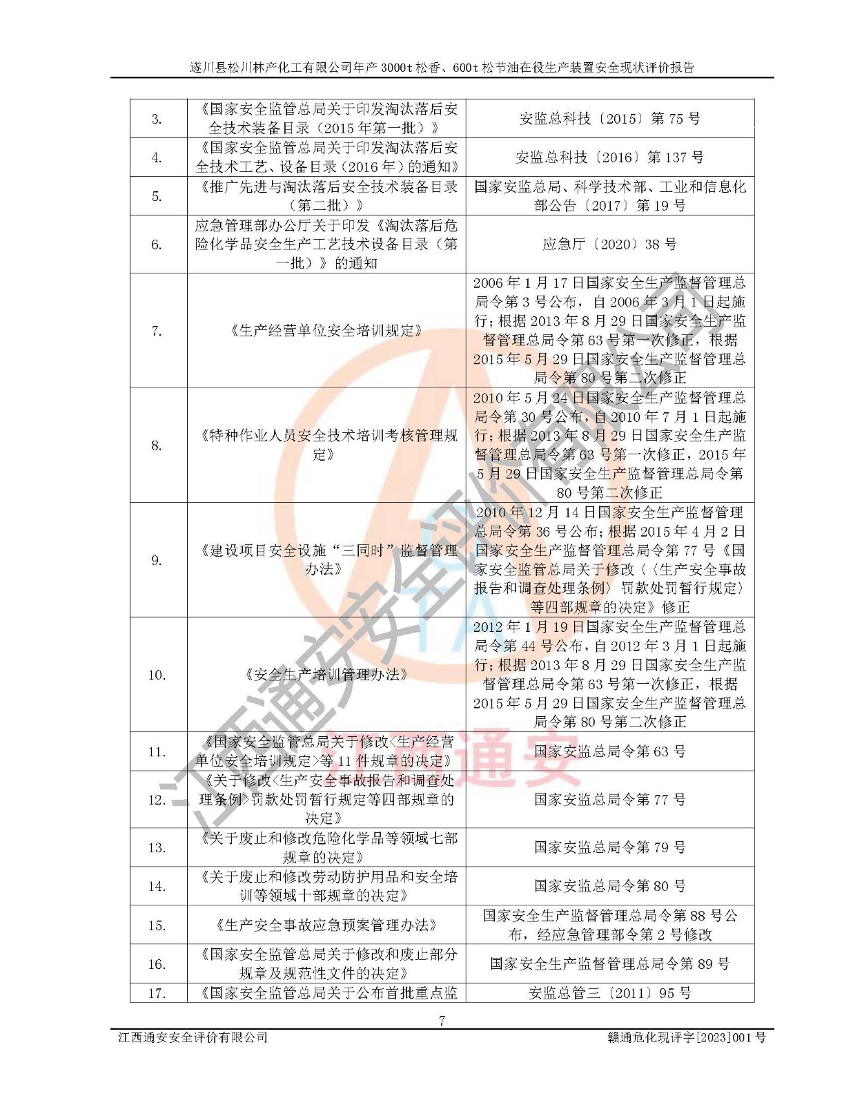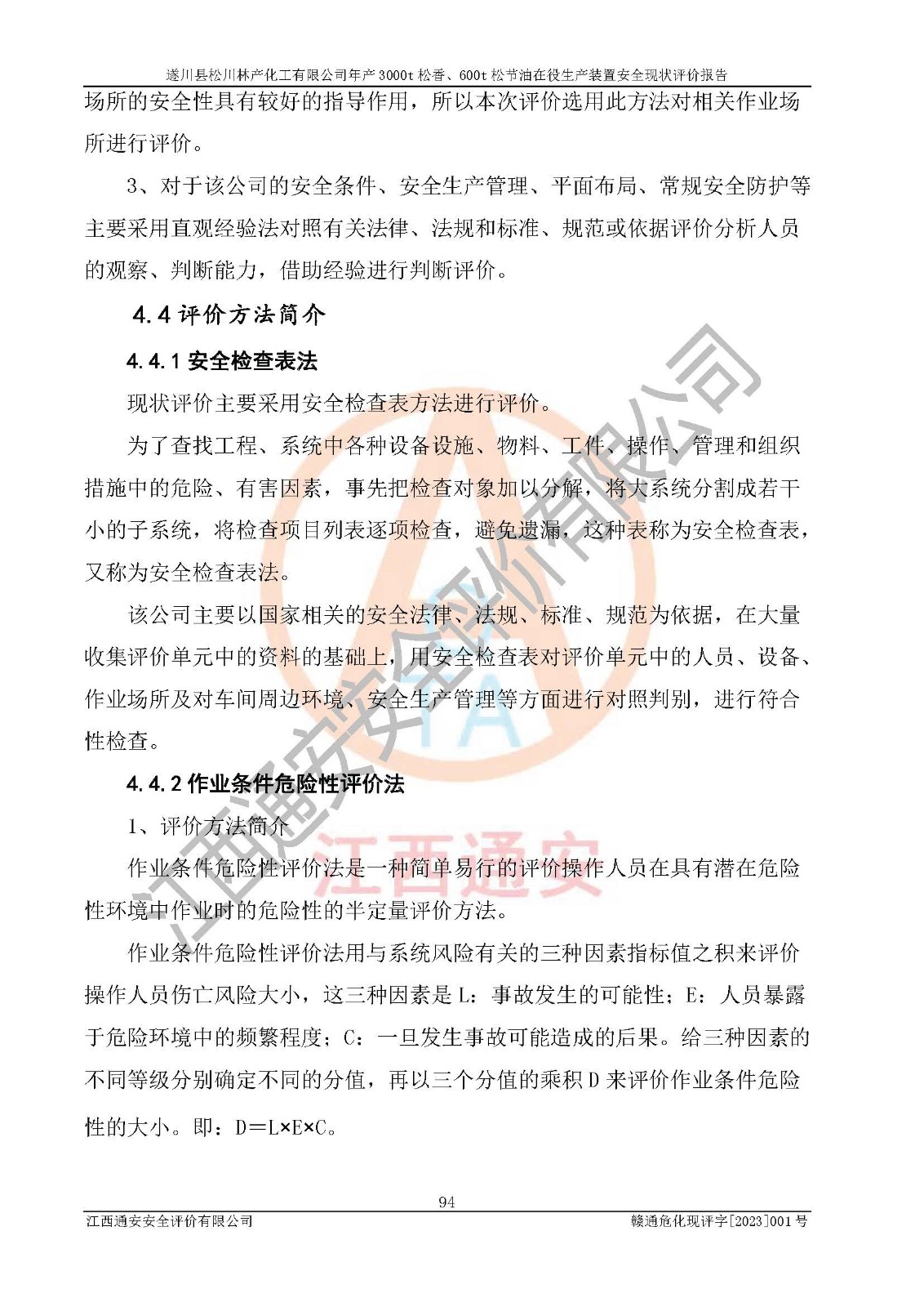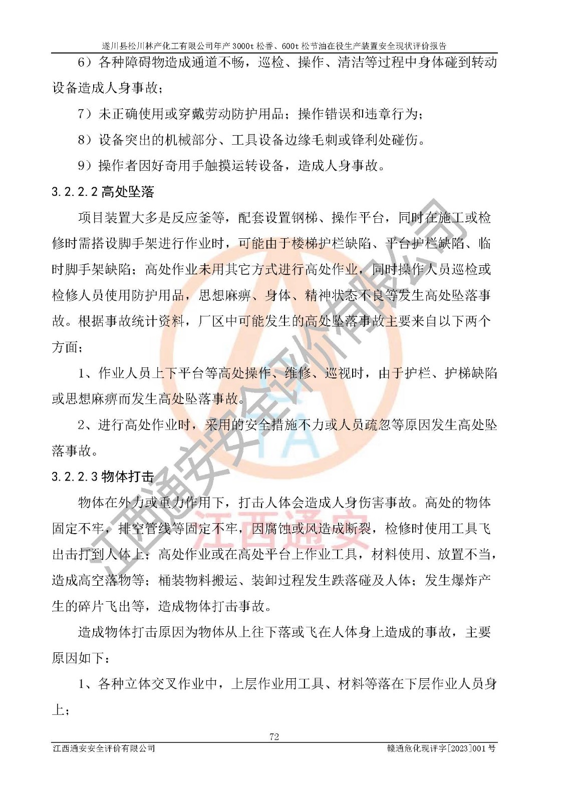 評價報告名稱 | 遂川縣松川林產(chǎn)化工有限公司年產(chǎn)3000t松香、600t松節(jié)油在役生產(chǎn)裝置安全現(xiàn)狀評價報告 | |||