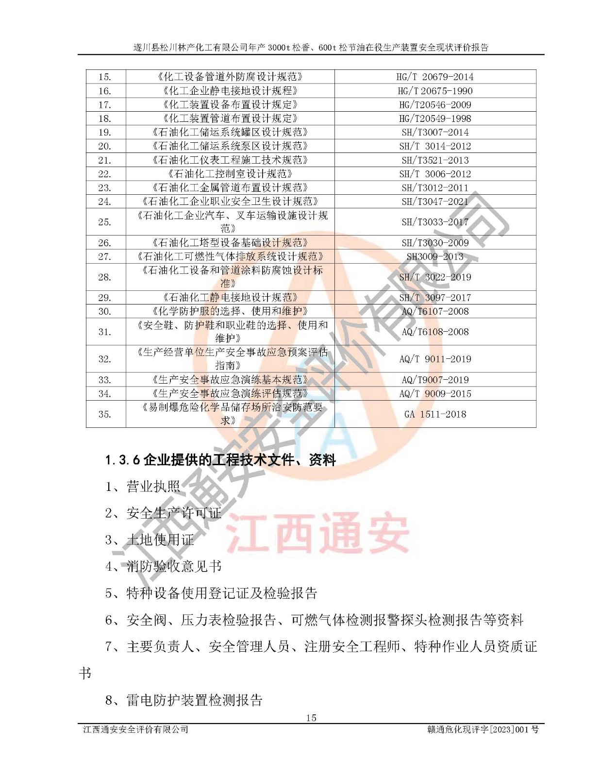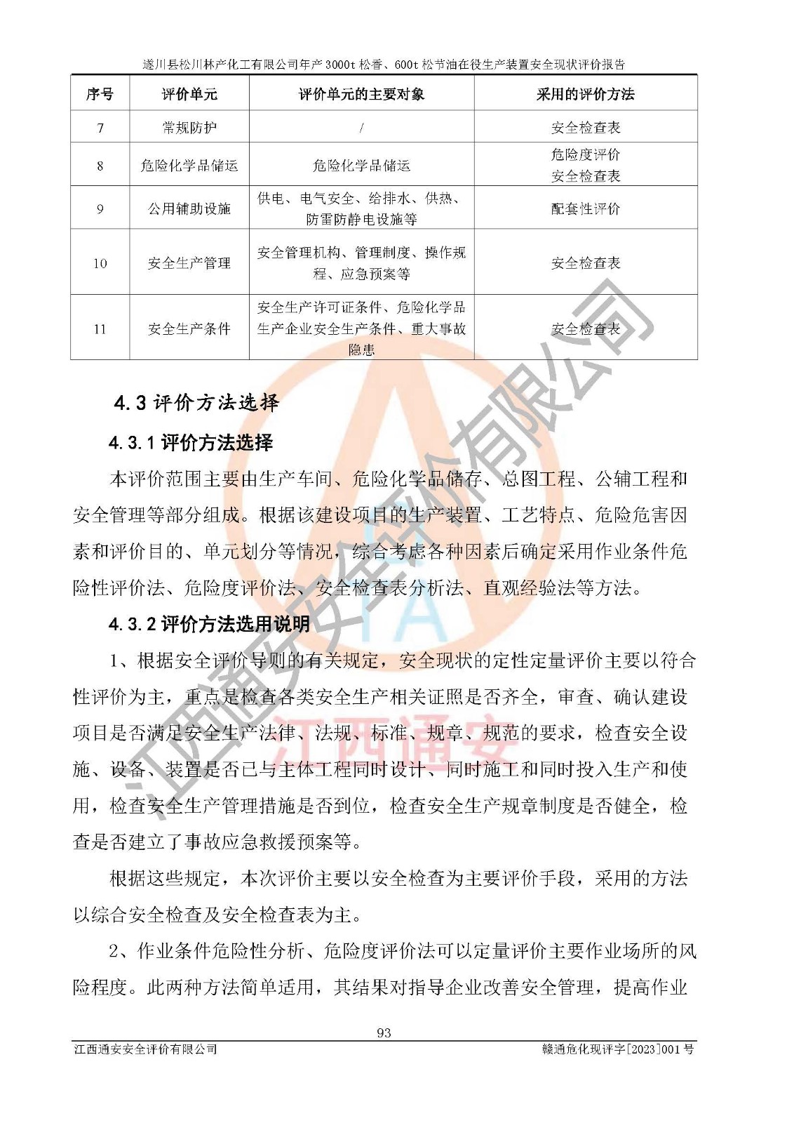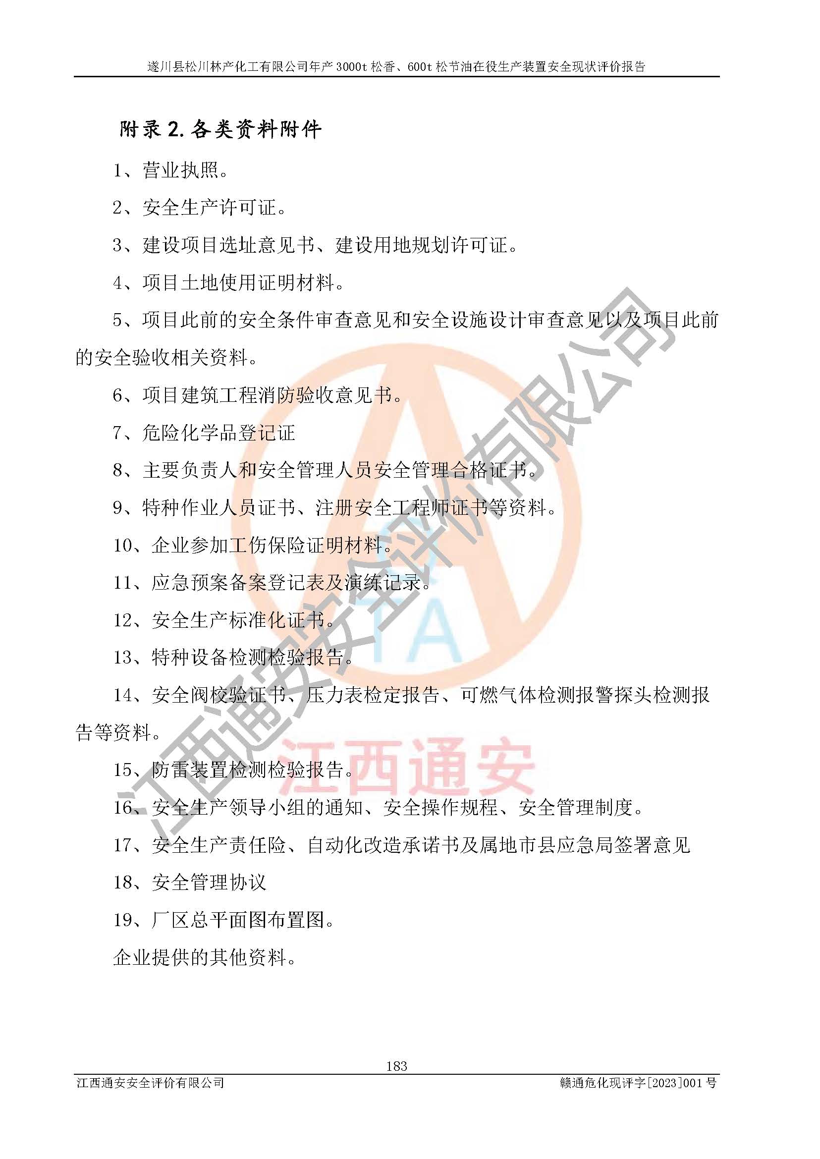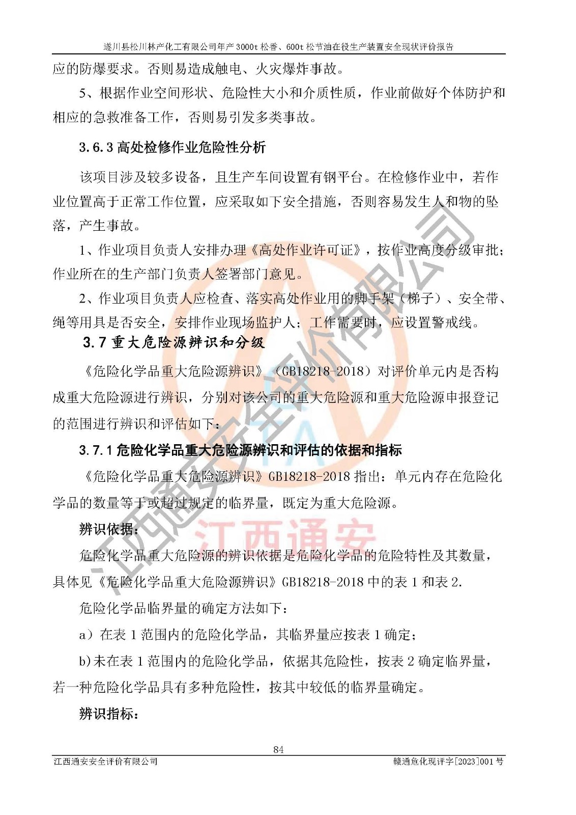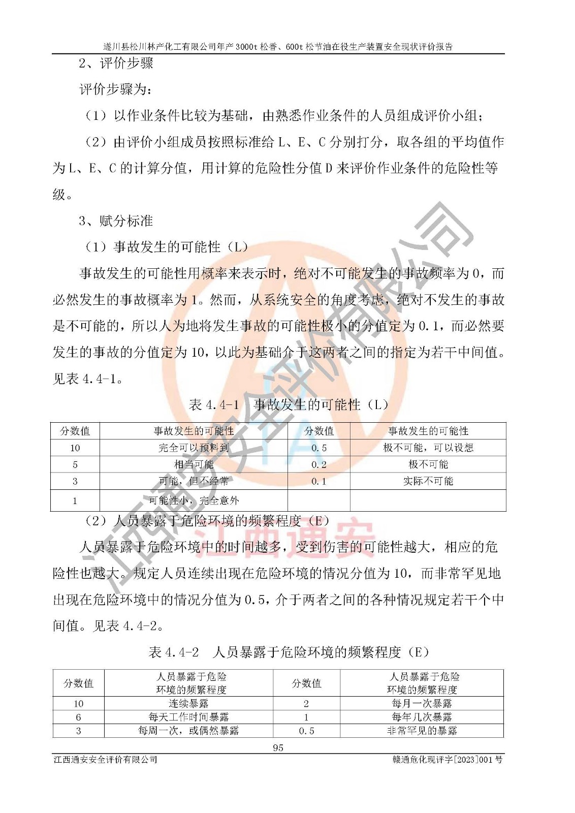評價報告名稱 | 遂川縣松川林產(chǎn)化工有限公司年產(chǎn)3000t松香、600t松節(jié)油在役生產(chǎn)裝置安全現(xiàn)狀評價報告 | |||