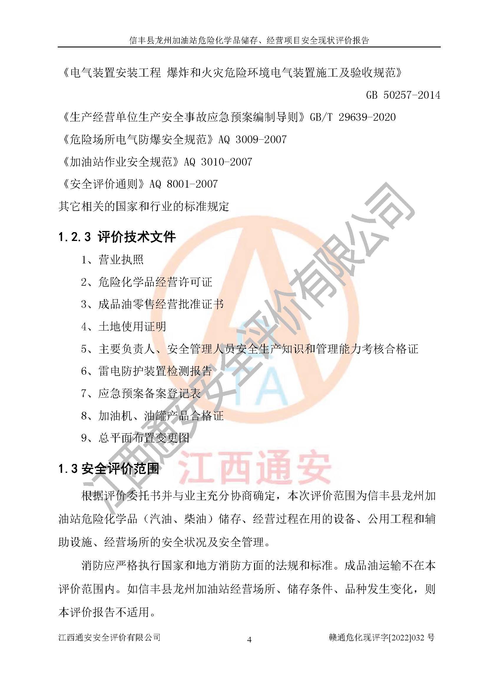 評價報告名稱 | 信豐縣龍州加油站危險化學品儲存、經(jīng)營項目安全現(xiàn)狀評價報告 | |||