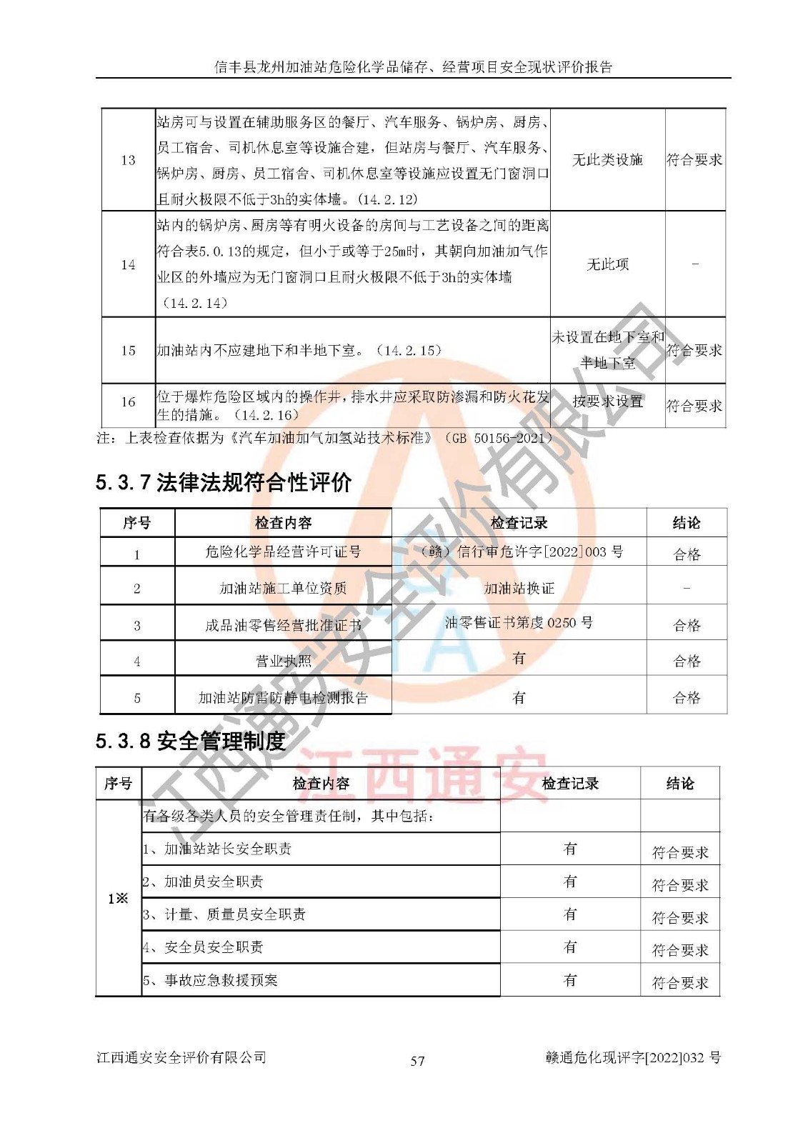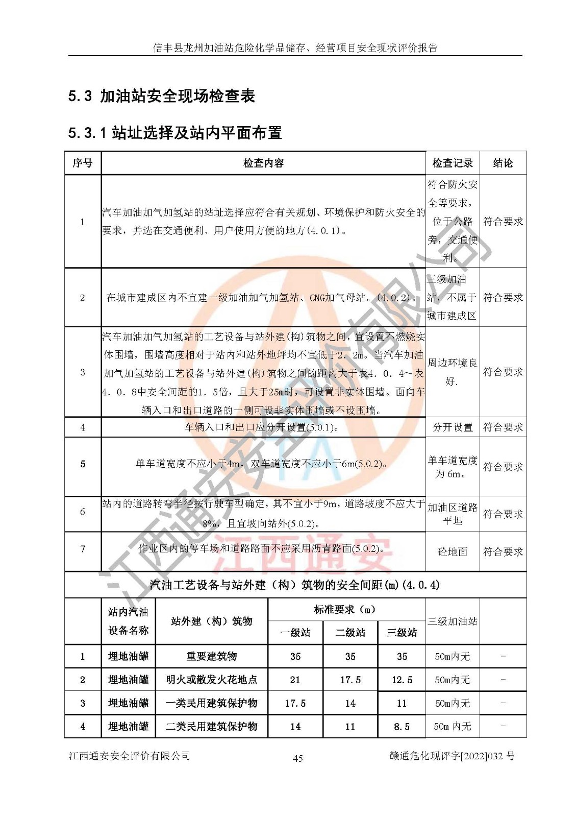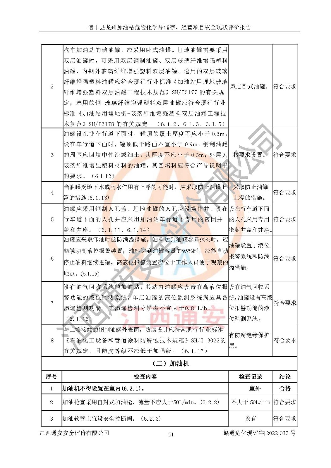 評價結(jié)論 | 信豐縣龍州加油站危險化學品儲存、經(jīng)營項目安全現(xiàn)狀符合危險化學品經(jīng)營安全條件。 | |||