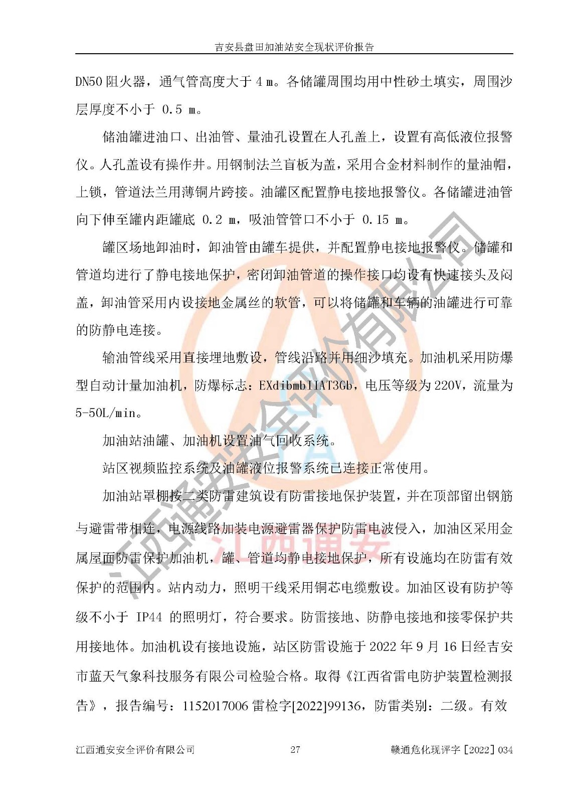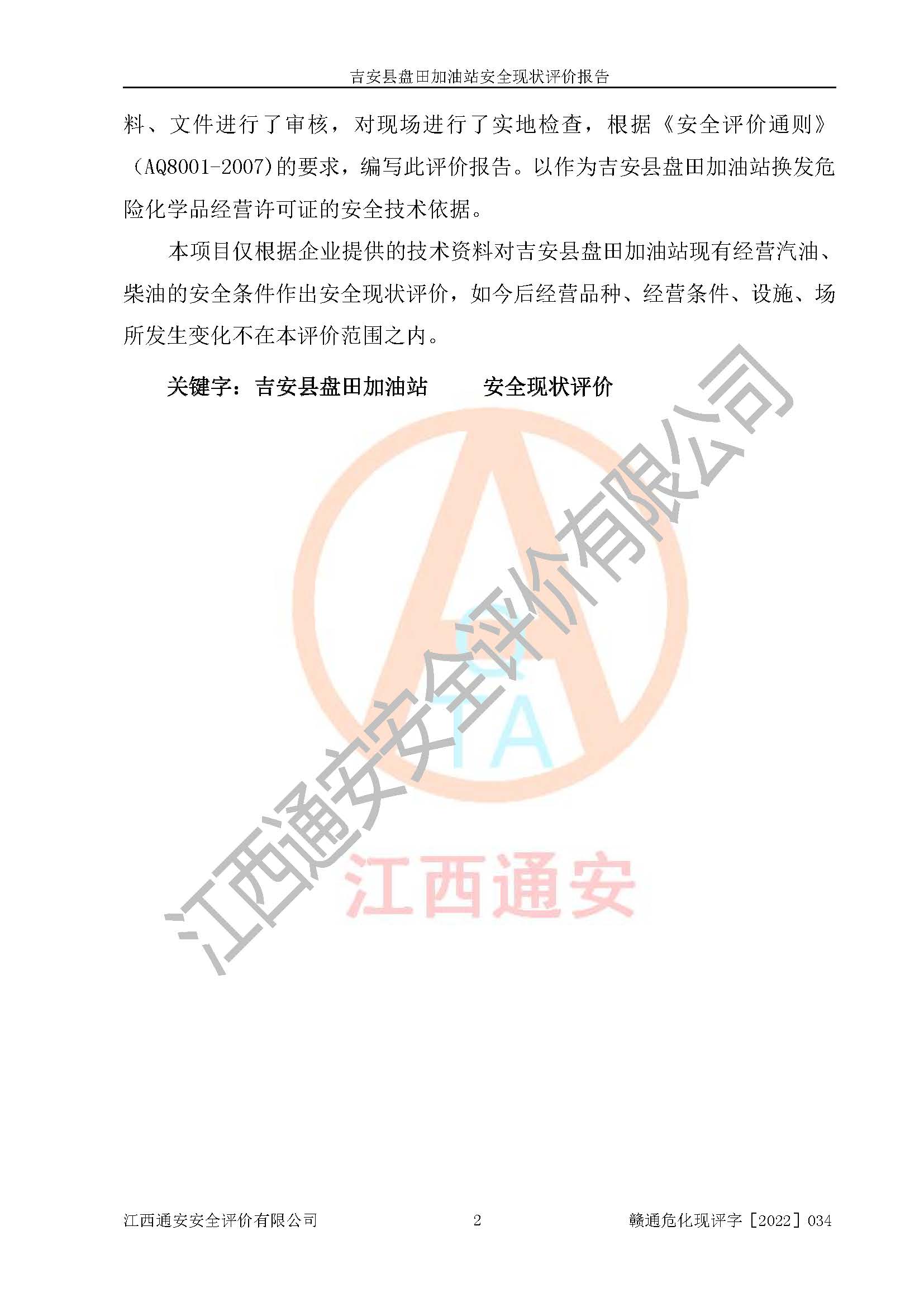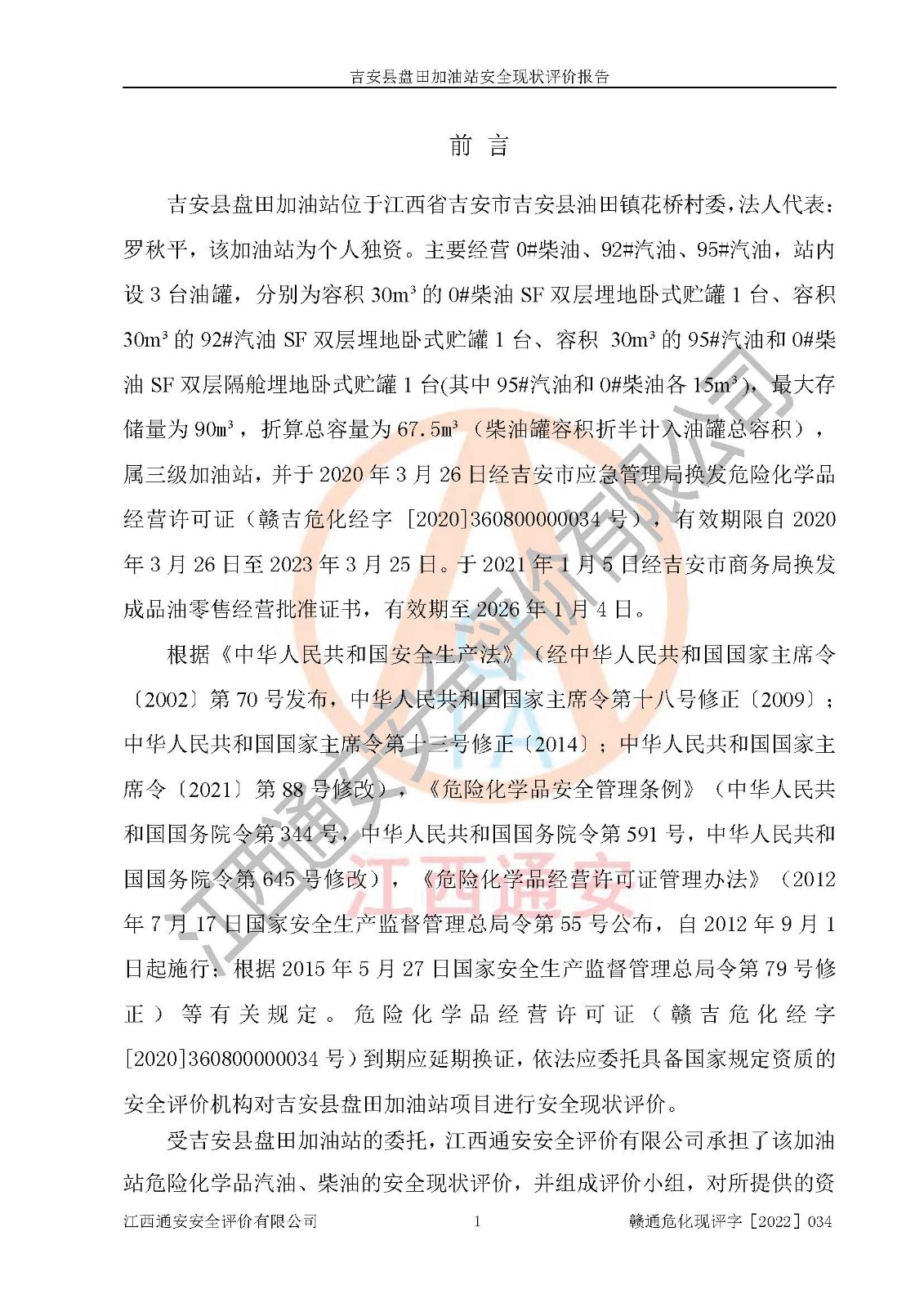 評價報告名稱 | 吉安縣盤田加油站安全現(xiàn)狀評價報告 | |||