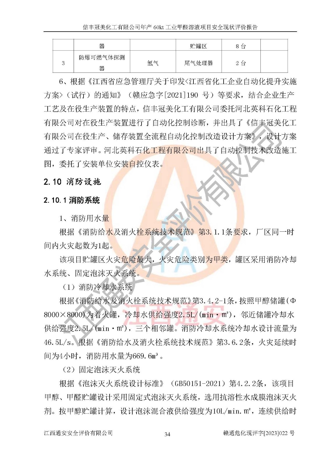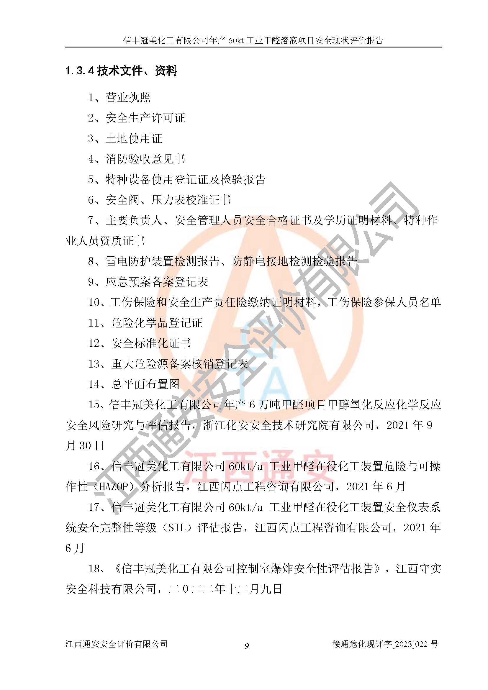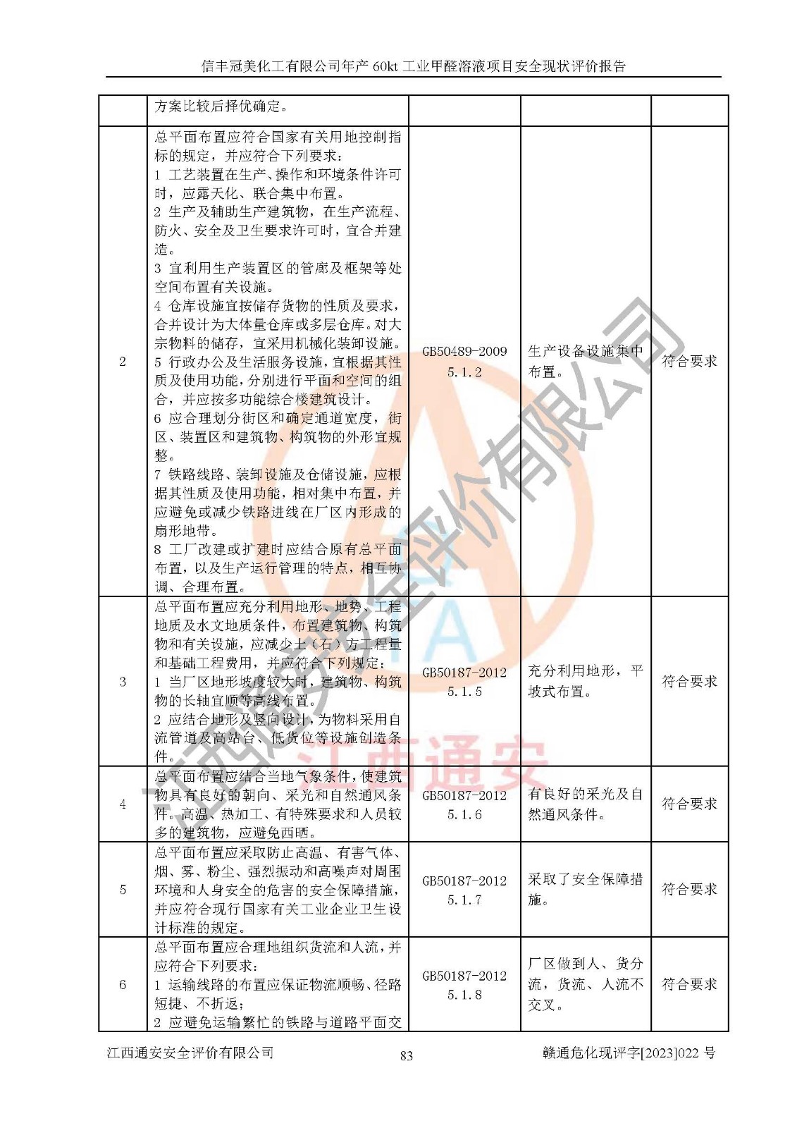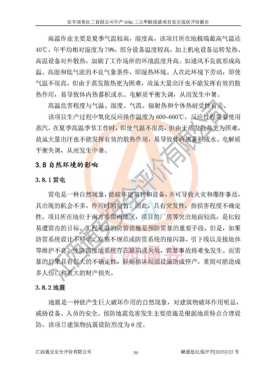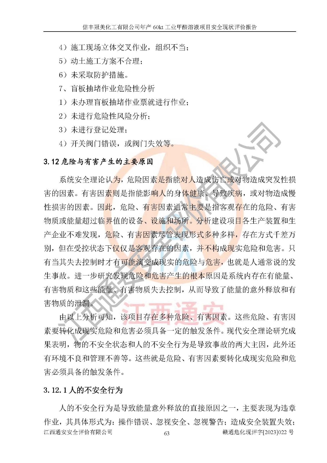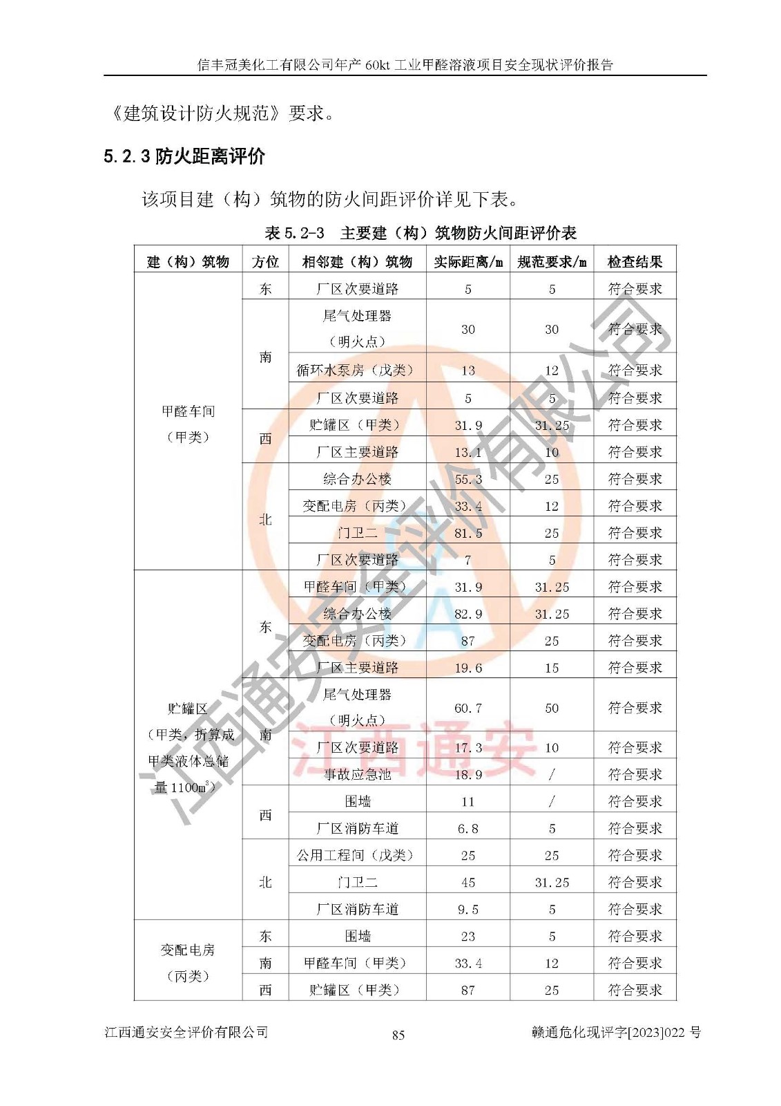 信豐冠美化工有限公司位于江西省贛州市信豐縣工業(yè)園偉邦路,法定**人為汪學斌,成立于2007年04月09日,注冊資本壹仟萬元整,營業(yè)執(zhí)照經營范圍為工業(yè)甲醛、尿醛樹脂膠生產、銷售(憑許可證經營)等。 信豐冠美化工有限公司2020年07月23日取得了《安全生產許可證》,許可證編號:(贛)WH安許證字[2008]0500號,許可范圍為工業(yè)甲醛溶液(60kt/a),**期2020年08月06日至2023年08月05日。該公司2022年8月30日取得了安全生產標準化證書,證書編號:贛AQBWⅡ[2022]015,**期至2025年8月。該公司現(xiàn)有員工23人,其中專職安全管理人員1人。 根據《江西省危險化學品產業(yè)轉移項目和化工園區(qū)安全風險防控專項整治實施方案》(贛安辦字〔2021〕86 號)要求,為提升生產本質安全,減少重大危險源,信豐冠美化工有限公司對貯罐區(qū)進行了調整,停用1臺甲醇儲罐和1臺甲醇計量罐,2臺甲醇儲罐變更為2臺甲醛儲罐。信豐冠美化工有限公司委托山東富海石化工程有限公司對60kt/a工業(yè)甲醛項目出具了在役化工裝置安全設計診斷及整改設計文本和圖紙(2022年12月),取得了贛州市應急管理局出具的審查意見,并對貯罐區(qū)進行了整改。貯罐區(qū)整改完成后,經辨識,信豐冠美化工有限公司生產、儲存單元不構成危險化學品重大危險源。信豐冠美化工有限公司向信豐縣應急管理局申請了重大危險源核銷,2023年2月2日取得了核銷登記表,核銷編號為HX贛360722[2023]001。 信豐冠美化工有限公司年產60kt工業(yè)甲醛溶液項目生產過程中涉及的原輔材料為甲醇和銀觸媒(催化劑),氮封需要使用氮氣,副反應產物為氫氣,產品為甲醛溶液。根據《危險化學品目錄》,該項目涉及的甲醇、氮氣[壓縮的]、氫氣、甲醛和甲醛溶液屬于危險化學品。經辨識,甲醇和氫氣屬于重點監(jiān)管的危險化學品,甲醛屬于高毒物品,甲醇屬于特別管控的危險化學品,不涉及監(jiān)控化學品、易制毒化學品、易制爆危險化學品和劇毒化學品,生產、儲存單元不構成危險化學品重大危險源,涉及的氧化反應屬于重點監(jiān)管的危險化工工藝。根據《安全生產許可證條例》、《危險化學品安全管理條例》和《危險化學品生產企業(yè)安全生產許可實施辦法》的相關規(guī)定,該項目甲醛溶液屬于危險化學品,需要辦理危險化學品安全生產許可證。根據生產工藝特點及物料的理化特性可知,該項目生產過程中存在火災與爆炸、中毒與窒息、觸電、機械傷害等危險有害因素。 該公司自2020年07月23日取得安全生產許可證以來,生產運行正常,未發(fā)生一般及以上生產安全事故。 |
