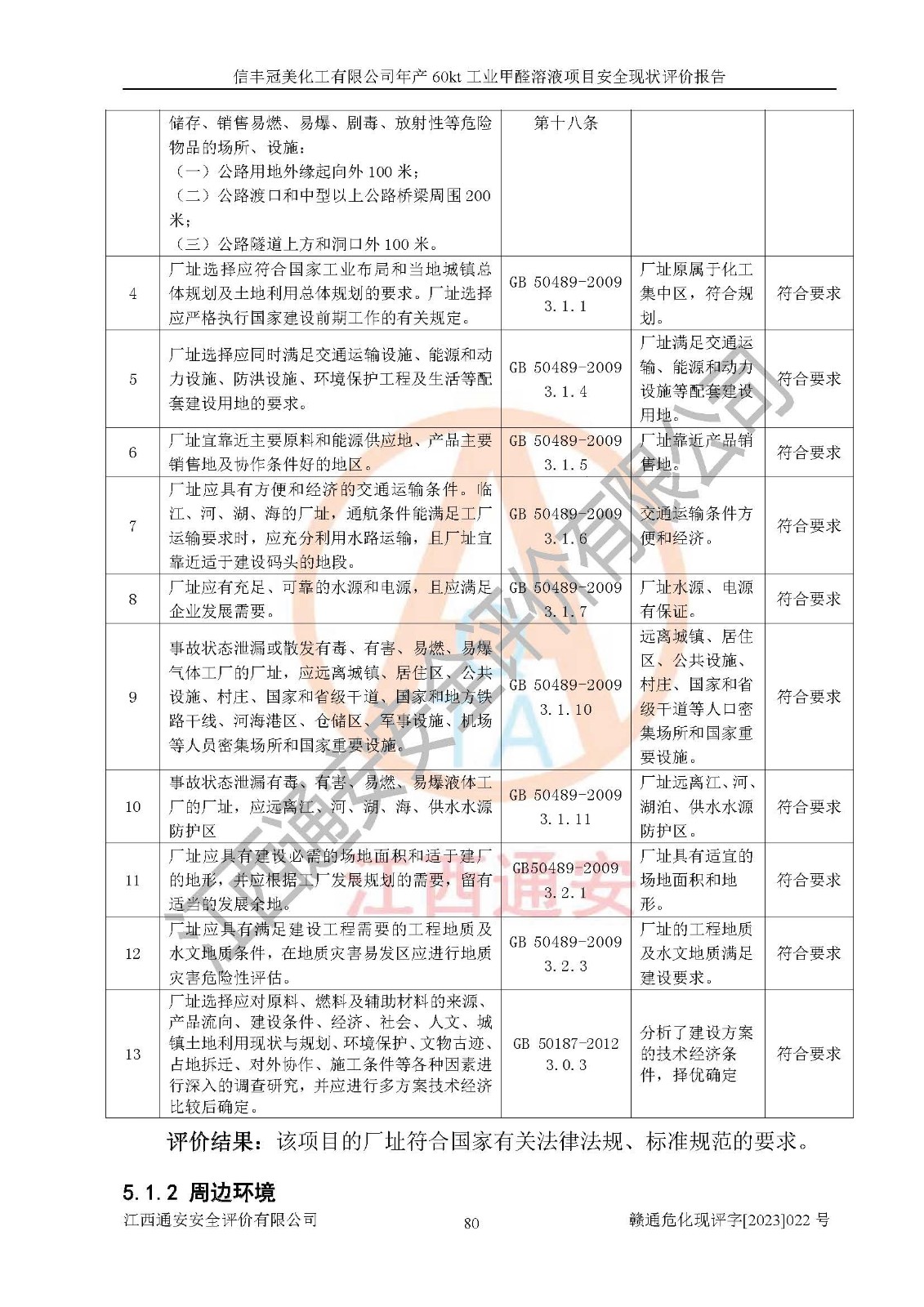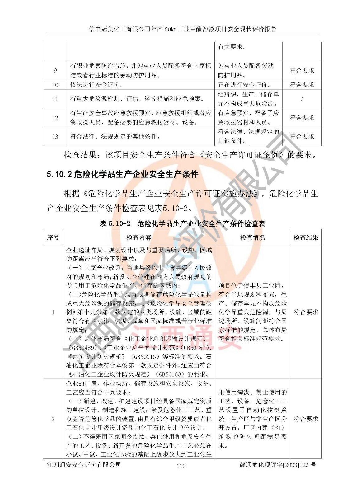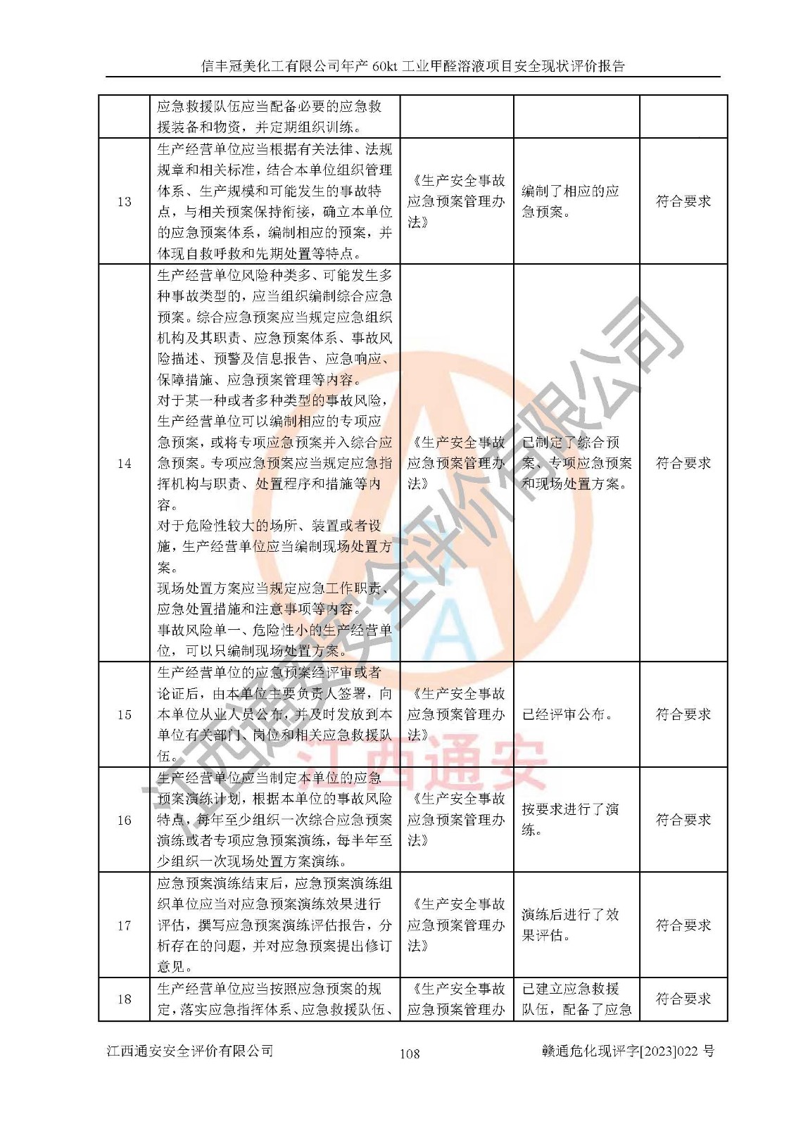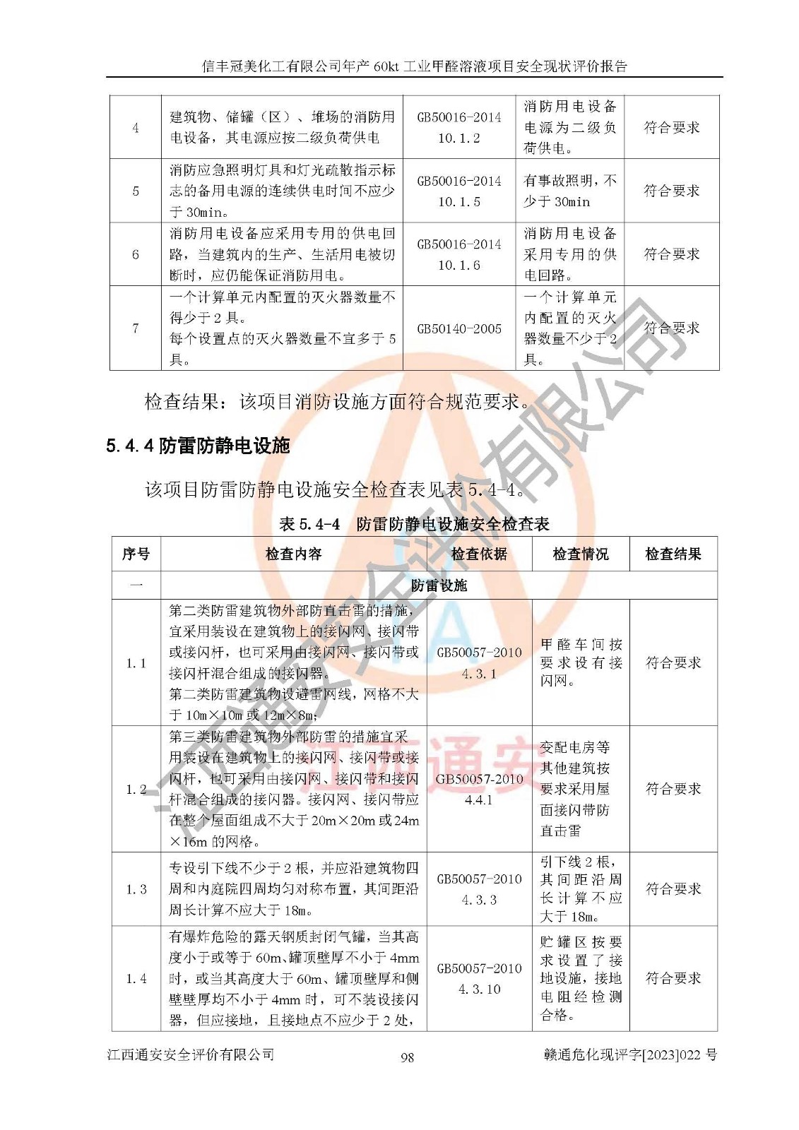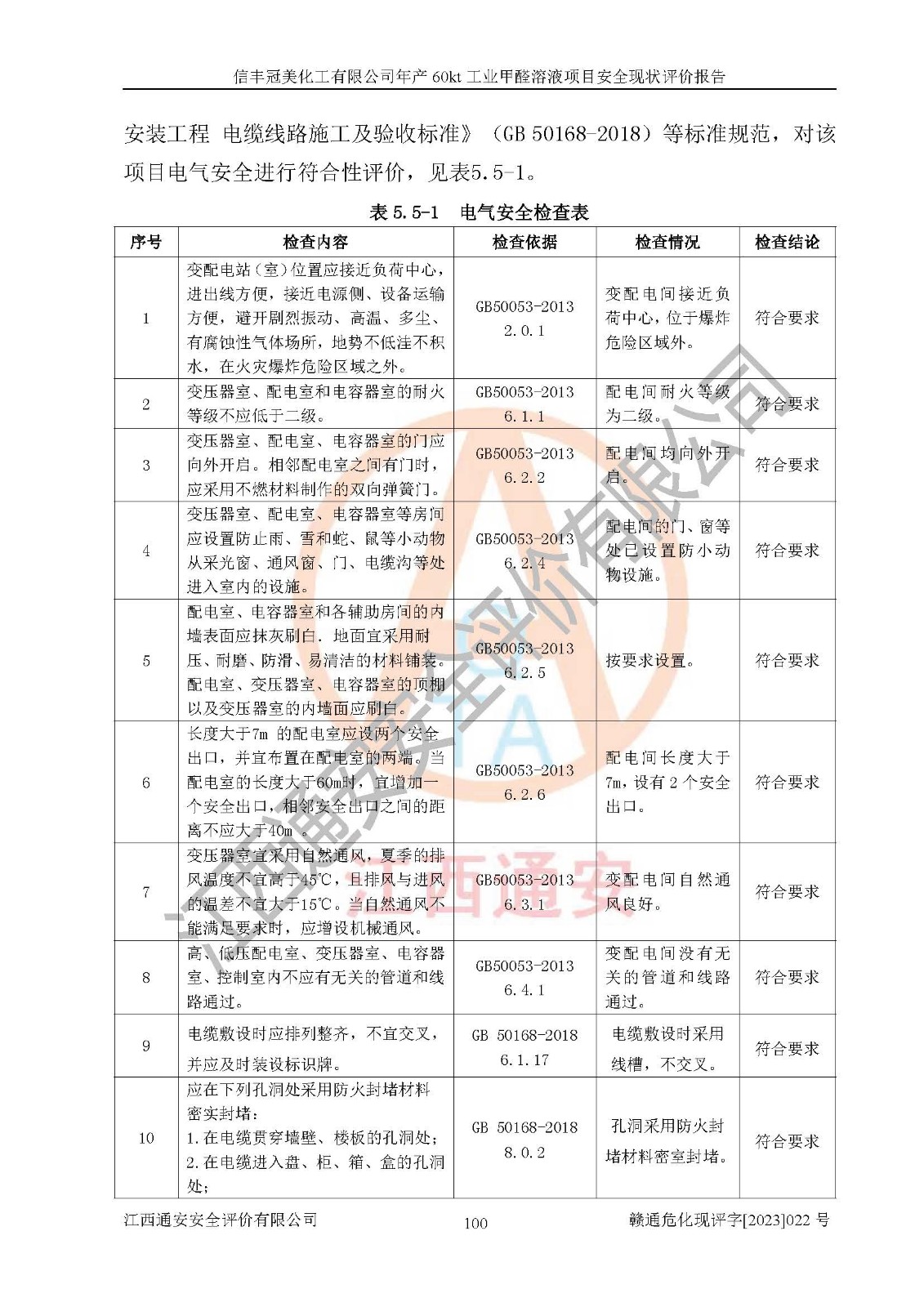 信豐冠美化工有限公司位于江西省贛州市信豐縣工業(yè)園偉邦路,法定**人為汪學斌,成立于2007年04月09日,注冊資本壹仟萬元整,營業(yè)執(zhí)照經營范圍為工業(yè)甲醛、尿醛樹脂膠生產、銷售(憑許可證經營)等。 信豐冠美化工有限公司2020年07月23日取得了《安全生產許可證》,許可證編號:(贛)WH安許證字[2008]0500號,許可范圍為工業(yè)甲醛溶液(60kt/a),**期2020年08月06日至2023年08月05日。該公司2022年8月30日取得了安全生產標準化證書,證書編號:贛AQBWⅡ[2022]015,**期至2025年8月。該公司現(xiàn)有員工23人,其中專職安全管理人員1人。 根據《江西省危險化學品產業(yè)轉移項目和化工園區(qū)安全風險防控專項整治實施方案》(贛安辦字〔2021〕86 號)要求,為提升生產本質安全,減少重大危險源,信豐冠美化工有限公司對貯罐區(qū)進行了調整,停用1臺甲醇儲罐和1臺甲醇計量罐,2臺甲醇儲罐變更為2臺甲醛儲罐。信豐冠美化工有限公司委托山東富海石化工程有限公司對60kt/a工業(yè)甲醛項目出具了在役化工裝置安全設計診斷及整改設計文本和圖紙(2022年12月),取得了贛州市應急管理局出具的審查意見,并對貯罐區(qū)進行了整改。貯罐區(qū)整改完成后,經辨識,信豐冠美化工有限公司生產、儲存單元不構成危險化學品重大危險源。信豐冠美化工有限公司向信豐縣應急管理局申請了重大危險源核銷,2023年2月2日取得了核銷登記表,核銷編號為HX贛360722[2023]001。 信豐冠美化工有限公司年產60kt工業(yè)甲醛溶液項目生產過程中涉及的原輔材料為甲醇和銀觸媒(催化劑),氮封需要使用氮氣,副反應產物為氫氣,產品為甲醛溶液。根據《危險化學品目錄》,該項目涉及的甲醇、氮氣[壓縮的]、氫氣、甲醛和甲醛溶液屬于危險化學品。經辨識,甲醇和氫氣屬于重點監(jiān)管的危險化學品,甲醛屬于高毒物品,甲醇屬于特別管控的危險化學品,不涉及監(jiān)控化學品、易制毒化學品、易制爆危險化學品和劇毒化學品,生產、儲存單元不構成危險化學品重大危險源,涉及的氧化反應屬于重點監(jiān)管的危險化工工藝。根據《安全生產許可證條例》、《危險化學品安全管理條例》和《危險化學品生產企業(yè)安全生產許可實施辦法》的相關規(guī)定,該項目甲醛溶液屬于危險化學品,需要辦理危險化學品安全生產許可證。根據生產工藝特點及物料的理化特性可知,該項目生產過程中存在火災與爆炸、中毒與窒息、觸電、機械傷害等危險有害因素。 該公司自2020年07月23日取得安全生產許可證以來,生產運行正常,未發(fā)生一般及以上生產安全事故。 |