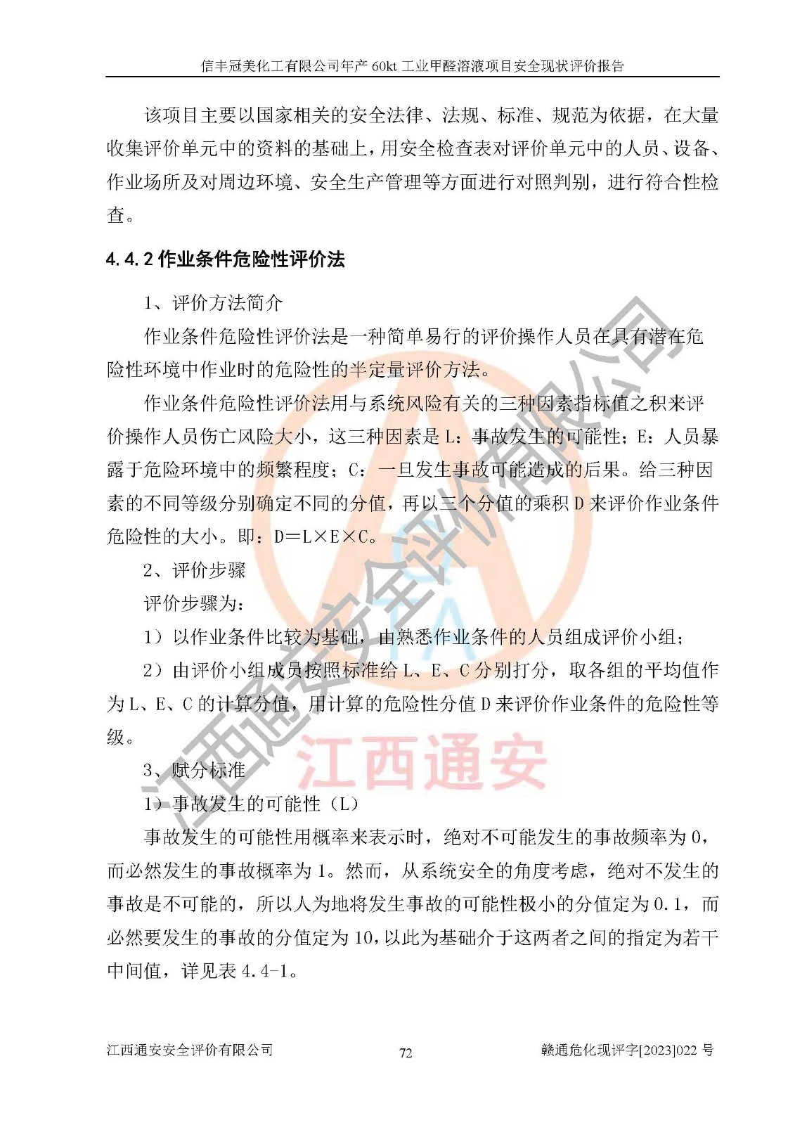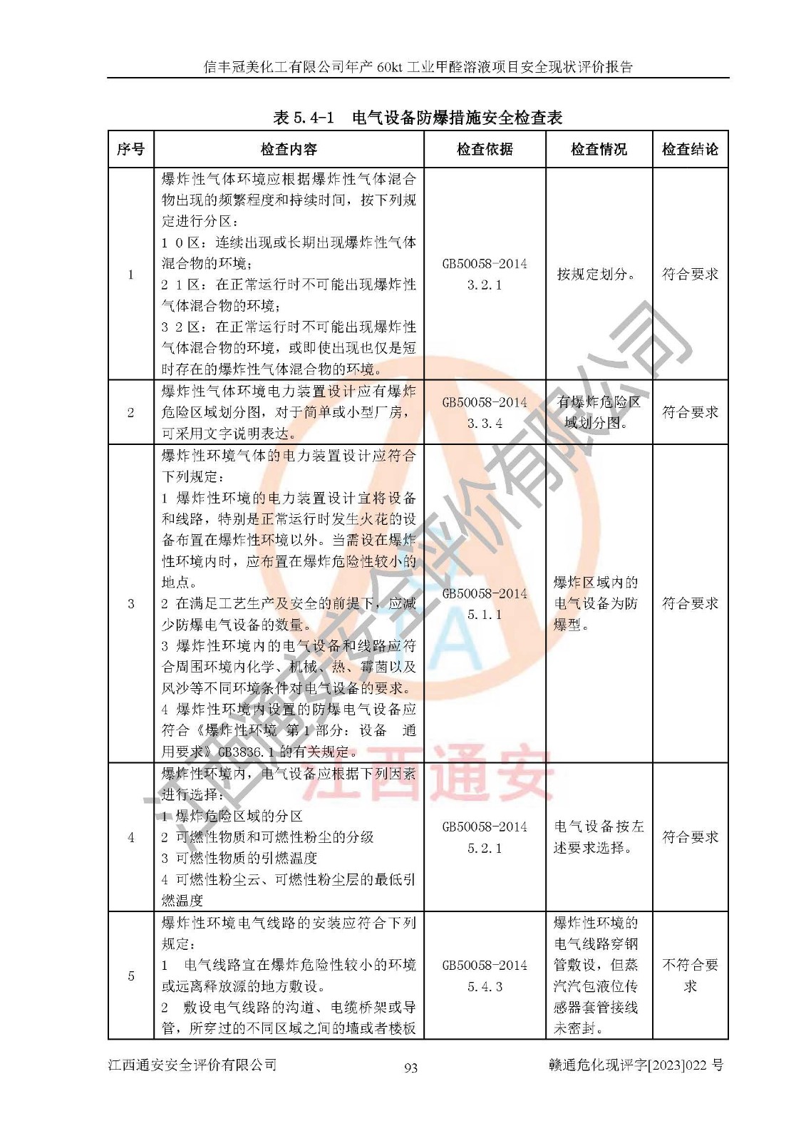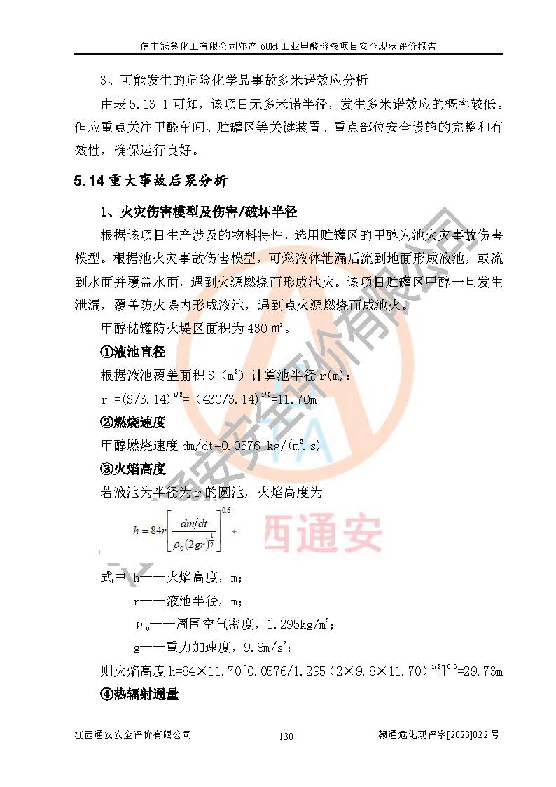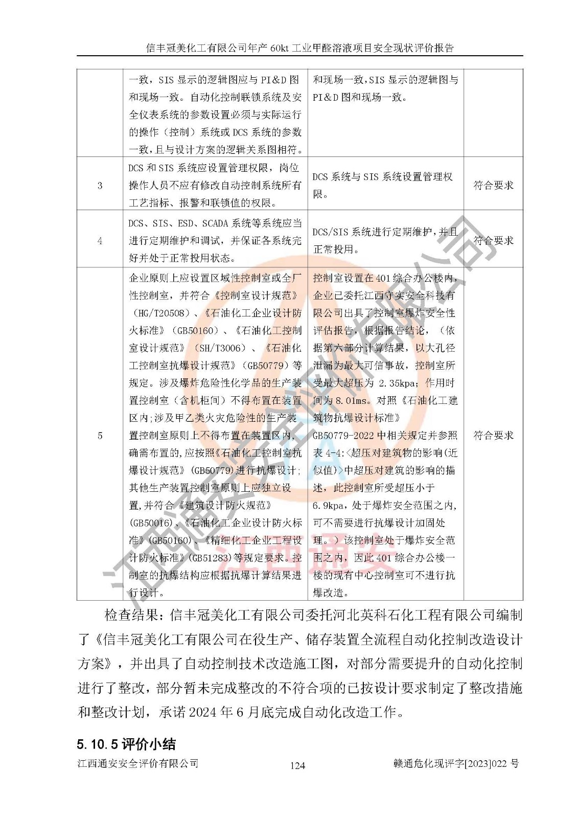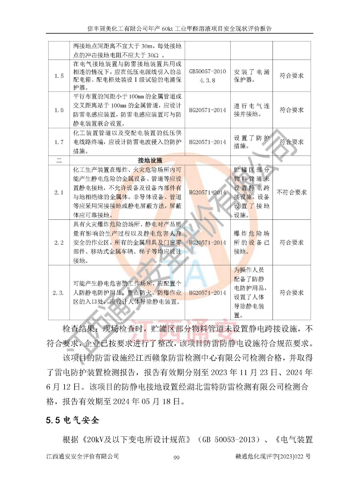 信豐冠美化工有限公司位于江西省贛州市信豐縣工業(yè)園偉邦路,法定**人為汪學斌,成立于2007年04月09日,注冊資本壹仟萬元整,營業(yè)執(zhí)照經營范圍為工業(yè)甲醛、尿醛樹脂膠生產、銷售(憑許可證經營)等。 信豐冠美化工有限公司2020年07月23日取得了《安全生產許可證》,許可證編號:(贛)WH安許證字[2008]0500號,許可范圍為工業(yè)甲醛溶液(60kt/a),**期2020年08月06日至2023年08月05日。該公司2022年8月30日取得了安全生產標準化證書,證書編號:贛AQBWⅡ[2022]015,**期至2025年8月。該公司現(xiàn)有員工23人,其中專職安全管理人員1人。 根據《江西省危險化學品產業(yè)轉移項目和化工園區(qū)安全風險防控專項整治實施方案》(贛安辦字〔2021〕86 號)要求,為提升生產本質安全,減少重大危險源,信豐冠美化工有限公司對貯罐區(qū)進行了調整,停用1臺甲醇儲罐和1臺甲醇計量罐,2臺甲醇儲罐變更為2臺甲醛儲罐。信豐冠美化工有限公司委托山東富海石化工程有限公司對60kt/a工業(yè)甲醛項目出具了在役化工裝置安全設計診斷及整改設計文本和圖紙(2022年12月),取得了贛州市應急管理局出具的審查意見,并對貯罐區(qū)進行了整改。貯罐區(qū)整改完成后,經辨識,信豐冠美化工有限公司生產、儲存單元不構成危險化學品重大危險源。信豐冠美化工有限公司向信豐縣應急管理局申請了重大危險源核銷,2023年2月2日取得了核銷登記表,核銷編號為HX贛360722[2023]001。 信豐冠美化工有限公司年產60kt工業(yè)甲醛溶液項目生產過程中涉及的原輔材料為甲醇和銀觸媒(催化劑),氮封需要使用氮氣,副反應產物為氫氣,產品為甲醛溶液。根據《危險化學品目錄》,該項目涉及的甲醇、氮氣[壓縮的]、氫氣、甲醛和甲醛溶液屬于危險化學品。經辨識,甲醇和氫氣屬于重點監(jiān)管的危險化學品,甲醛屬于高毒物品,甲醇屬于特別管控的危險化學品,不涉及監(jiān)控化學品、易制毒化學品、易制爆危險化學品和劇毒化學品,生產、儲存單元不構成危險化學品重大危險源,涉及的氧化反應屬于重點監(jiān)管的危險化工工藝。根據《安全生產許可證條例》、《危險化學品安全管理條例》和《危險化學品生產企業(yè)安全生產許可實施辦法》的相關規(guī)定,該項目甲醛溶液屬于危險化學品,需要辦理危險化學品安全生產許可證。根據生產工藝特點及物料的理化特性可知,該項目生產過程中存在火災與爆炸、中毒與窒息、觸電、機械傷害等危險有害因素。 該公司自2020年07月23日取得安全生產許可證以來,生產運行正常,未發(fā)生一般及以上生產安全事故。 |
