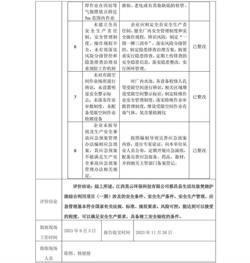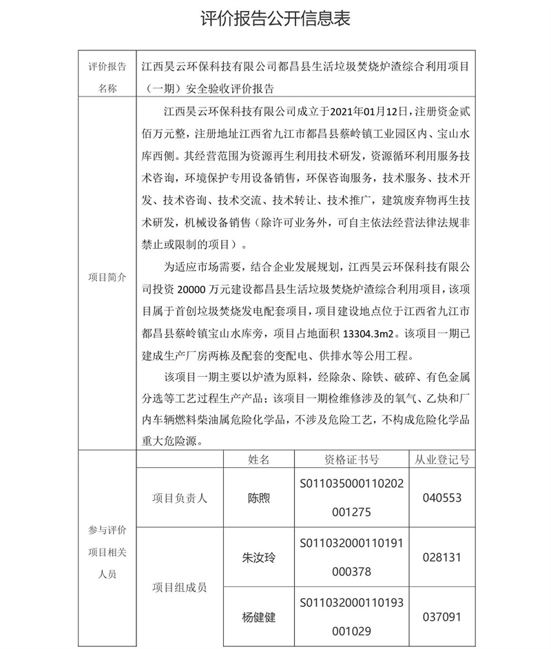 江西昊云**科技有限公司都昌縣生活**焚燒爐渣綜合利用項目(一期)安全驗收評價報告