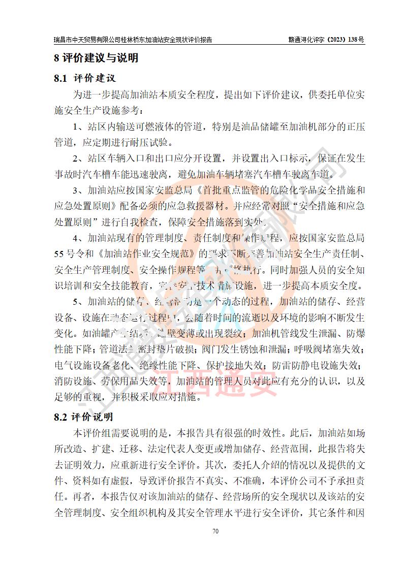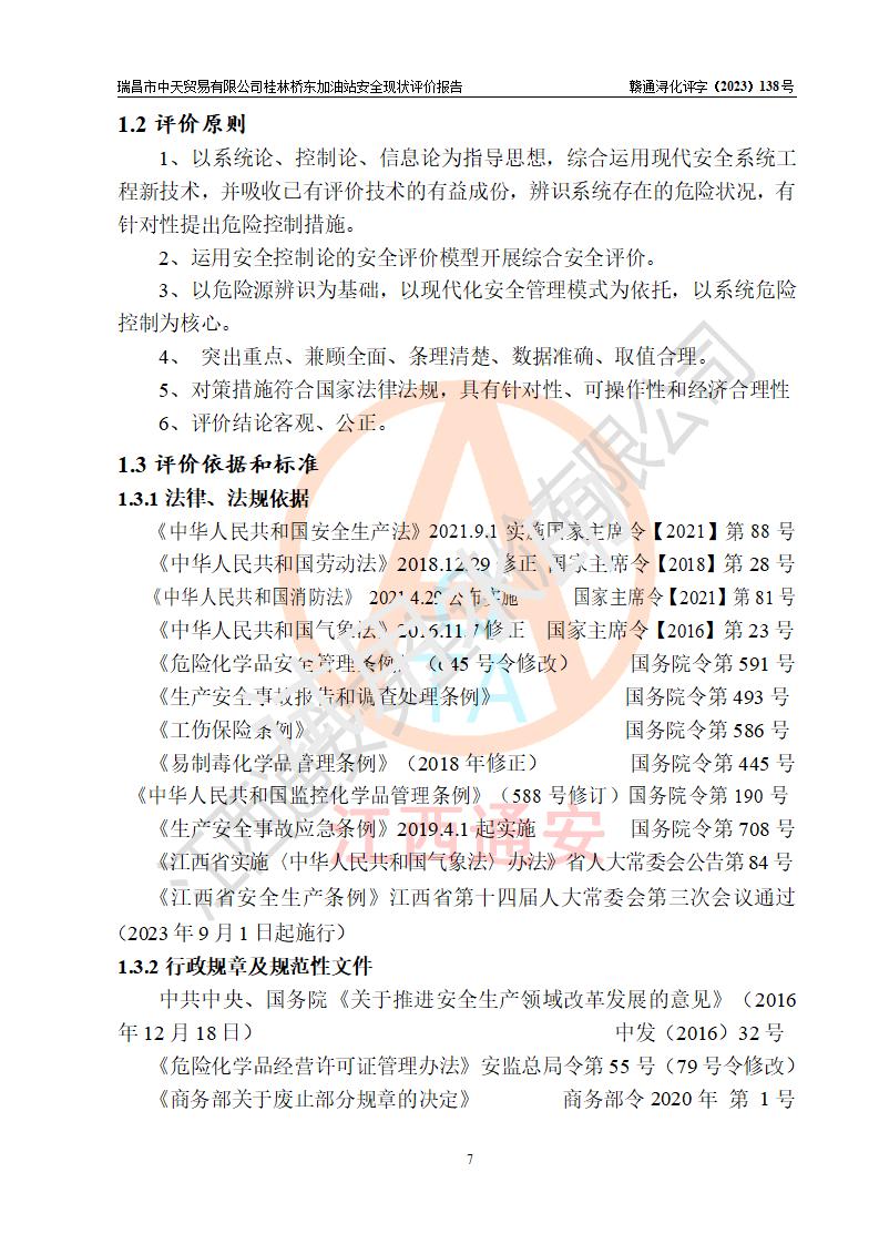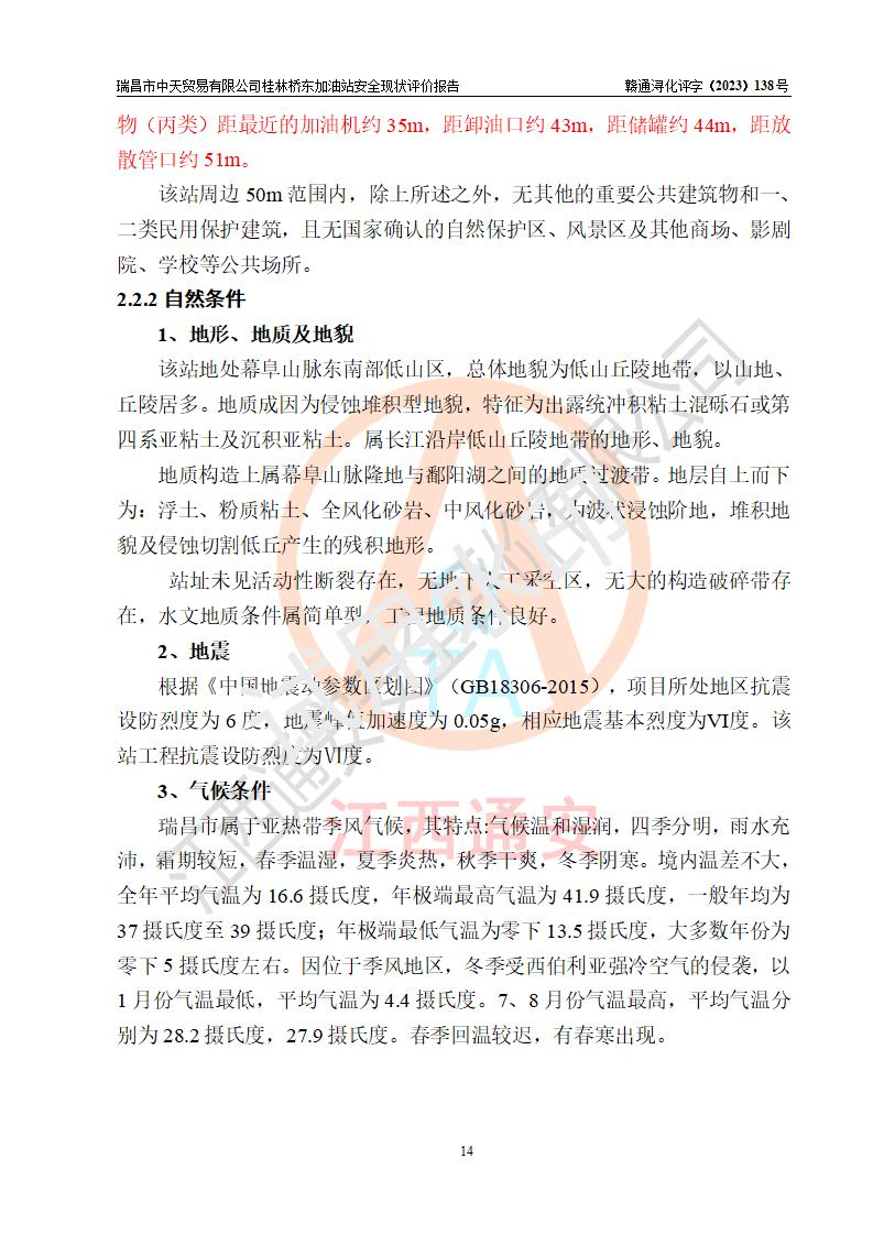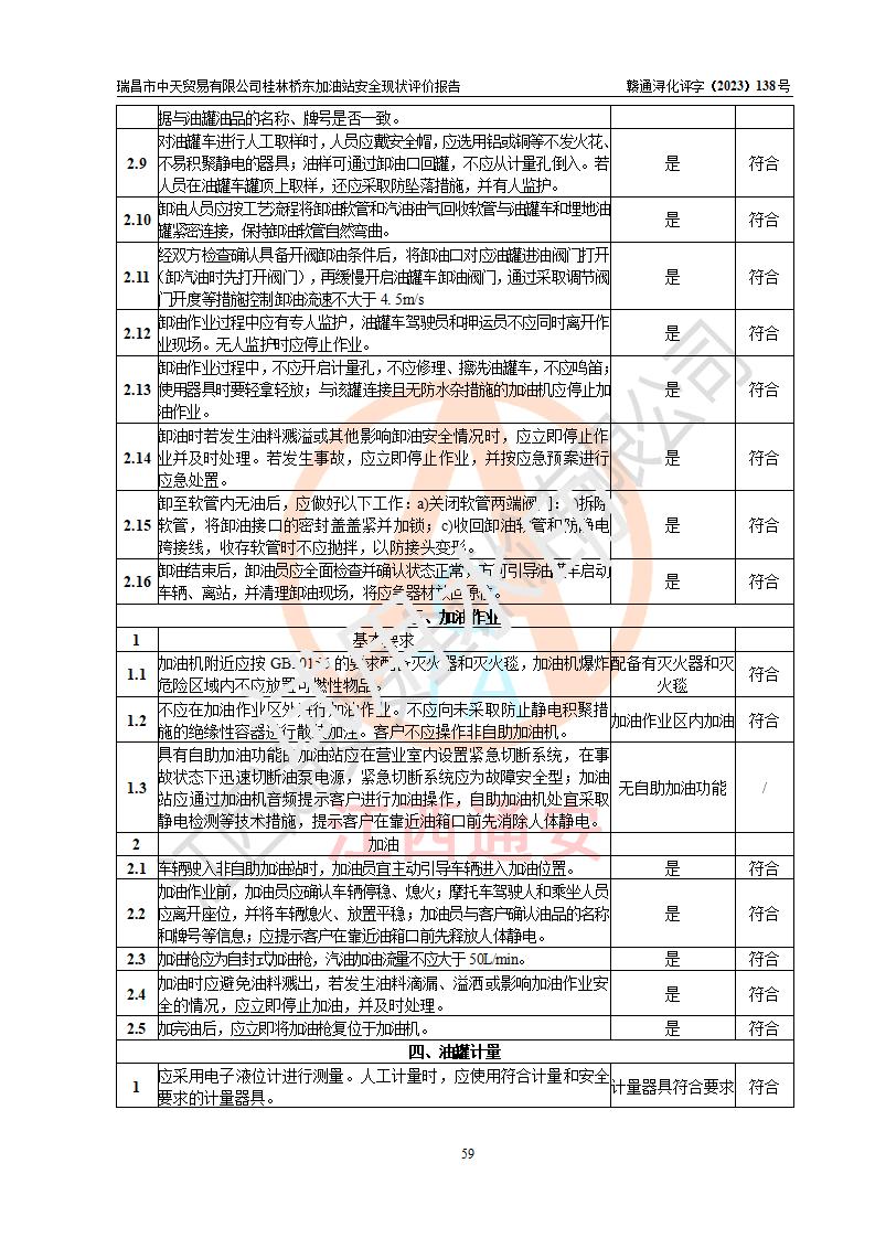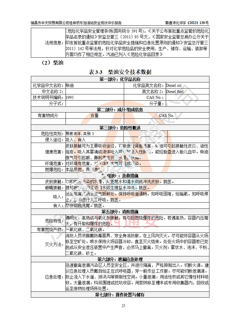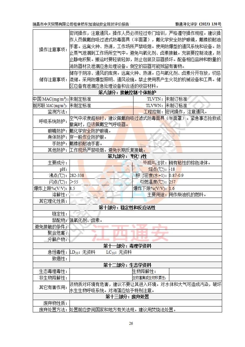 瑞昌市中天貿(mào)易有限公司桂林橋東加油站是一家專門從事成品油(汽油、柴油)、潤滑油零售,預(yù)包裝食品兼散裝食品、卷煙(憑許可證)、日用品、液化氣鋼瓶、灶具及配件零售,汽車清洗服務(wù)的有限責任公司分公司,注冊地址為江西省九江市瑞昌市瑞肇公路南側(cè)。加油站現(xiàn)有從業(yè)人員6名,其中安全管理人員1人,加油站負責人劉凱(經(jīng)營者),加油站危險化學(xué)品經(jīng)營單位主要負責人丁洞仙(加油站站長)。 該加油站站區(qū)占地面積3330.8m2(約5畝)。站區(qū)內(nèi)設(shè)置有1臺雙槍單油品潛油泵程控燃油加油機和3臺雙槍單油品自吸式程控燃油加油機及配套的工藝管線,25m3的95#汽油臥式雙層儲罐1臺,25m3的92#汽油汽油臥式雙層儲罐2臺,30m3的0#臥式柴油儲罐1臺,油品儲罐總?cè)莘e為105m3(折算為汽油為90m3),按現(xiàn)行《汽車加油加氣加氫站技術(shù)標準》對加油站的等級劃分原則,該站屬三級加油站。 該站在經(jīng)營成品油過程中涉及的主要物料為汽油和柴油,按**十部、局聯(lián)合公告〔2022〕第8號公告修改公布的《危險化學(xué)品目錄》,汽油和柴油屬于危險化學(xué)品。根據(jù)**安全監(jiān)管總局安監(jiān)總管三〔2011〕95號文件公布《首批重點監(jiān)管的危險化學(xué)品名錄》和應(yīng)急管理部等4部公告第3號《特別管控危險化學(xué)品目錄(**版)》,汽油屬于**重點監(jiān)管和特別管控的危險化學(xué)品。 該站由九江市應(yīng)急管理局換發(fā)了《危險化學(xué)品經(jīng)營許可證》(證號:贛九危化經(jīng)字〔2020〕000376號),**期限2021年01月23日至2024年01月22日。根據(jù)《危險化學(xué)品經(jīng)營許可證管理辦法》(**安監(jiān)總局第55號令,第79號令修改)的要求,危險化學(xué)品經(jīng)營許可證的**期為3年。**期滿后,企業(yè)需要繼續(xù)從事危險化學(xué)品經(jīng)營活動的,應(yīng)當在危險化學(xué)品經(jīng)營許可證**期滿3個月前,向發(fā)證機關(guān)提出危險化學(xué)品經(jīng)營許可證的延期申請,申請證照延期的所有儲存、經(jīng)營危險化學(xué)品的單位,應(yīng)當提供安全評價報告。瑞昌市中天貿(mào)易有限公司桂林橋東加油站目前正在做危險化學(xué)品經(jīng)營許可證延期換證的準備工作,故委托江西通安安全評價有限公司承擔其加油站經(jīng)營成品油安全條件現(xiàn)狀評價工作。 江西通安安全評價有限公司接受委托后,組織了評價組對該加油站進行了現(xiàn)場踏勘,對加油站零售經(jīng)營成品油的設(shè)施、設(shè)備、裝置實際運行狀況及管理狀況進行了實地調(diào)查、分析,檢查該站是否符合《危險化學(xué)品安全管理條例》、《危險化學(xué)品經(jīng)營許可證管理辦法》中規(guī)定的經(jīng)營單位應(yīng)具備的基本條件。從安全管理角度檢查和評價該站對安全法規(guī)的執(zhí)行情況,從安全技術(shù)角度檢查項目中安全設(shè)施是否符合**有關(guān)安全生產(chǎn)的法律、法規(guī)和標準。評價組運用安全系統(tǒng)工程的方法,進行危險、有害因素的識別及其危險度的評價,查找該系統(tǒng)生產(chǎn)運行中存在的事故隱患并判定其危險程度,提出合理可行的安全對策措施及建議,在此基礎(chǔ)上,根據(jù)加油站加油作業(yè)工藝程序、站區(qū)內(nèi)功能區(qū)域特點,劃分了評價單元;對劃分的評價單元及單元內(nèi)的危險、有害因素選擇了相應(yīng)的安全評價方法逐項進行分析、評價,提出相應(yīng)的預(yù)防和控制對策措施;在此基礎(chǔ)上完成了安全評價報告初稿,經(jīng)評價公司內(nèi)部五級審核程序,及加油站現(xiàn)場存在的安全隱患**落實整改后出具《瑞昌市中天貿(mào)易有限公司桂林橋東加油站安全現(xiàn)狀評價報告》,以作為該企業(yè)申請《危險化學(xué)品經(jīng)營許可證》延期的安全技術(shù)依據(jù)。 |