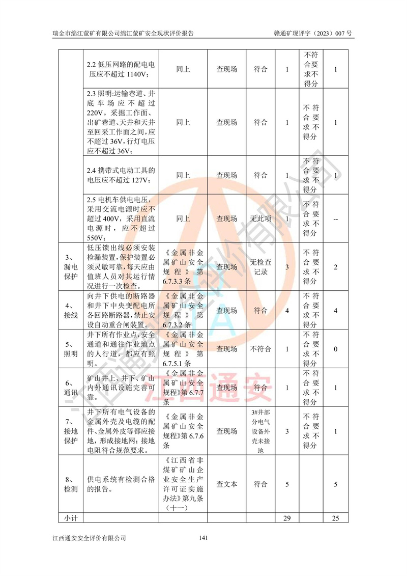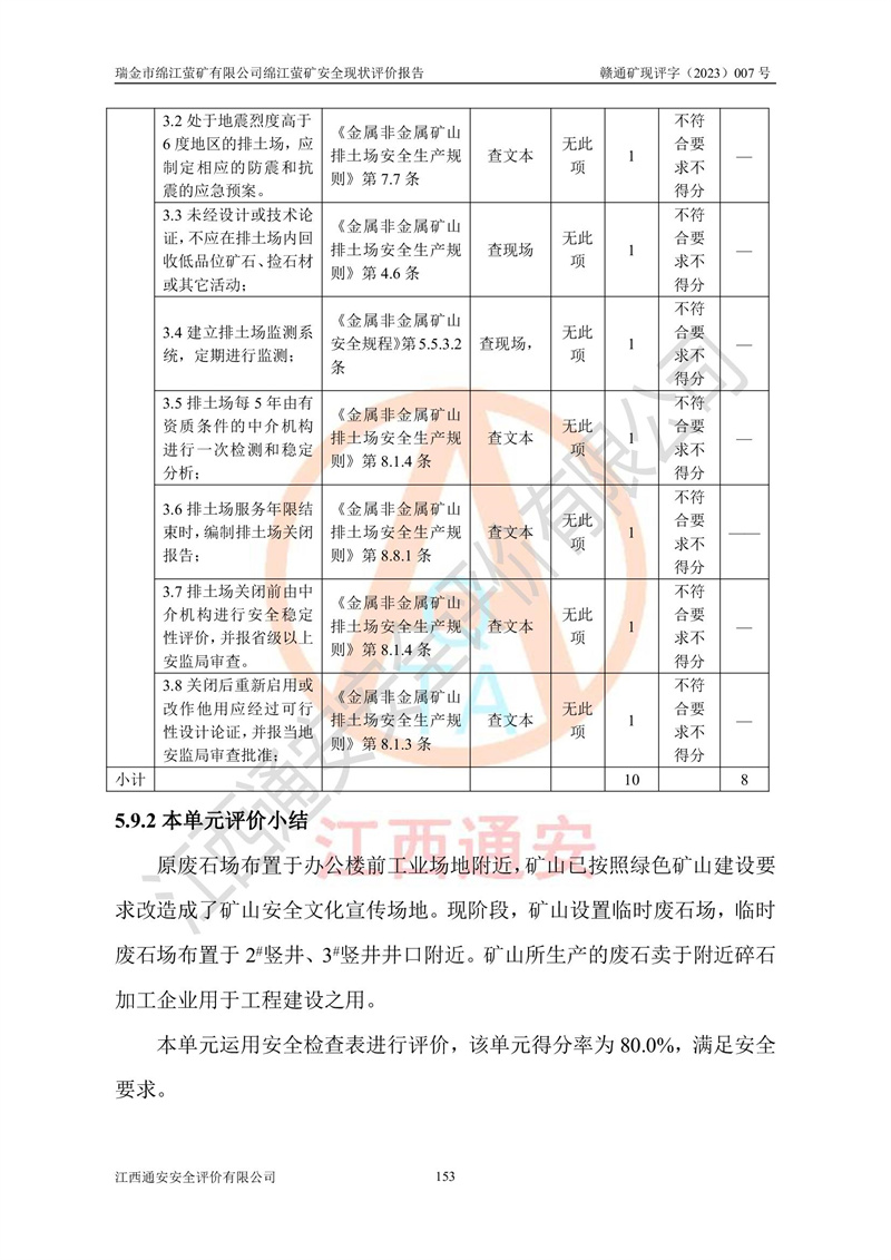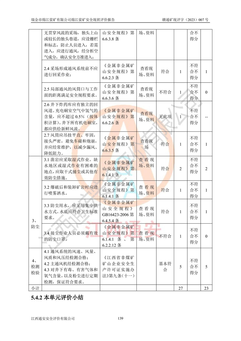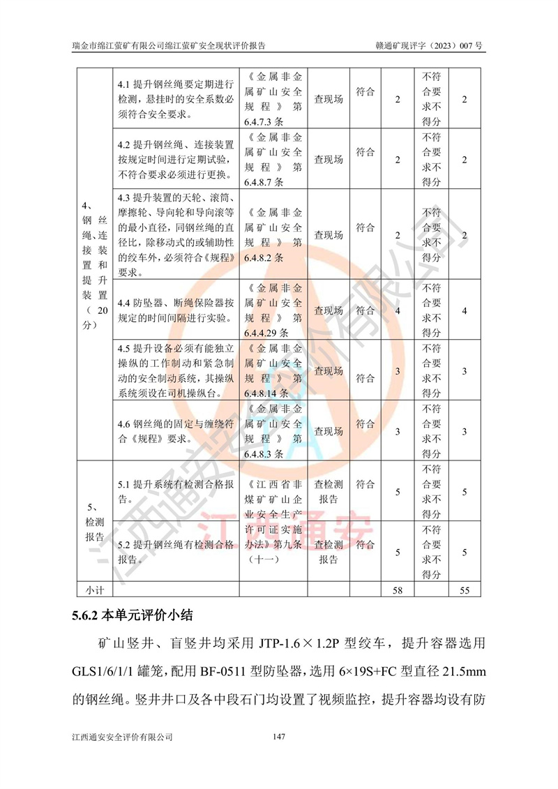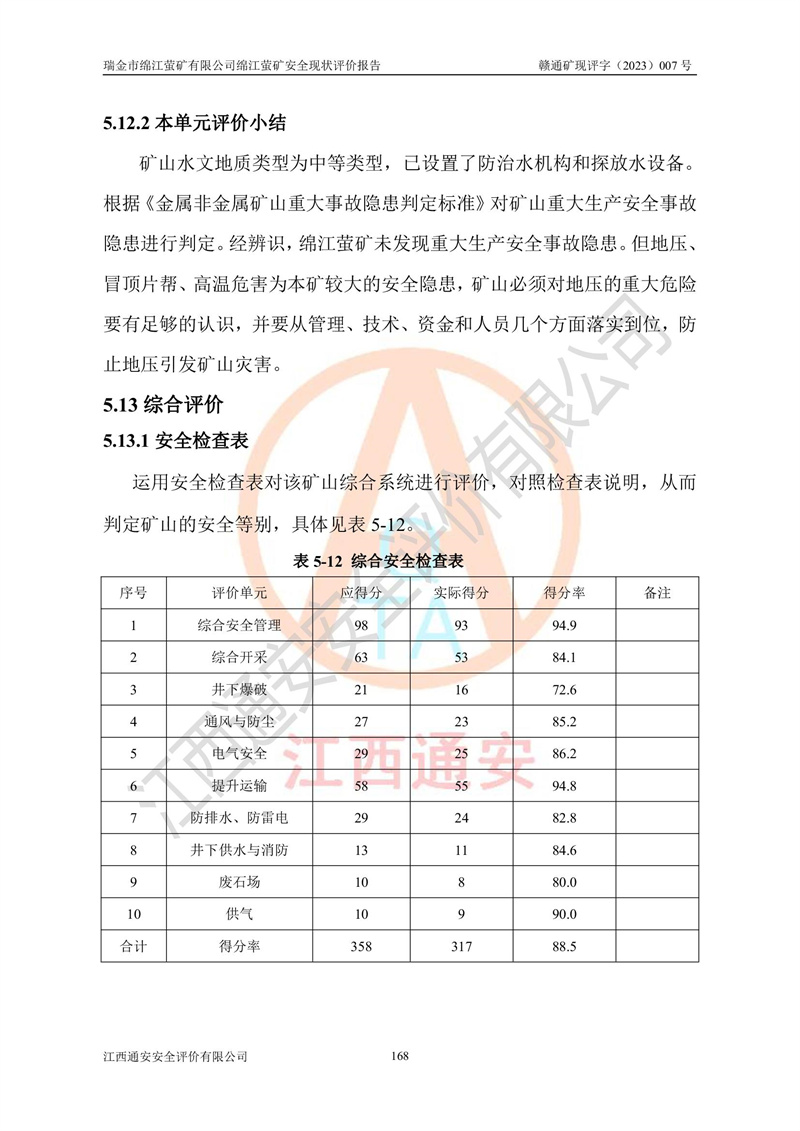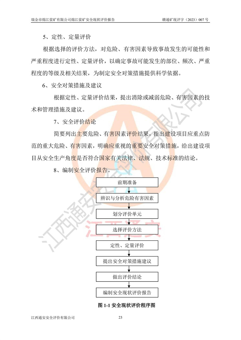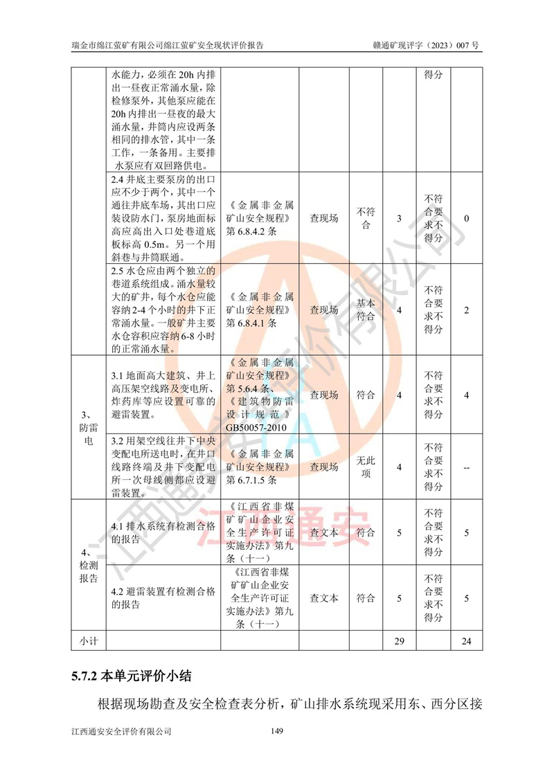 綿江螢礦礦區(qū)位于瑞金市南西210°方向,直線距離約26km,礦區(qū)地理坐標為東徑115°50′54″~115°51′31″,北緯25°38′52″~25°39′34″,行政區(qū)劃隸屬于瑞金市謝坊鎮(zhèn)深塘村管轄。 瑞金市綿江螢礦自1972年始有當?shù)卮迕裥∫?guī)模陸續(xù)開采,1978年收歸瑞金縣謝坊鄉(xiāng)管理,成立謝坊鄉(xiāng)螢石礦,同年收歸縣管改名為瑞金縣螢石礦,再經(jīng)歷多次采礦權人變更后,至2010年礦山由深圳市新星輕質(zhì)合金材料有限公司收購瑞金市綿江螢石礦為其全資子公司,同時成立瑞金市綿江螢礦有限公司為現(xiàn)礦山采礦權人。2021年5月28日,深圳市新星輕質(zhì)合金材料有限公司將其持有的綿江螢礦****股權及派生權益質(zhì)押給瑞金市金鑫礦產(chǎn)品實業(yè)有限公司,采礦權人未變。 礦山于2014年1月20日取得原江西省國土資源廳頒發(fā)的采礦許可證,證號:C3607002009126120050709,采礦權人:瑞金市綿江螢礦有限公司,地址:江西省贛州市瑞金市,礦山名稱:瑞金市綿江螢礦有限公司綿江螢礦,經(jīng)濟類型:私營有限責任公司,開采礦種:螢石(普通),開采方式:地下開采,生產(chǎn)規(guī)模:5.00萬t/a,礦區(qū)面積;0.5053km2,**期限:壹拾貳年自2014年1月20日至2026年1月20日。開采深度由238m至-100m標高,共有8個拐點圈定。 2014年6月,企業(yè)委托江西省煤礦設計院編制了《瑞金市綿江螢礦有限公司綿江螢礦擴建工程初步設計說明書》和《瑞金市綿江螢礦有限公司綿江螢礦擴建工程初步設計說明書安全專篇》。并于2014年6月19日省安監(jiān)局組織專家對《瑞金市綿江螢礦有限公司綿江螢礦擴建工程初步設計說明書安全專篇》進行了評審并原則通過,2014年7月18日由江西省安監(jiān)局下達了《關于瑞金市綿江螢礦有限公司綿江螢礦擴建工程初步設計說明書安全專篇》的審查意見書(贛安監(jiān)非煤項目設審[2014]46號)。礦山擴建工程設計采用豎井+盲豎井聯(lián)合開拓,延深共布置-15m、-45m、-75m、-100m四個中段。采礦方法為淺孔留礦法,通風系統(tǒng)采用中央對角抽出式機械通風,主扇安裝在4#回風斜井井口,礦山生產(chǎn)規(guī)模為5萬t/a,服務年限為10年。 2016年7月,礦山委托江西通安安全評價有限公司編制了《瑞金市綿江螢礦有限公司綿江螢礦地下開采擴建工程安全設施驗收評價報告》。2016年7月31日-8月2日,公司組織有關專家對江西通安安全評價有限公司編制的《瑞金市綿江螢礦有限公司綿江螢礦地下開采擴建工程安全設施驗收評價報告》進行了評審,同時對瑞金市綿江螢礦有限公司綿江螢礦地下開采擴建工程建設項目安全設施進行了現(xiàn)場驗收并原則通過。瑞金市安監(jiān)局依法對驗收過程及結果進行監(jiān)督。 2020年10月12日,礦山取得江西省應急管理換發(fā)的安全生產(chǎn)許可證。編號:(贛)FM安許證字[2005]M0029號,單位名稱:瑞金市綿江螢礦有限公司綿江螢礦地下開采,主要負責人:陳勇,單位地址:江西省瑞金市謝坊鎮(zhèn)深塘村,經(jīng)濟類型:有限責任公司,許可范圍:螢石礦5萬t/a,豎井+盲豎井聯(lián)合開拓,-75m、-100m中段地下開采,**期:2020年10月27日至2023年10月26日。 礦山取得安全生產(chǎn)許可證后,嚴格按照設計回采順序(中段按從上到下的順序開采,同時開采中段數(shù)為一個)要求進行開采,目前礦山-15m、-45m中段已結束回采。礦山現(xiàn)采用豎井+盲豎井聯(lián)合開拓。東區(qū)2#豎井(SJ2)為主豎井,西區(qū)3#豎井(SJ3)為副豎井,XJ4斜井為回風井兼做安全出口。礦山共開拓了+170、+110m、+80m、+65m、+45m、+15m、-15m、-45m、-75m、-100m等十個中段,其中-45m以上中段已回采結束,目前-75m為主要生產(chǎn)中段,-45m為回風中段,-100m為生產(chǎn)開拓中段。-75m中段東、西兩區(qū)運輸巷道已貫通,并已掘三個通風天井連接至-45m中段,東區(qū)-100m中段已掘穿脈、沿脈巷道100m。東、西區(qū)的-45m以上中段均已貫通。東區(qū)+15m中段已開拓2#盲豎井至-100m中段,2#盲豎井連接-15m、-45m、-75m、-100m四個中段。西區(qū)+45m中段已開拓3#盲豎井至-75m中段,3#盲豎井連接+15m、-15m、-45m、-75m四個中段,并計劃按設計延伸至-100m中段。 2019年3月-2020年6月礦山對提升運輸系統(tǒng)設備設施進行了改造,各中段及豎井、盲豎井井口運輸由原無軌膠輪車運輸改為0.5m3U型礦車運輸,各東、西區(qū)豎井及盲豎井均新安裝了BF-0511防墜器,新更換了GLS1/6/1/1罐籠。隨著礦山進行深部開拓,井下需風量及風阻隨之變大,為了滿足礦山通風系統(tǒng)要求,礦山將設計一期工程15kW型號KCZ40-№11主扇風機,更換為二期工程55kW型號KZC40-№13主扇,進一步提高了礦井通風效率。同時將東、西兩區(qū)豎井及盲豎井原JTP-1.2×1.0P絞車更換為JTP-1.6×1.2P型絞車。 為了進一步優(yōu)化礦山提升運輸、排水、供電等系統(tǒng),2022年10月,礦山委托江西省中贛投勘察設計有限公司(原江西省煤礦設計院)編制了《瑞金市綿江螢礦有限公司綿江螢礦地下開采提升運輸、排水、供電優(yōu)化方案設計》。至2023年8月,礦山按優(yōu)化方案完成了改造,并委托江西華安檢測技術服務有限公司對設備設施進行檢測,檢測結果合格。 根據(jù)《安全生產(chǎn)法》、《安全生產(chǎn)許可證條例》等有關法律、法規(guī)的規(guī)定以及《關于做好非煤礦礦山企業(yè)安全生產(chǎn)許可證延期換證工作的通知》的要求,2023年4月,瑞金市綿江