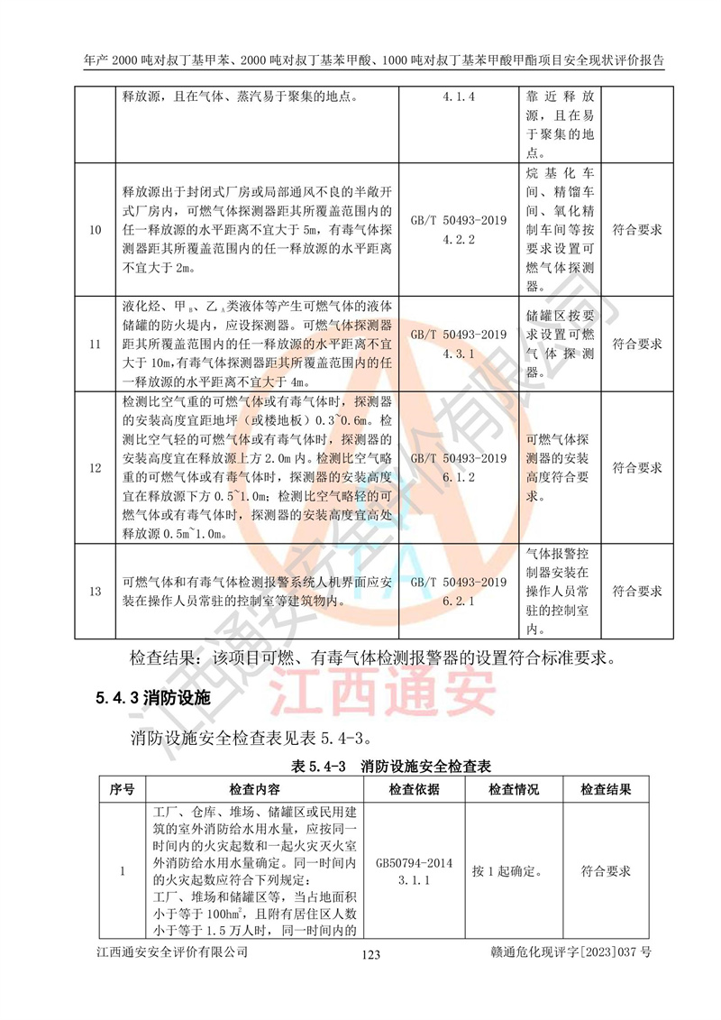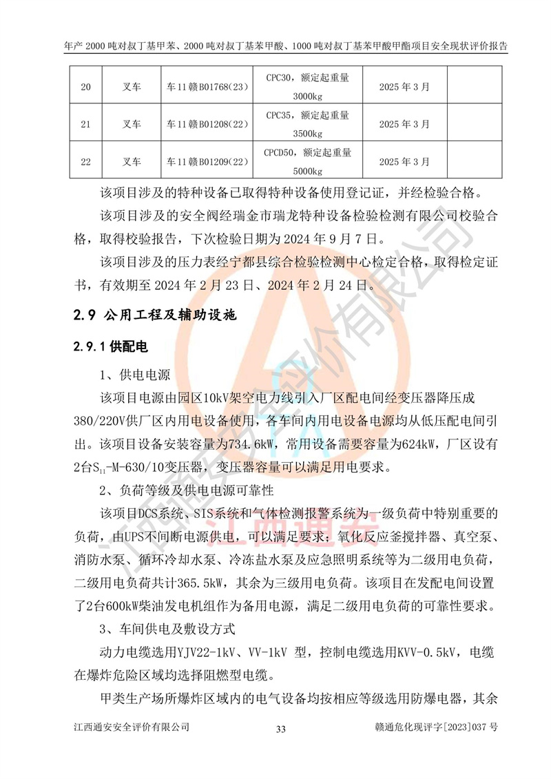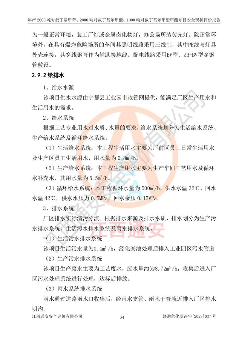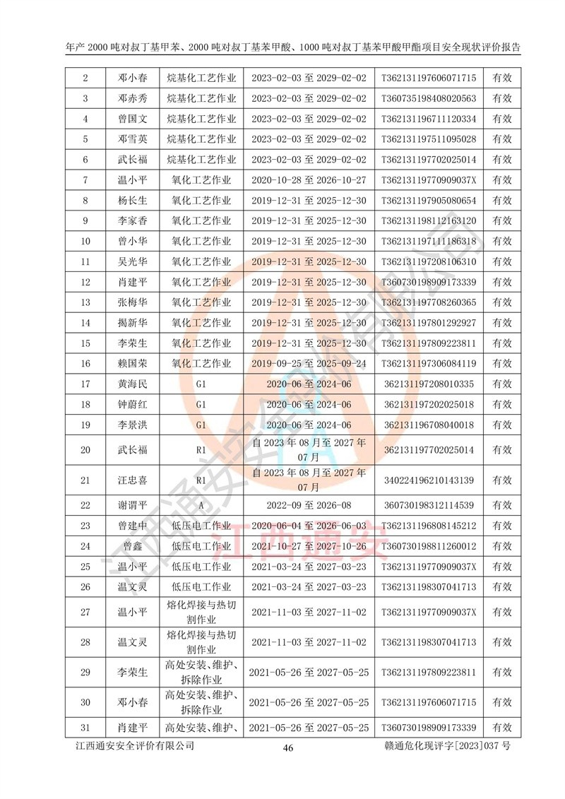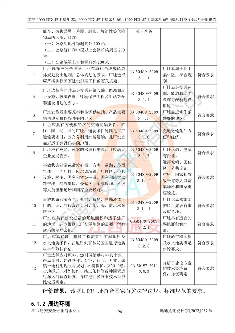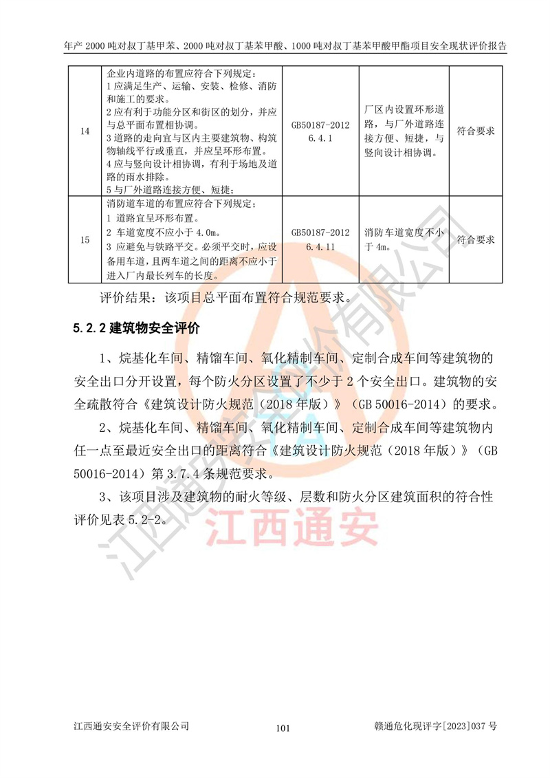 江西永通科技股份有限公司位于江西省贛州市寧都縣工業(yè)園,法定**人為劉忠春,成立于2009年09月25日,注冊(cè)資本玖仟陸佰肆拾陸萬(wàn)陸仟元整,營(yíng)業(yè)執(zhí)照經(jīng)營(yíng)范圍為化學(xué)原料藥、醫(yī)藥中間體等研發(fā)、生產(chǎn)、銷售等。 江西永通科技股份有限公司2020年10月26日取得了《安全生產(chǎn)許可證》,許可證編號(hào):(贛)WH安許證字[2011]0642號(hào),許可范圍為對(duì)叔丁基甲苯(2kt/a)、對(duì)叔丁基苯甲酸(2kt/a)、對(duì)叔丁基苯甲酸甲酯(1kt/a),**期:2020年10月26日至2023年10月25日。該公司2021年10月22日取得了安全生產(chǎn)標(biāo)準(zhǔn)化證書,證書編號(hào):贛市AQBWHⅢ[2021]168,**期至2024年10月21日。該公司現(xiàn)有員工133人,其中專職安全管理人員3人。 江西永通科技股份有限公司年產(chǎn)2000噸對(duì)叔丁基甲苯、2000噸對(duì)叔丁基苯甲酸、1000噸對(duì)叔丁基苯甲酸甲酯項(xiàng)目生產(chǎn)過(guò)程中涉及的原輔材料為甲苯、異丁烯、液氧(氧氣)、甲醇、濃硫酸、液堿(氫氧化鈉)、活性炭、硅藻土、氧化催化劑和氮?dú)?,產(chǎn)品為對(duì)叔丁基甲苯、對(duì)叔丁基苯甲酸和對(duì)叔丁基苯甲酸甲酯。根據(jù)《危險(xiǎn)化學(xué)品目錄》,該項(xiàng)目涉及的甲苯、異丁烯、液氧(氧氣)、甲醇、濃硫酸、液堿(氫氧化鈉)和氮?dú)鈱儆?/span>危險(xiǎn)化學(xué)品。經(jīng)辨識(shí),甲苯和甲醇屬于重點(diǎn)監(jiān)管的危險(xiǎn)化學(xué)品,甲苯和硫酸屬于第三類易制毒化學(xué)品、甲醇屬于特別管控的危險(xiǎn)化學(xué)品,不涉及監(jiān)控化學(xué)品、易制爆危險(xiǎn)化學(xué)品、劇毒化學(xué)品和高毒物品,儲(chǔ)罐區(qū)構(gòu)成三級(jí)重大危險(xiǎn)源,其他生產(chǎn)、儲(chǔ)存單元不構(gòu)成危險(xiǎn)化學(xué)品重大危險(xiǎn)源,涉及的烷基化反應(yīng)和氧化反應(yīng)屬于重點(diǎn)監(jiān)管的危險(xiǎn)化工工藝。根據(jù)《安全生產(chǎn)許可證條例》、《危險(xiǎn)化學(xué)品安全管理?xiàng)l例》和《危險(xiǎn)化學(xué)品生產(chǎn)企業(yè)安全生產(chǎn)許可實(shí)施辦法》的相關(guān)規(guī)定,該項(xiàng)目涉及甲苯回收,需要辦理危險(xiǎn)化學(xué)品安全生產(chǎn)許可證。根據(jù)生產(chǎn)工藝特點(diǎn)及物料的理化特性可知,該項(xiàng)目生產(chǎn)過(guò)程中存在火災(zāi)與爆炸、中毒與窒息、觸電、機(jī)械傷害等危險(xiǎn)有害因素。 該公司自2020年10月26日取得安全生產(chǎn)許可證以來(lái),生產(chǎn)運(yùn)行正常,未發(fā)生一般及以上生產(chǎn)安全事故。 |