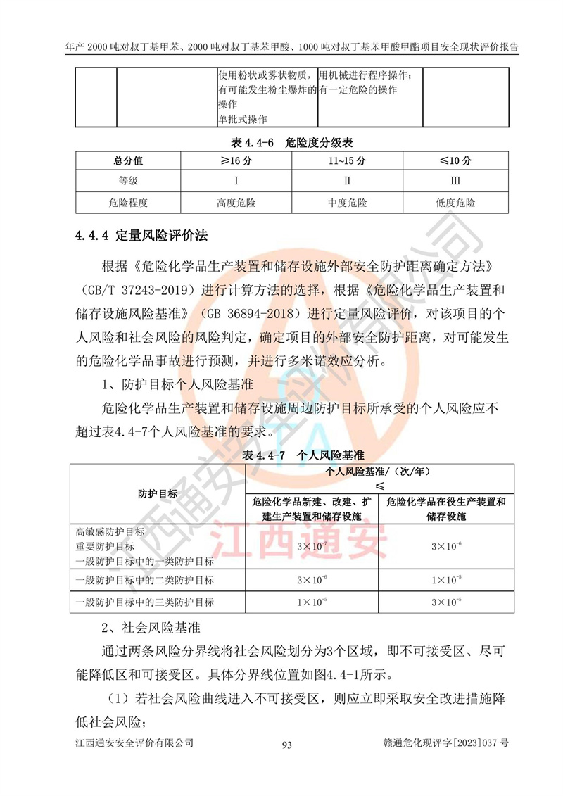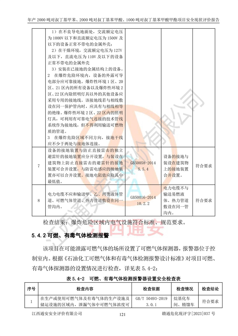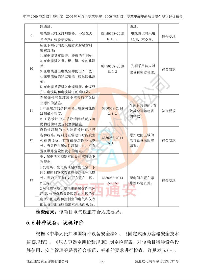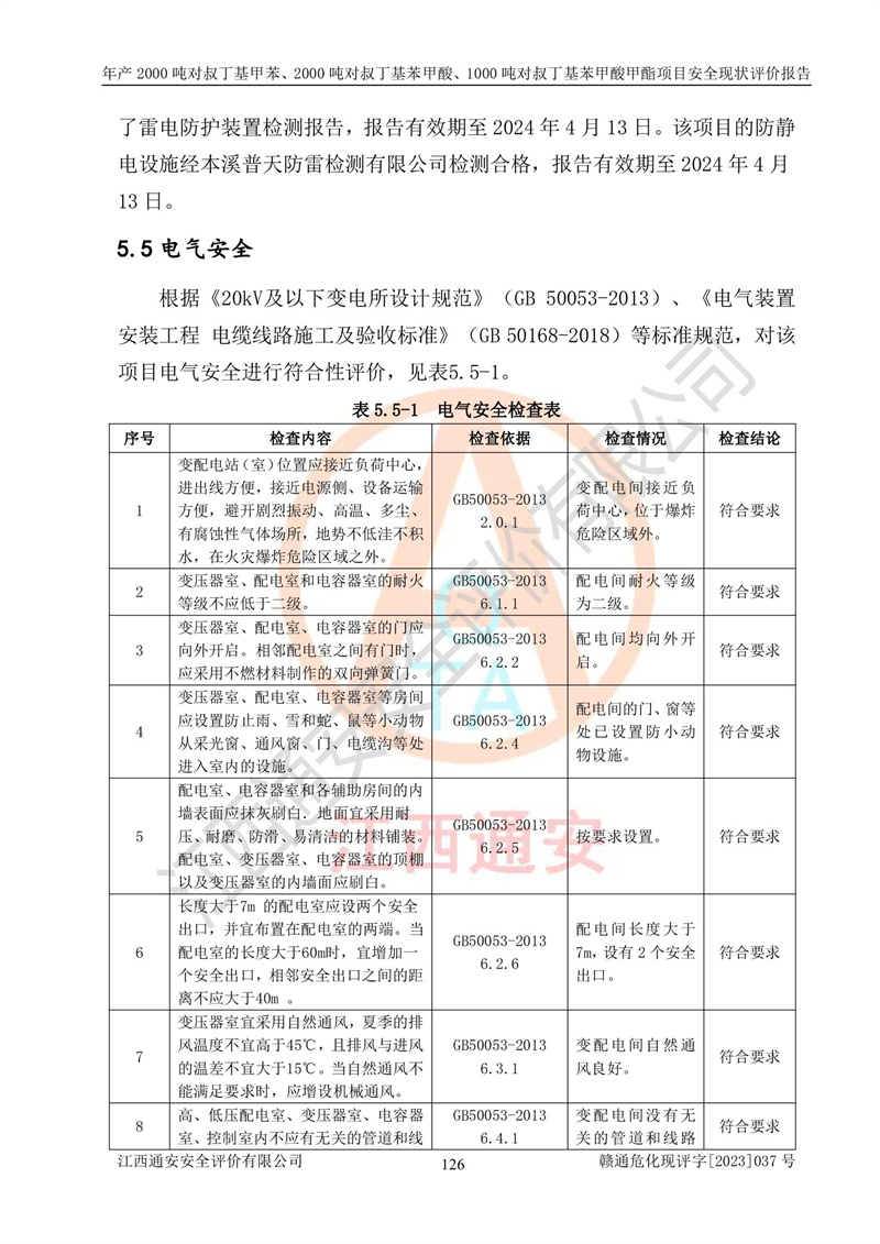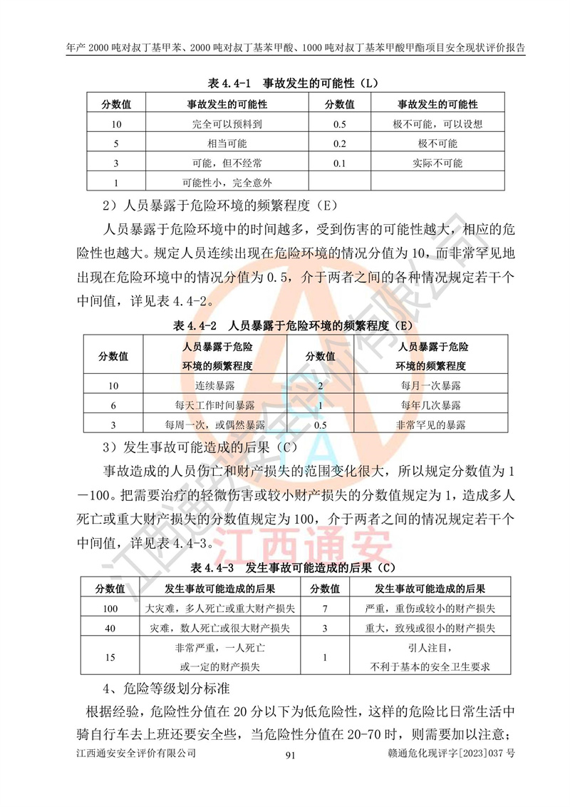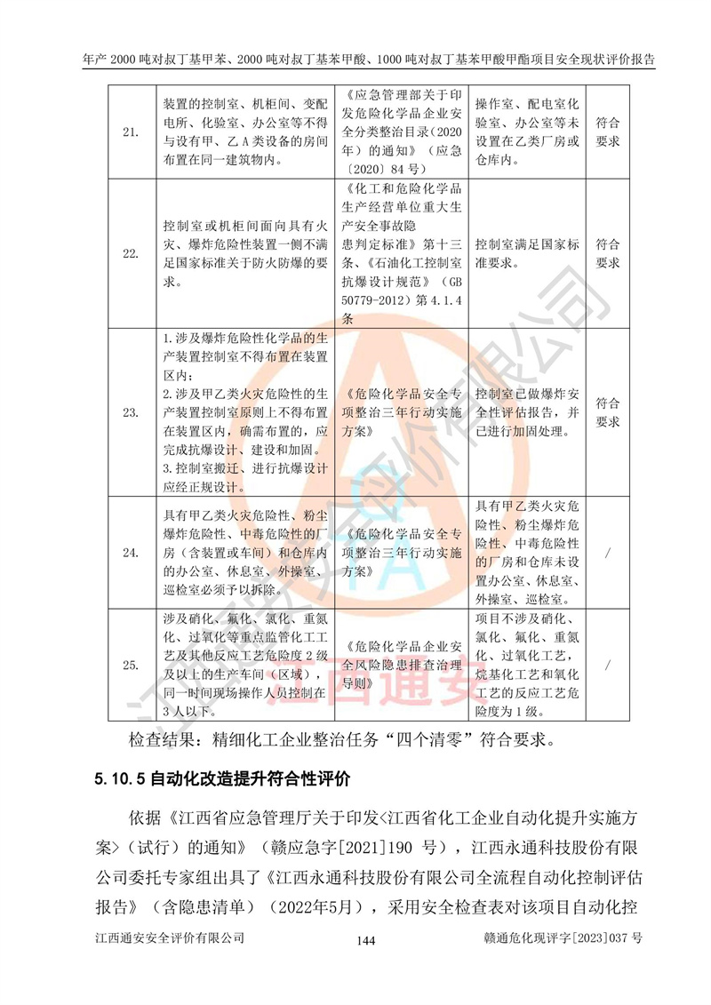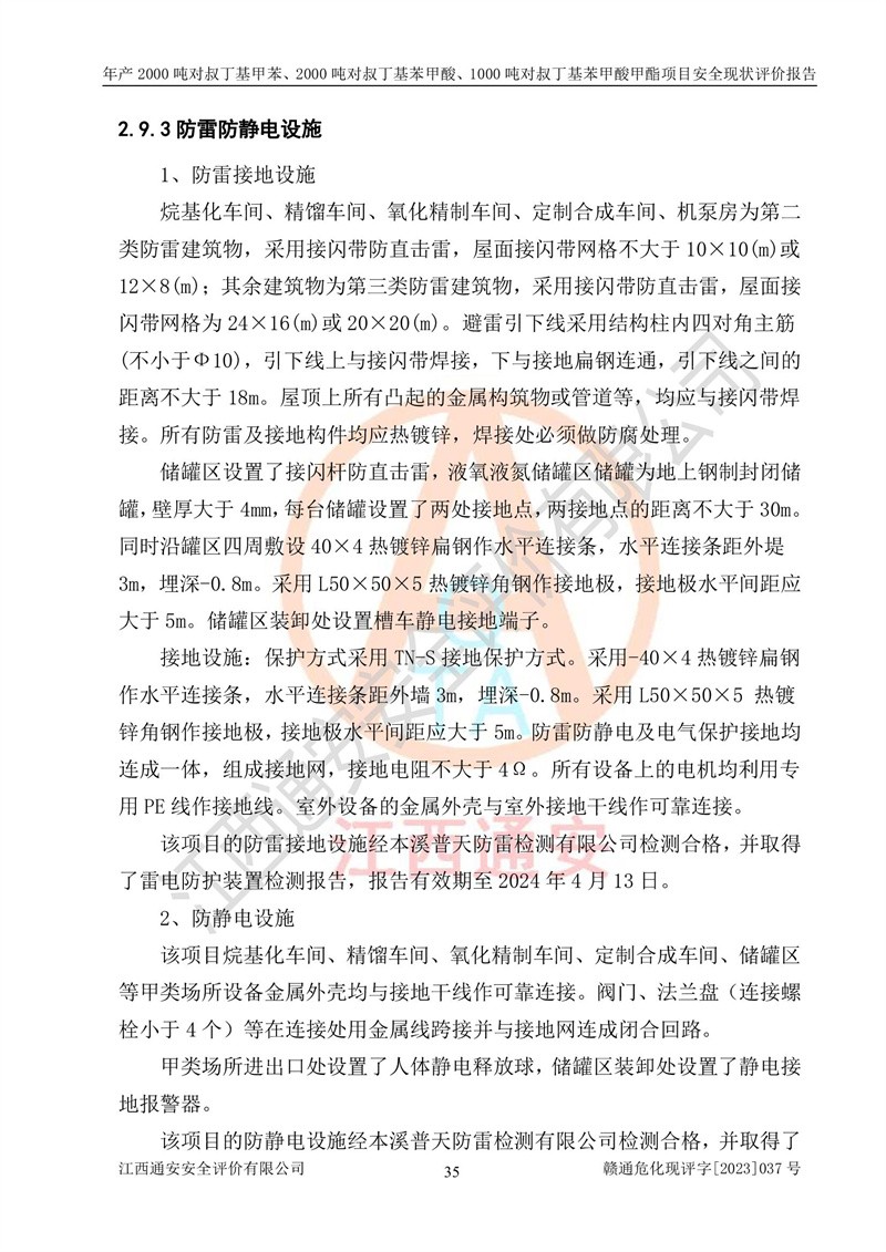 江西永通科技股份有限公司位于江西省贛州市寧都縣工業(yè)園,法定**人為劉忠春,成立于2009年09月25日,注冊(cè)資本玖仟陸佰肆拾陸萬(wàn)陸仟元整,營(yíng)業(yè)執(zhí)照經(jīng)營(yíng)范圍為化學(xué)原料藥、醫(yī)藥中間體等研發(fā)、生產(chǎn)、銷售等。 江西永通科技股份有限公司2020年10月26日取得了《安全生產(chǎn)許可證》,許可證編號(hào):(贛)WH安許證字[2011]0642號(hào),許可范圍為對(duì)叔丁基甲苯(2kt/a)、對(duì)叔丁基苯甲酸(2kt/a)、對(duì)叔丁基苯甲酸甲酯(1kt/a),**期:2020年10月26日至2023年10月25日。該公司2021年10月22日取得了安全生產(chǎn)標(biāo)準(zhǔn)化證書,證書編號(hào):贛市AQBWHⅢ[2021]168,**期至2024年10月21日。該公司現(xiàn)有員工133人,其中專職安全管理人員3人。 江西永通科技股份有限公司年產(chǎn)2000噸對(duì)叔丁基甲苯、2000噸對(duì)叔丁基苯甲酸、1000噸對(duì)叔丁基苯甲酸甲酯項(xiàng)目生產(chǎn)過(guò)程中涉及的原輔材料為甲苯、異丁烯、液氧(氧氣)、甲醇、濃硫酸、液堿(氫氧化鈉)、活性炭、硅藻土、氧化催化劑和氮?dú)?,產(chǎn)品為對(duì)叔丁基甲苯、對(duì)叔丁基苯甲酸和對(duì)叔丁基苯甲酸甲酯。根據(jù)《危險(xiǎn)化學(xué)品目錄》,該項(xiàng)目涉及的甲苯、異丁烯、液氧(氧氣)、甲醇、濃硫酸、液堿(氫氧化鈉)和氮?dú)鈱儆?/span>危險(xiǎn)化學(xué)品。經(jīng)辨識(shí),甲苯和甲醇屬于重點(diǎn)監(jiān)管的危險(xiǎn)化學(xué)品,甲苯和硫酸屬于第三類易制毒化學(xué)品、甲醇屬于特別管控的危險(xiǎn)化學(xué)品,不涉及監(jiān)控化學(xué)品、易制爆危險(xiǎn)化學(xué)品、劇毒化學(xué)品和高毒物品,儲(chǔ)罐區(qū)構(gòu)成三級(jí)重大危險(xiǎn)源,其他生產(chǎn)、儲(chǔ)存單元不構(gòu)成危險(xiǎn)化學(xué)品重大危險(xiǎn)源,涉及的烷基化反應(yīng)和氧化反應(yīng)屬于重點(diǎn)監(jiān)管的危險(xiǎn)化工工藝。根據(jù)《安全生產(chǎn)許可證條例》、《危險(xiǎn)化學(xué)品安全管理?xiàng)l例》和《危險(xiǎn)化學(xué)品生產(chǎn)企業(yè)安全生產(chǎn)許可實(shí)施辦法》的相關(guān)規(guī)定,該項(xiàng)目涉及甲苯回收,需要辦理危險(xiǎn)化學(xué)品安全生產(chǎn)許可證。根據(jù)生產(chǎn)工藝特點(diǎn)及物料的理化特性可知,該項(xiàng)目生產(chǎn)過(guò)程中存在火災(zāi)與爆炸、中毒與窒息、觸電、機(jī)械傷害等危險(xiǎn)有害因素。 該公司自2020年10月26日取得安全生產(chǎn)許可證以來(lái),生產(chǎn)運(yùn)行正常,未發(fā)生一般及以上生產(chǎn)安全事故。 |